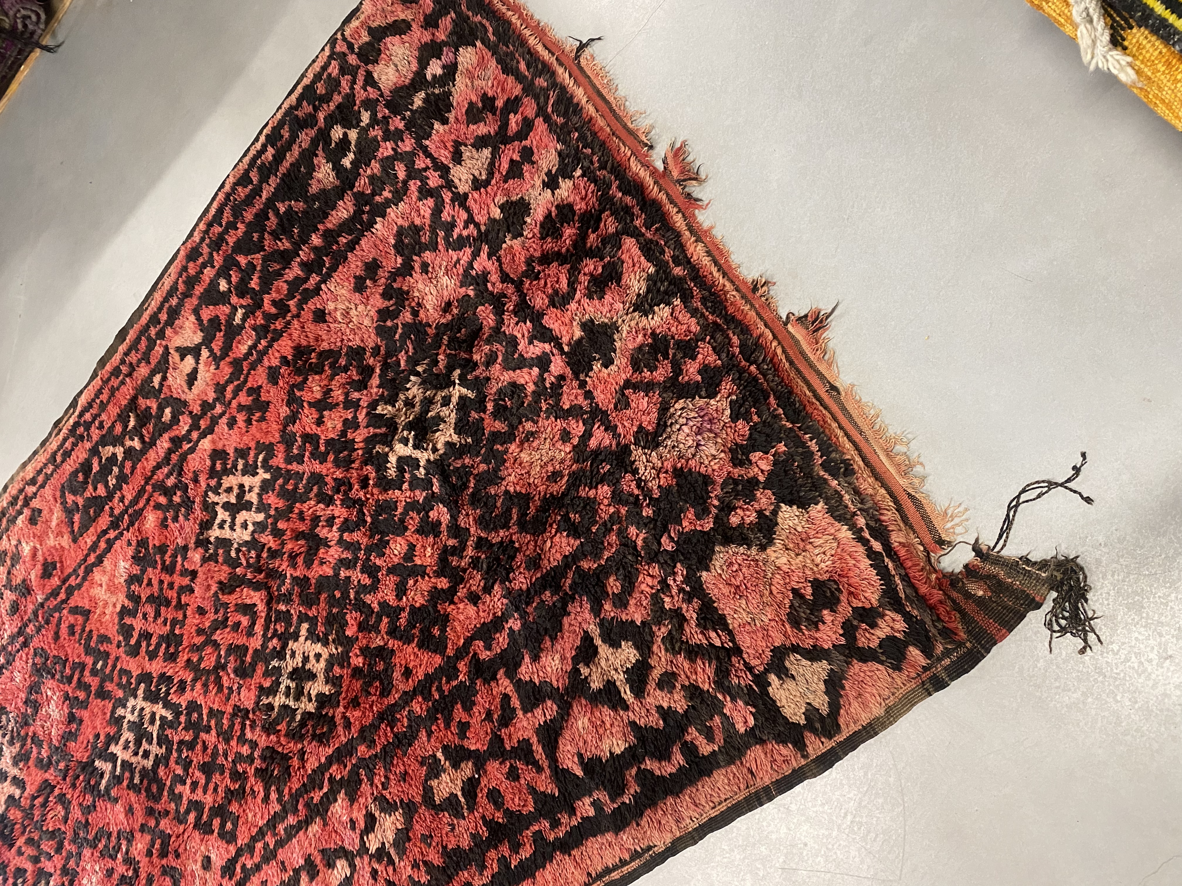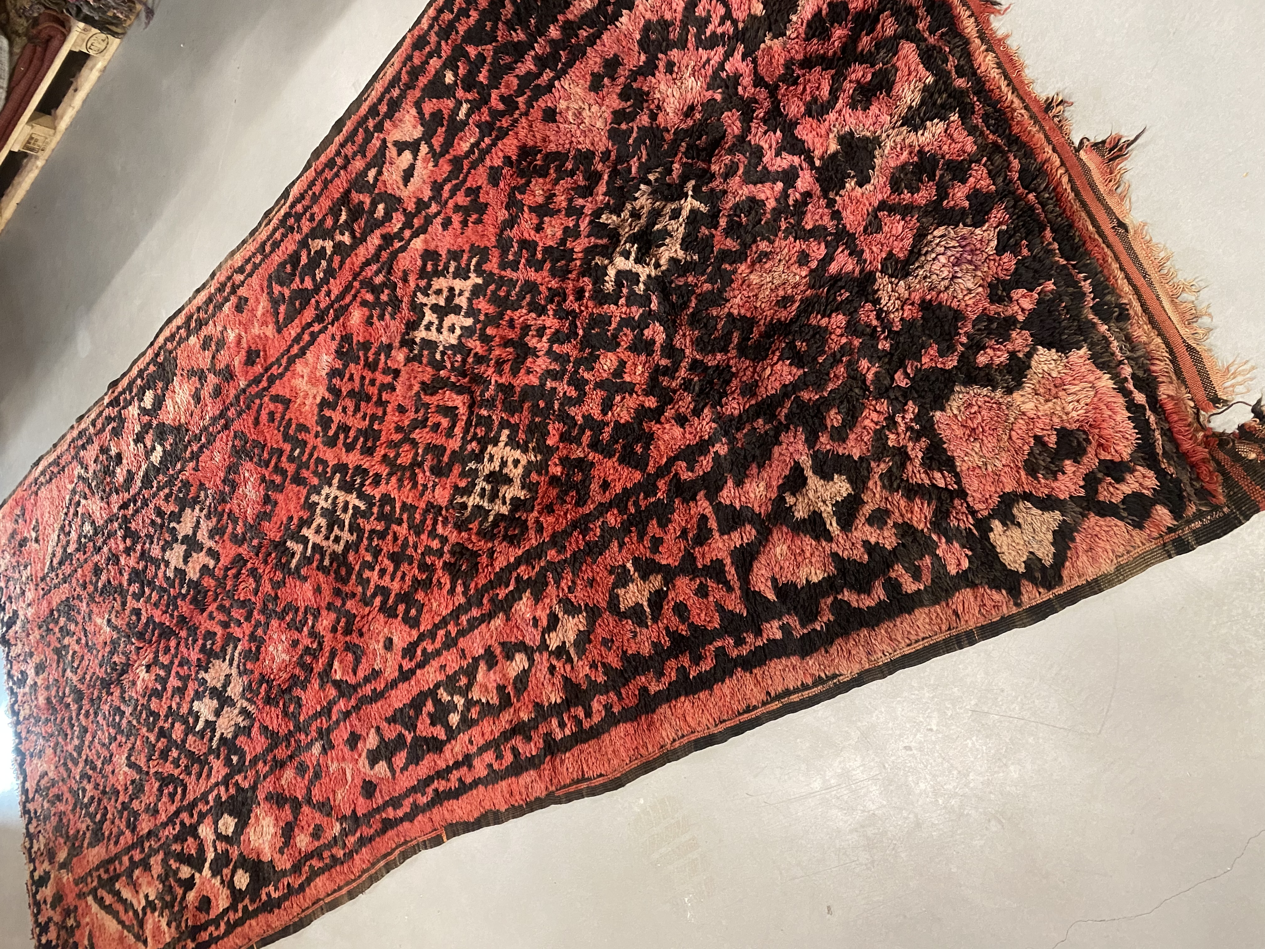 A common theme with Beni Mguild rugs is the darker tones, with earlier rugs dominated by Indigo Blue, but examples also include dark reds and browns as well. Those darker colors provide a stunning backdrop for the design, and they create stunning and interesting effects through the natural ageing process. Our vintage range are carefully sourced to identify genuine, naturally aged rugs that have the character and patina that makes each a unique work of art in its own right. Whatever your interior space, those darker colors and inventive use of shapes along with the beautiful Berber craftsmanship, create a superb piece of art that will be a conversation starter for everyone who sees it. The Beni Mguild rugs bring so much of the weaver’s character and passion for Berber craft with them, giving any interior space a flavor of Morocco and a reminder of the rich history that represents. The colors and design may vary from piece to piece, but the pure wool, hand knotted construction, crafted by weavers using skills passed down to them through the tribe for generations, is always there. Each rug is a celebration of the skills of the women who made them, their creativity shines in the design, and that is the reason these rugs are so sought after. Nothing compares to a truly hand-crafted rug, with our Beni Mguild range offering a broad range of styles, colors and ages to suit every taste and interior space.