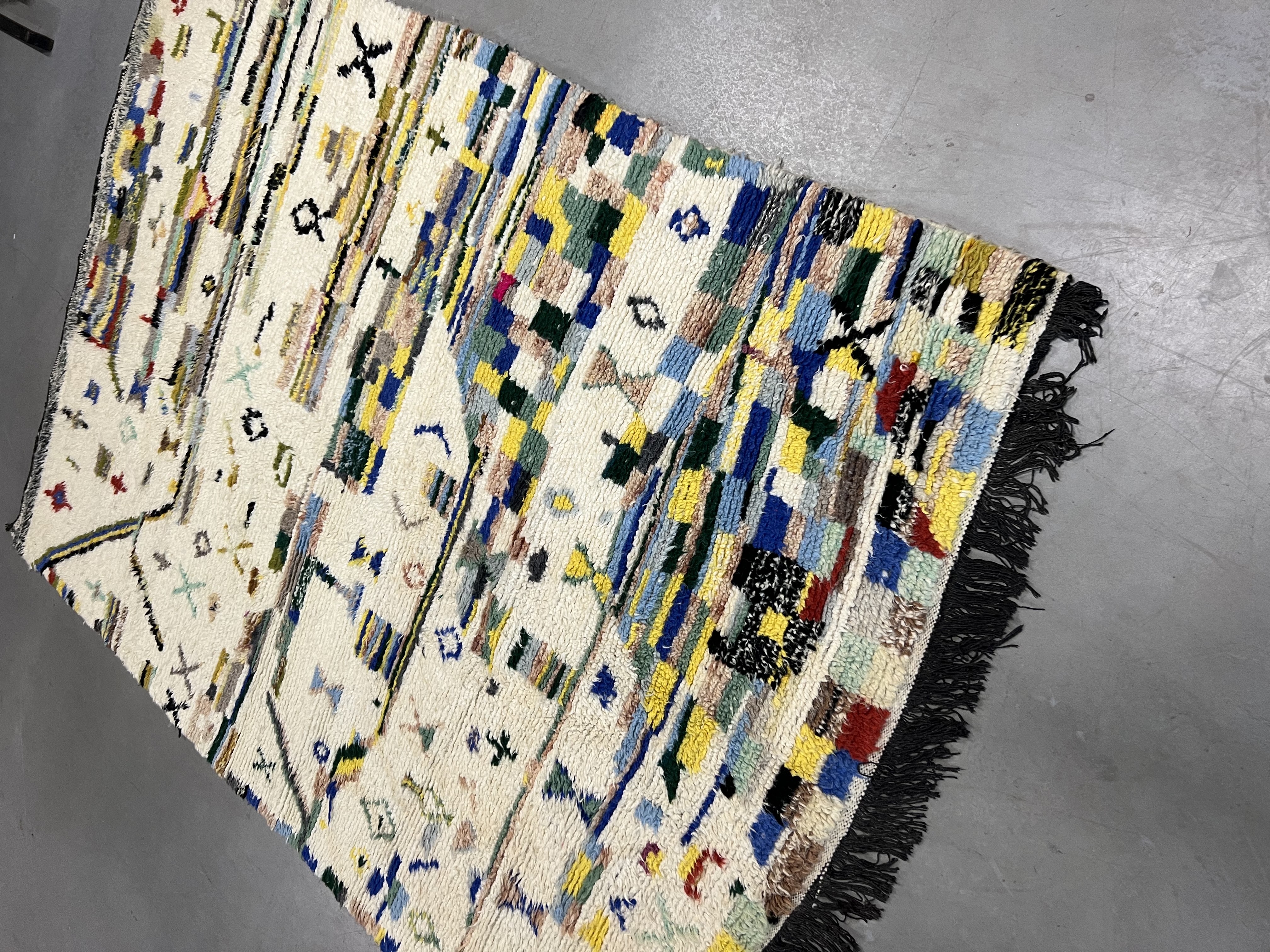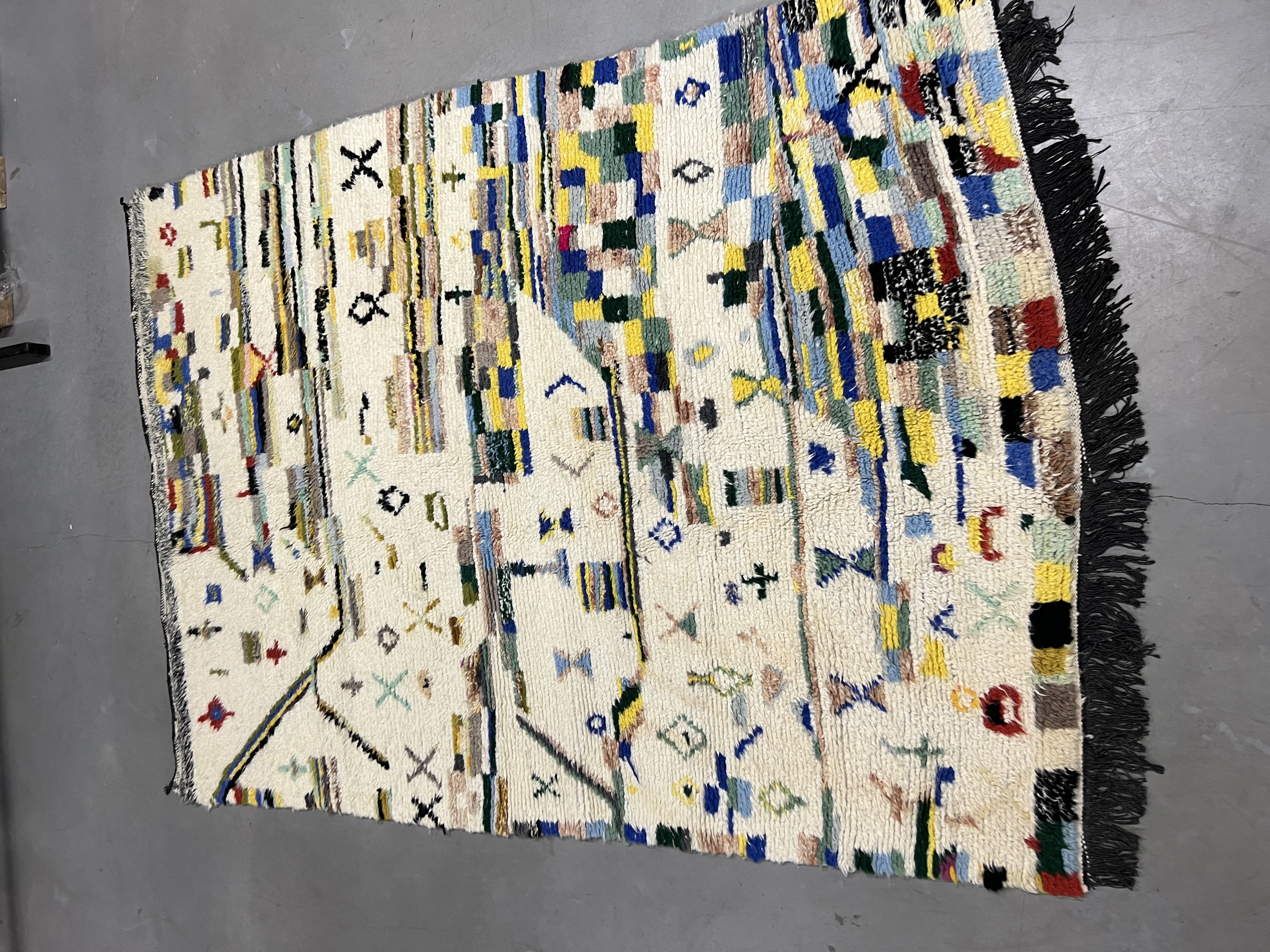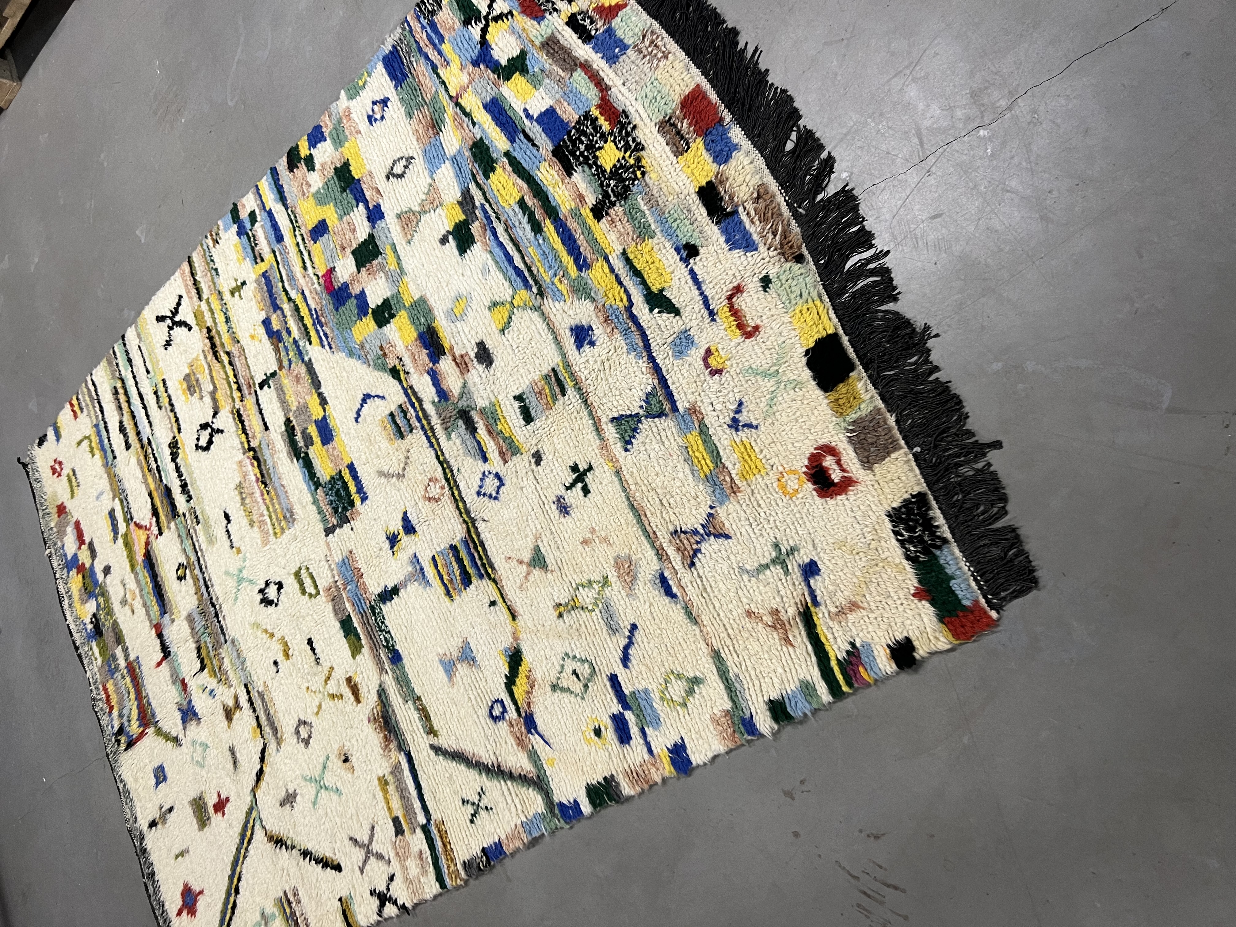 Named after the region of the same name, which reaches from the foothills of Middle Atlas to the Northern slopes of High Atlas, they are some of the most heavily decorated of Moroccan carpets, featuring beautiful color and designs that range from the geometrical or tribal through to images and symbols that can be traced back to the Berber’s unique written language. This gives a unique appearance that blends bold, bright color and ancient imagery that seems to come from another time, as much art as it is a practical rug.