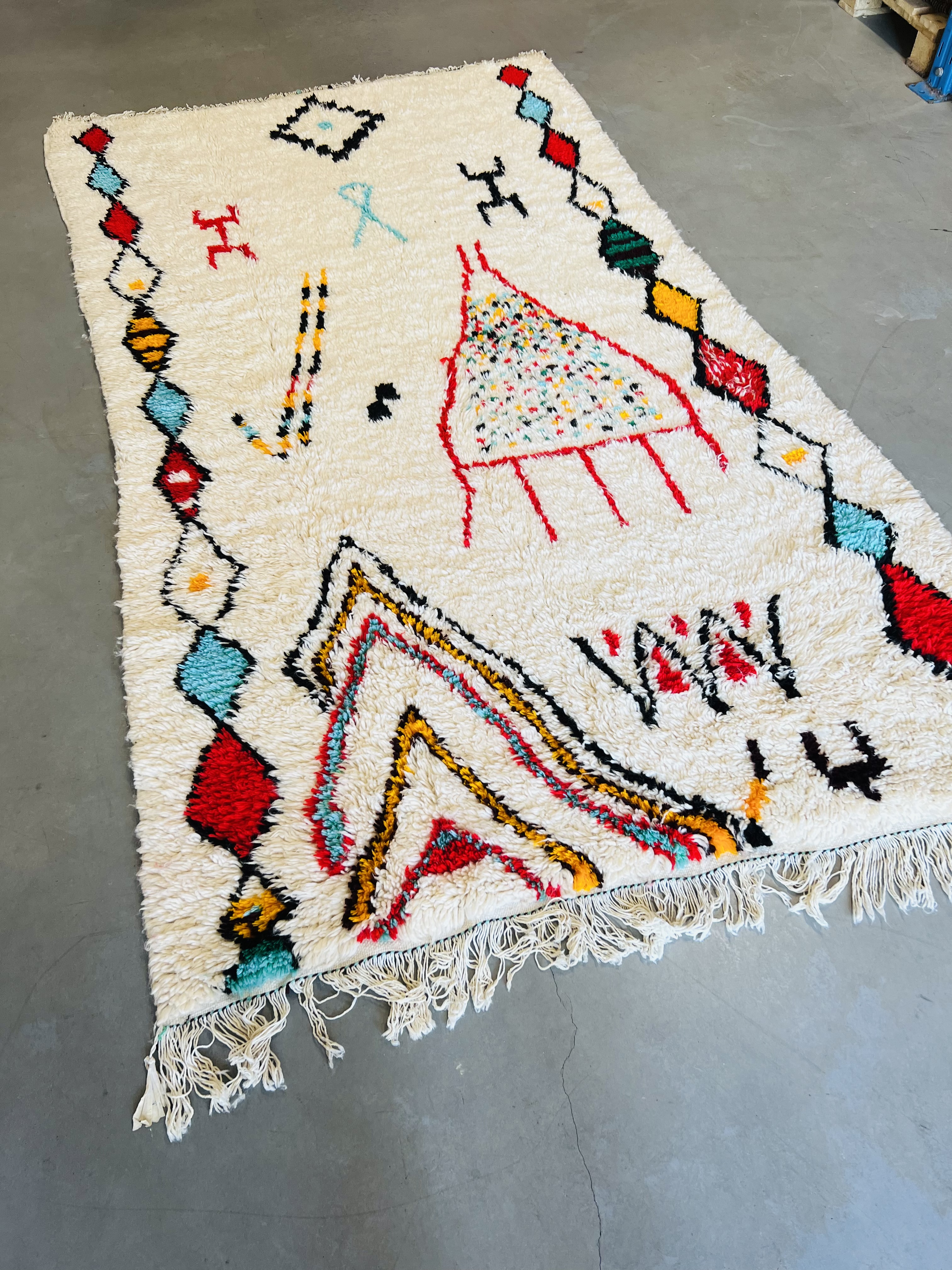 Named after the region of the same name, which reaches from the foothills of Middle Atlas to the Northern slopes of High Atlas, they are some of the most heavily decorated of Moroccan carpets, featuring beautiful color and designs that range from the geometrical or tribal through to images and symbols that can be traced back to the Berber’s unique written language. This gives a unique appearance that blends bold, bright color and ancient imagery that seems to come from another time, as much art as it is a practical rug.
