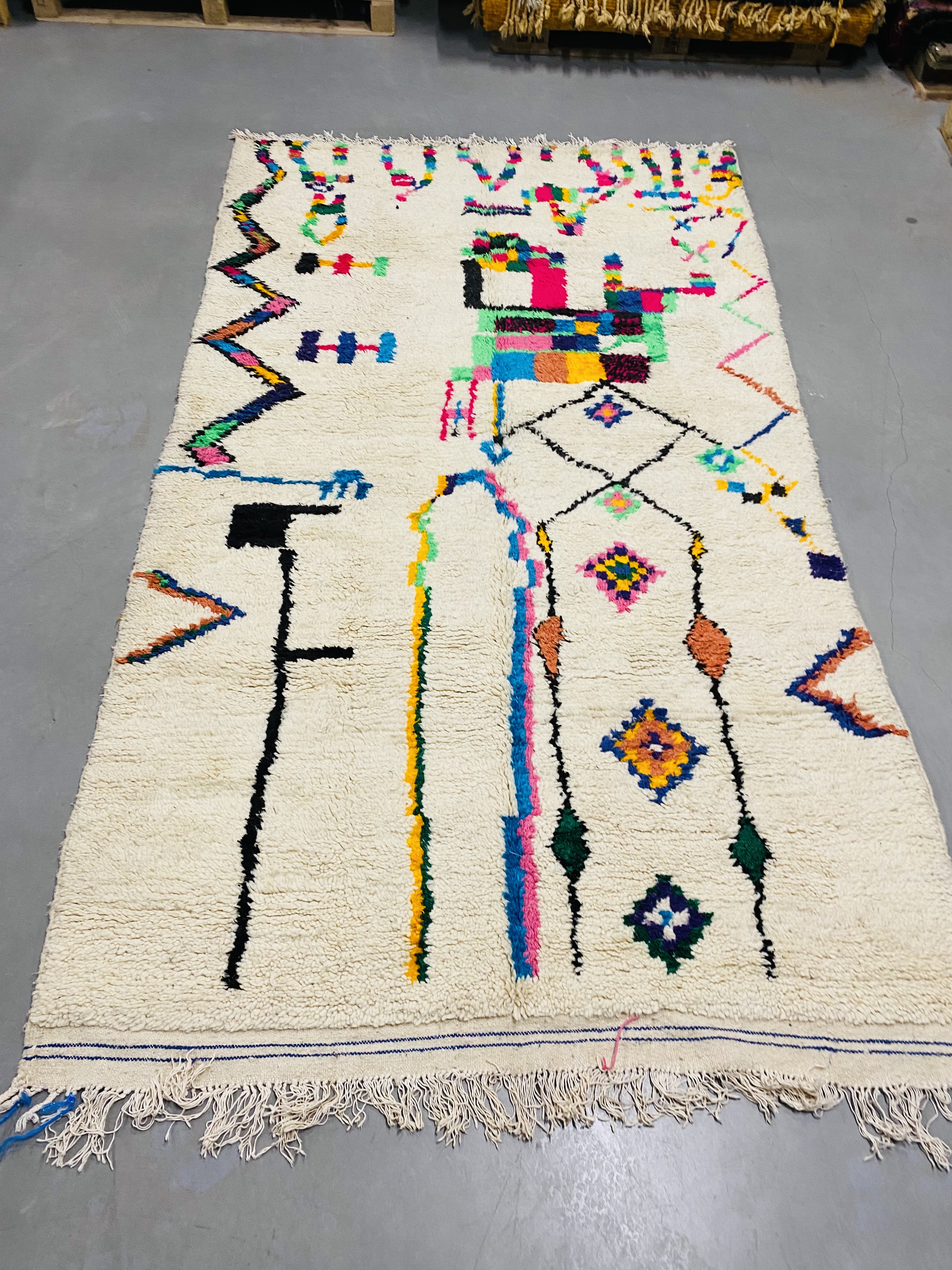 Named after the region of the same name, which reaches from the foothills of Middle Atlas to the Northern slopes of High Atlas, they are some of the most heavily decorated of Moroccan carpets, featuring beautiful color and designs that range from the geometrical or tribal through to images and symbols that can be traced back to the Berber’s unique written language. This gives a unique appearance that blends bold, bright color and ancient imagery that seems to come from another time, as much art as it is a practical rug.