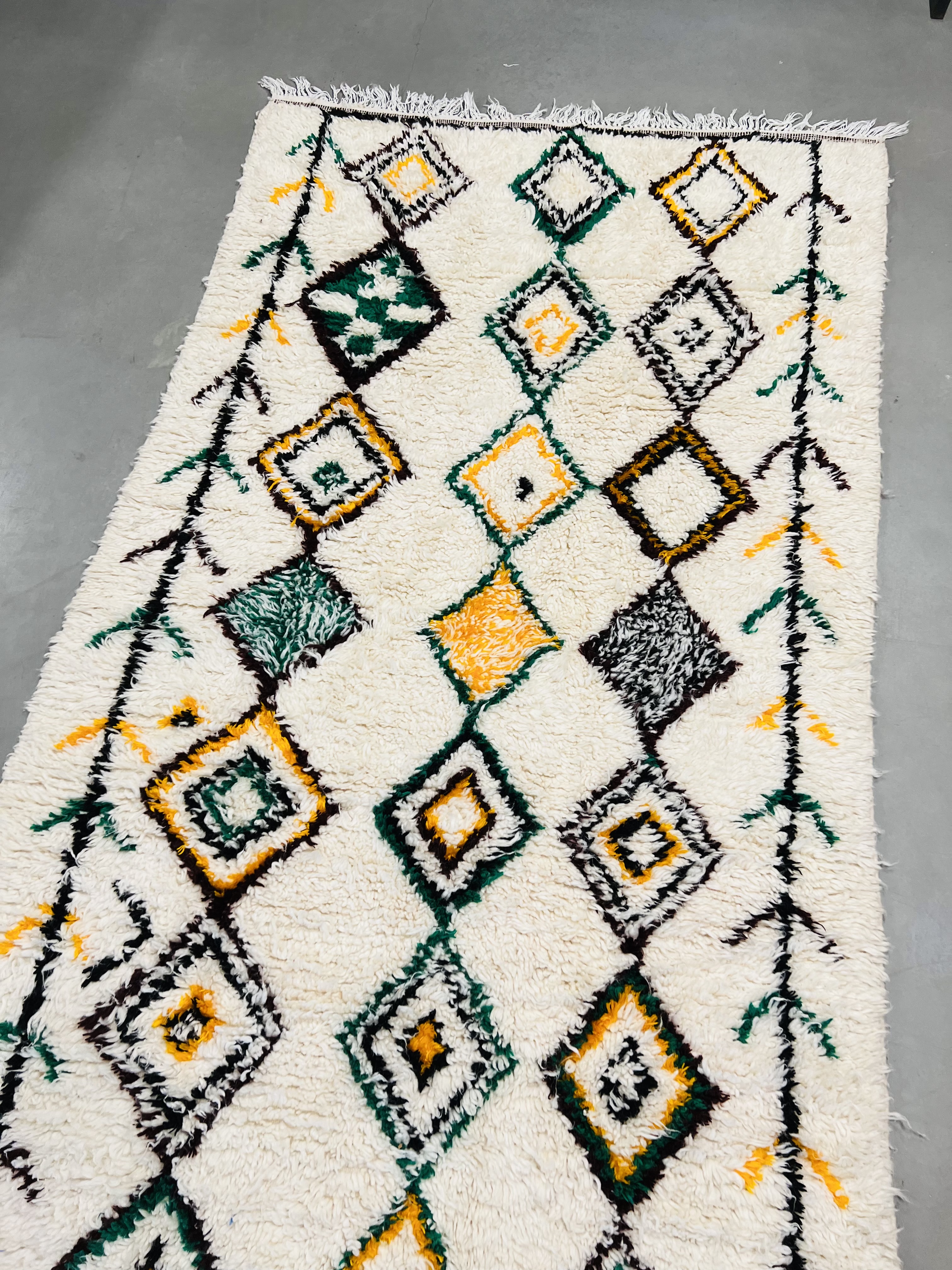 Named after the region of the same name, which reaches from the foothills of Middle Atlas to the Northern slopes of High Atlas, they are some of the most heavily decorated of Moroccan carpets, featuring beautiful color and designs that range from the geometrical or tribal through to images and symbols that can be traced back to the Berber’s unique written language. This gives a unique appearance that blends bold, bright color and ancient imagery that seems to come from another time, as much art as it is a practical rug.