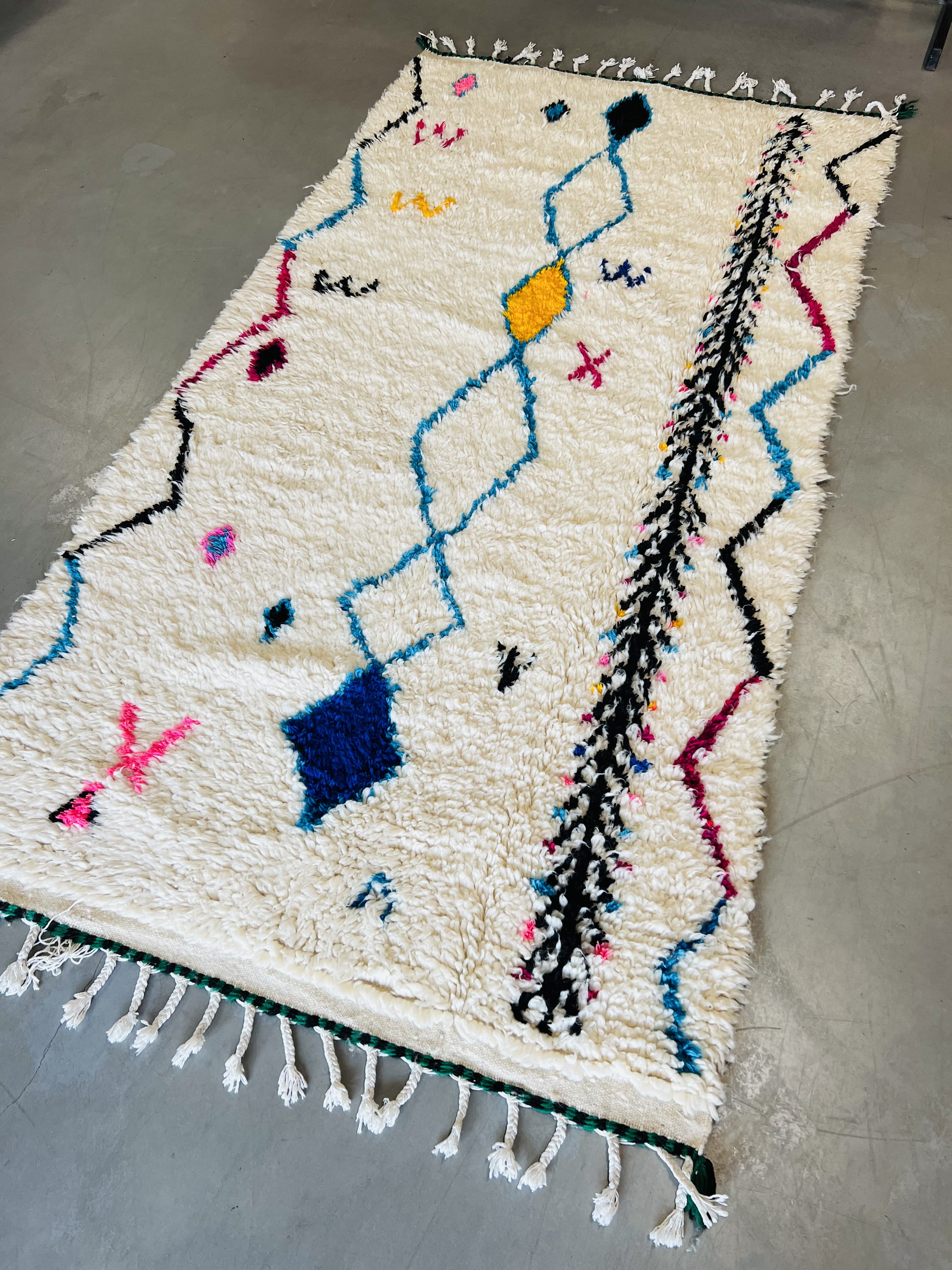 Named after the region of the same name, which reaches from the foothills of Middle Atlas to the Northern slopes of High Atlas, they are some of the most heavily decorated of Moroccan carpets, featuring beautiful color and designs that range from the geometrical or tribal through to images and symbols that can be traced back to the Berber’s unique written language. This gives a unique appearance that blends bold, bright color and ancient imagery that seems to come from another time, as much art as it is a practical rug.