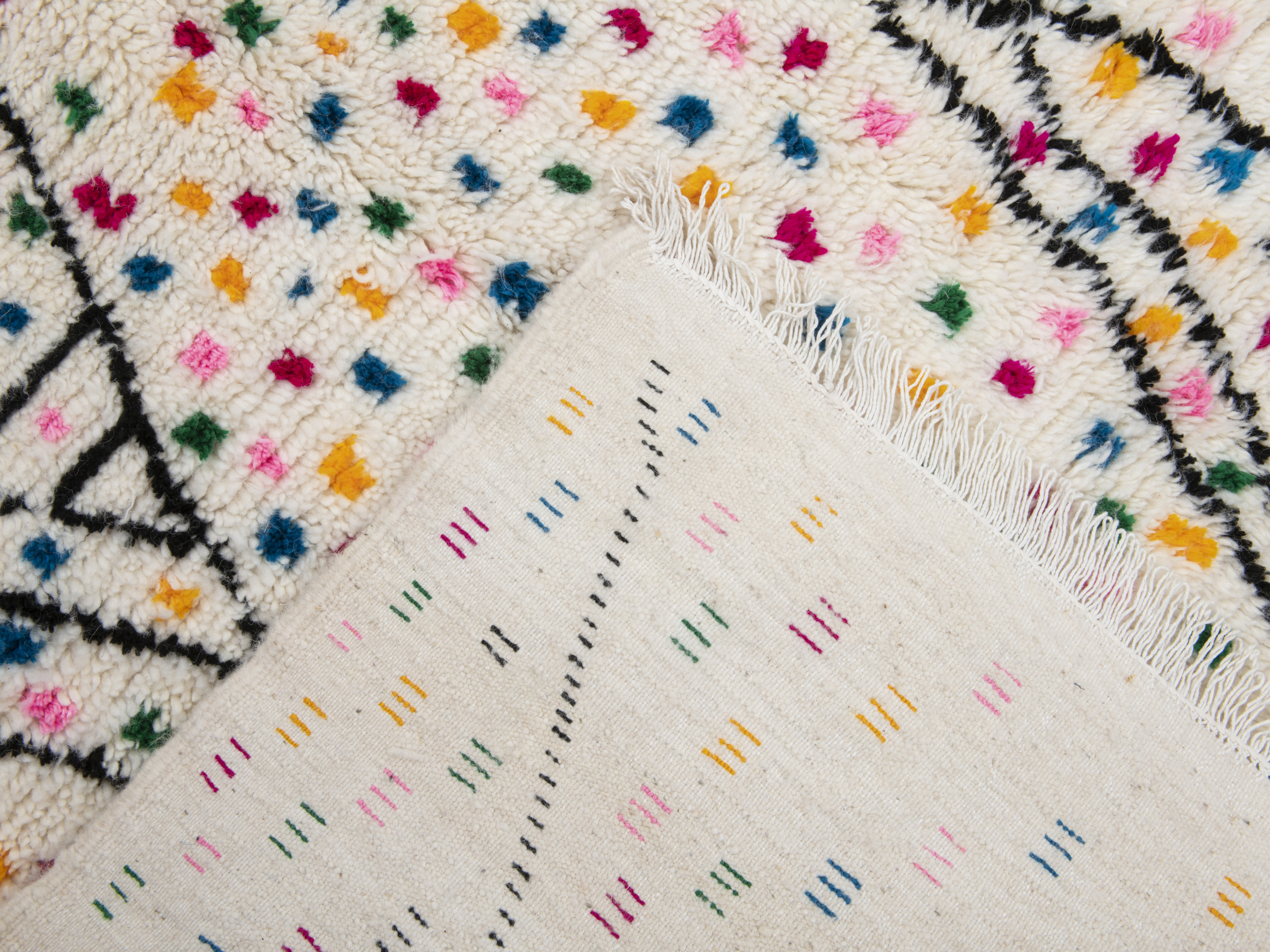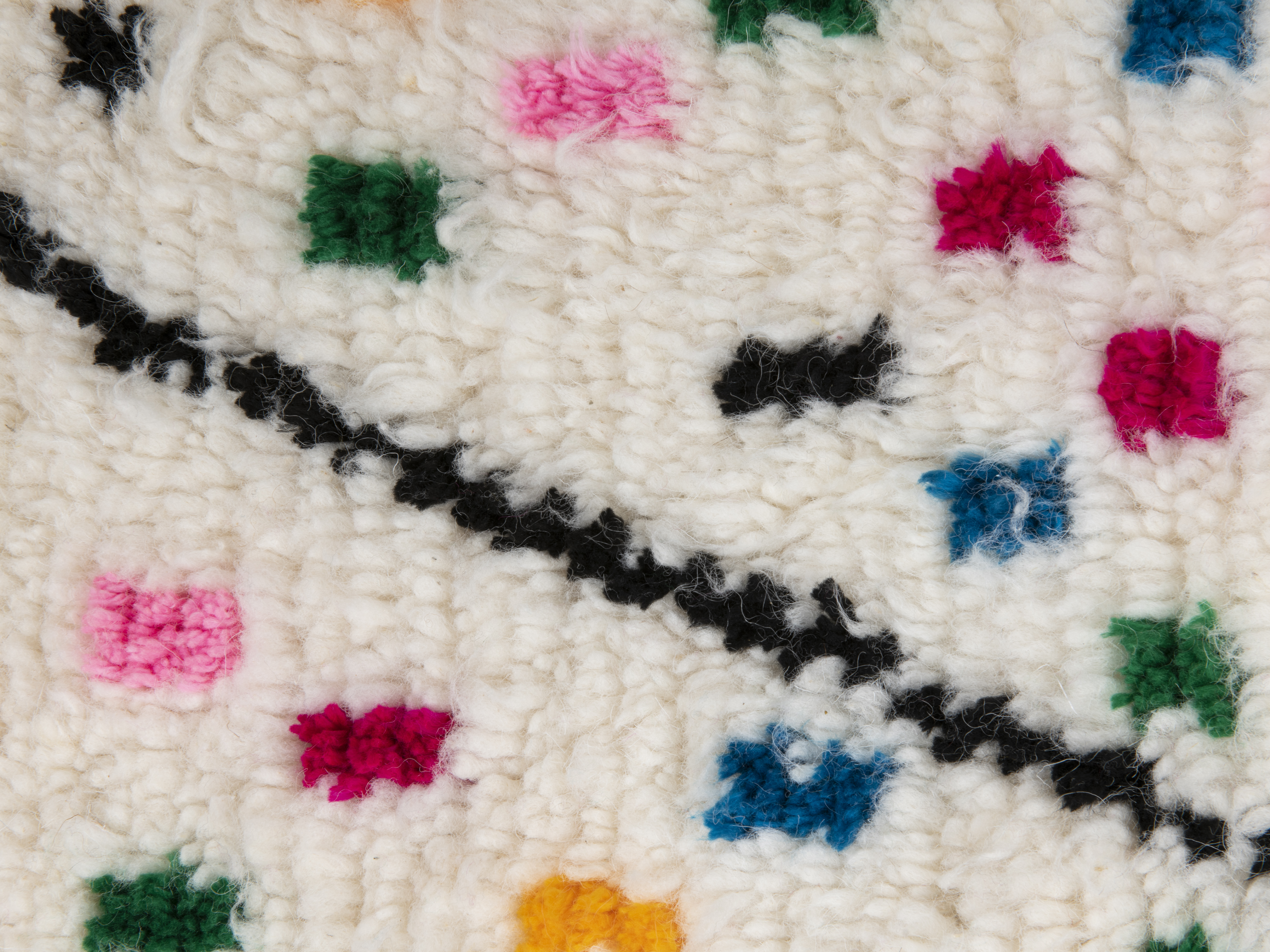 Each rug has the same luxurious feel you can only find with genuine, 100% natural wool, and all are hand knotted on vertical looms by craftswomen following the traditional Berber methods for quality and superb durability. Genuine construction from genuine artisans in Azilal, whatever rug you choose, a piece of Moroccan history comes with it and into your home. Beautiful to look at and a joy to own, they have a tactile quality that is unique to the Berber craft, giving you a wonderful, unique object of astounding beauty for your home.