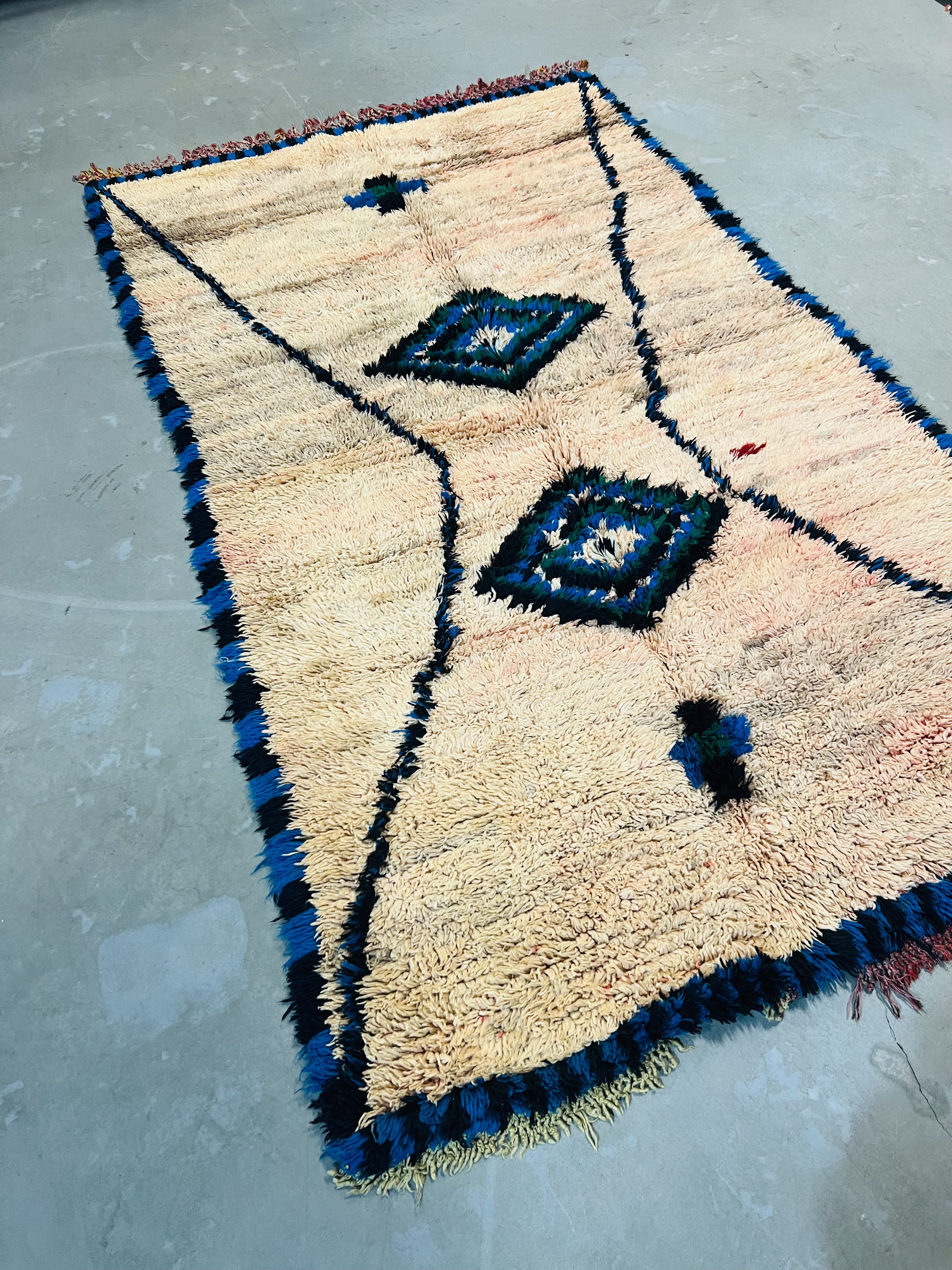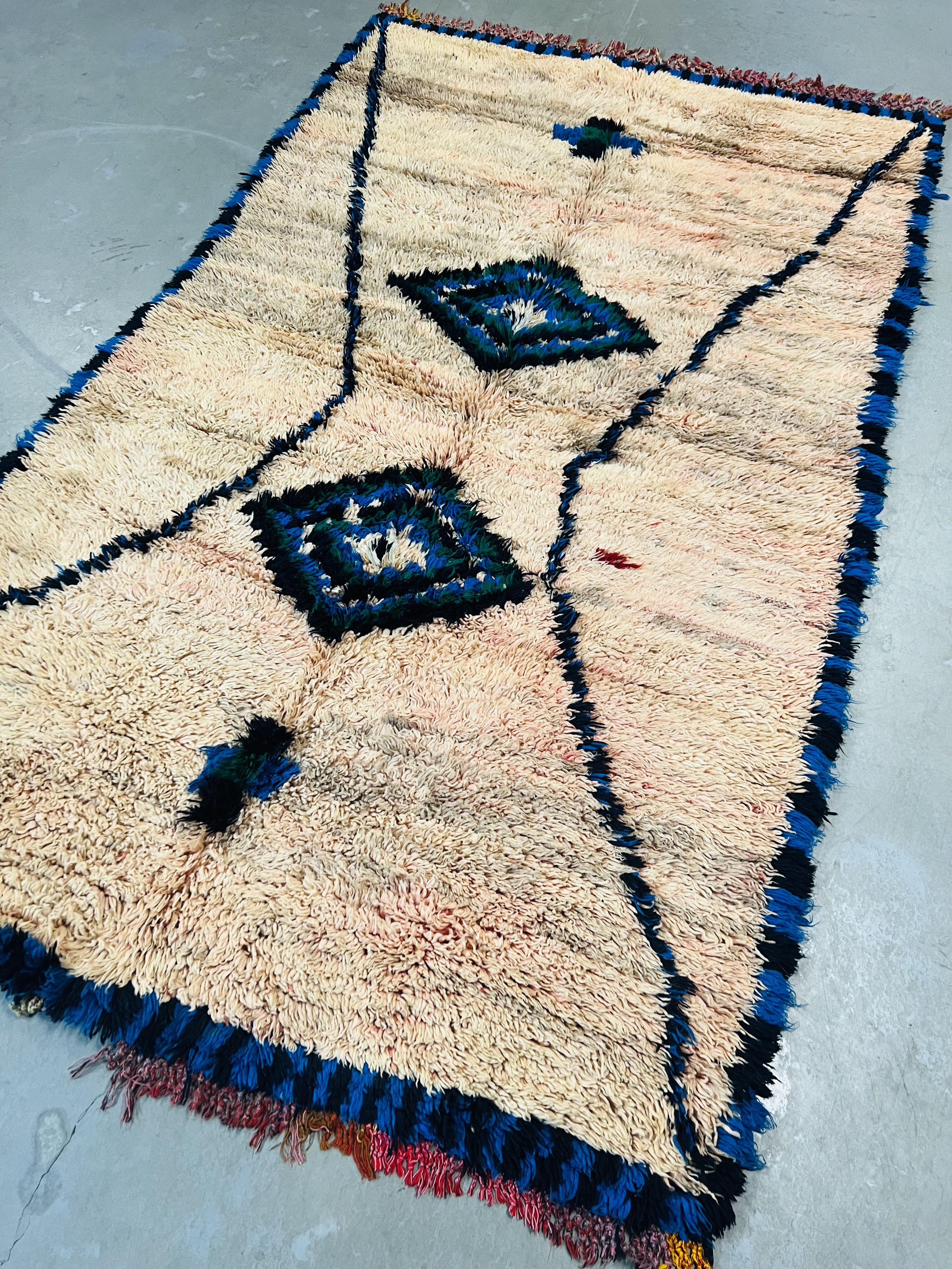 Named after the region of the same name, which reaches from the foothills of Middle Atlas to the Northern slopes of High Atlas, they are some of the most heavily decorated of Moroccan carpets, featuring beautiful color and designs that range from the geometrical or tribal through to images and symbols that can be traced back to the Berber’s unique written language. This gives a unique appearance that blends bold, bright color and ancient imagery that seems to come from another time, as much art as it is a practical rug.