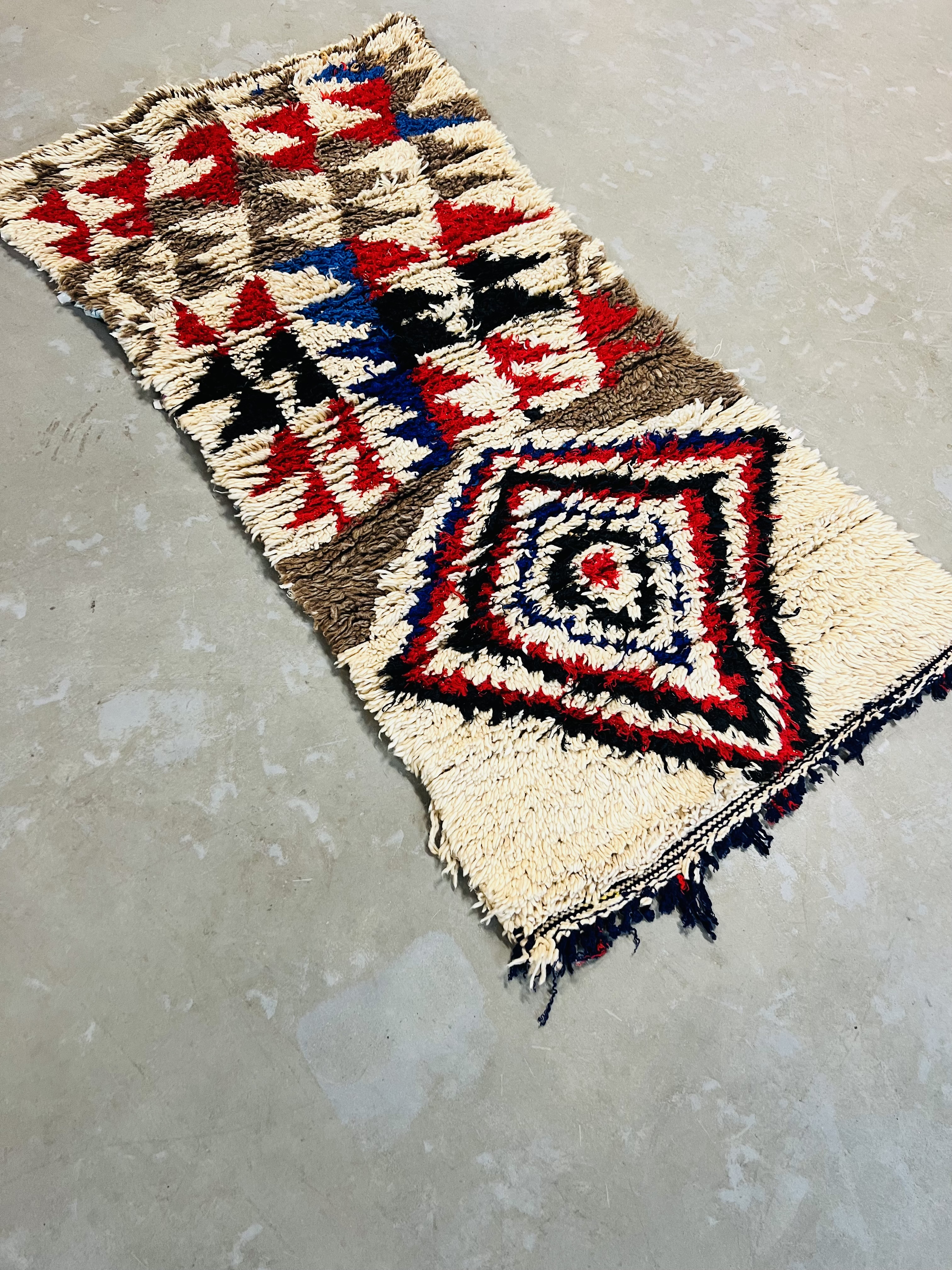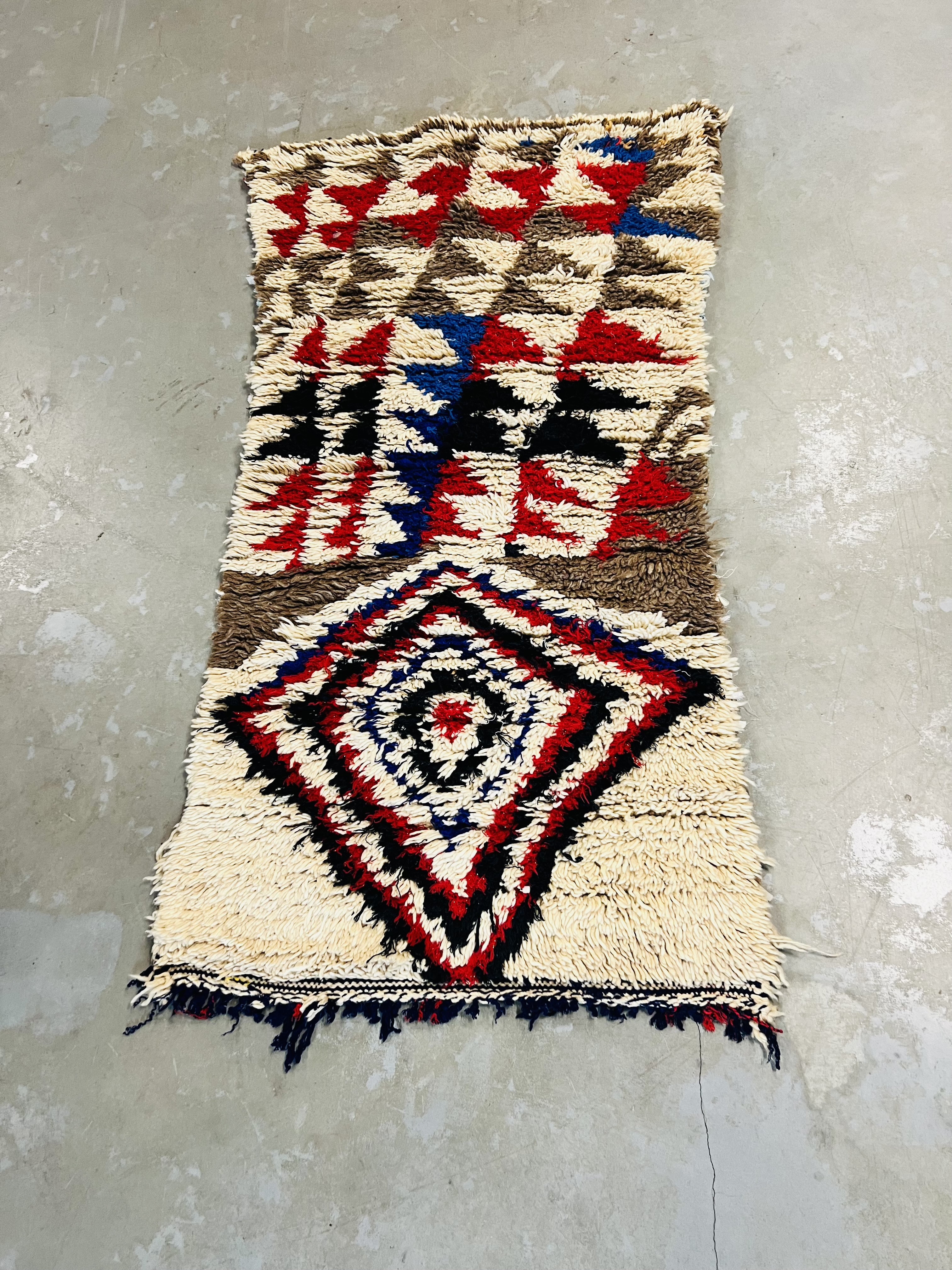 Named after the region of the same name, which reaches from the foothills of Middle Atlas to the Northern slopes of High Atlas, they are some of the most heavily decorated of Moroccan carpets, featuring beautiful color and designs that range from the geometrical or tribal through to images and symbols that can be traced back to the Berber’s unique written language. This gives a unique appearance that blends bold, bright color and ancient imagery that seems to come from another time, as much art as it is a practical rug.