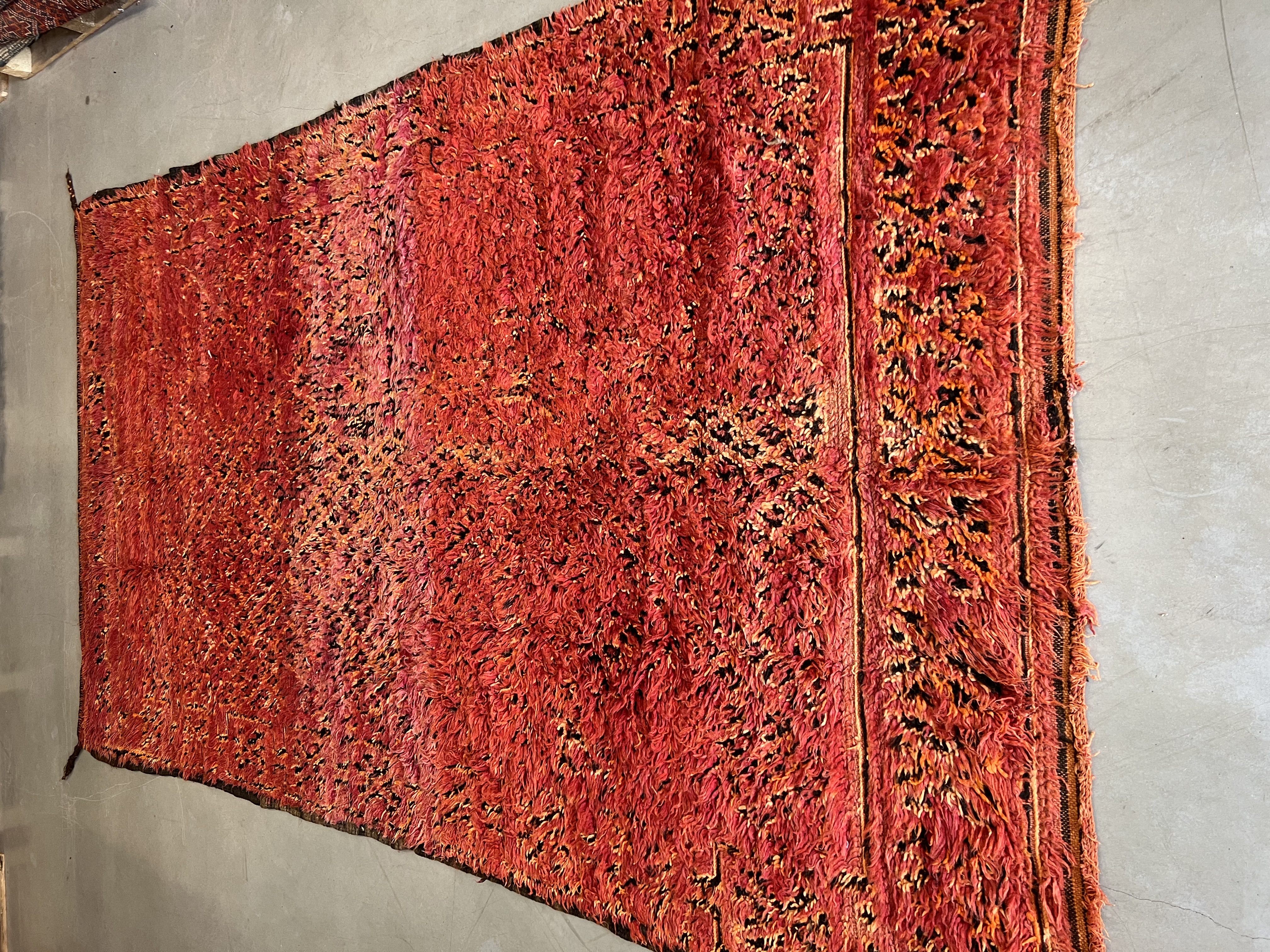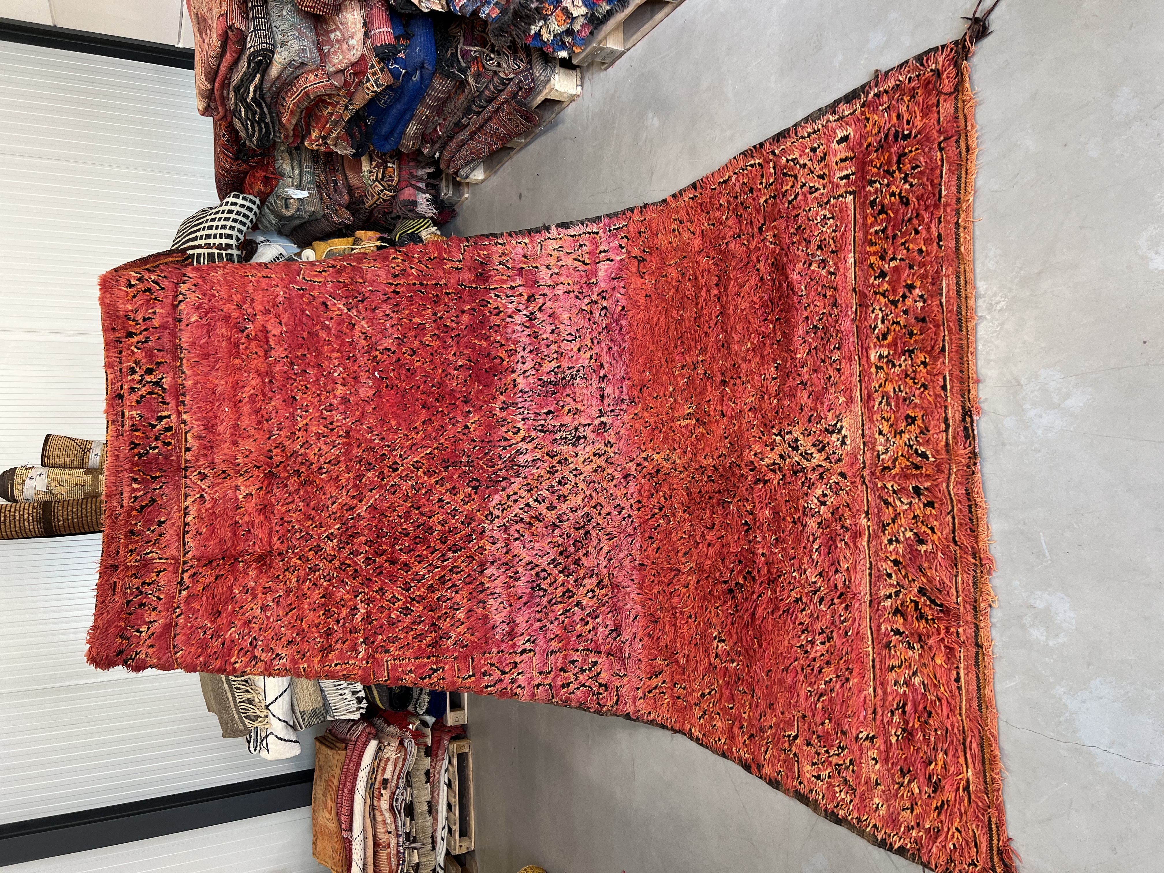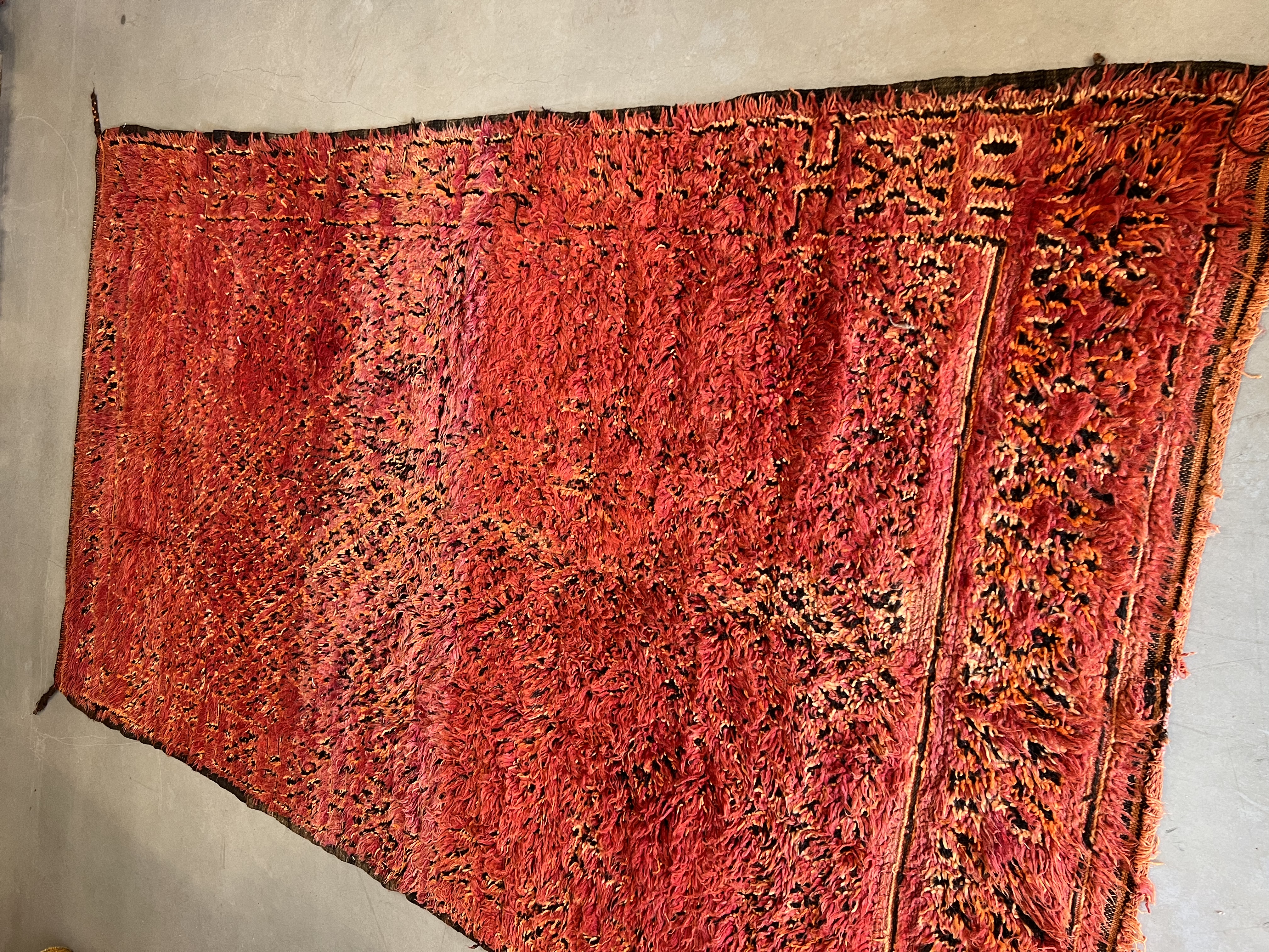 Beni Mguild rugs originate from the western central Middle Atlas region of Morocco, and as with most regions, they have their own style. The weavers in this region like to take the designs commonly found in flat weave rugs, and adapt them to their pile weave, hand knotted creations. This creates bold, flowing imagery that captures the joyous character of the weaver herself.