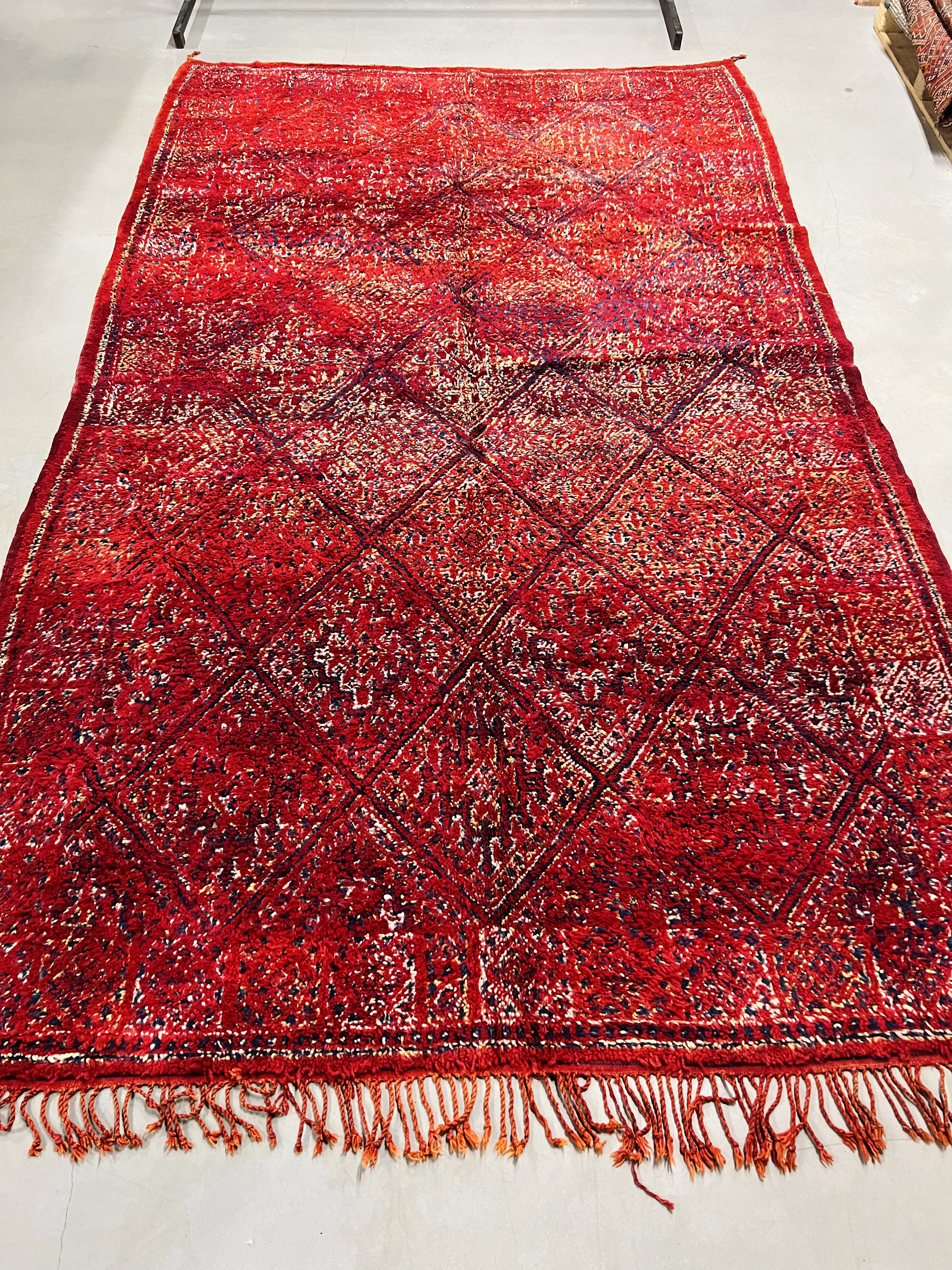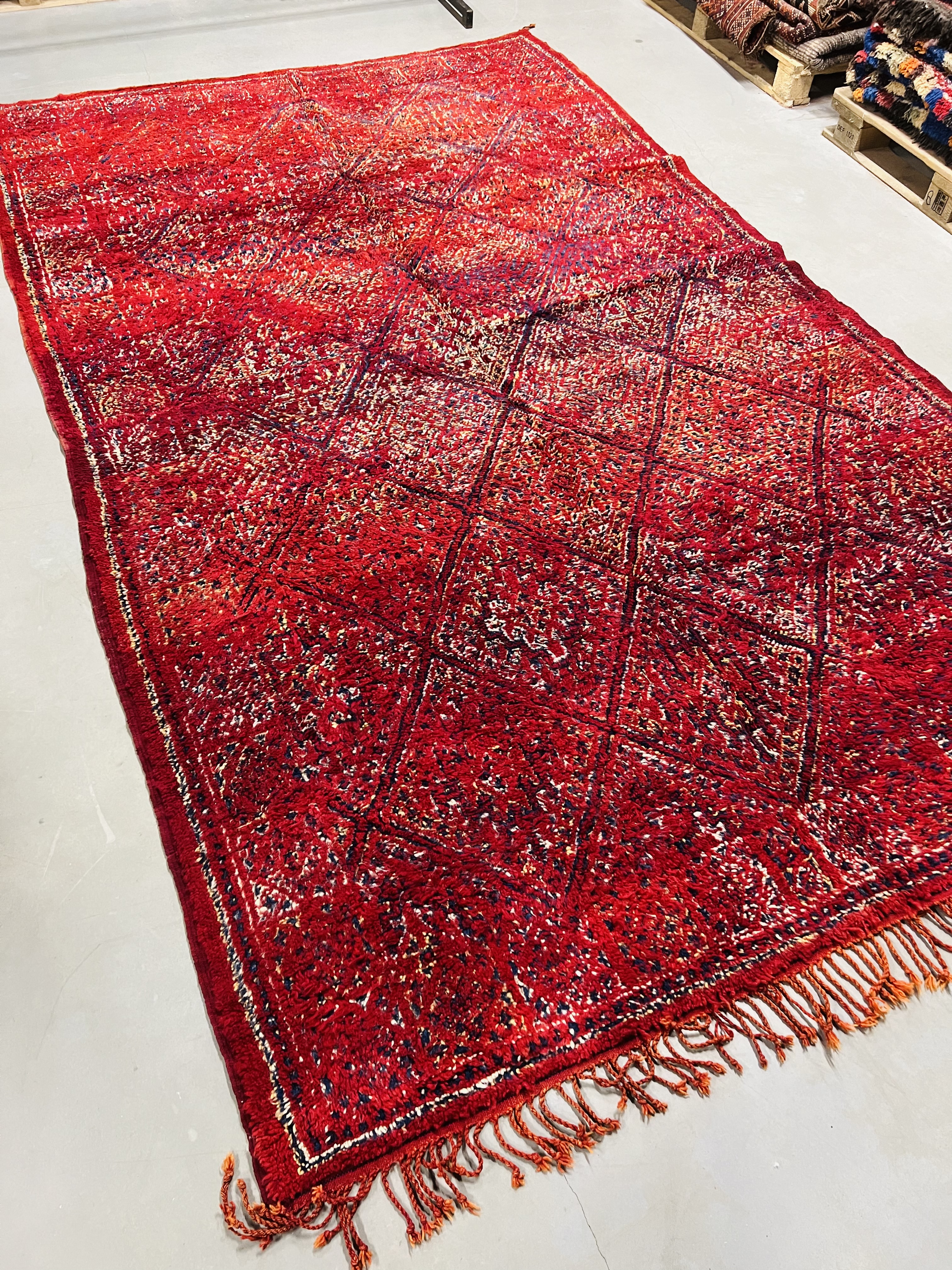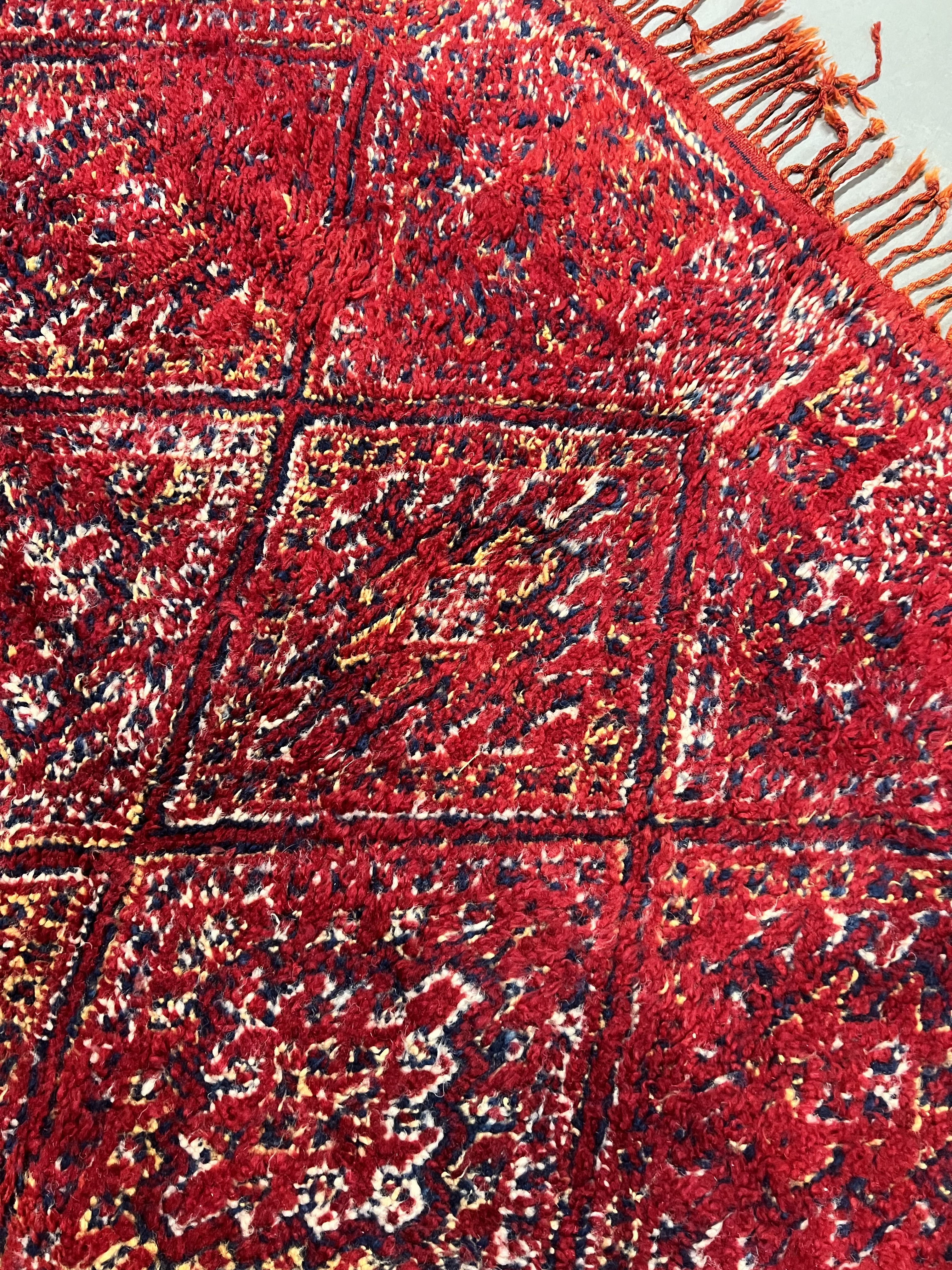 The Beni Mguild tend to have a darker appearance with a significantly high amount of dark blue in the older rugs.