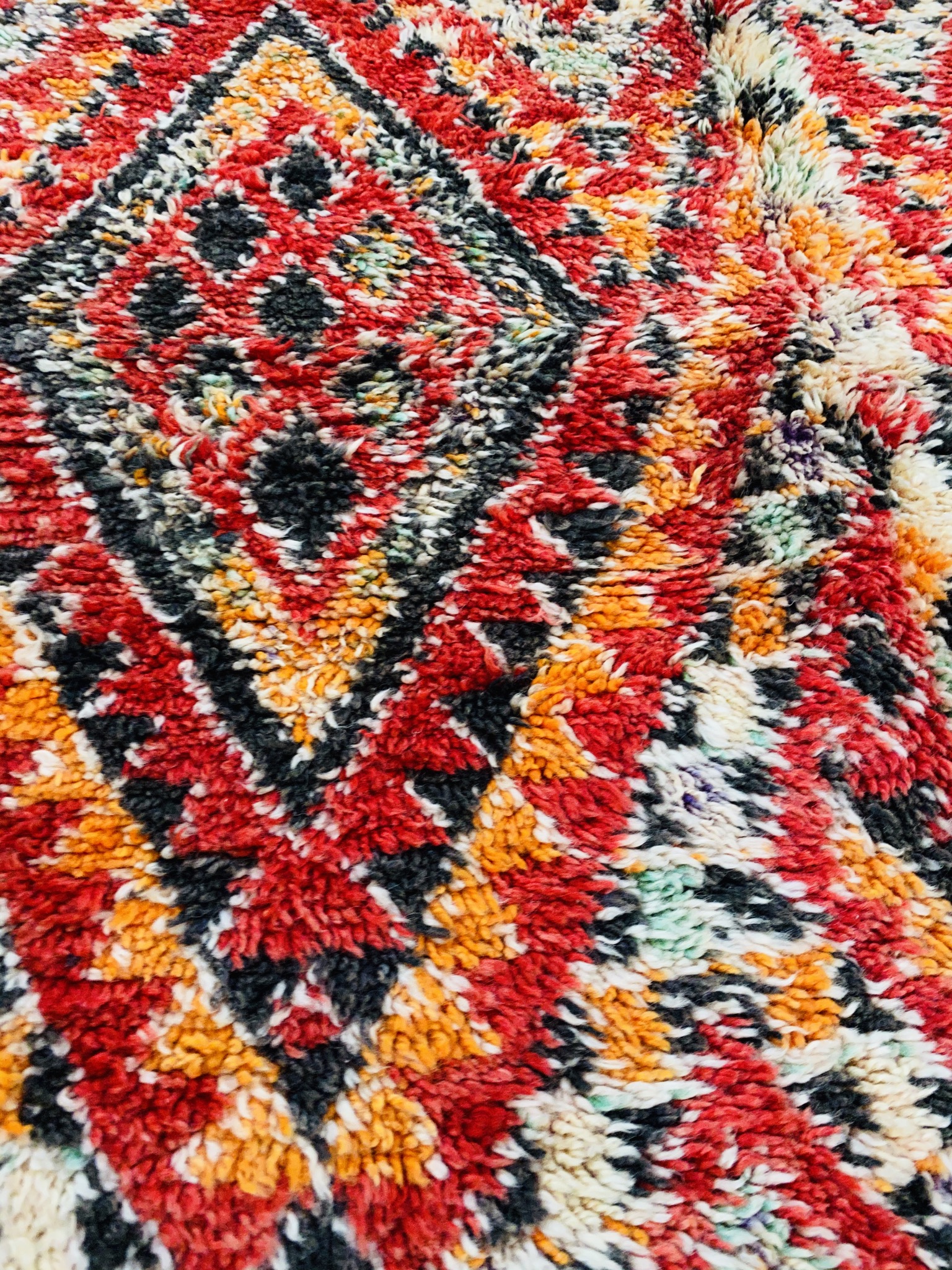 The colors and design may vary from piece to piece, but the pure wool, hand knotted construction, crafted by weavers using skills passed down to them through the tribe for generations, is always there. Each rug is a celebration of the skills of the women who made them, their creativity shines in the design, and that is the reason these rugs are so sought after.