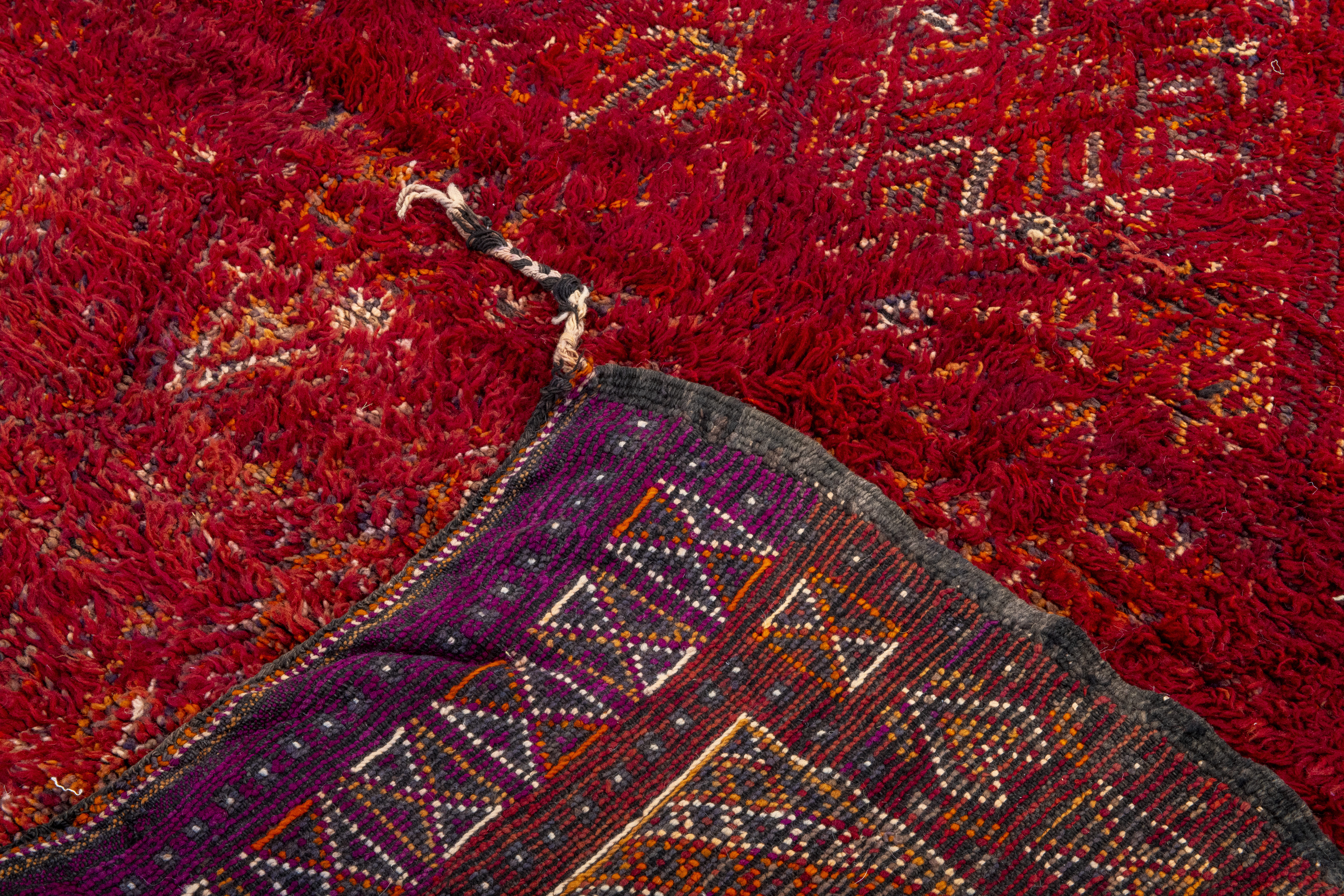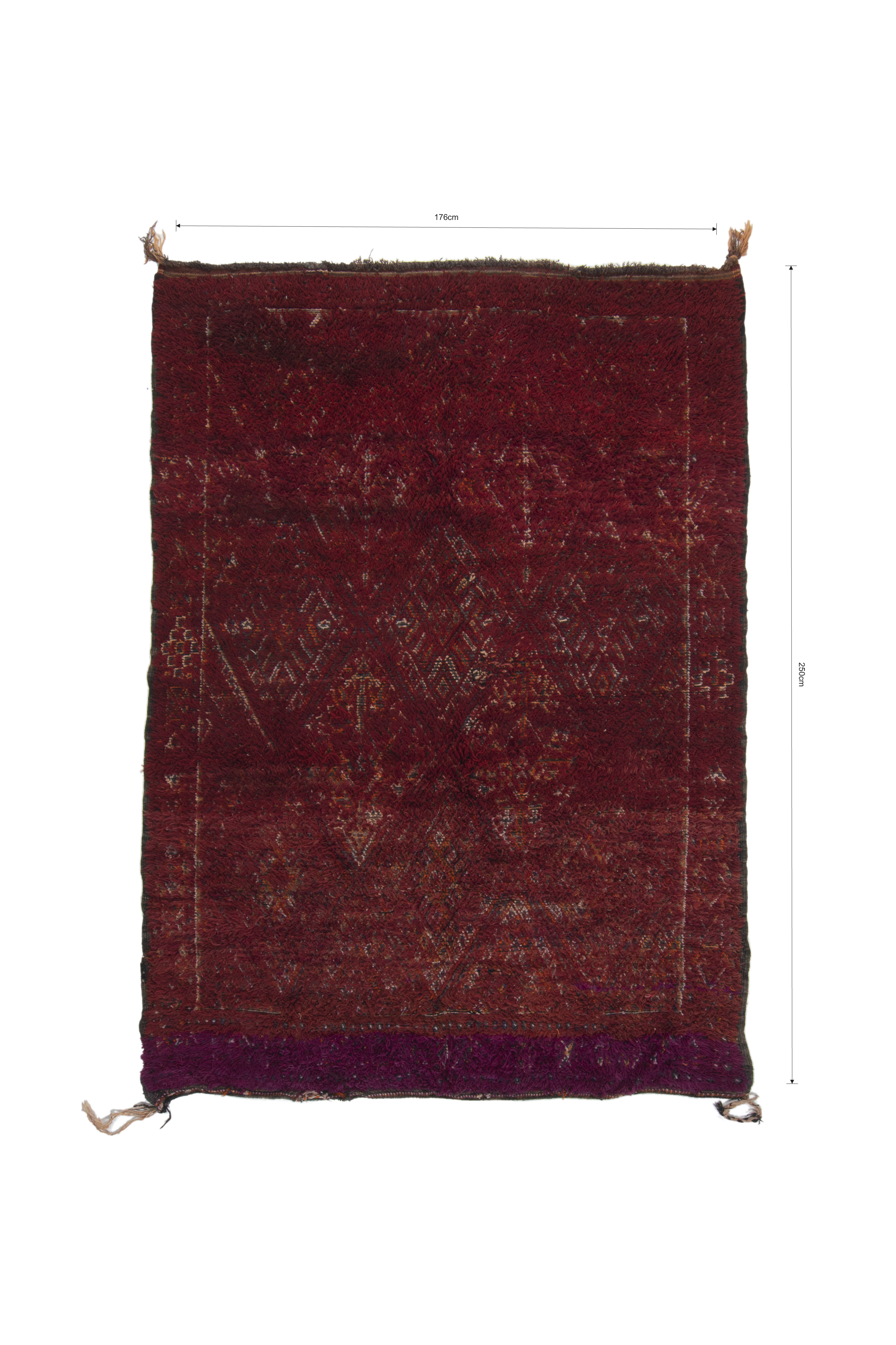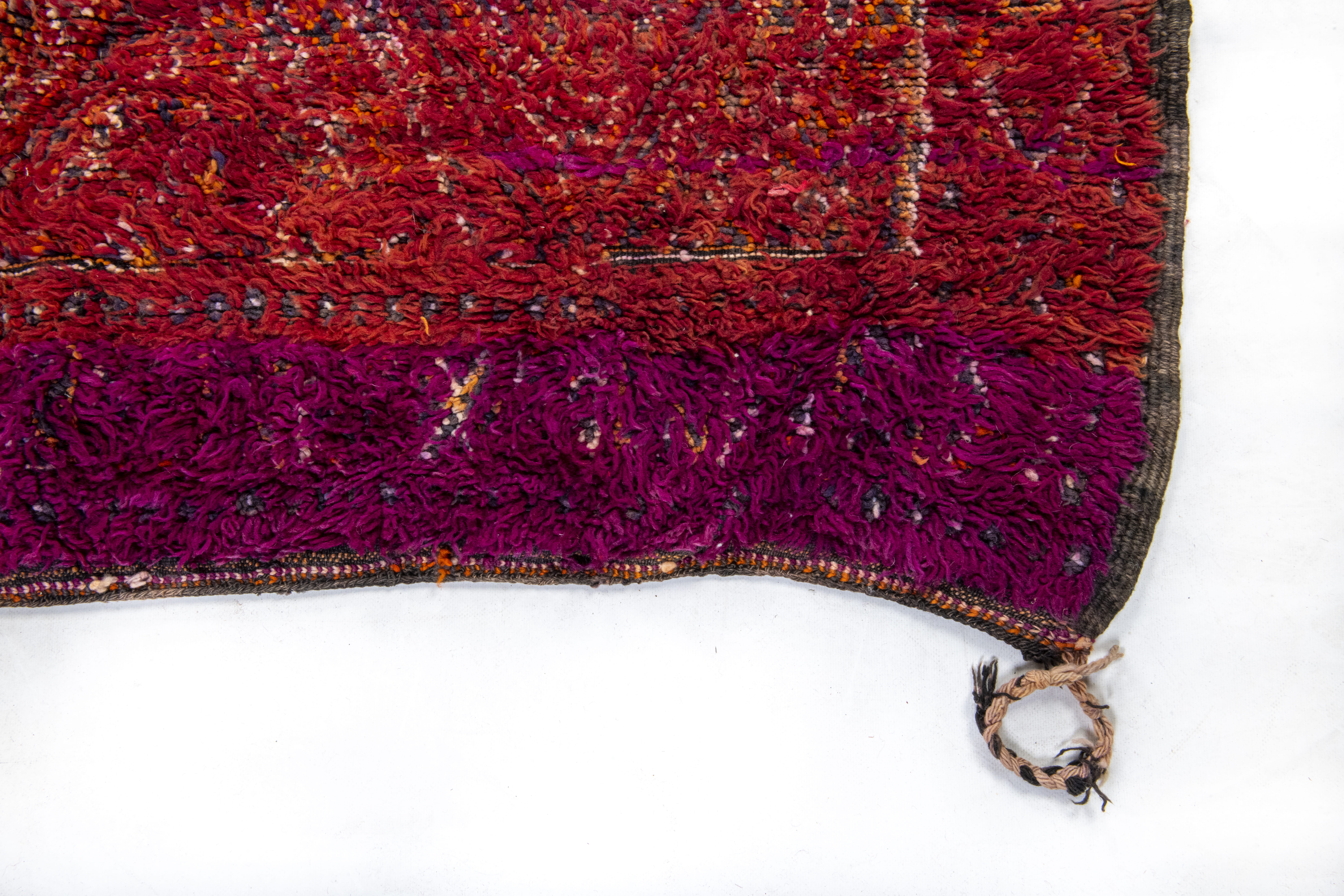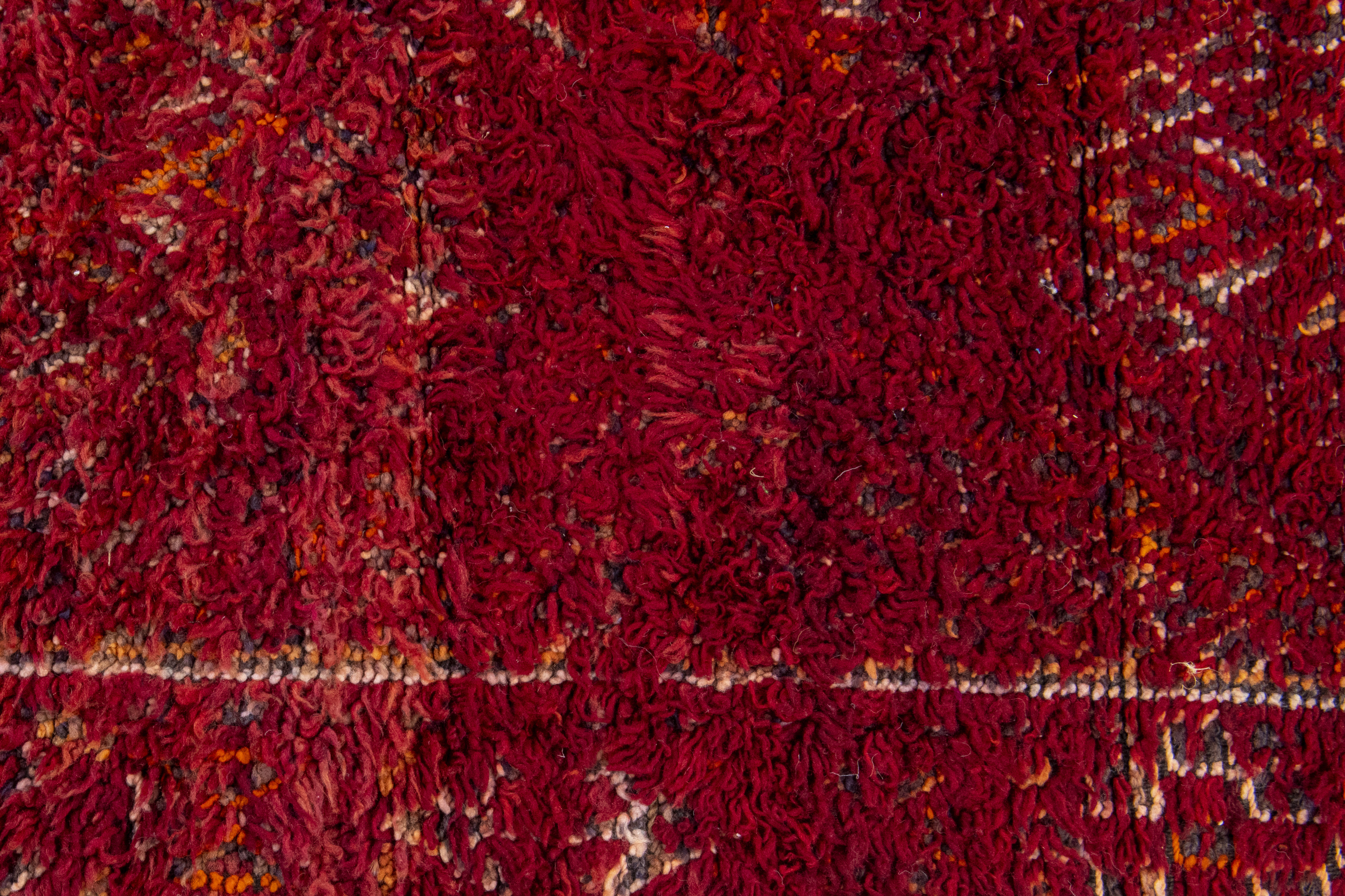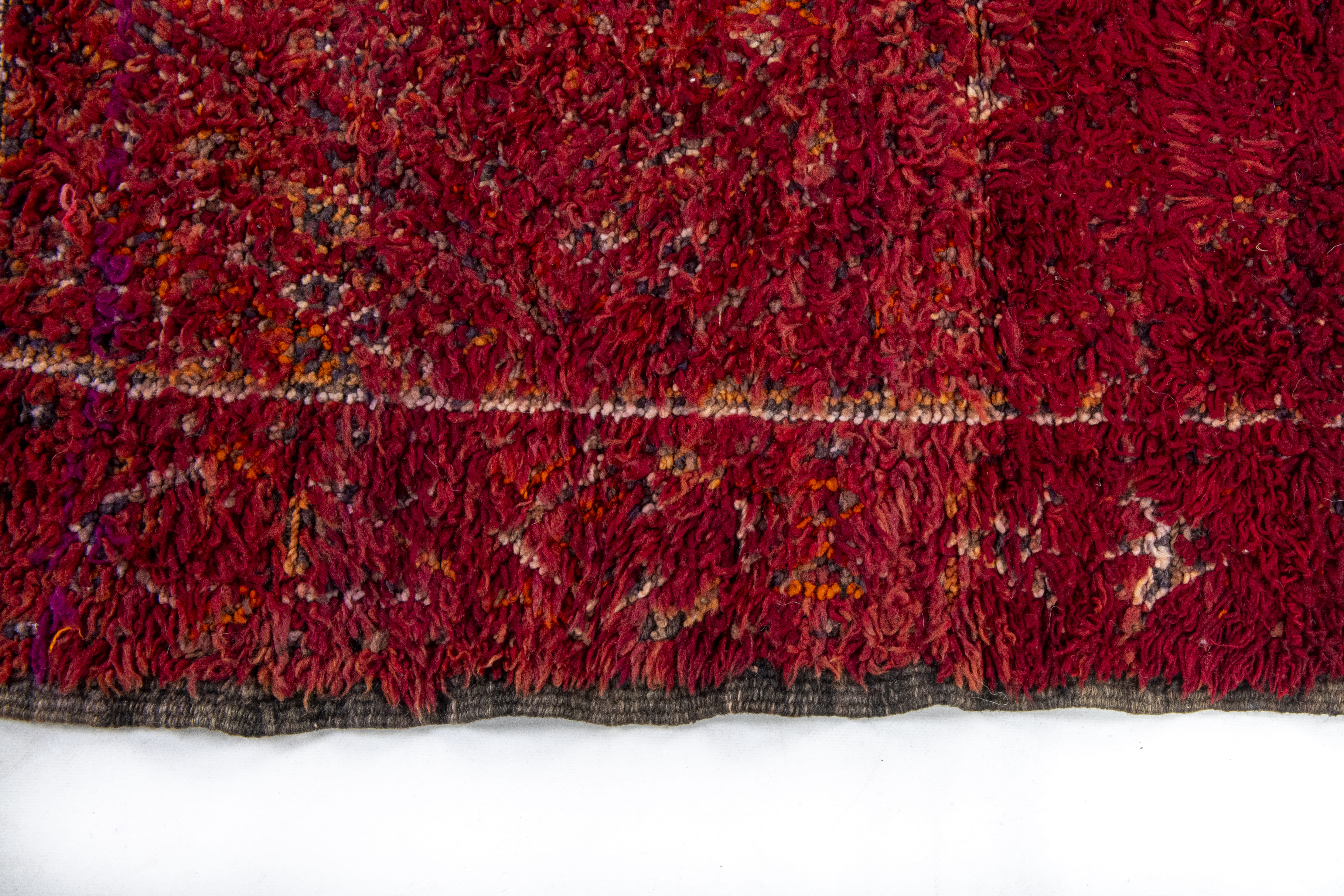 Beni Mguild rugs originate from the western central Middle Atlas region of Morocco, and as with most regions, they have their own style. The weavers in this region like to take the designs commonly found in flat weave rugs, and adapt them to their pile weave, hand knotted creations. This creates bold, flowing imagery that captures the joyous character of the weaver herself.