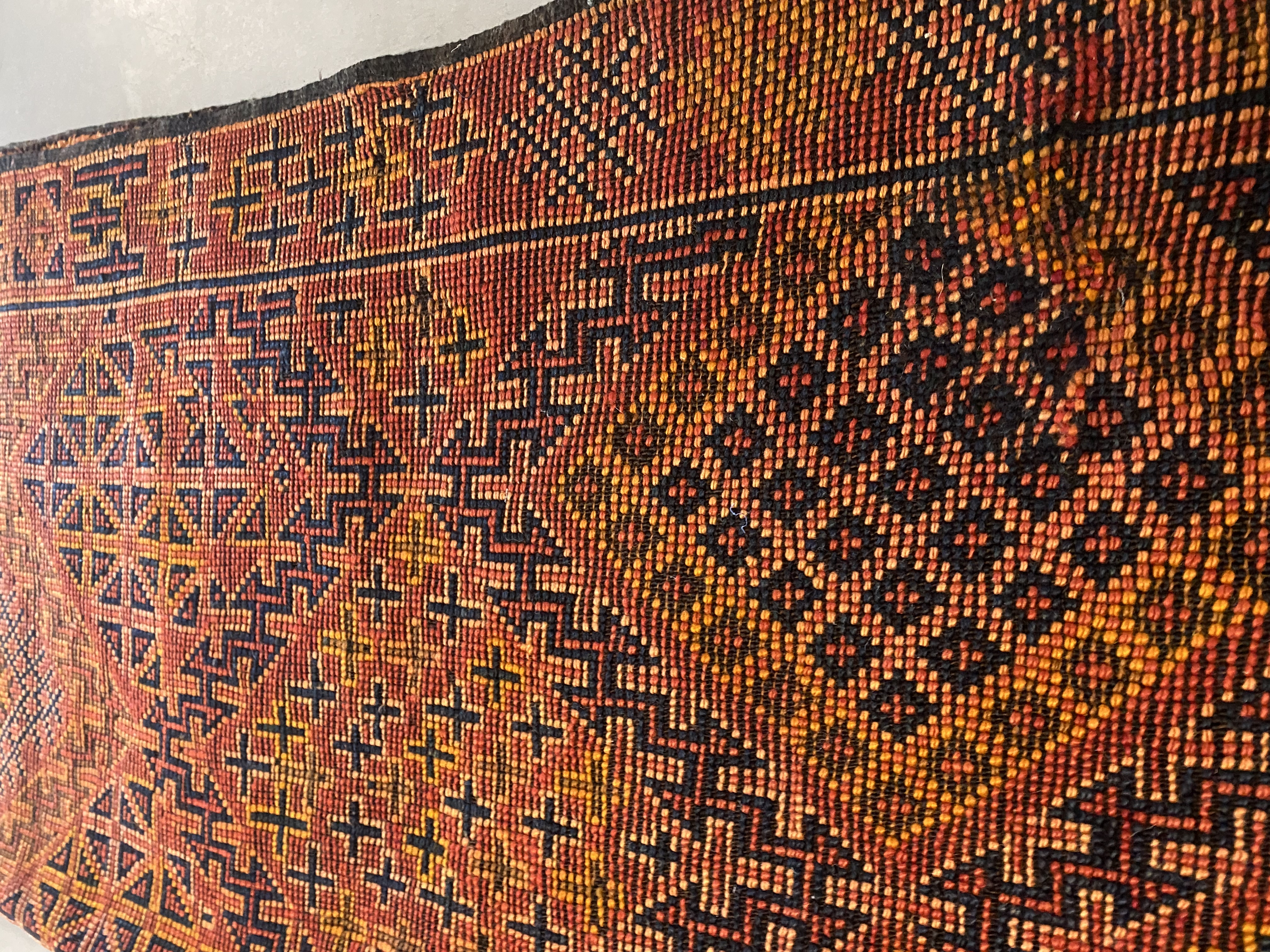 A common theme with Beni Mguild rugs is the darker tones, with earlier rugs dominated by Indigo Blue, but examples also include dark reds and browns as well. Those darker colors provide a stunning backdrop for the design, and they create stunning and interesting effects through the natural ageing process. Our vintage range are carefully sourced to identify genuine, naturally aged rugs that have the character and patina that makes each a unique work of art in its own right. Whatever your interior space, those darker colors and inventive use of shapes along with the beautiful Berber craftsmanship, create a superb piece of art that will be a conversation starter for everyone who sees it. The Beni Mguild rugs bring so much of the weaver’s character and passion for Berber craft with them, giving any interior space a flavor of Morocco and a reminder of the rich history that represents. The colors and design may vary from piece to piece, but the pure wool, hand knotted construction, crafted by weavers using skills passed down to them through the tribe for generations, is always there. Each rug is a celebration of the skills of the women who made them, their creativity shines in the design, and that is the reason these rugs are so sought after. Nothing compares to a truly hand-crafted rug, with our Beni Mguild range offering a broad range of styles, colors and ages to suit every taste and interior space.