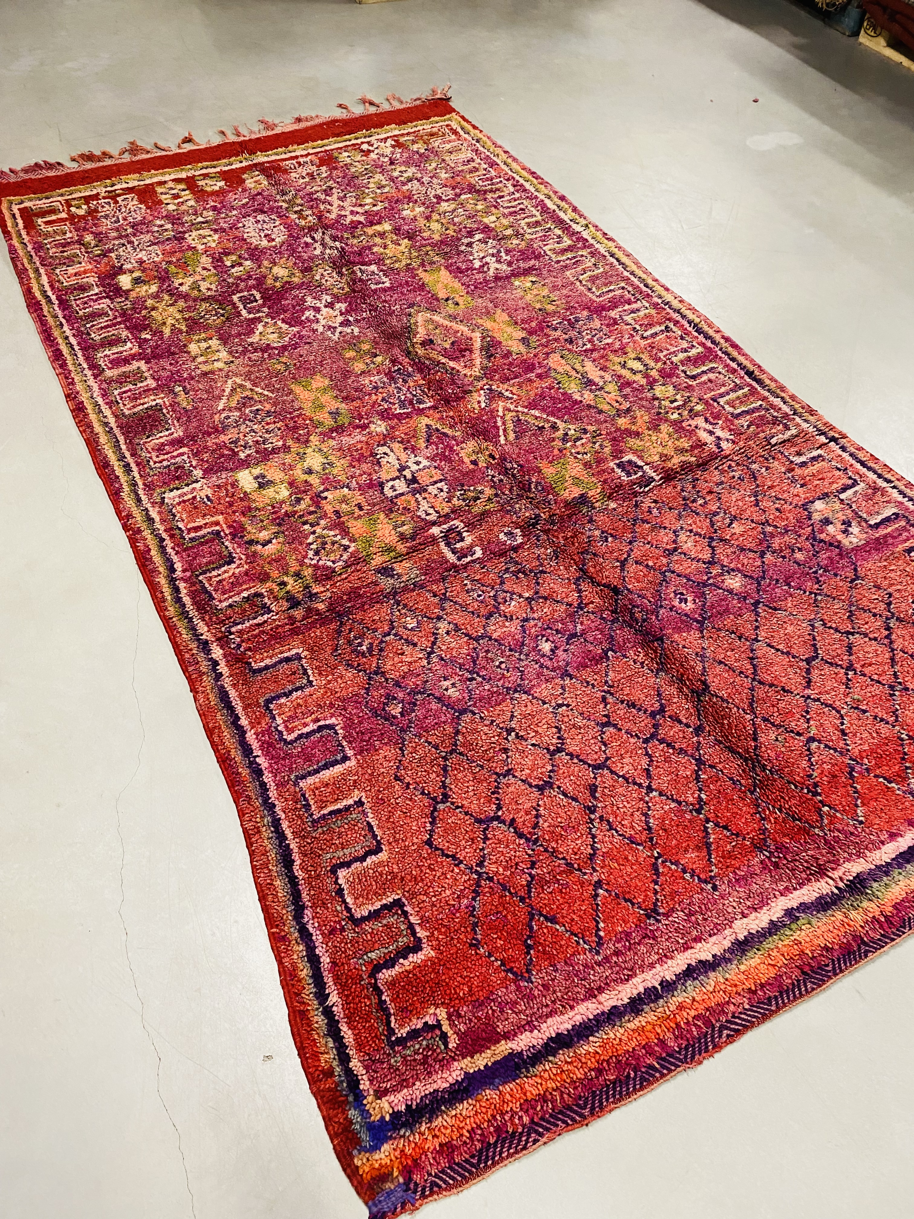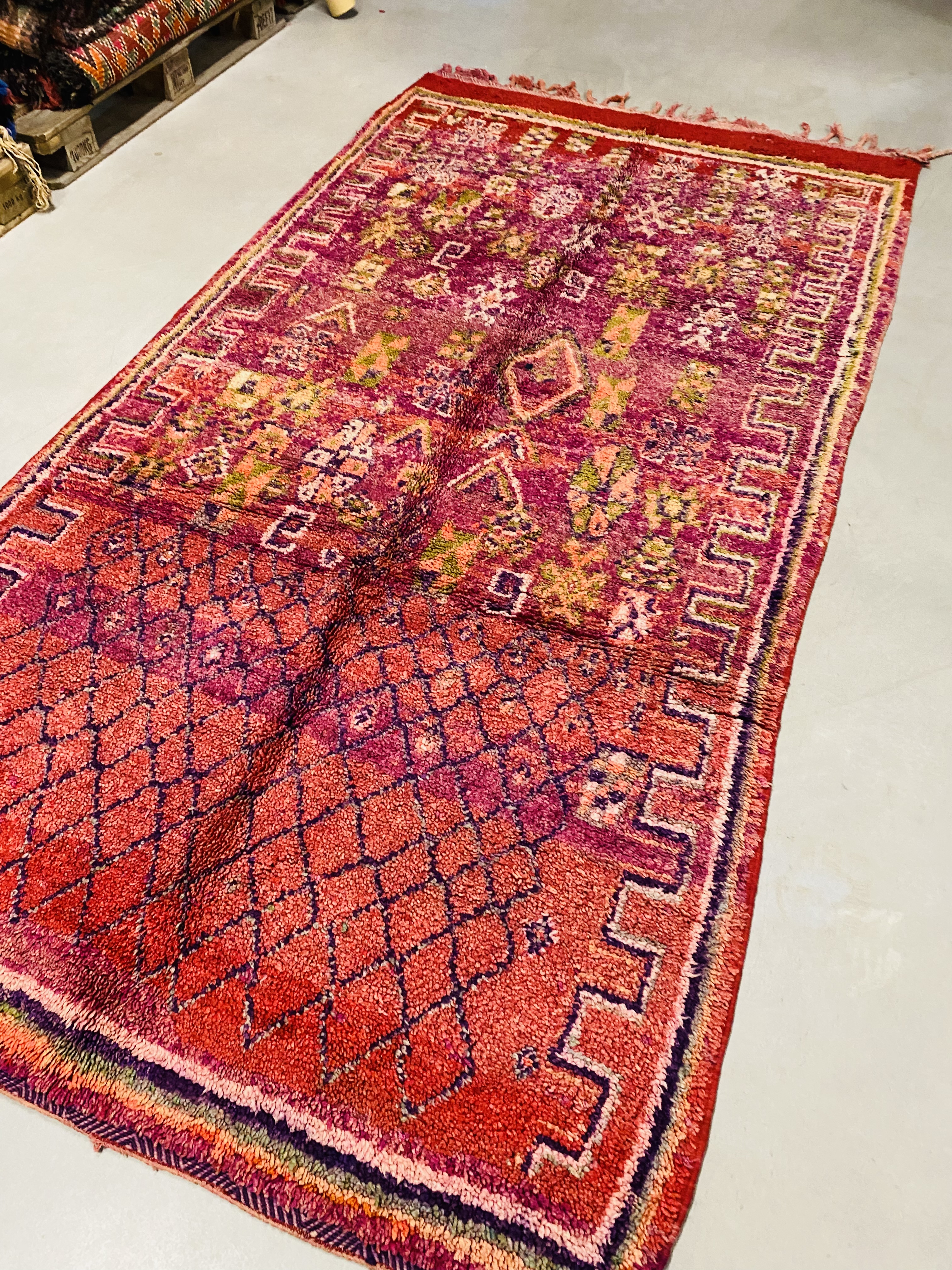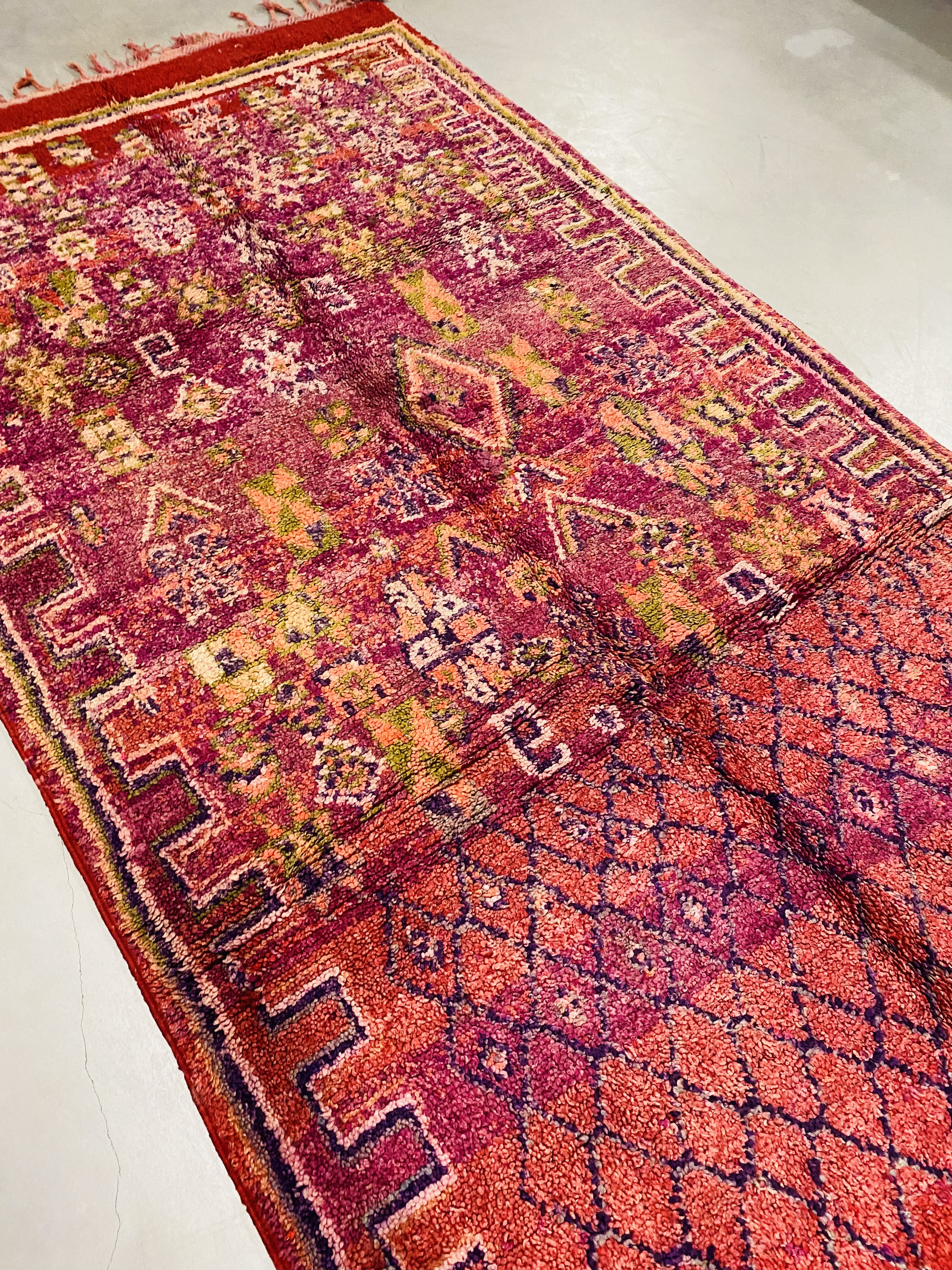 Our vintage Boujaad rugs are painstakingly sourced to ensure quality and character. They bring the essence of Morocco and the spirit of Berber craft to your interior space. Hand knotted in the traditional way and made from pure, natural wool, our Boujaad rugs represent the best of the region, high-quality pieces that bring Moroccan tradition to life, with wonderful craftsmanship and beauty.