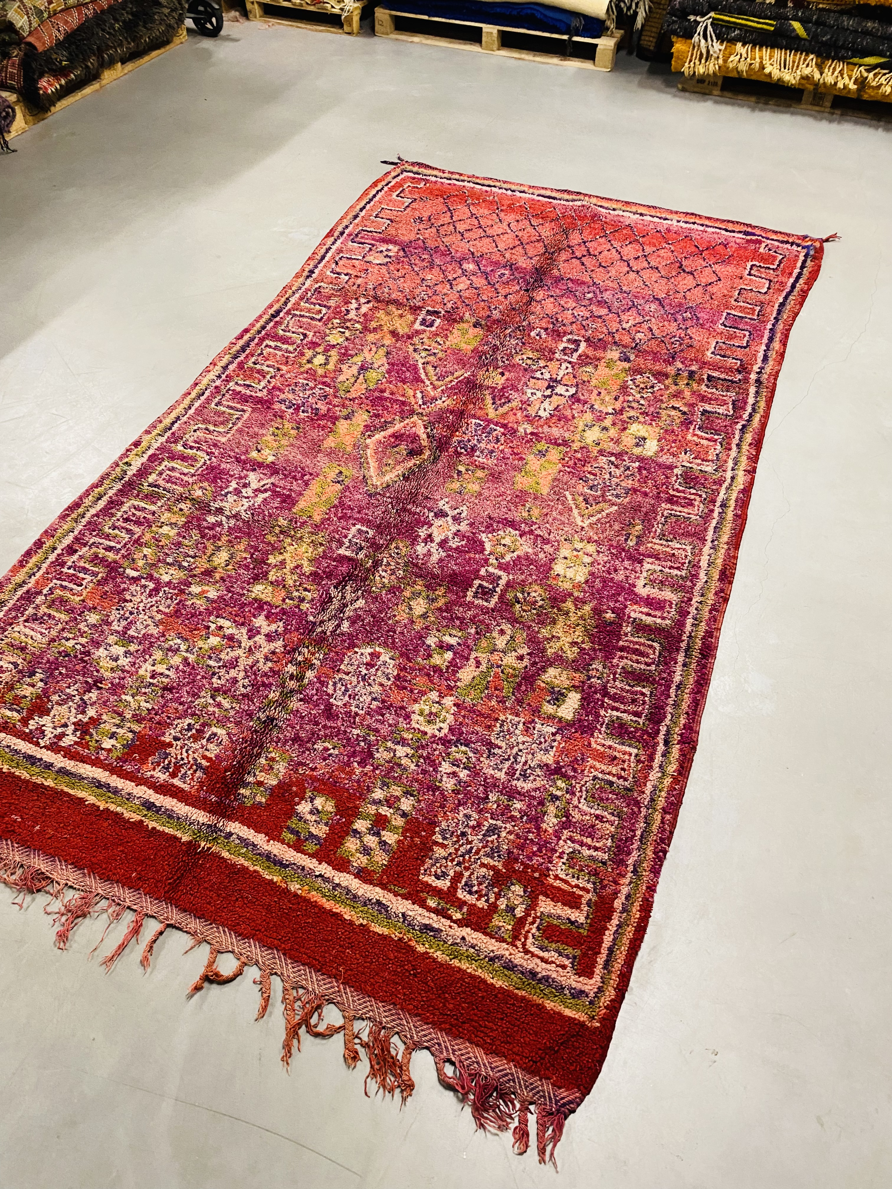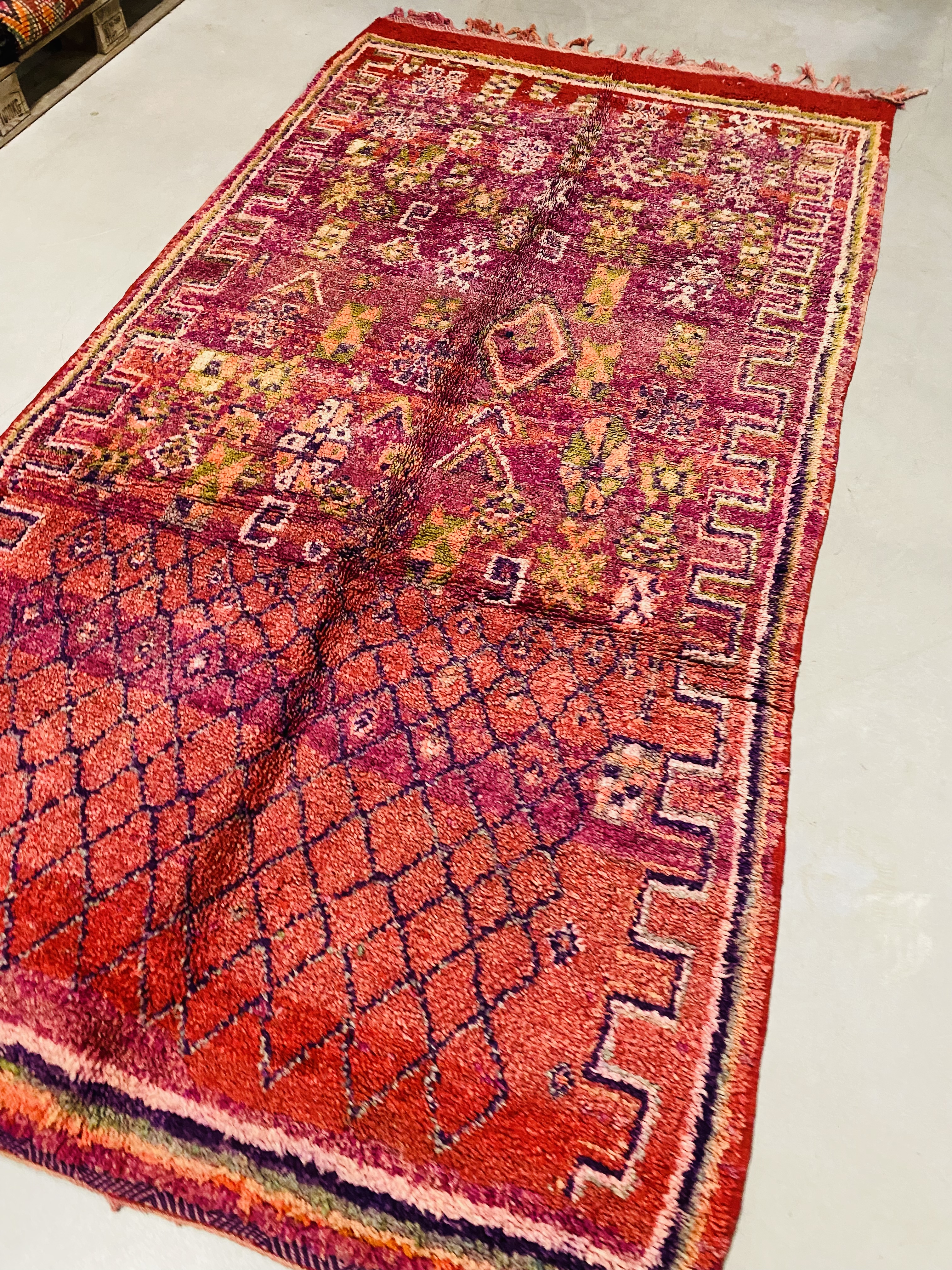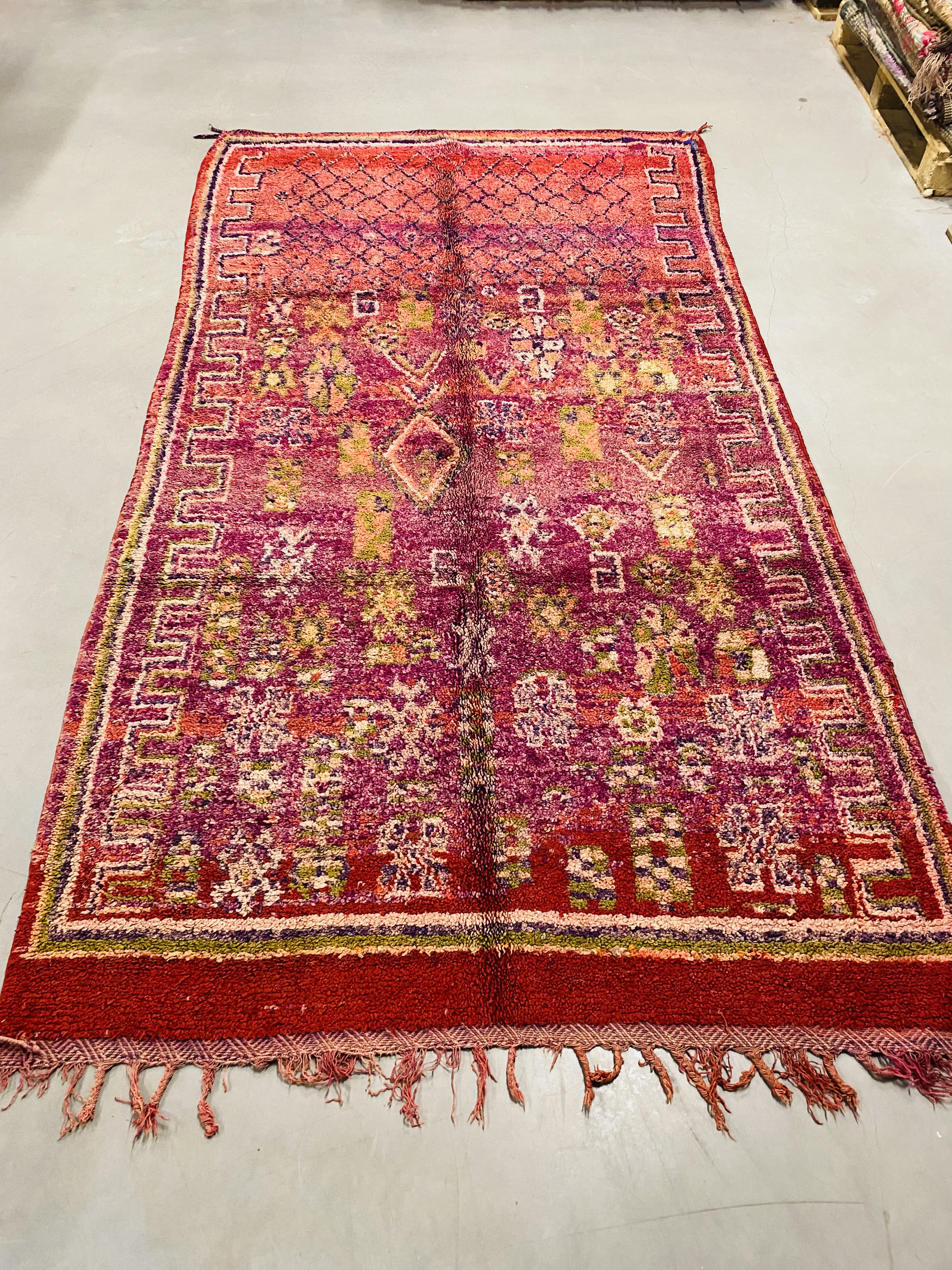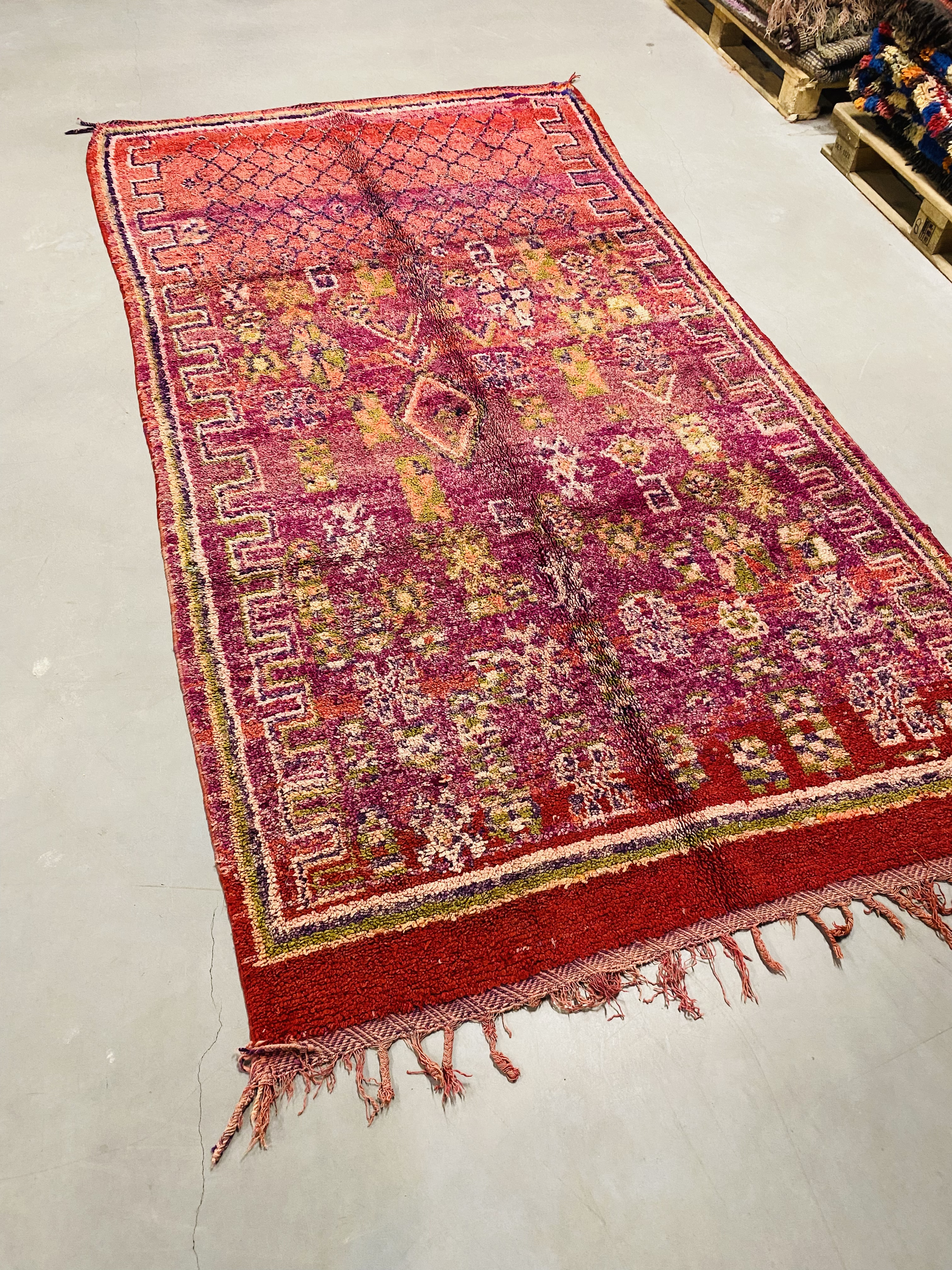 Our vintage Boujaad rugs are painstakingly sourced to ensure quality and character. They bring the essence of Morocco and the spirit of Berber craft to your interior space. Hand knotted in the traditional way and made from pure, natural wool, our Boujaad rugs represent the best of the region, high-quality pieces that bring Moroccan tradition to life, with wonderful craftsmanship and beauty.