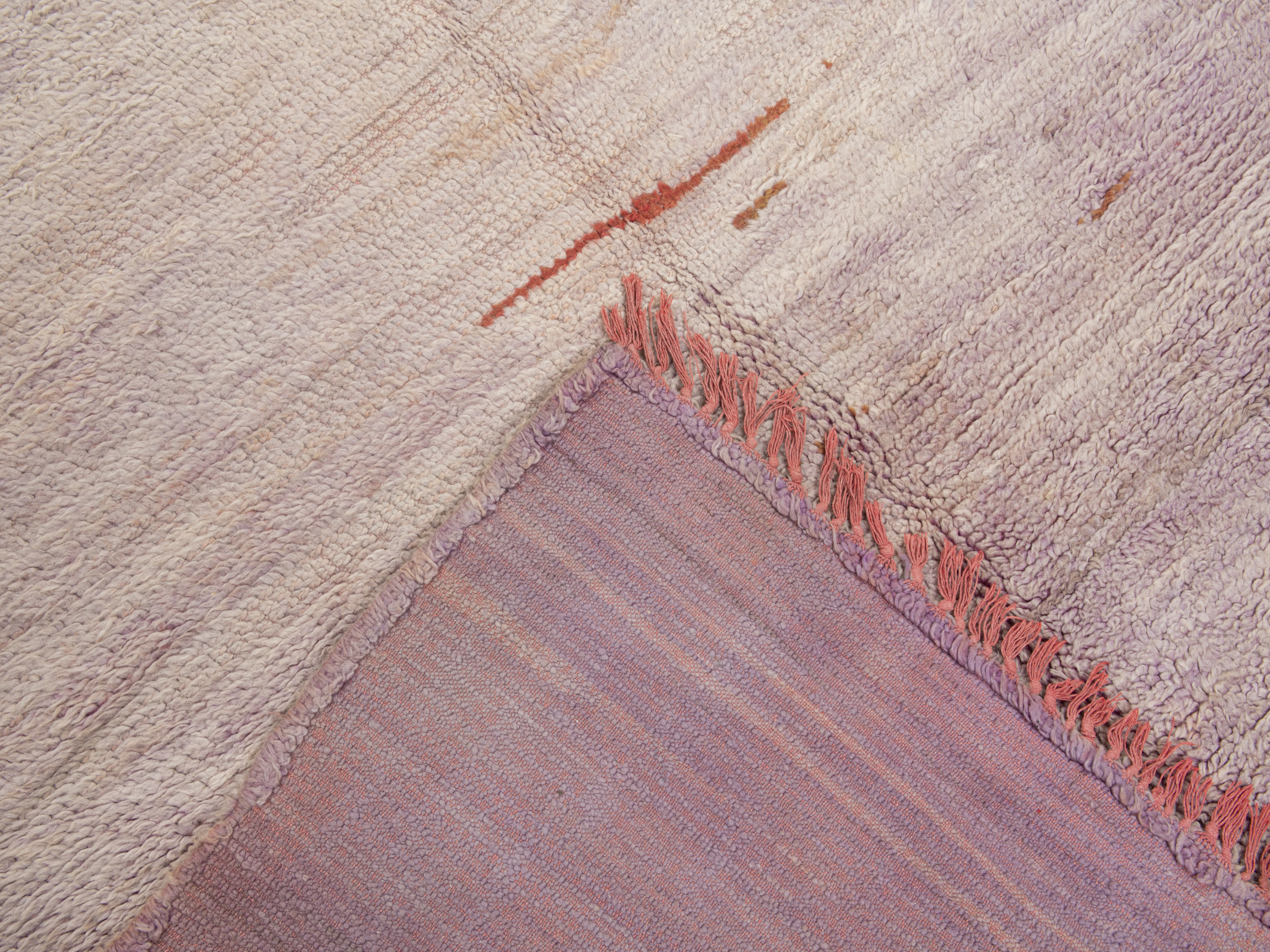 Beni Mguild rugs originate from the western central Middle Atlas region of Morocco, and as with most regions, they have their own style. The weavers in this region like to take the designs commonly found in flat weave rugs, and adapt them to their pile weave, hand knotted creations. This creates bold, flowing imagery that captures the joyous character of the weaver herself.
