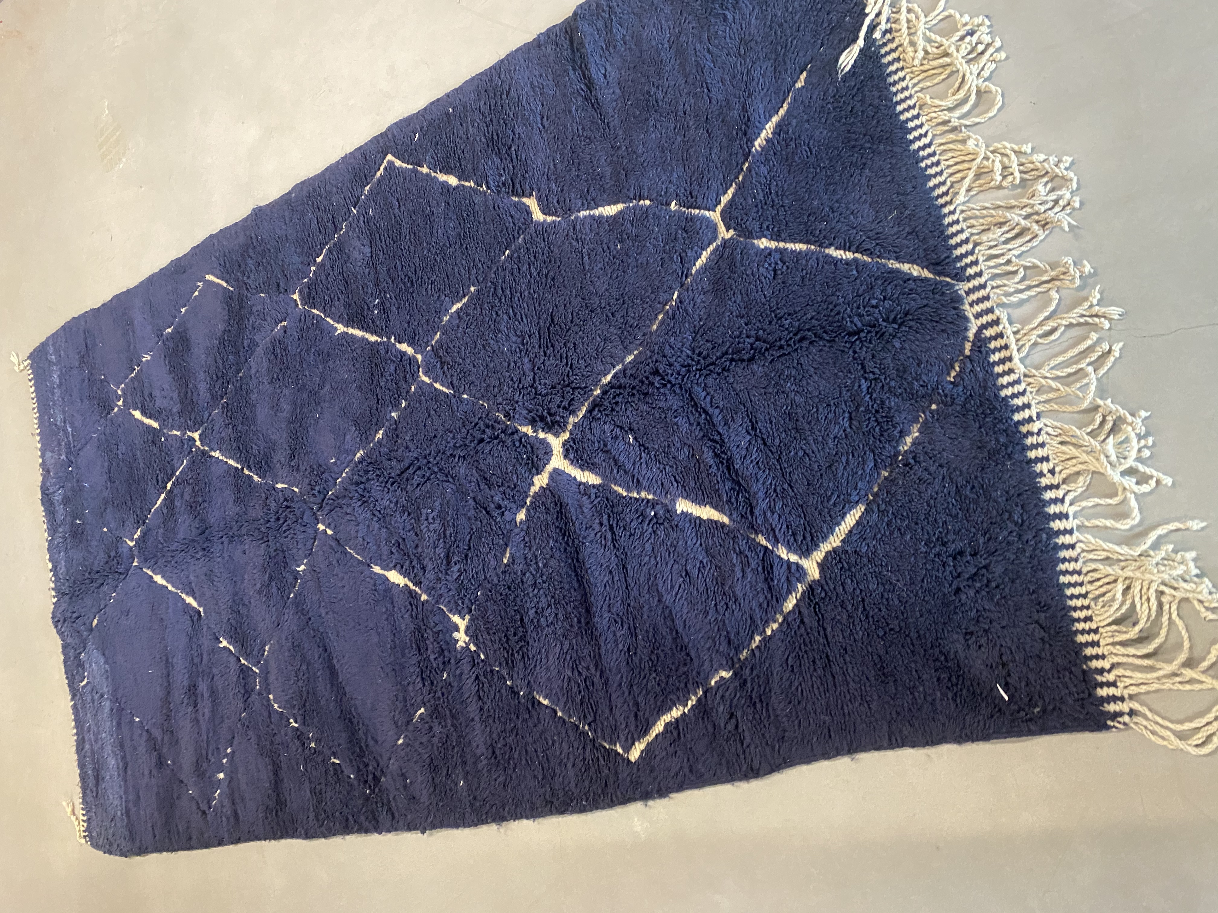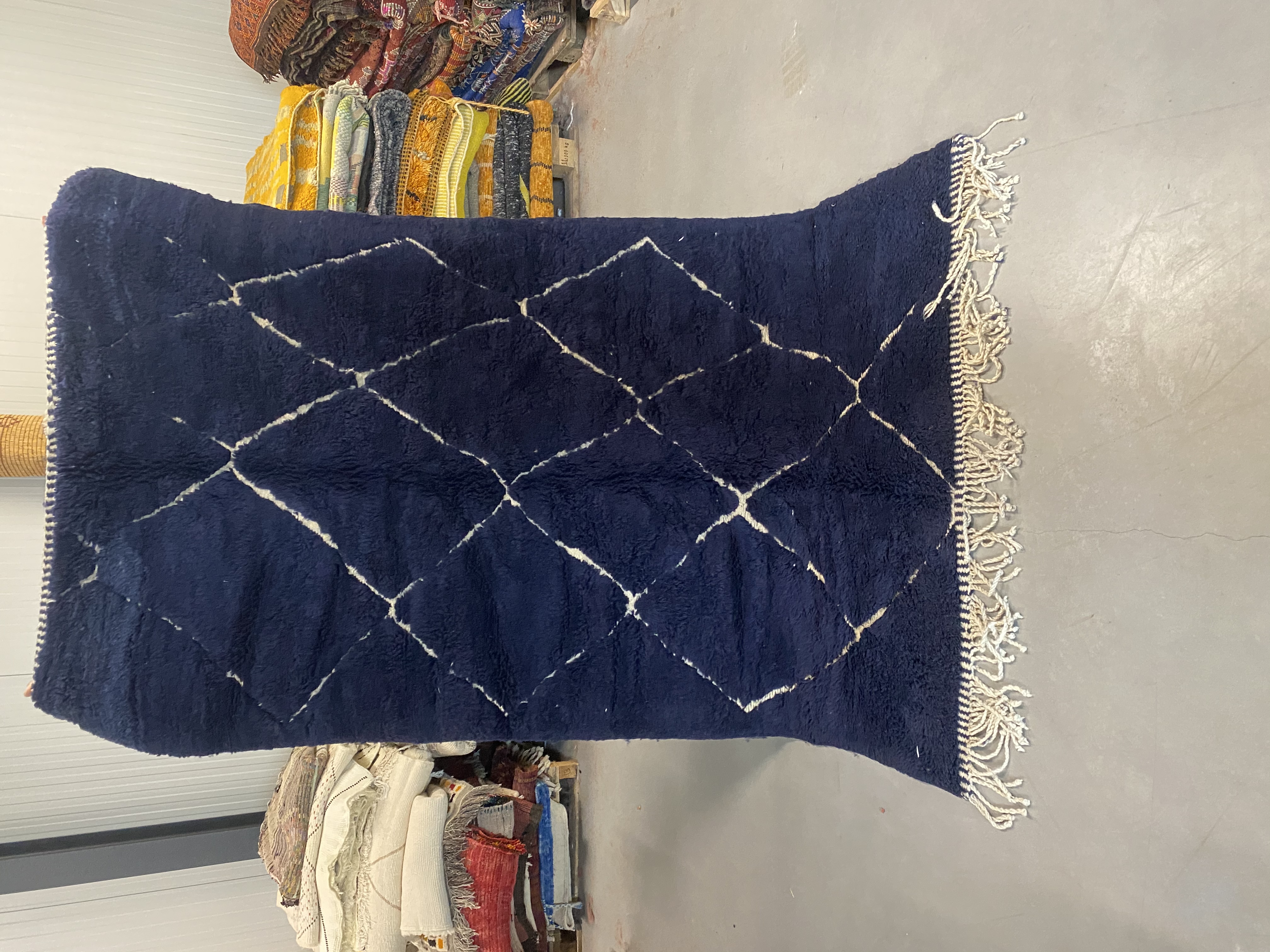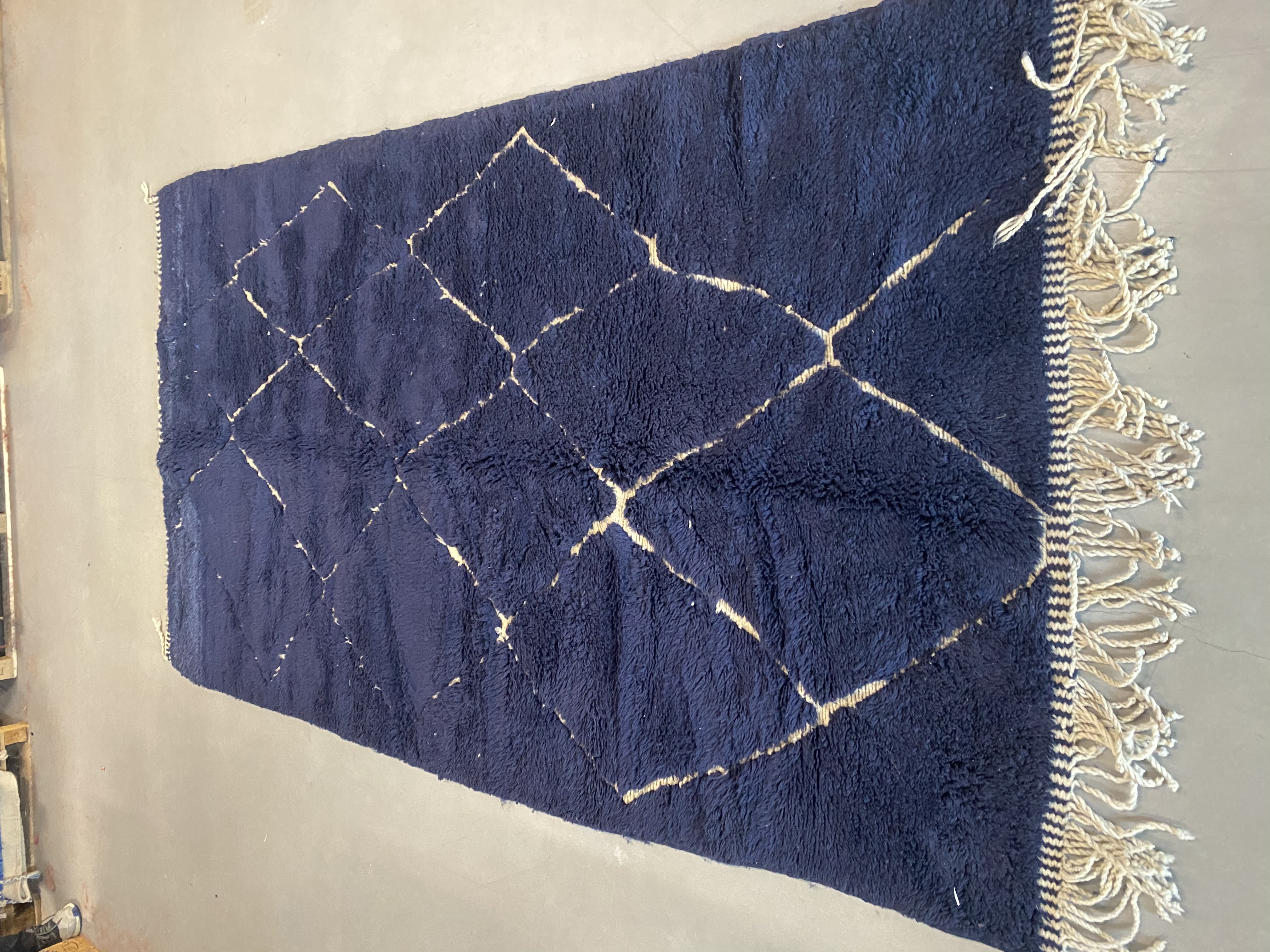 Beni Ourain is a group of 17 Berber tribes that traditionally inhabits the Atlas Mountains of Morocco. Our Beni Ourain rugs possess a spirit and a character, a real berber rug straight from the Atlas. It is a reflection of the daily life of the women that make it. Most of our vintage Beni rugs are cream(ivory) in color, although differences in the tone are found depending on the sheep’s color. They are considered to be the most prestigious rugs in Morocco, made from the very finest wool.