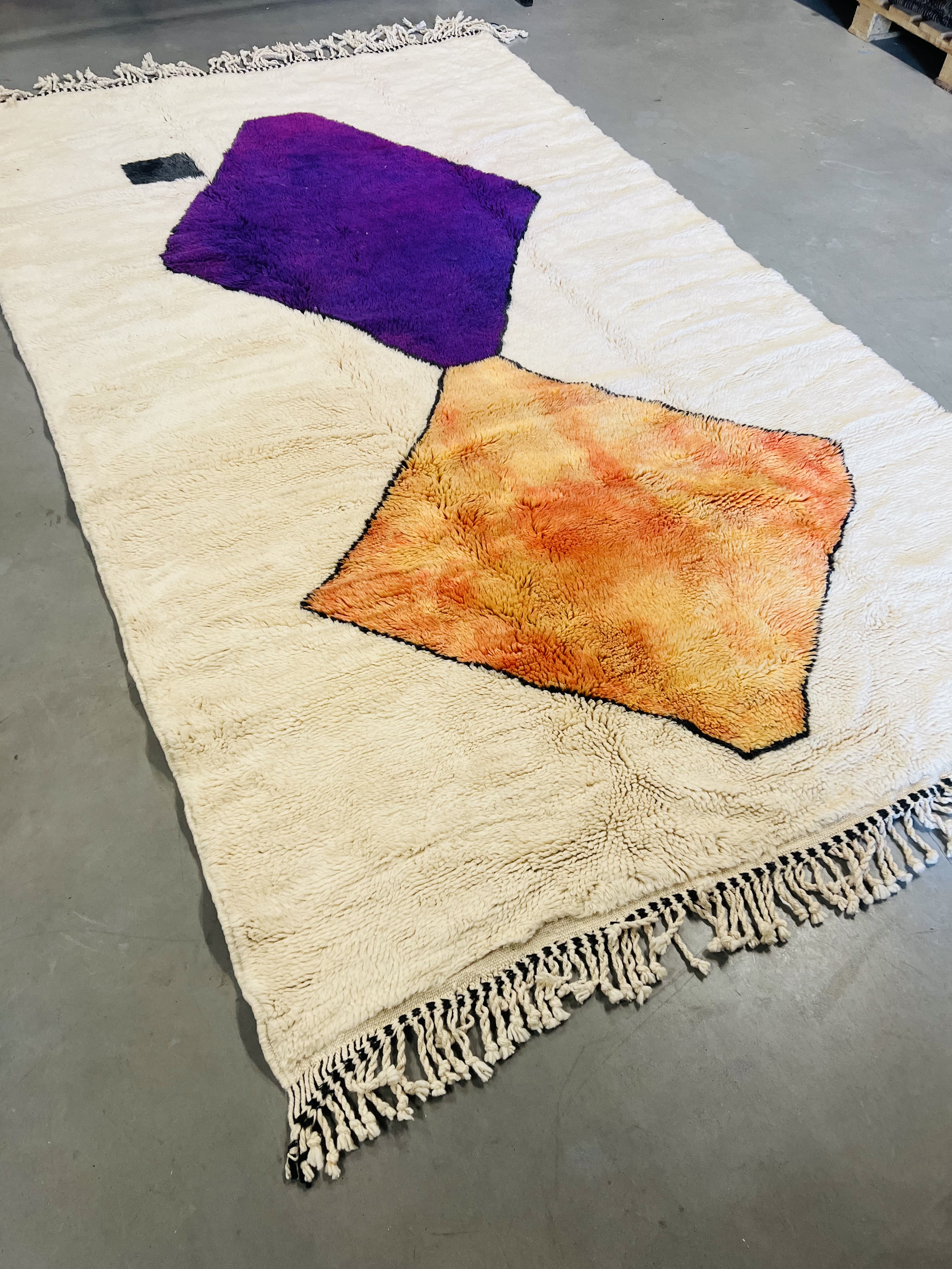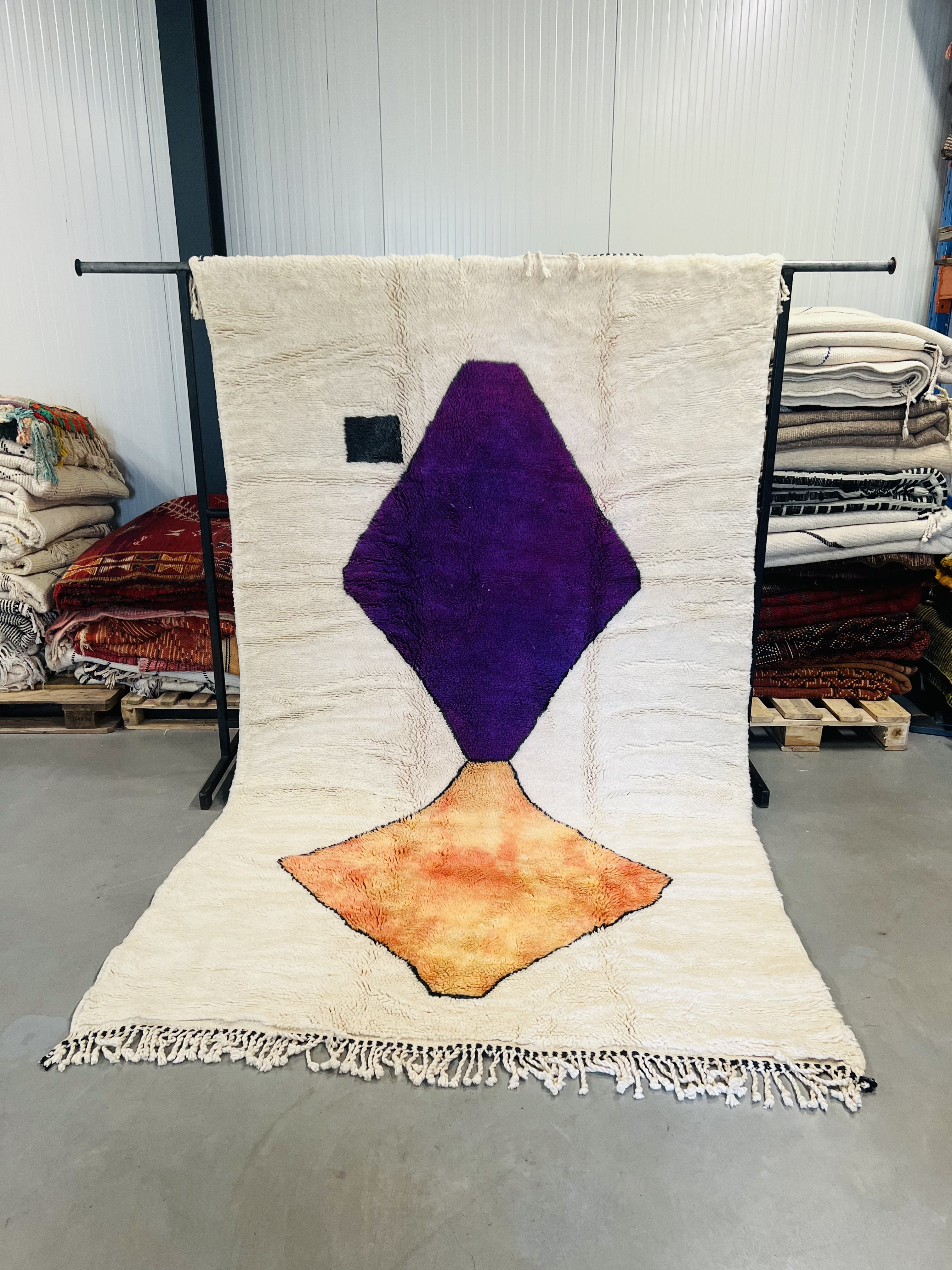 Beni Ourain is a group of 17 Berber tribes that traditionally inhabits the Atlas Mountains of Morocco. Our Beni Ourain rugs possess a spirit and a character, a real berber rug straight from the Atlas. It is a reflection of the daily life of the women that make it. Most of our vintage Beni rugs are cream(ivory) in color, although differences in the tone are found depending on the sheep’s color. They are considered to be the most prestigious rugs in Morocco, made from the very finest wool.