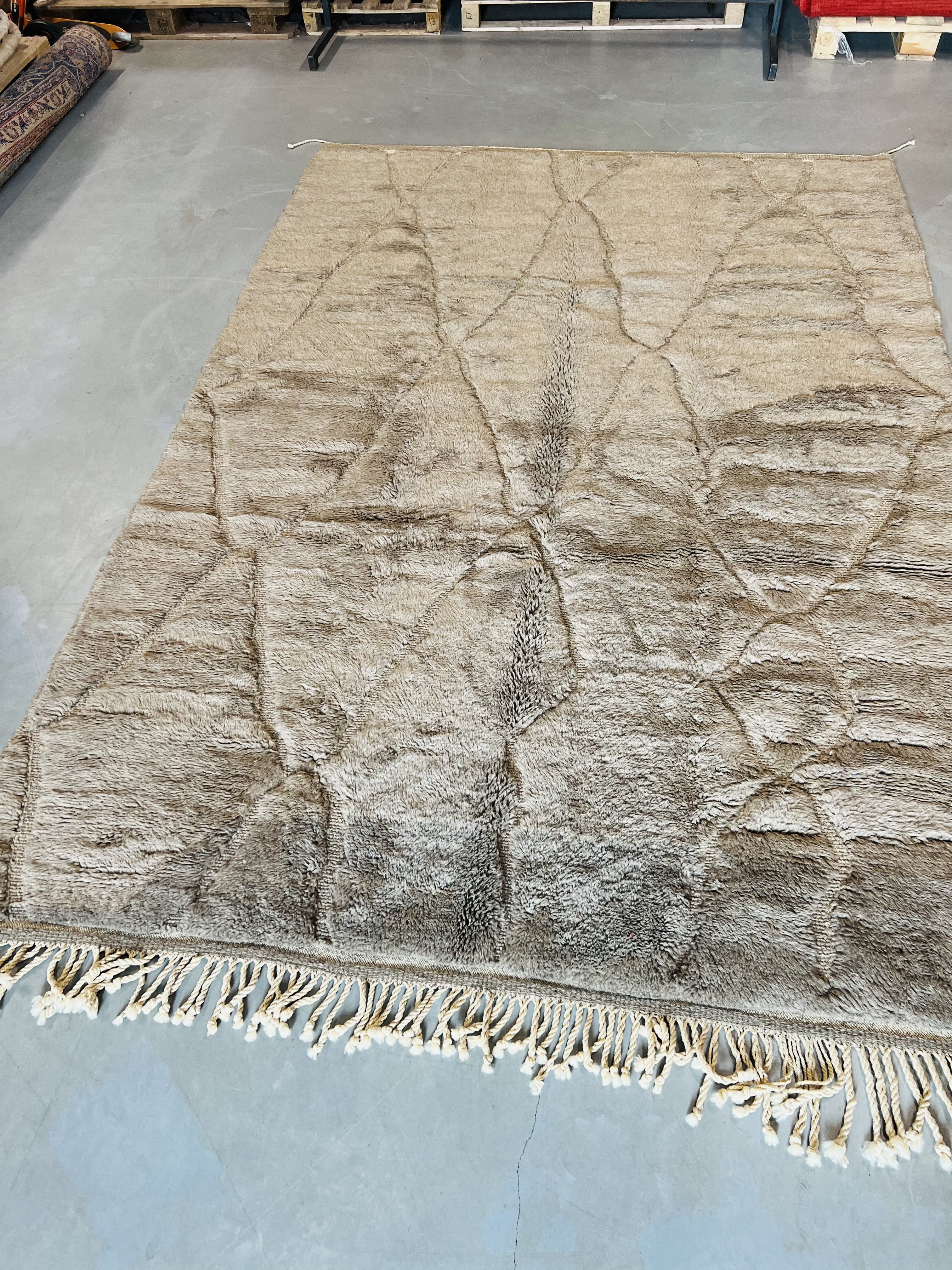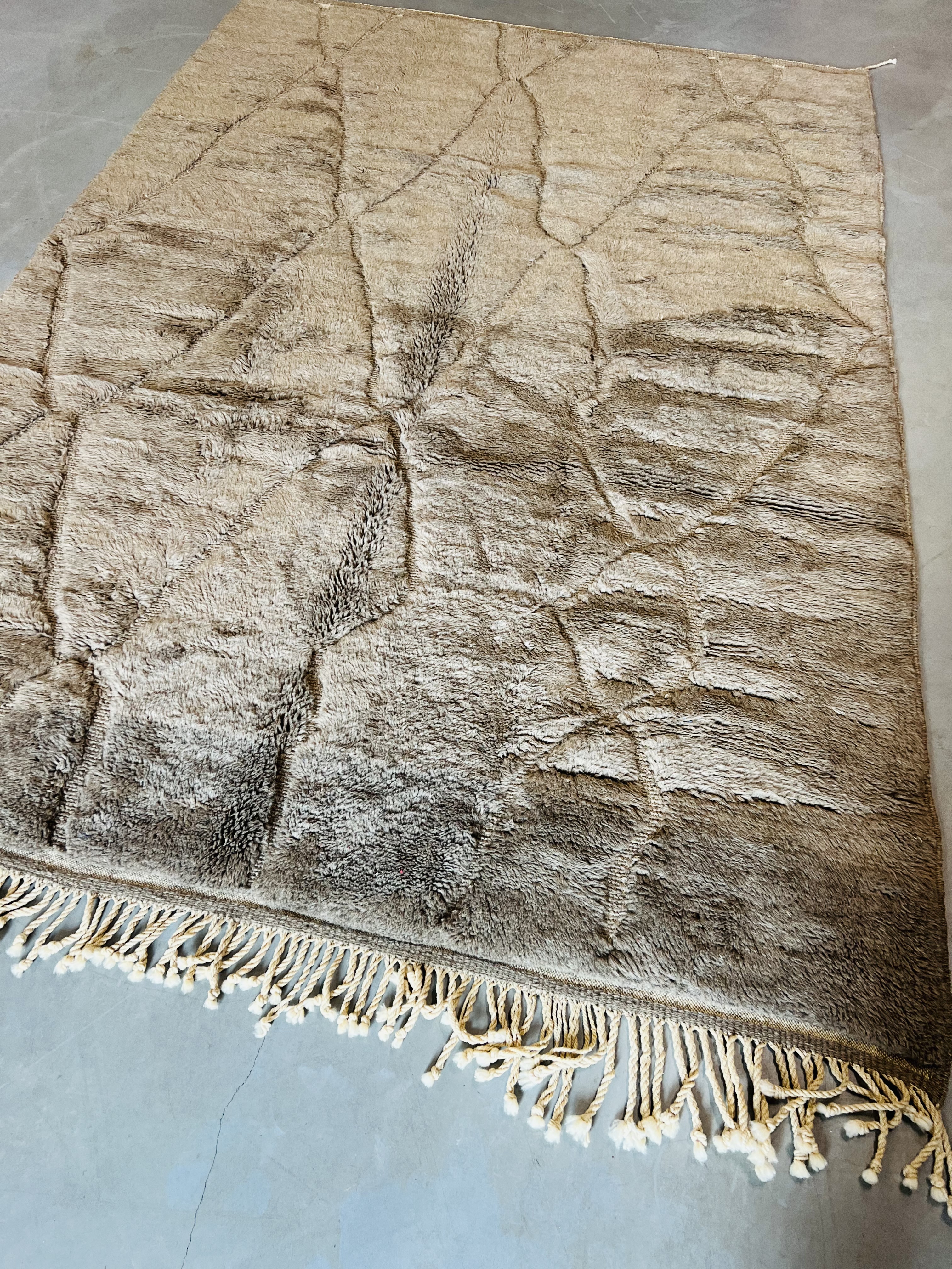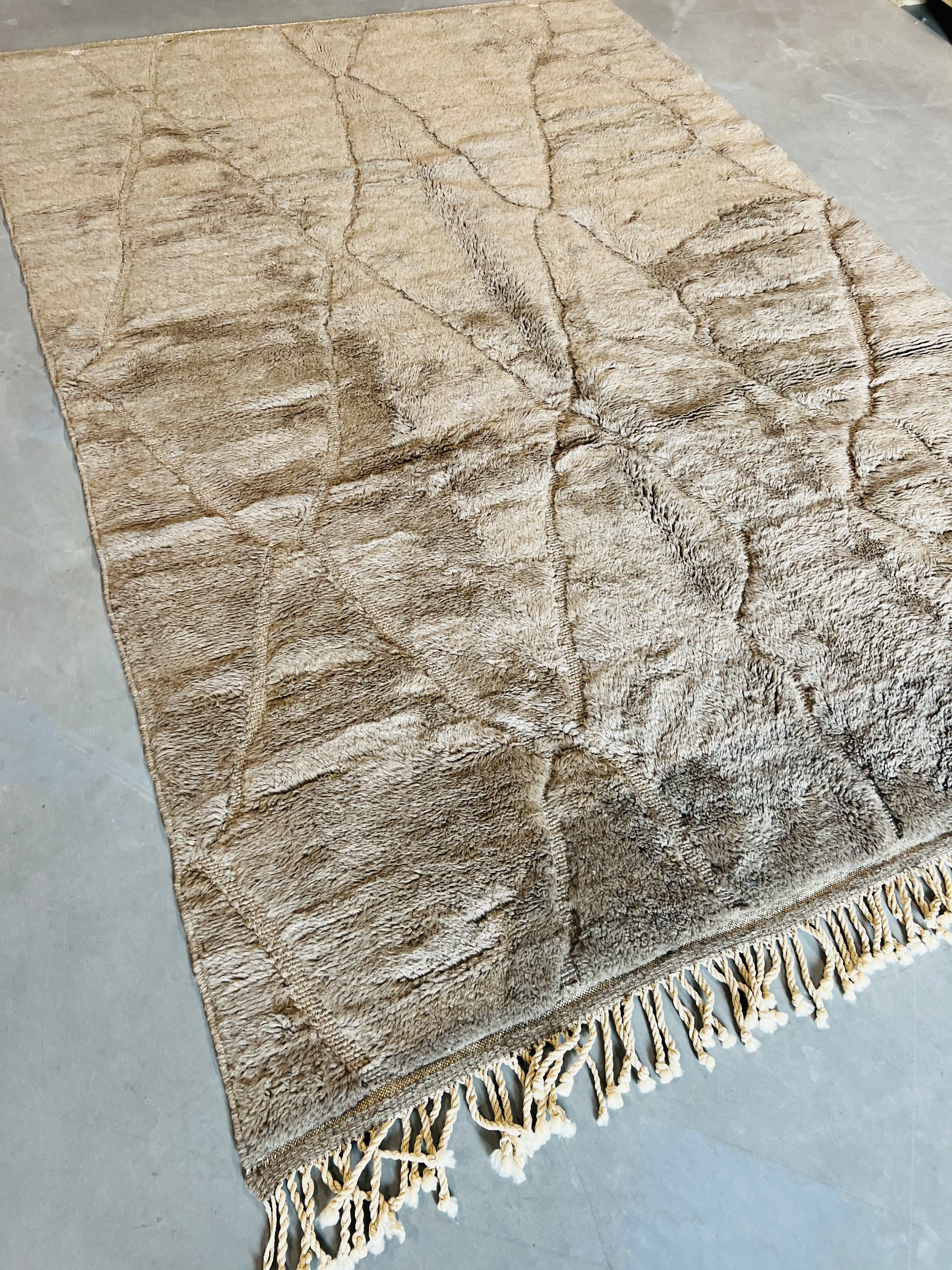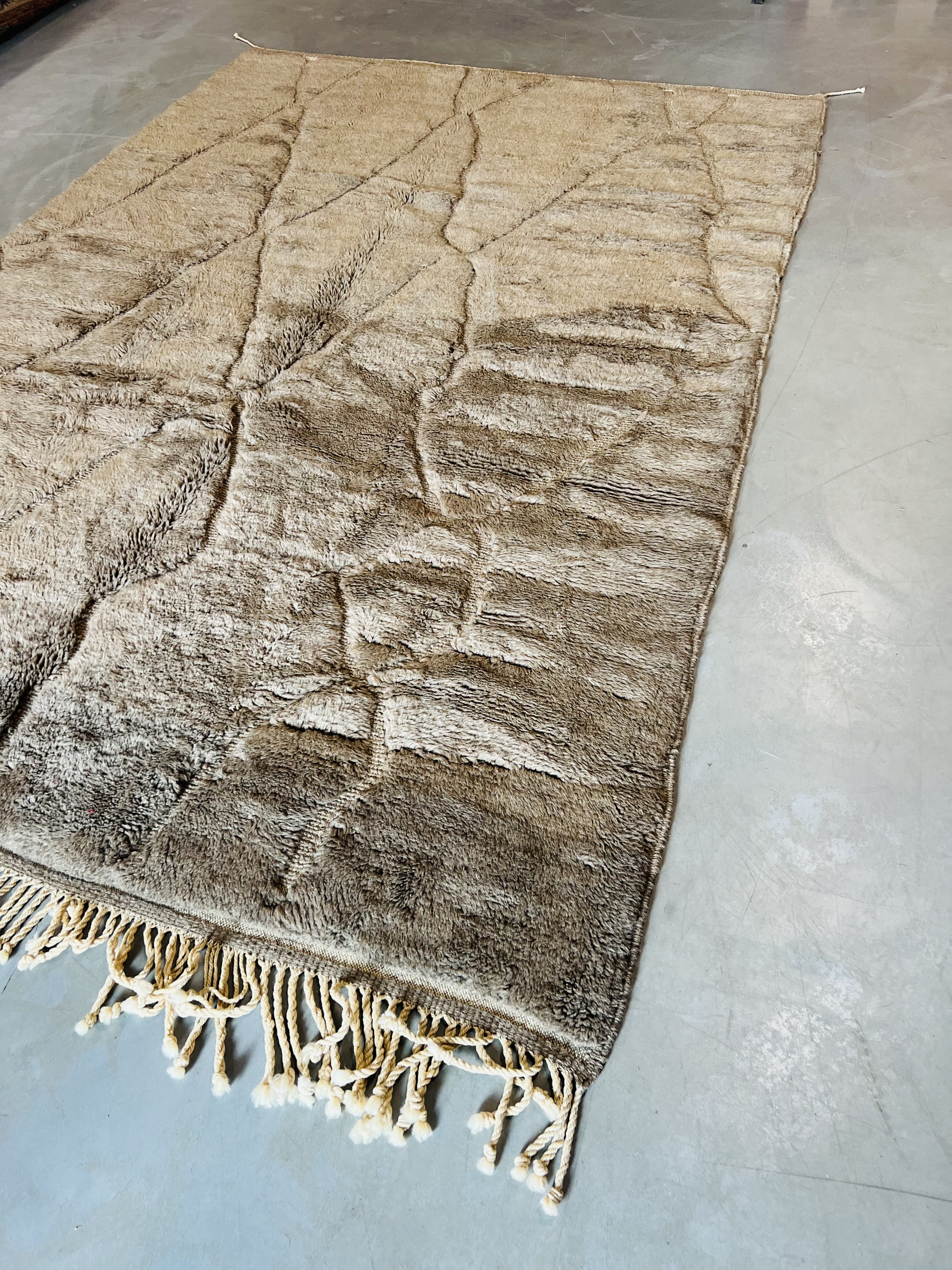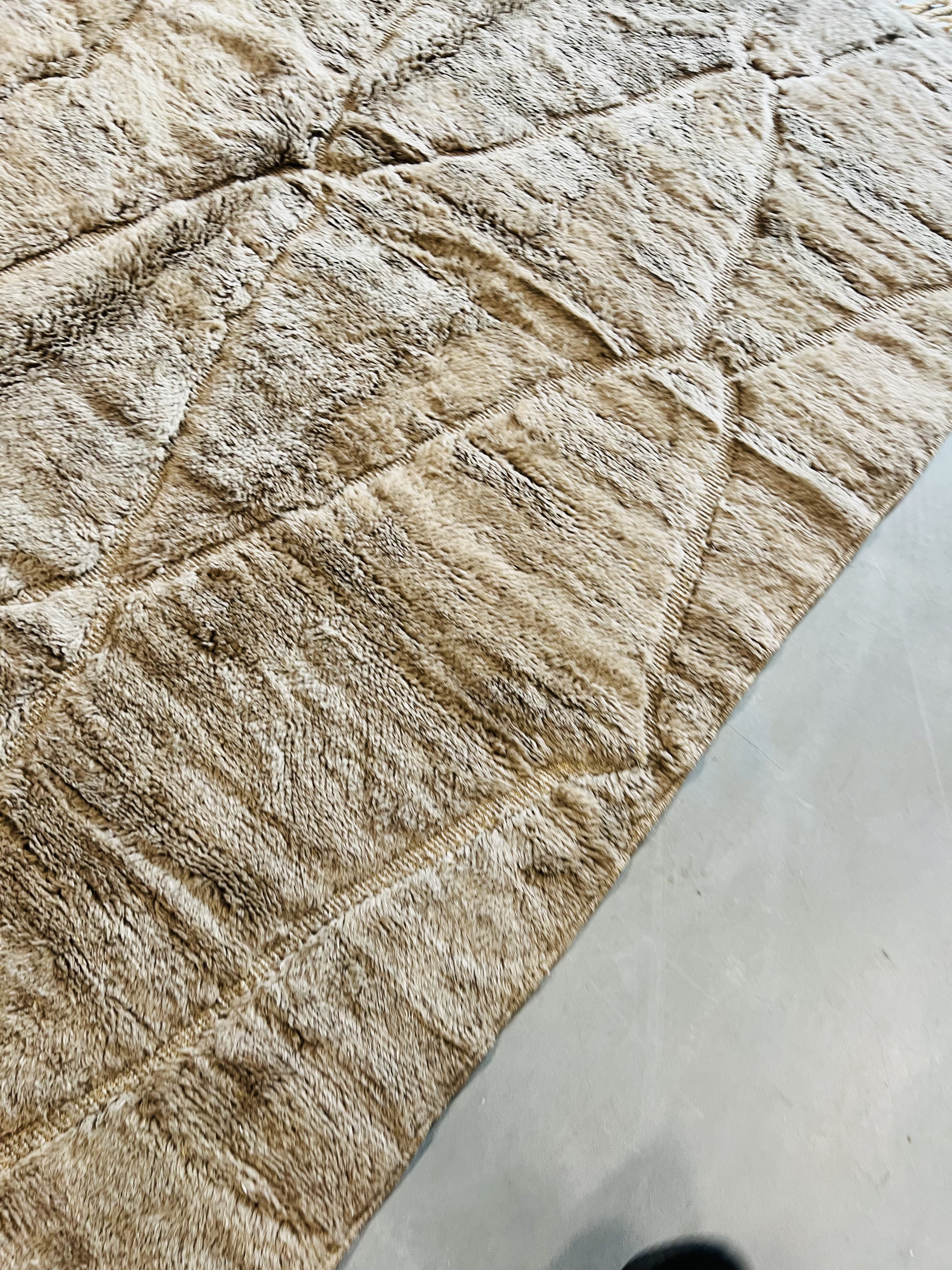 Beni Ourain is a group of 17 Berber tribes that traditionally inhabits the Atlas Mountains of Morocco. Our Beni Ourain rugs possess a spirit and a character, a real berber rug straight from the Atlas. It is a reflection of the daily life of the women that make it. Most of our vintage Beni rugs are cream(ivory) in color, although differences in the tone are found depending on the sheep’s color. They are considered to be the most prestigious rugs in Morocco, made from the very finest wool.