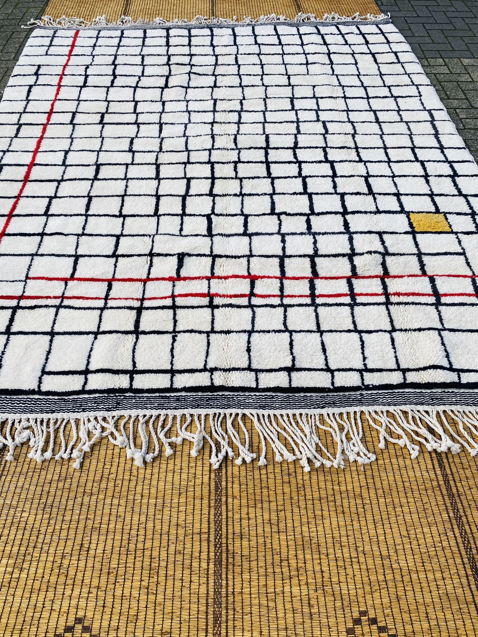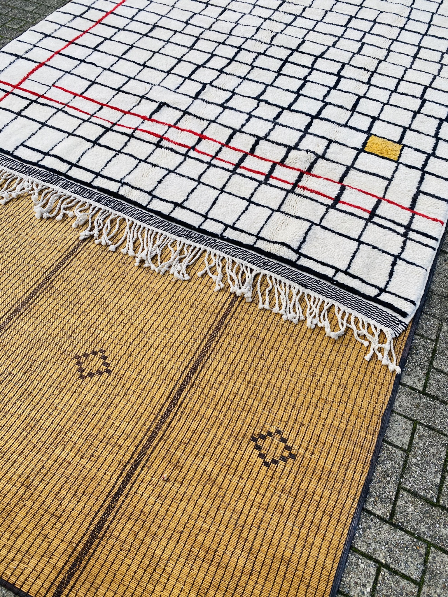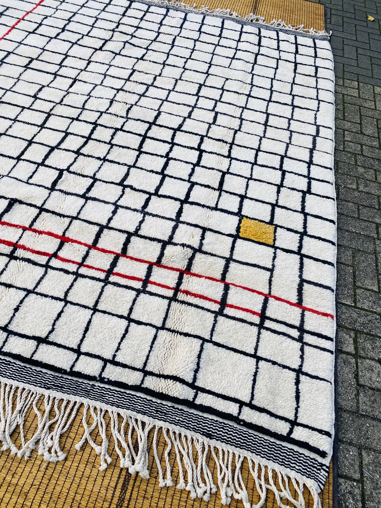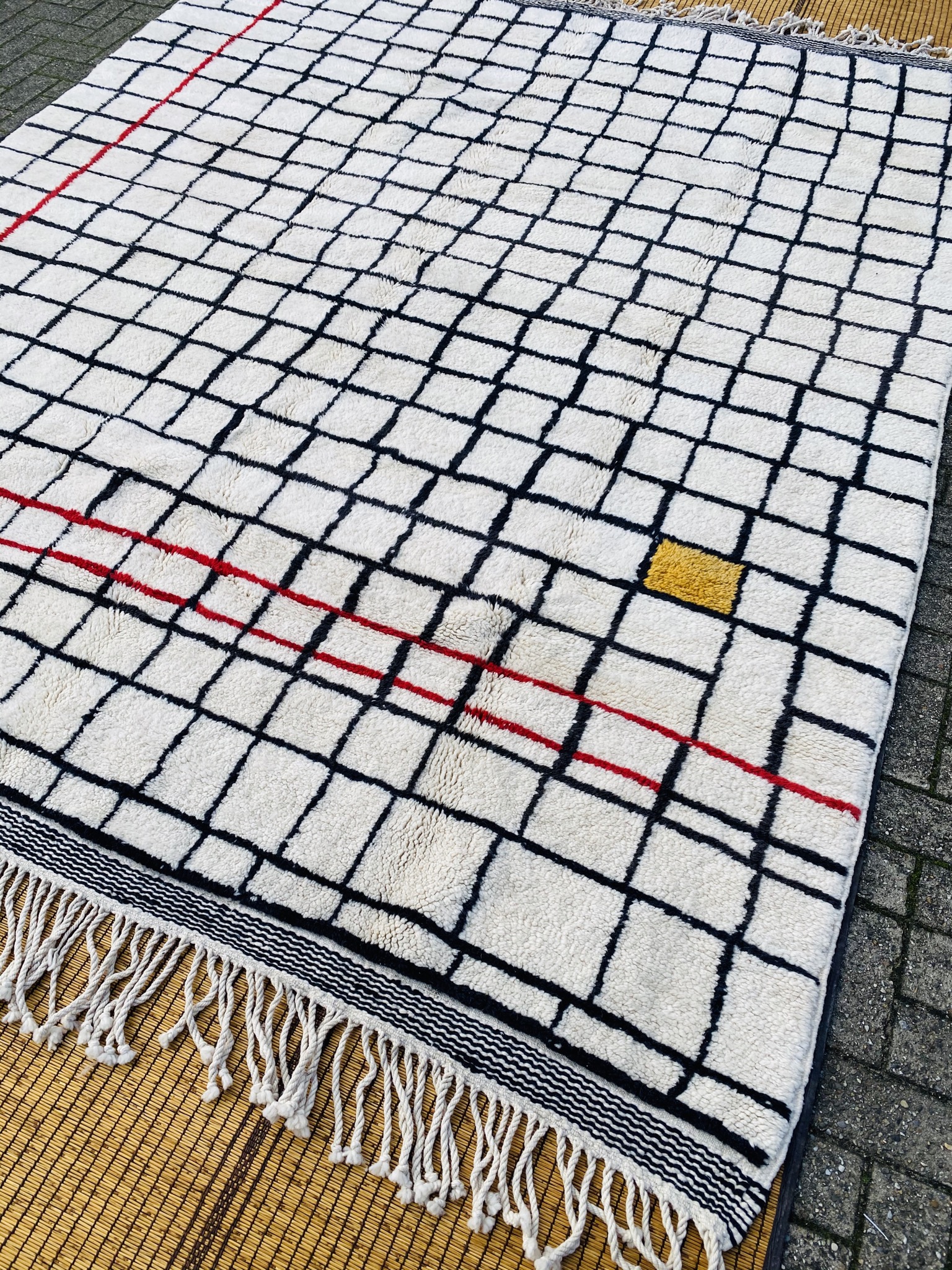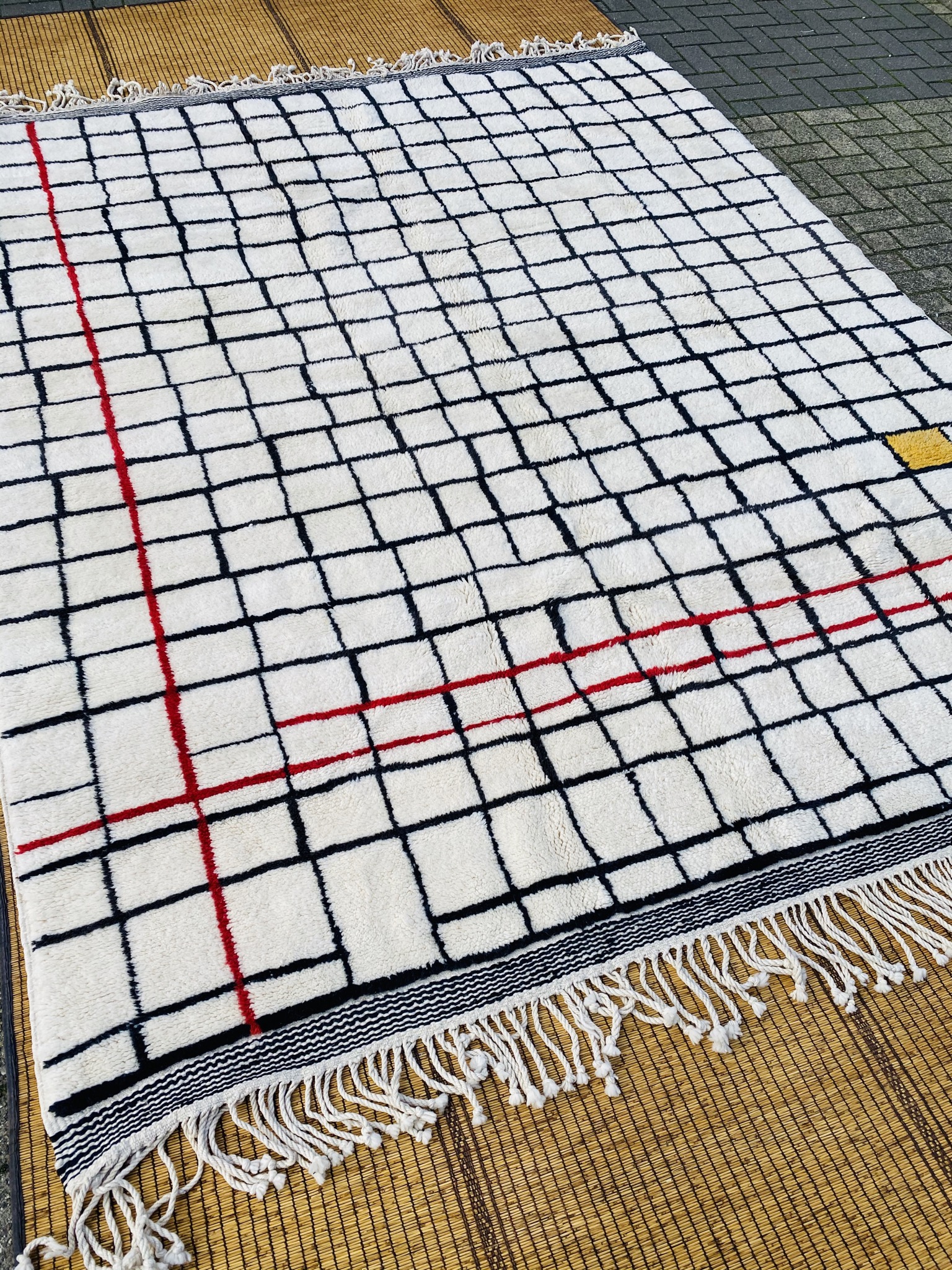 Beni Ourain is a group of 17 Berber tribes that traditionally inhabits the Atlas Mountains of Morocco. Our Beni Ourain rugs possess a spirit and a character, a real berber rug straight from the Atlas. It is a reflection of the daily life of the women that make it. Most of our vintage Beni rugs are cream(ivory) in color, although differences in the tone are found depending on the sheep’s color. They are considered to be the most prestigious rugs in Morocco, made from the very finest wool.