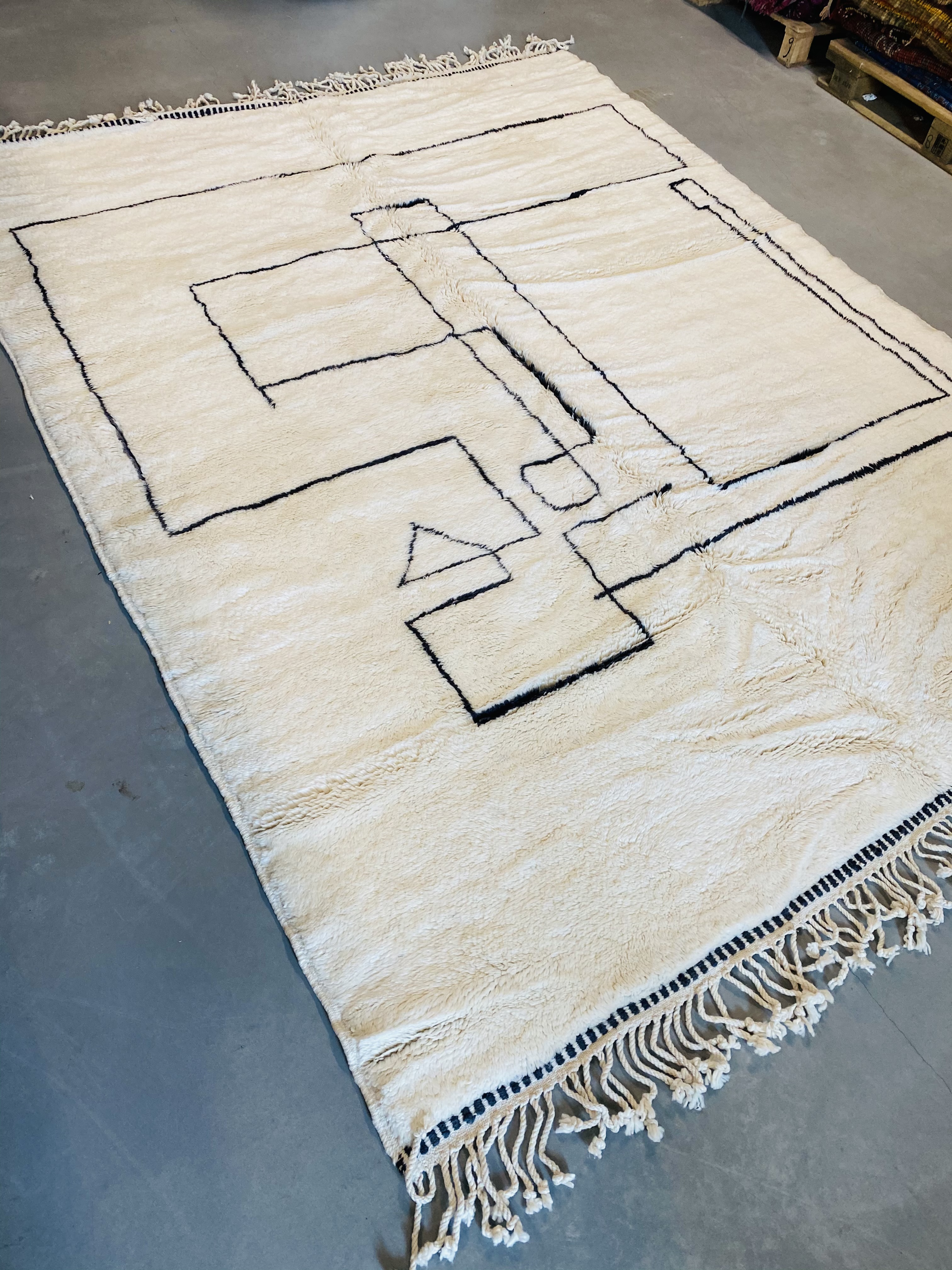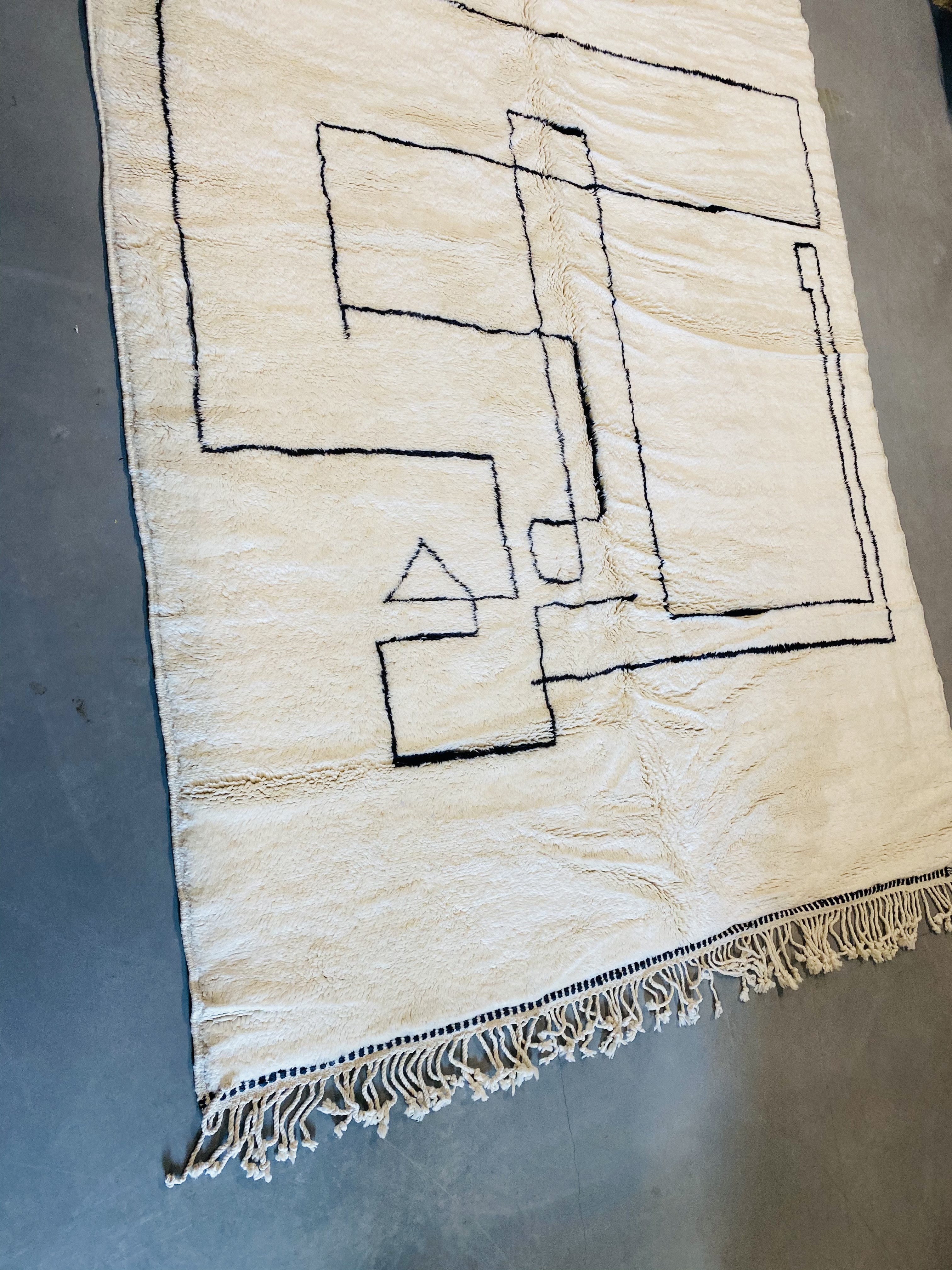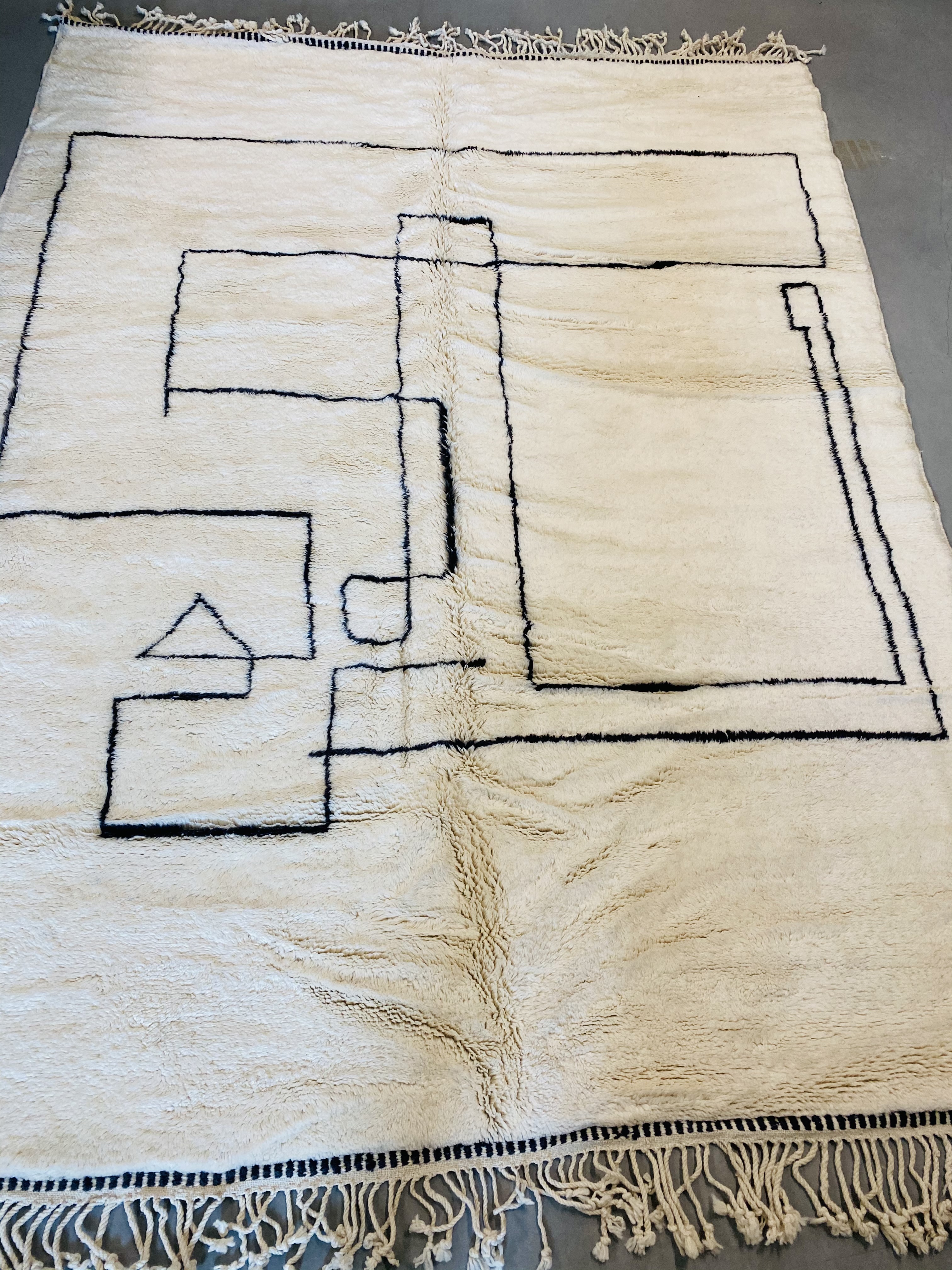 Beni Ourain is a group of 17 Berber tribes that traditionally inhabits the Atlas Mountains of Morocco. Our Beni Ourain rugs possess a spirit and a character, a real berber rug straight from the Atlas. It is a reflection of the daily life of the women that make it. Most of our vintage Beni rugs are cream(ivory) in color, although differences in the tone are found depending on the sheep’s color. They are considered to be the most prestigious rugs in Morocco, made from the very finest wool.