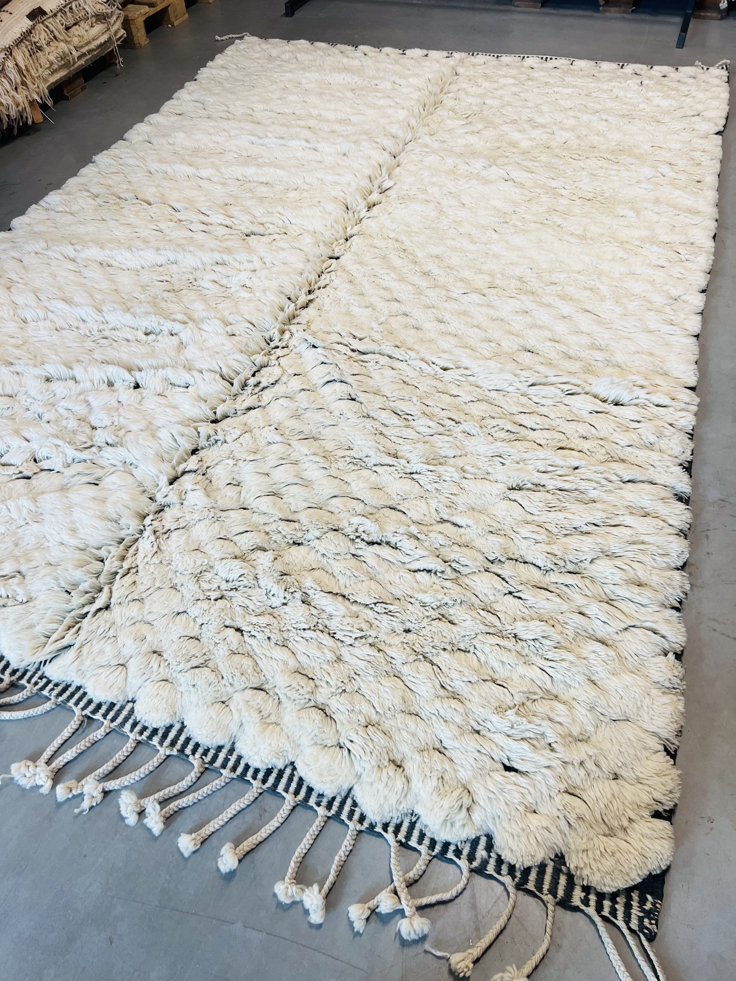Beni Ourain is a group of 17 Berber tribes that traditionally inhabits the Atlas Mountains of Morocco. Our Beni Ourain rugs possess a spirit and a character, a real berber rug straight from the Atlas. It is a reflection of the daily life of the women that make it. Most of our vintage Beni rugs are cream(ivory) in color, although differences in the tone are found depending on the sheep’s color. They are considered to be the most prestigious rugs in Morocco, made from the very finest wool.