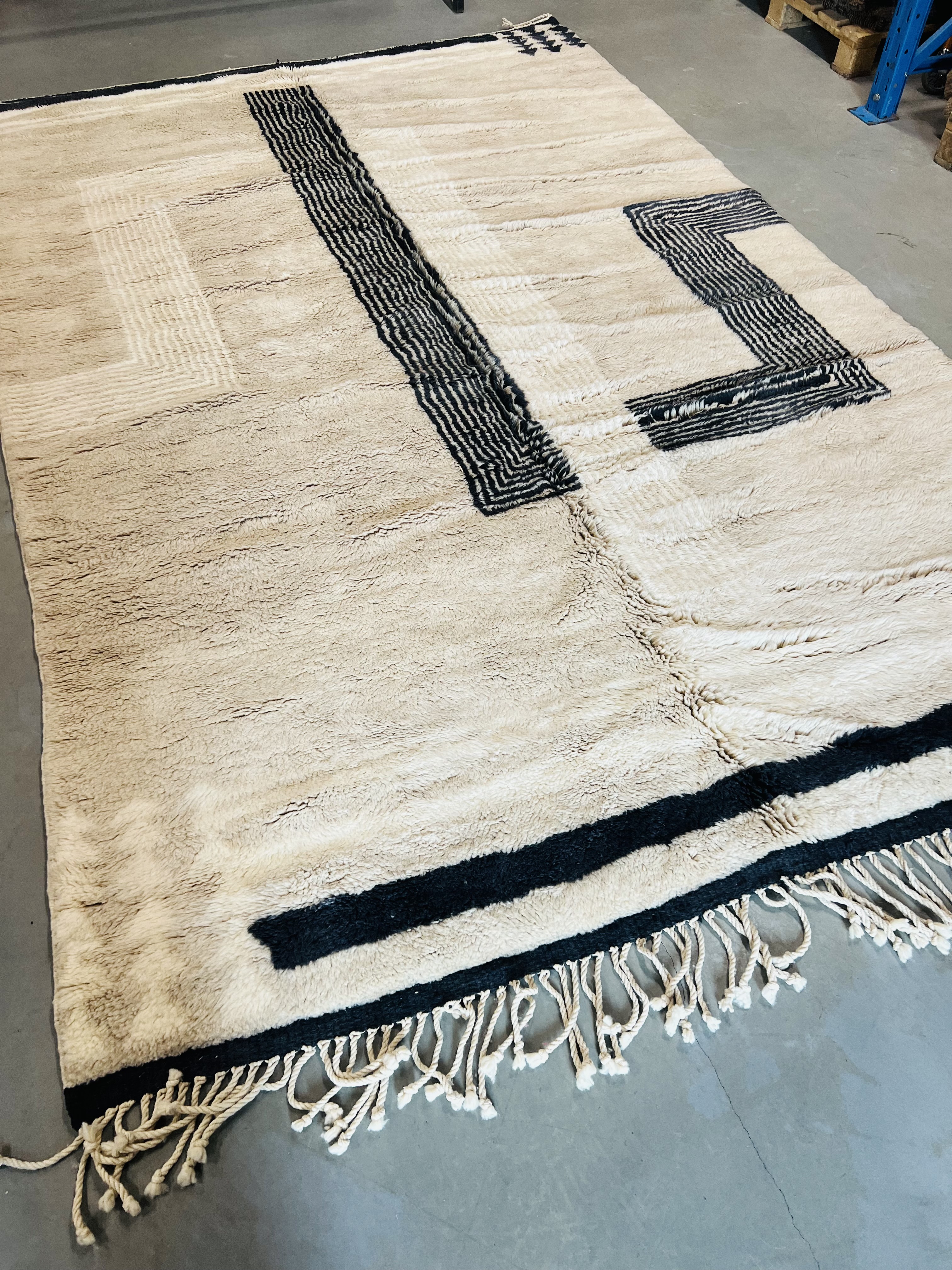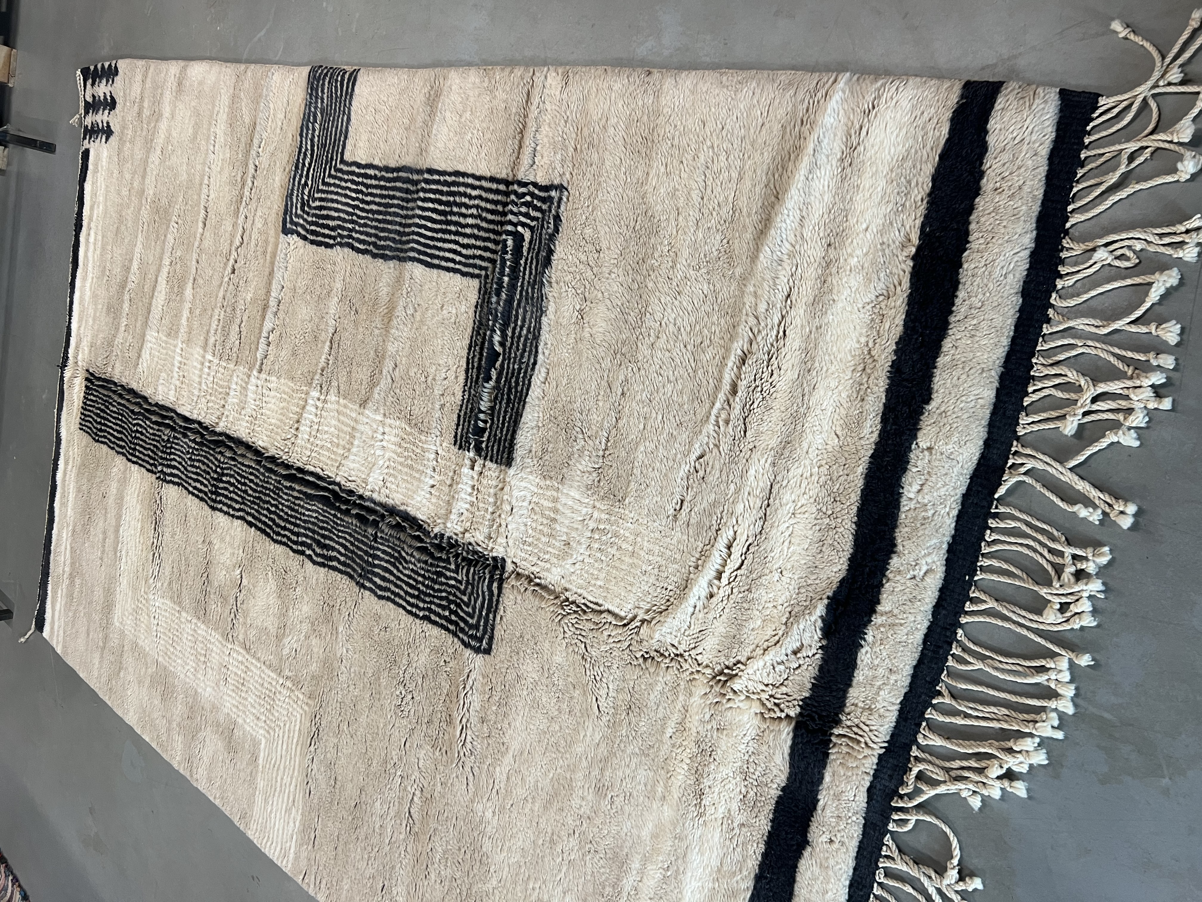 Beni Ourain is a group of 17 Berber tribes that traditionally inhabits the Atlas Mountains of Morocco. Our Beni Ourain rugs possess a spirit and a character, a real berber rug straight from the Atlas. It is a reflection of the daily life of the women that make it. Most of our vintage Beni rugs are cream(ivory) in color, although differences in the tone are found depending on the sheep’s color. They are considered to be the most prestigious rugs in Morocco, made from the very finest wool.