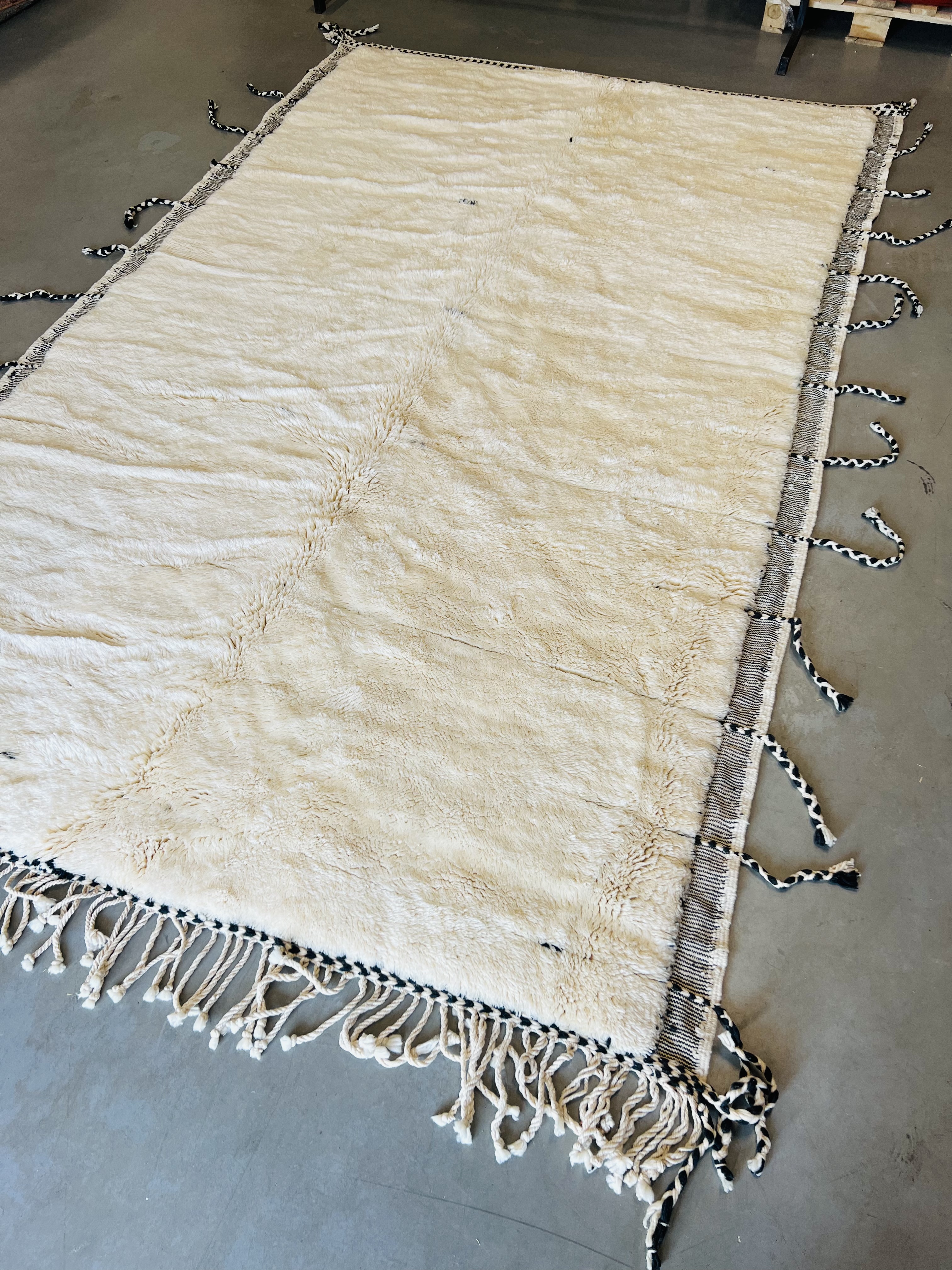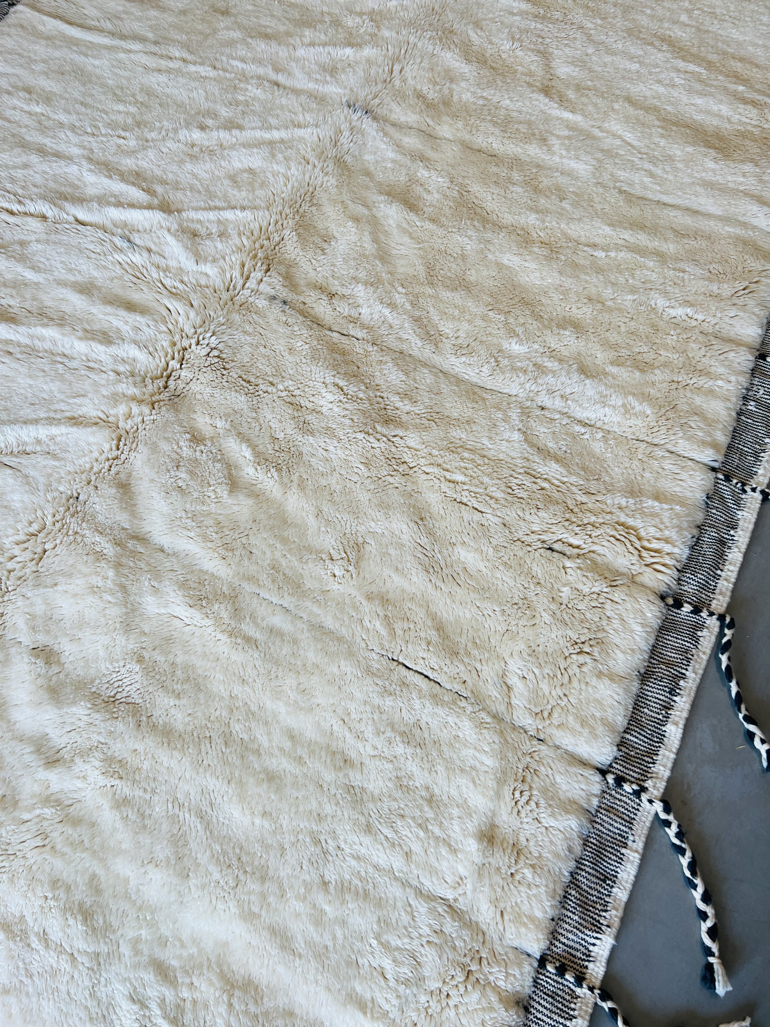 Beni Ourain is a group of 17 Berber tribes that traditionally inhabits the Atlas Mountains of Morocco. Our Beni Ourain rugs possess a spirit and a character, a real berber rug straight from the Atlas. It is a reflection of the daily life of the women that make it. Most of our vintage Beni rugs are cream(ivory) in color, although differences in the tone are found depending on the sheep’s color. They are considered to be the most prestigious rugs in Morocco, made from the very finest wool.