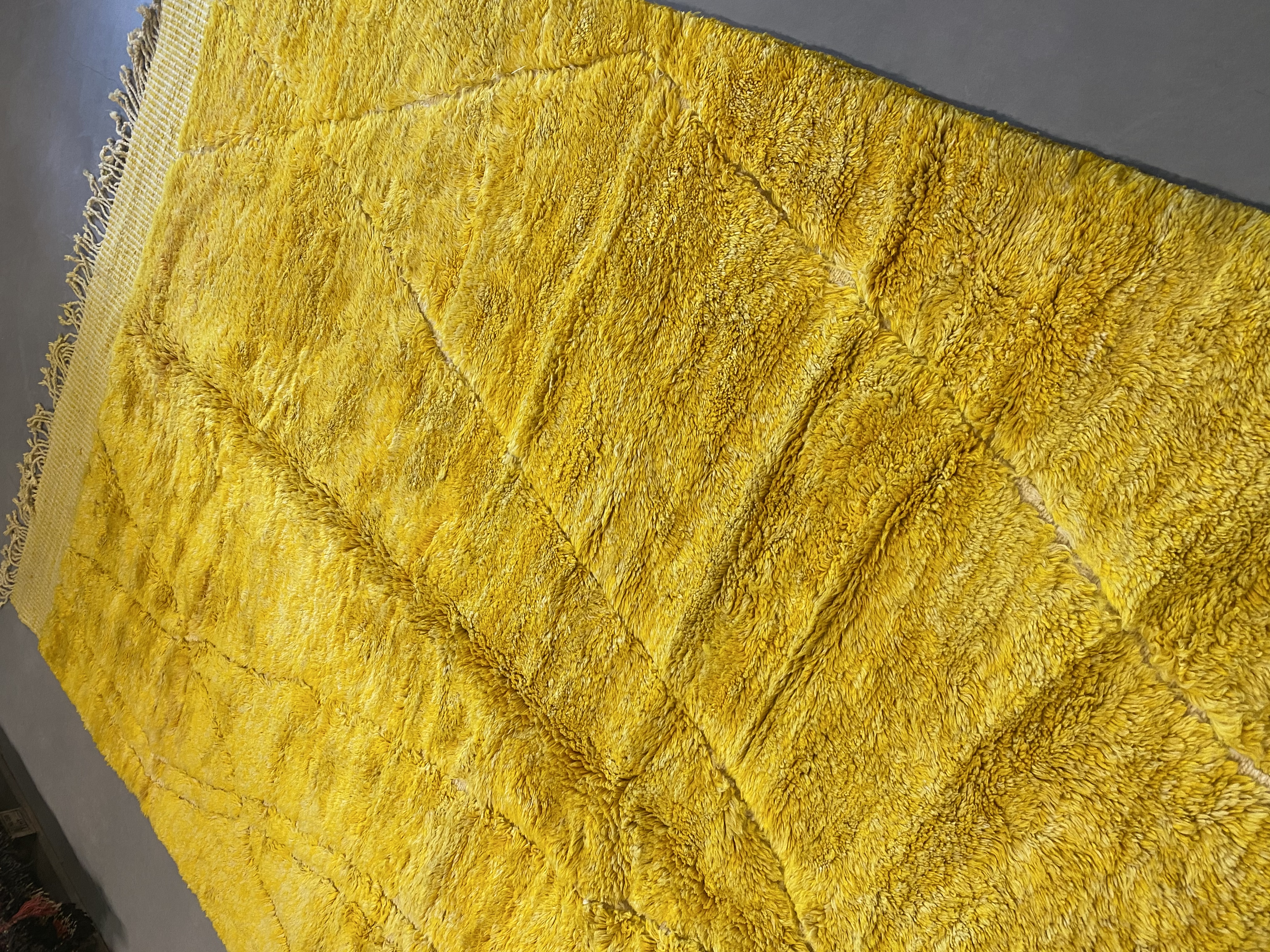 Beni Ourain is a group of 17 Berber tribes that traditionally inhabits the Atlas Mountains of Morocco. Our Beni Ourain rugs possess a spirit and a character, a real berber rug straight from the Atlas. It is a reflection of the daily life of the women that make it. Most of our vintage Beni rugs are cream(ivory) in color, although differences in the tone are found depending on the sheep’s color. They are considered to be the most prestigious rugs in Morocco, made from the very finest wool.