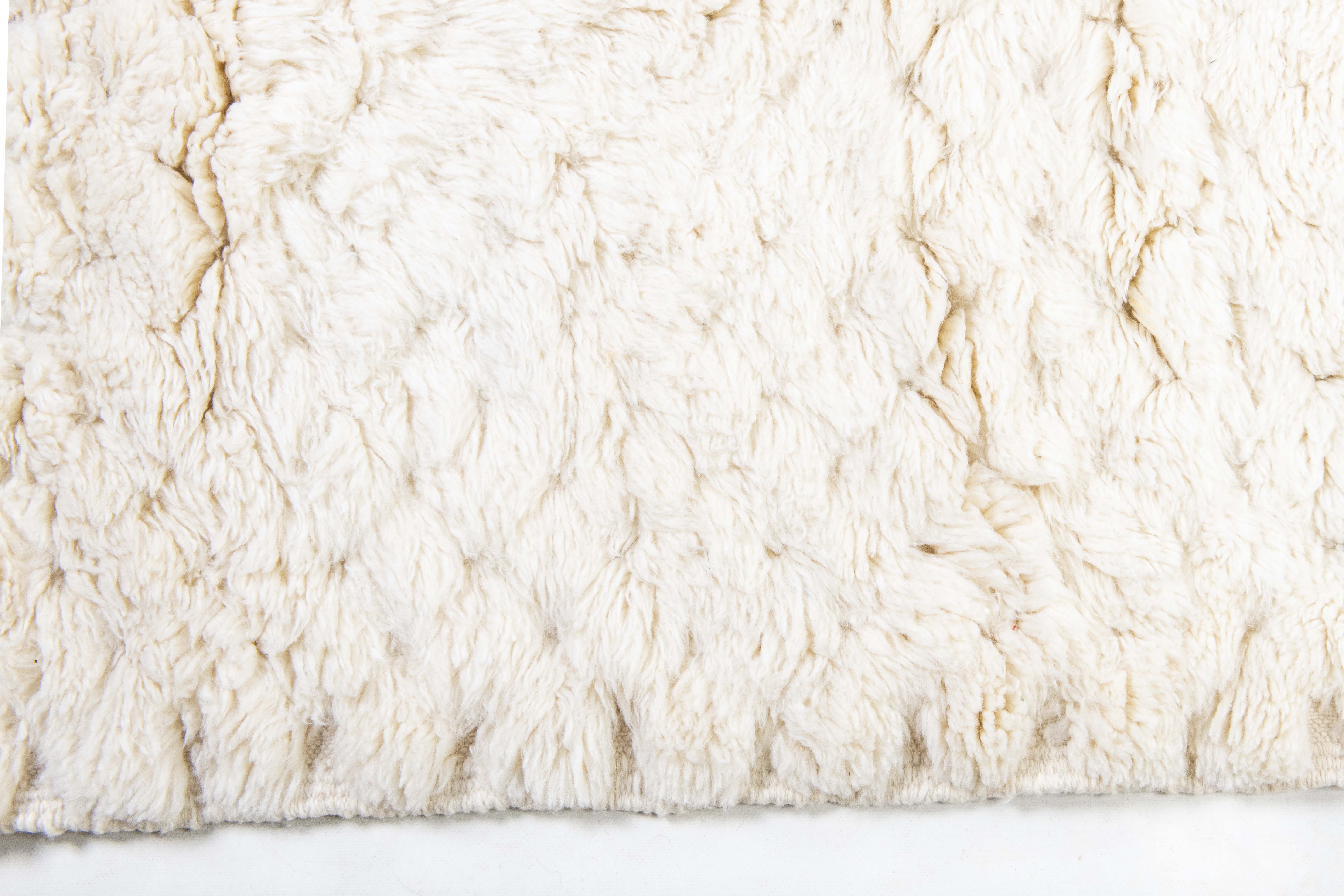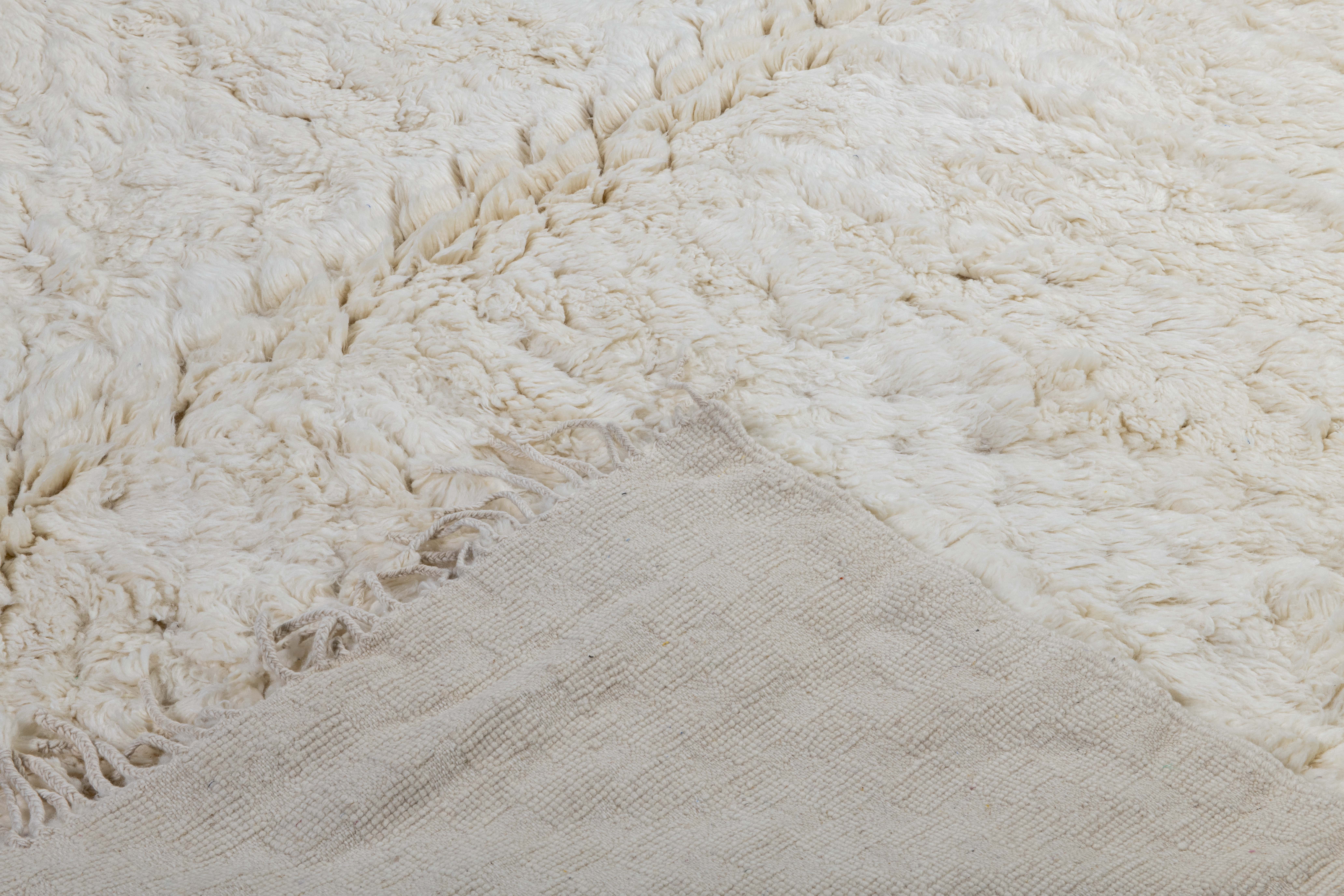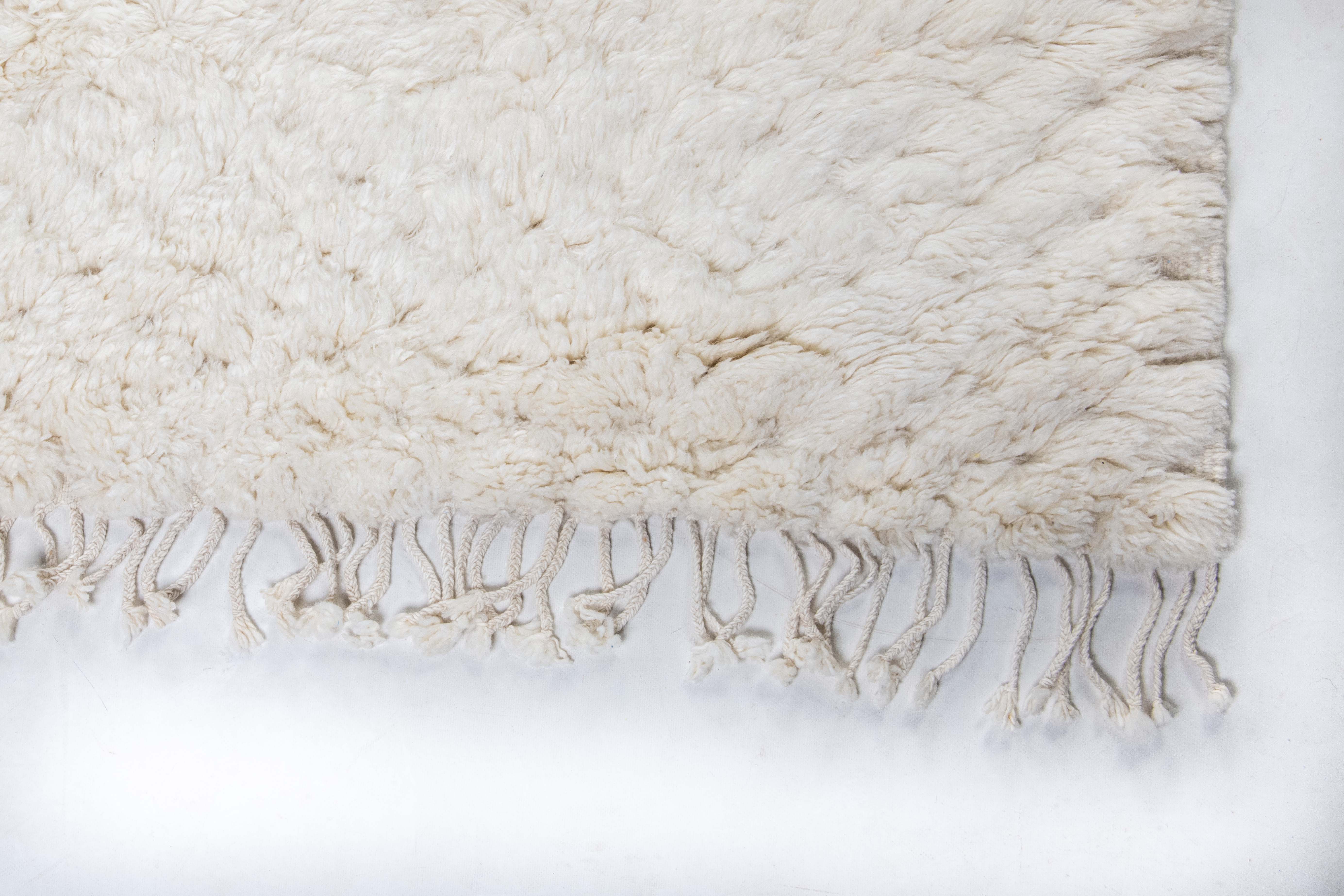 Beni Ourain is a group of 17 Berber tribes that traditionally inhabits the Atlas Mountains of Morocco. Our Beni Ourain rugs possess a spirit and a character, a real berber rug straight from the Atlas. It is a reflection of the daily life of the women that make it. Most of our vintage Beni rugs are cream(ivory) in color, although differences in the tone are found depending on the sheep’s color. They are considered to be the most prestigious rugs in Morocco, made from the very finest wool.