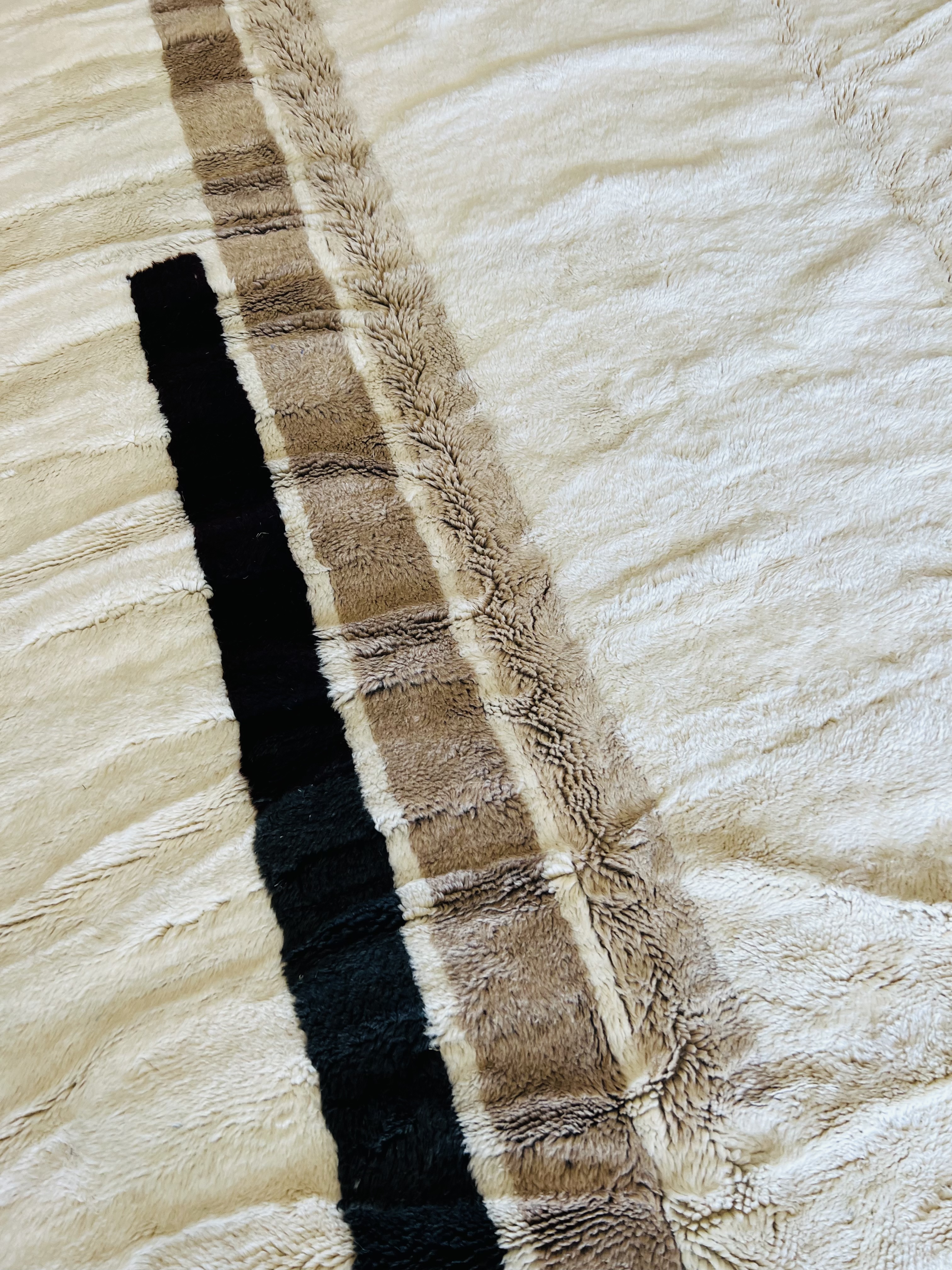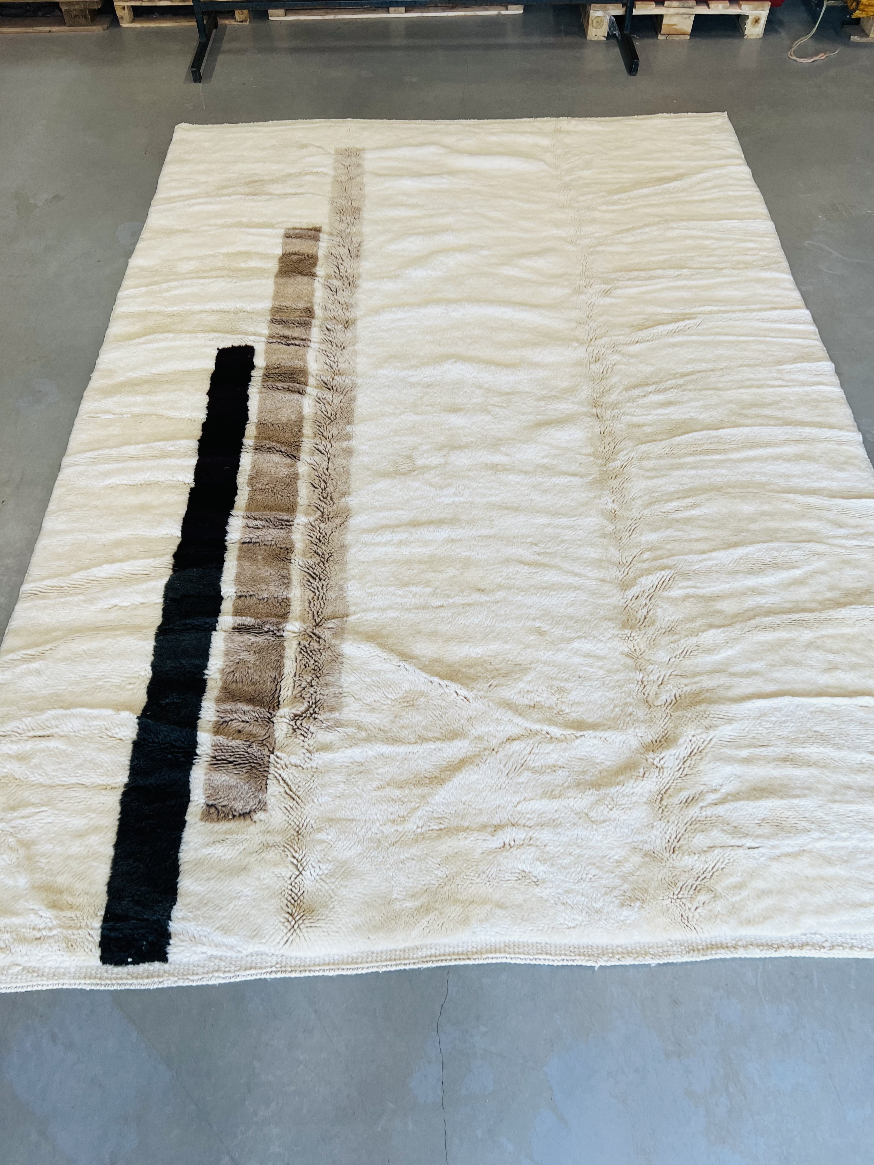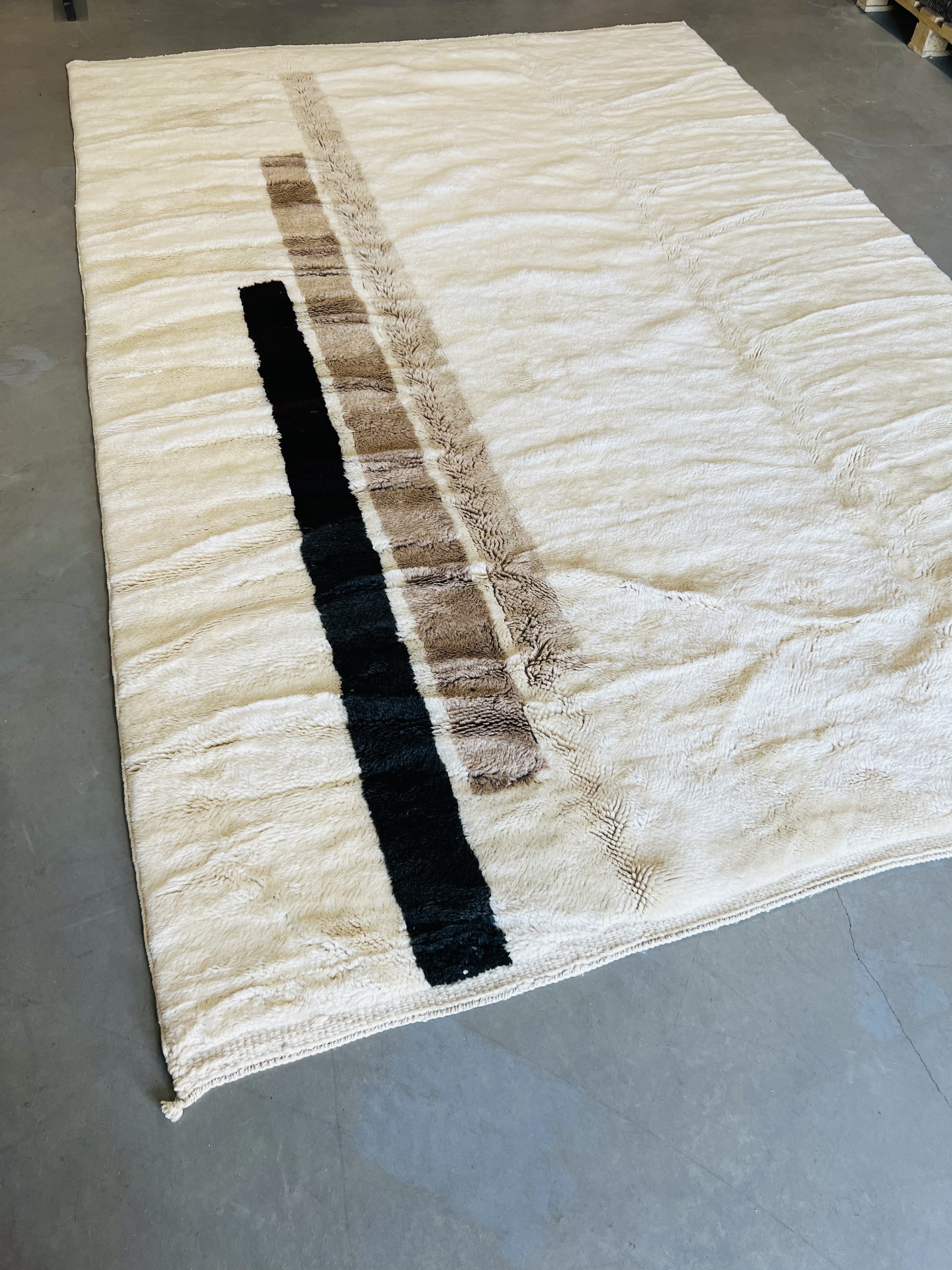 Beni Ourain is a group of 17 Berber tribes that traditionally inhabits the Atlas Mountains of Morocco. Our Beni Ourain rugs possess a spirit and a character, a real berber rug straight from the Atlas. It is a reflection of the daily life of the women that make it. Most of our vintage Beni rugs are cream(ivory) in color, although differences in the tone are found depending on the sheep’s color. They are considered to be the most prestigious rugs in Morocco, made from the very finest wool.
