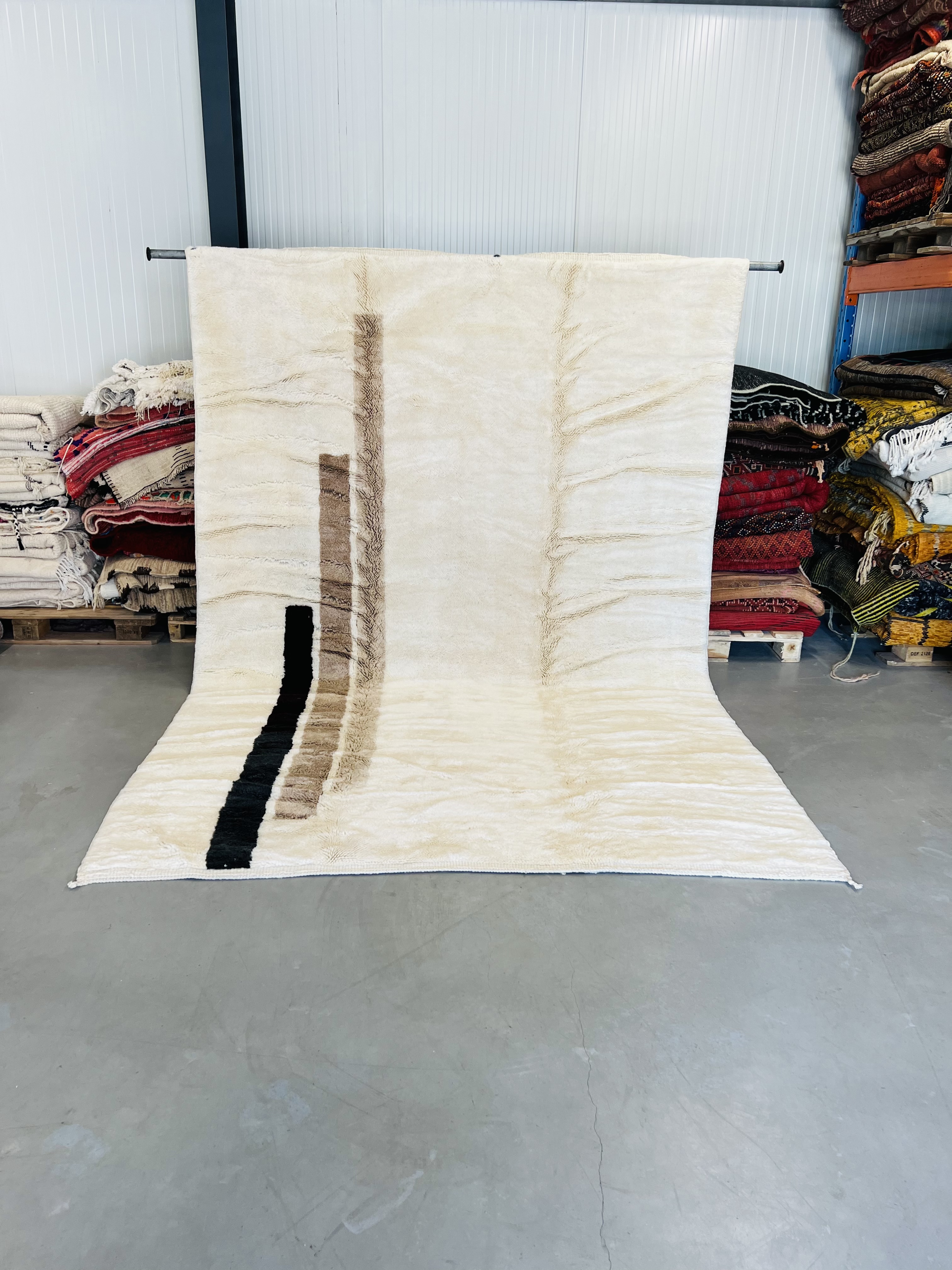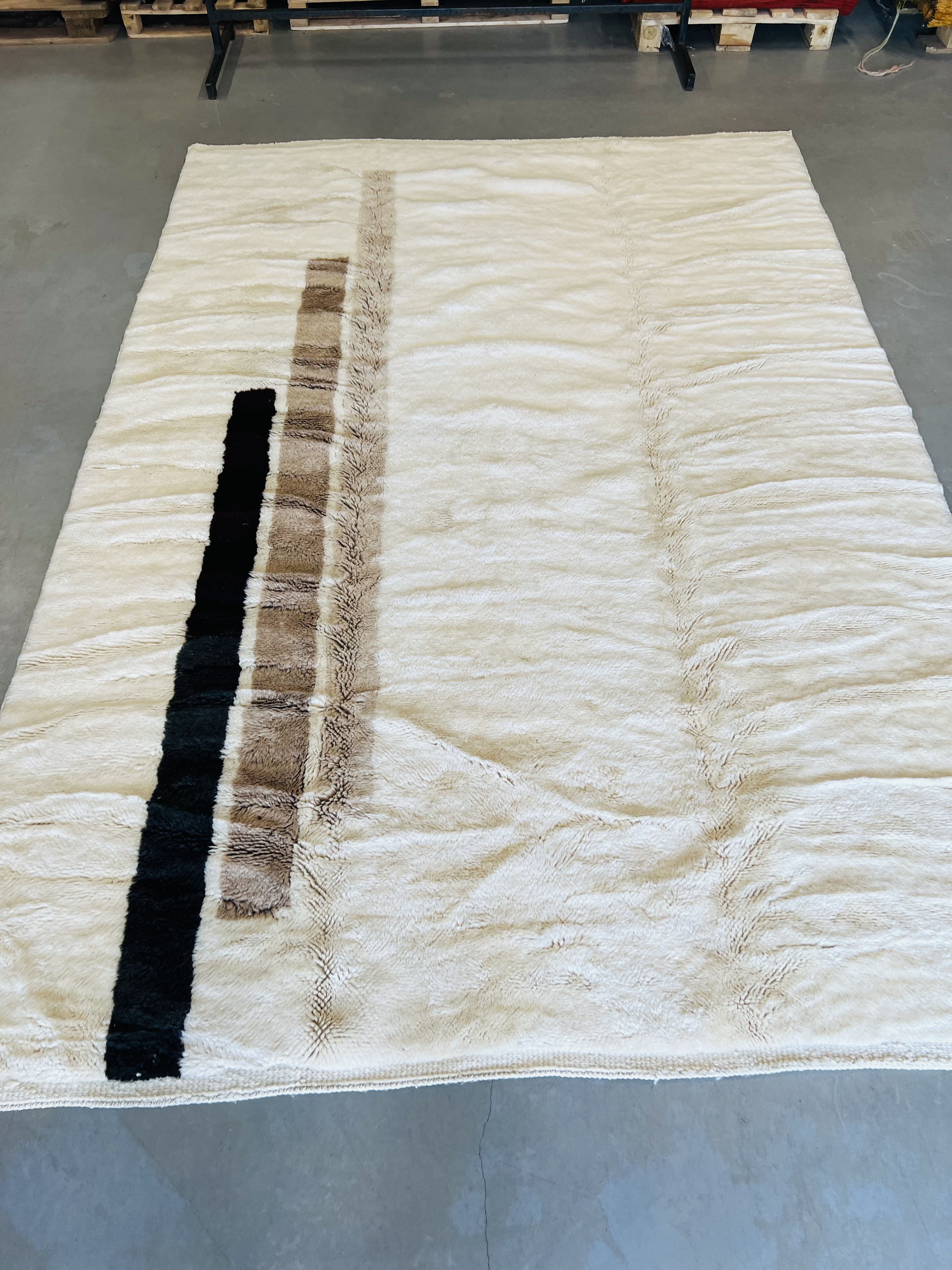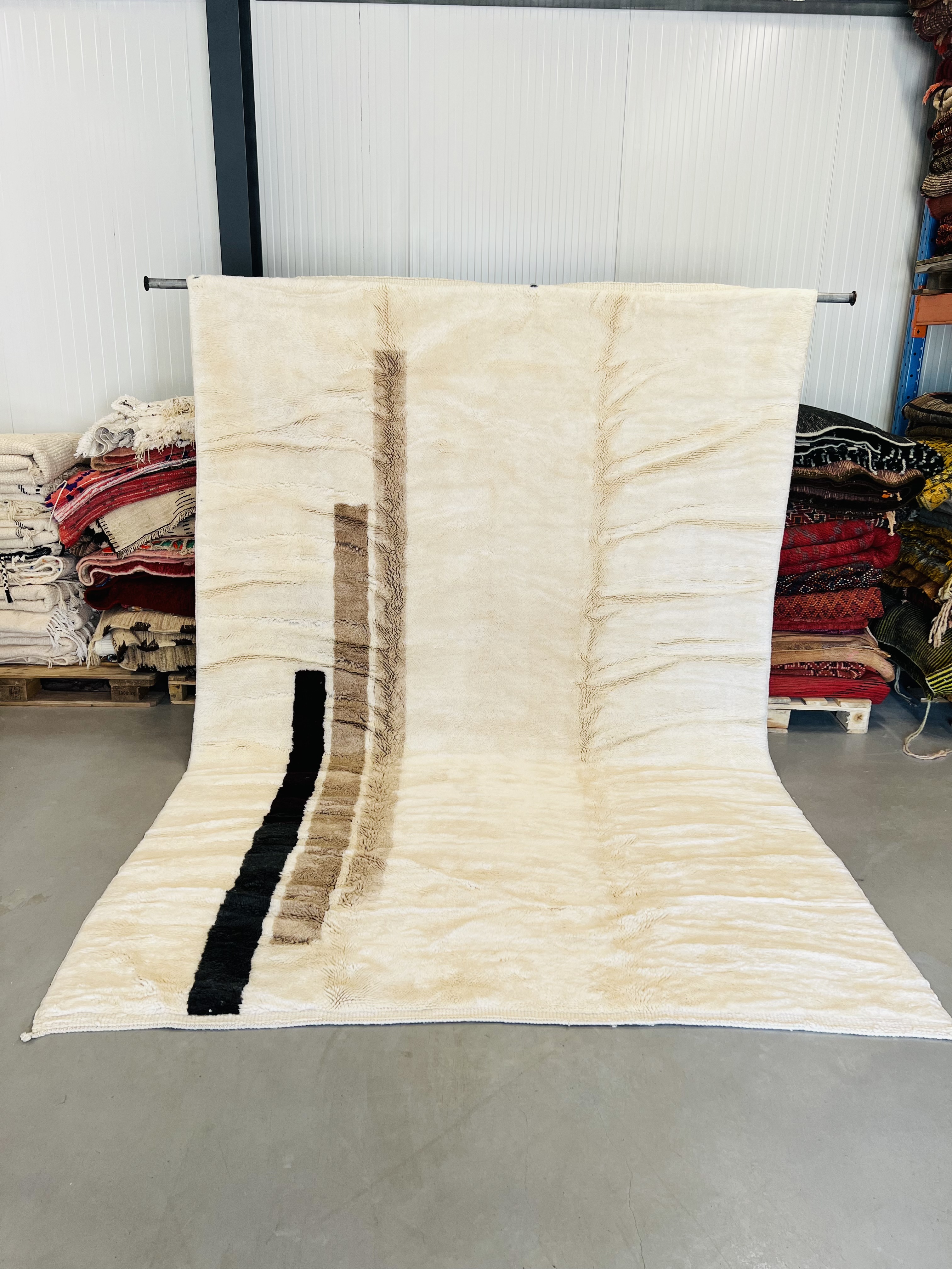 Beni Ourain is a group of 17 Berber tribes that traditionally inhabits the Atlas Mountains of Morocco. Our Beni Ourain rugs possess a spirit and a character, a real berber rug straight from the Atlas. It is a reflection of the daily life of the women that make it. Most of our vintage Beni rugs are cream(ivory) in color, although differences in the tone are found depending on the sheep’s color. They are considered to be the most prestigious rugs in Morocco, made from the very finest wool.