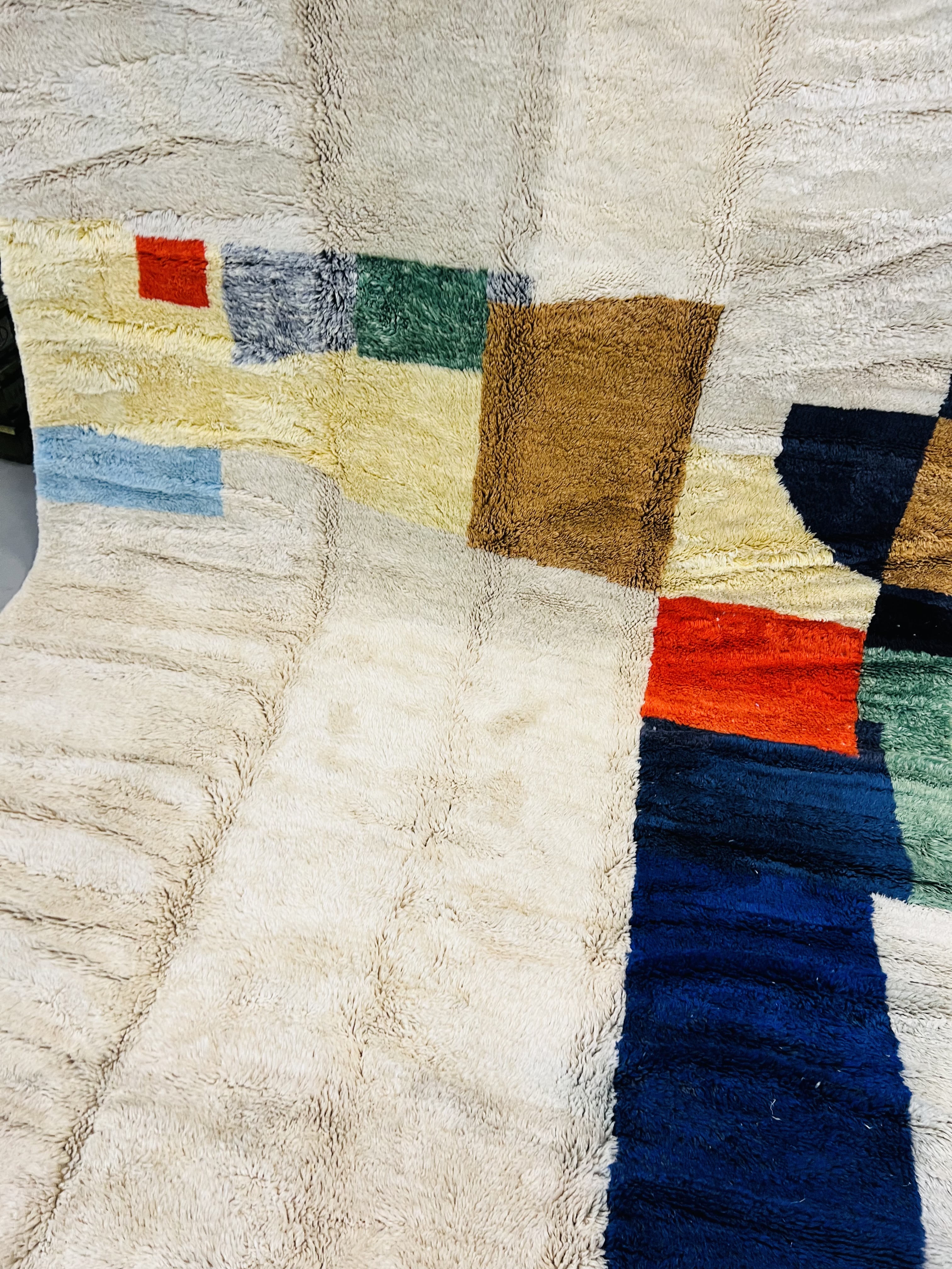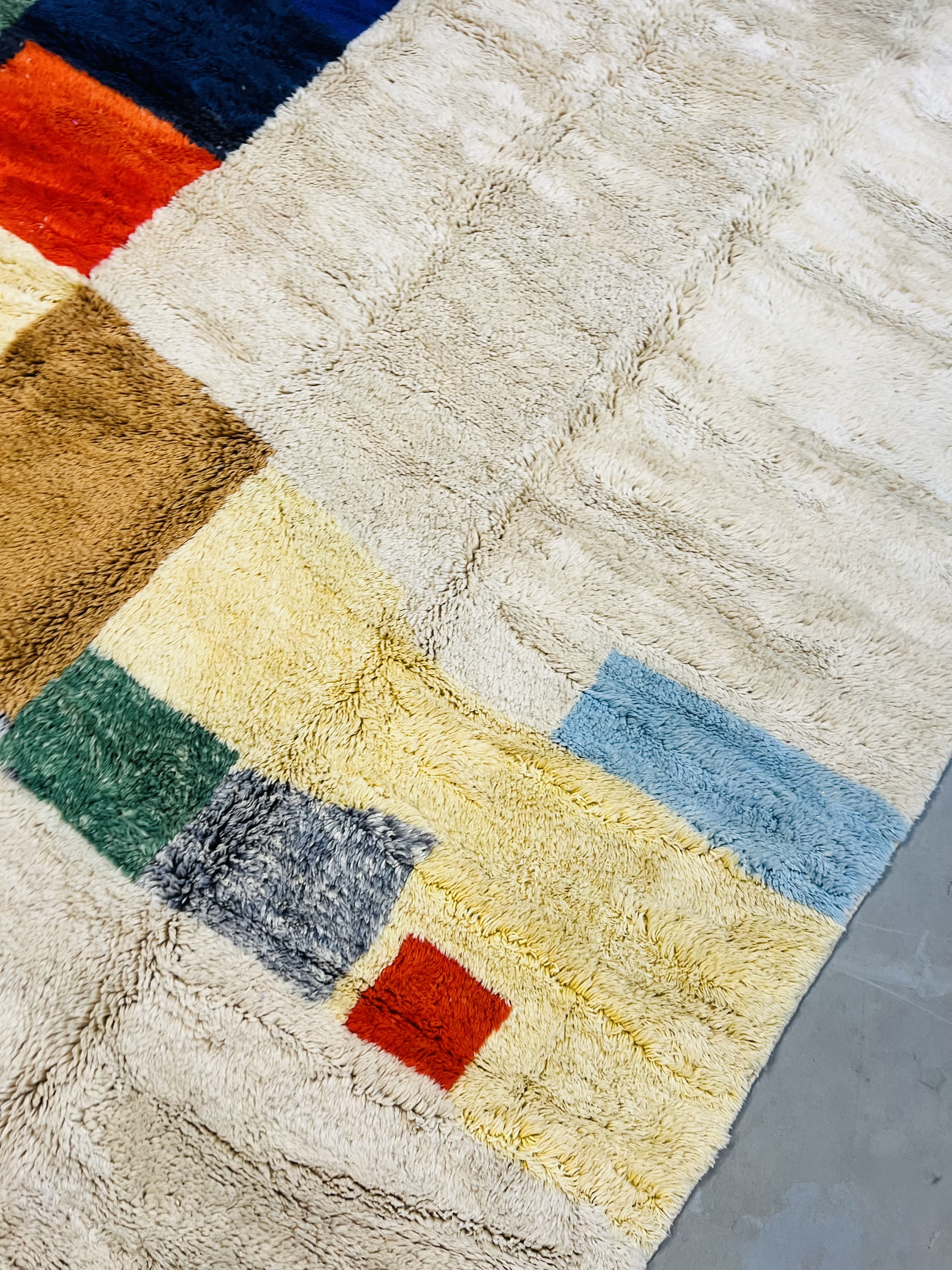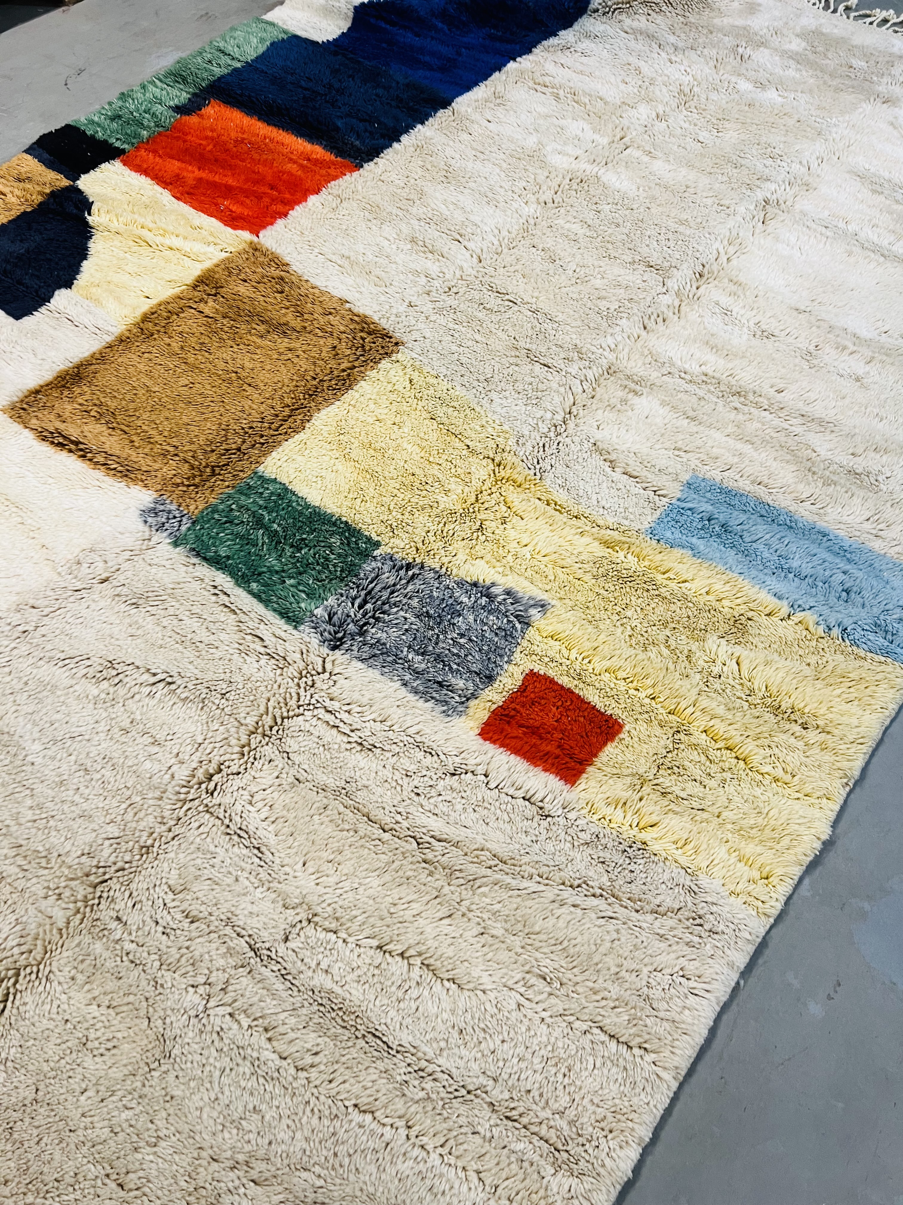 Beni Ourain is a group of 17 Berber tribes that traditionally inhabits the Atlas Mountains of Morocco. Our Beni Ourain rugs possess a spirit and a character, a real berber rug straight from the Atlas. It is a reflection of the daily life of the women that make it. Most of our vintage Beni rugs are cream(ivory) in color, although differences in the tone are found depending on the sheep’s color. They are considered to be the most prestigious rugs in Morocco, made from the very finest wool.