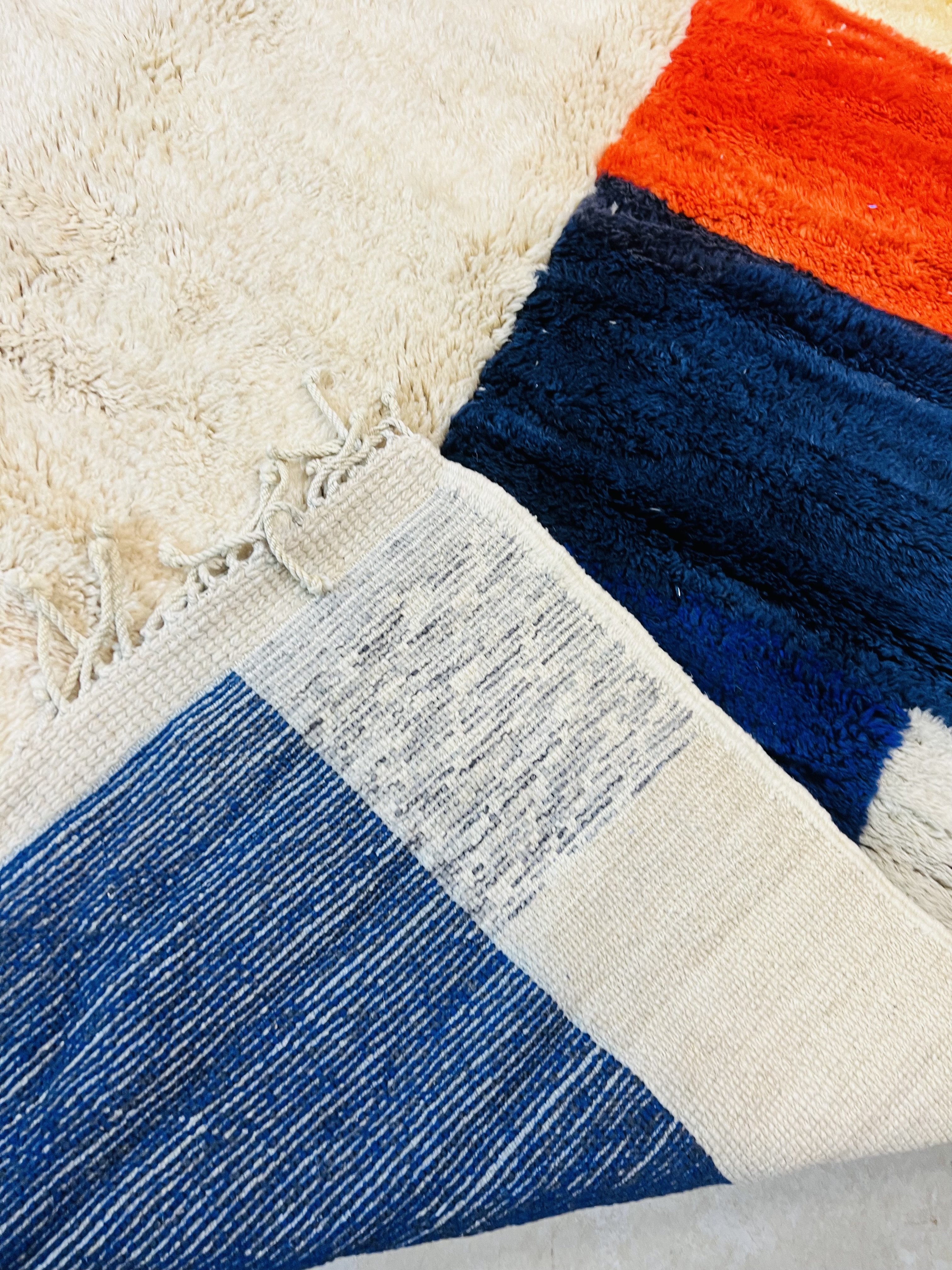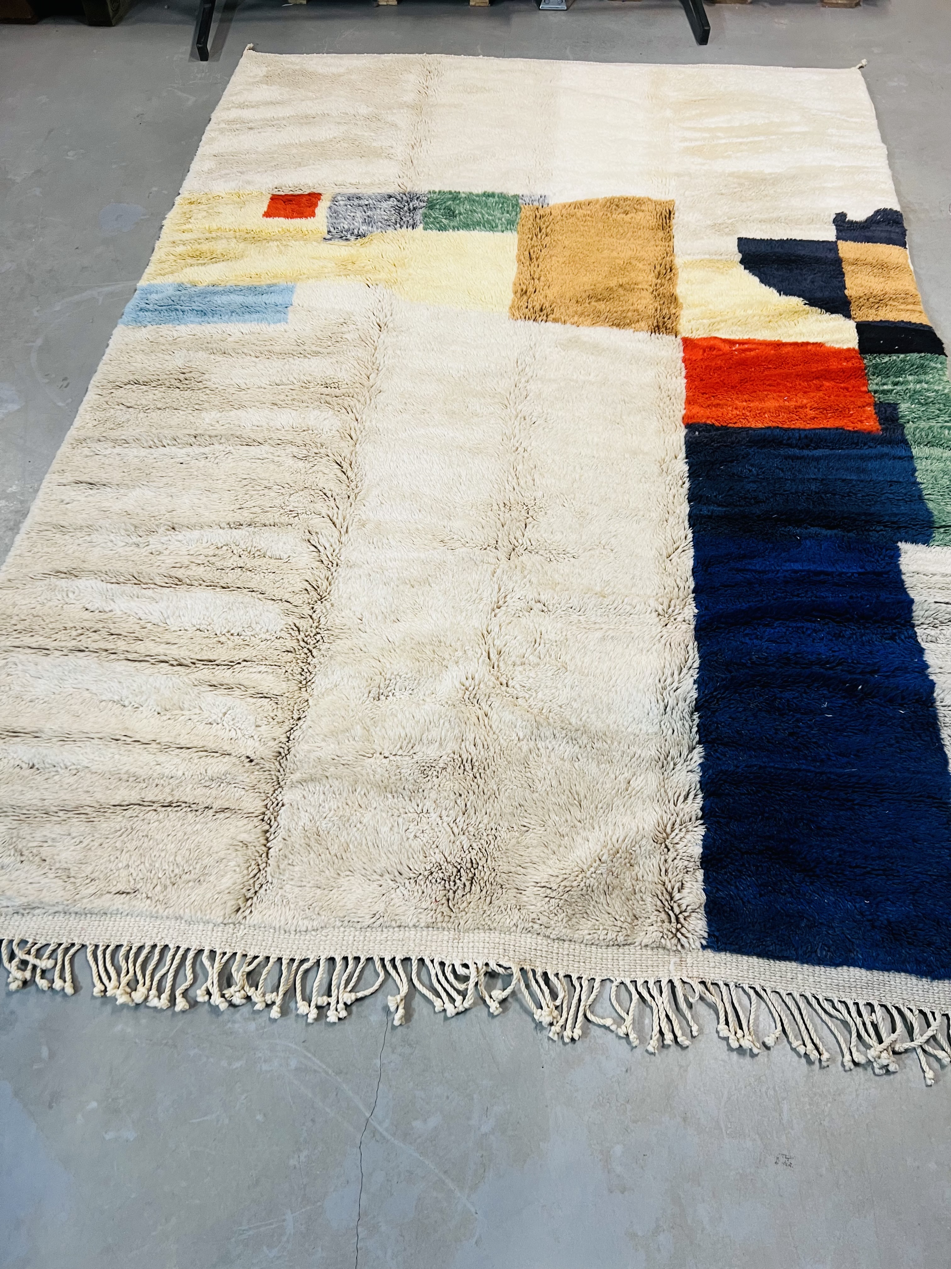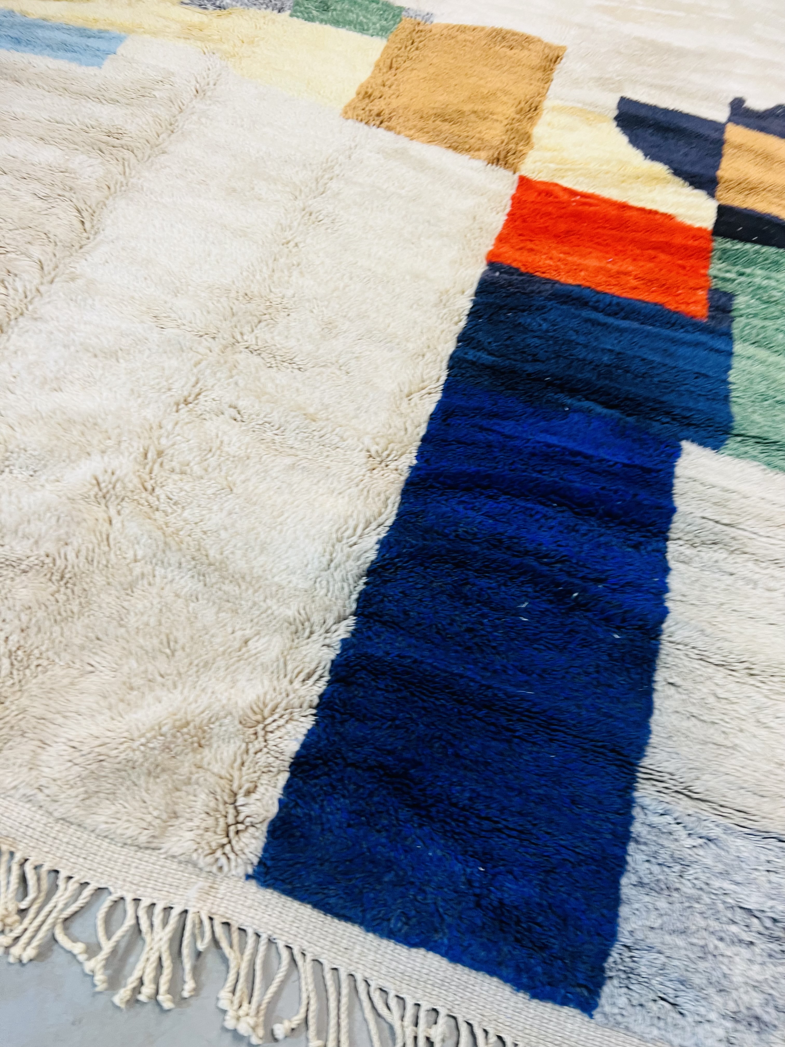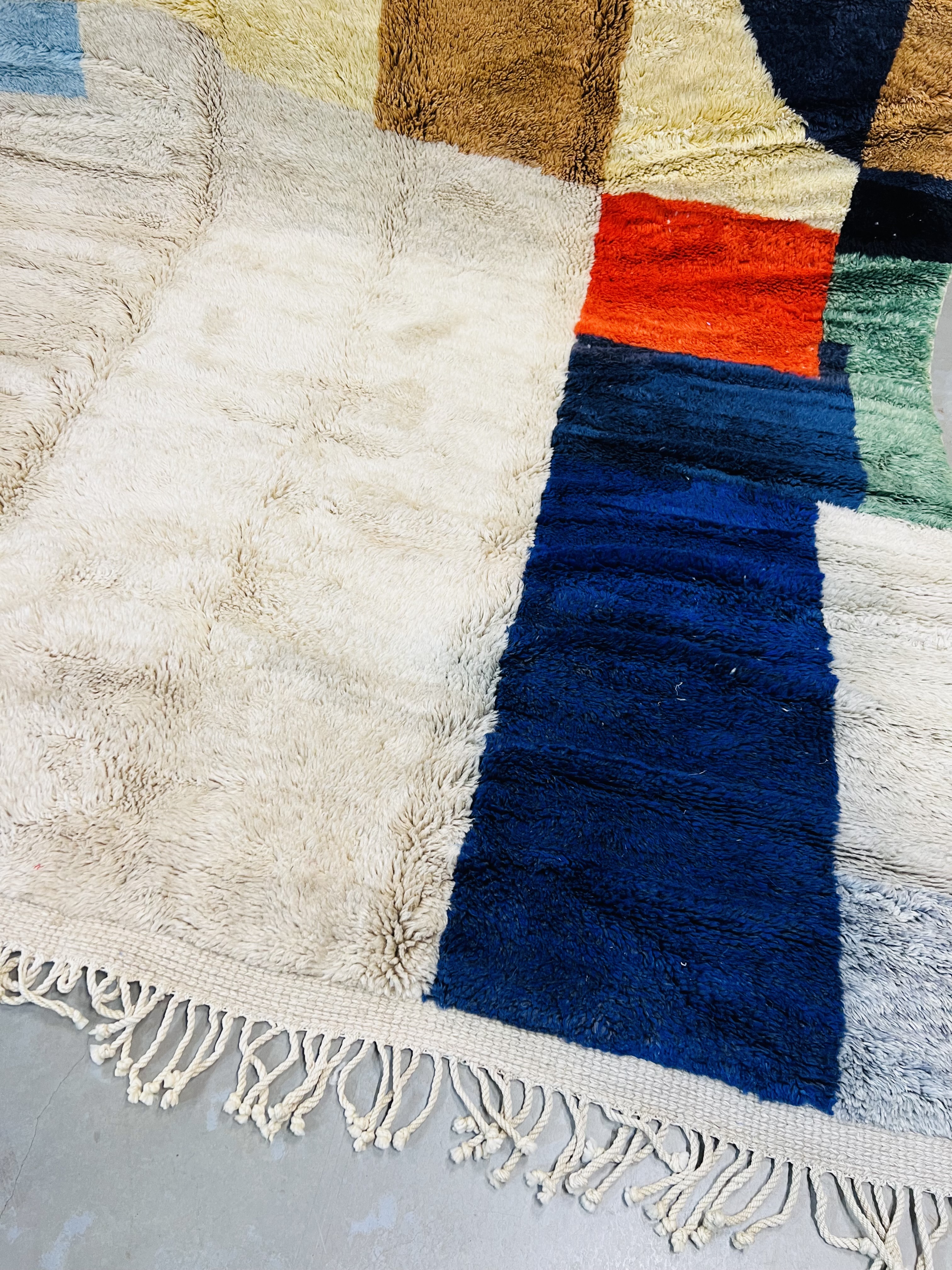 Beni Ourain is a group of 17 Berber tribes that traditionally inhabits the Atlas Mountains of Morocco. Our Beni Ourain rugs possess a spirit and a character, a real berber rug straight from the Atlas. It is a reflection of the daily life of the women that make it. Most of our vintage Beni rugs are cream(ivory) in color, although differences in the tone are found depending on the sheep’s color. They are considered to be the most prestigious rugs in Morocco, made from the very finest wool.