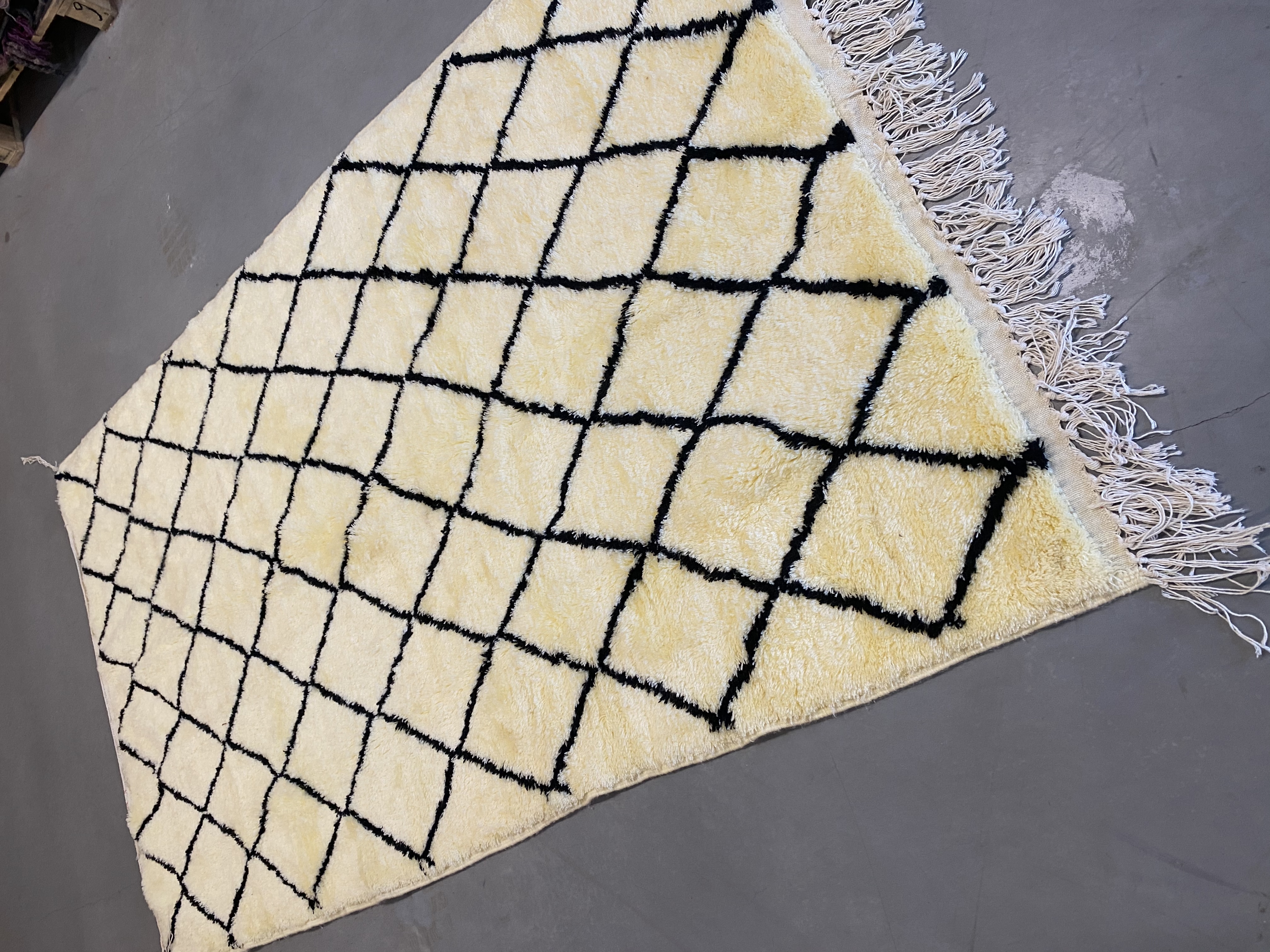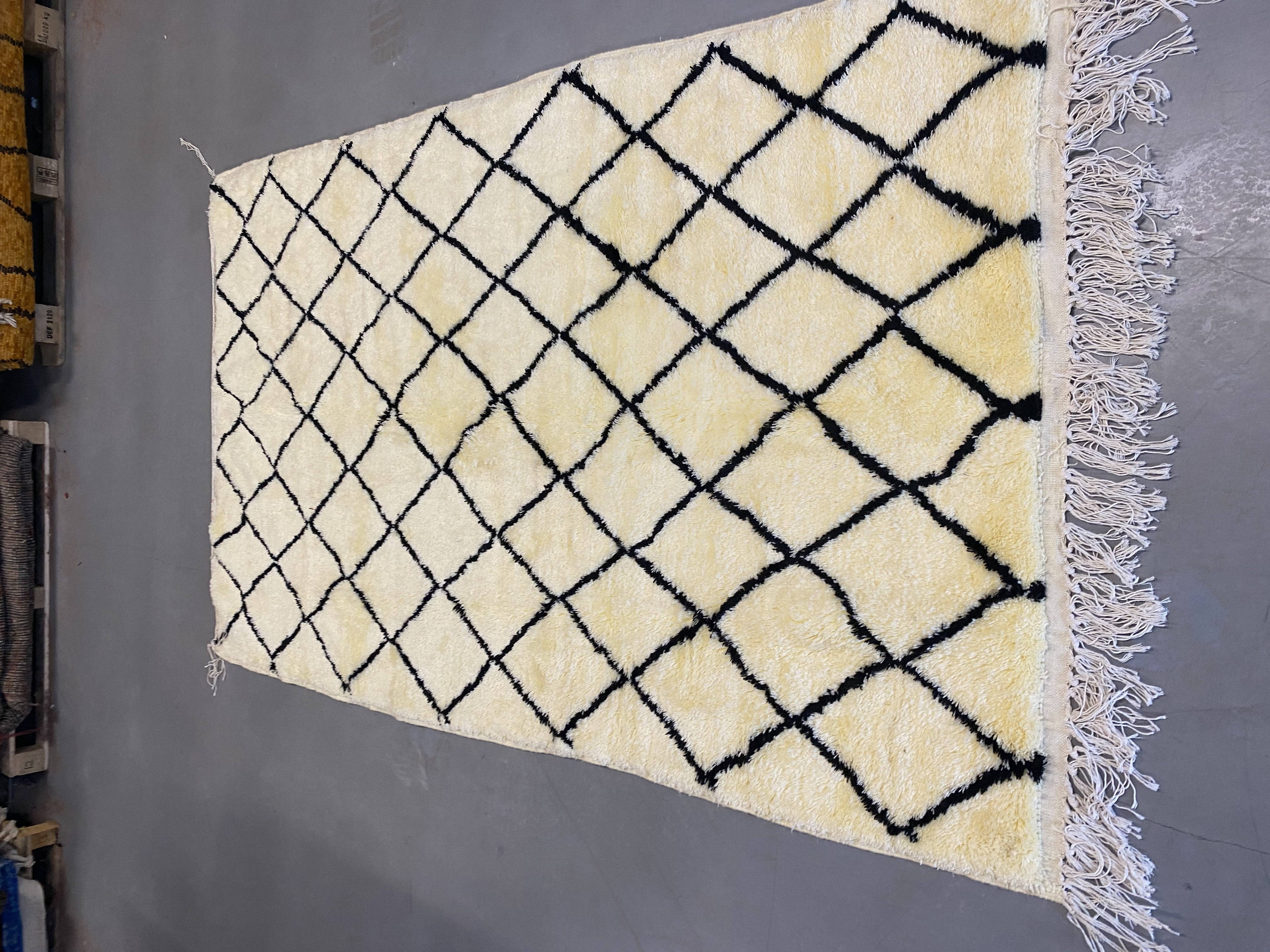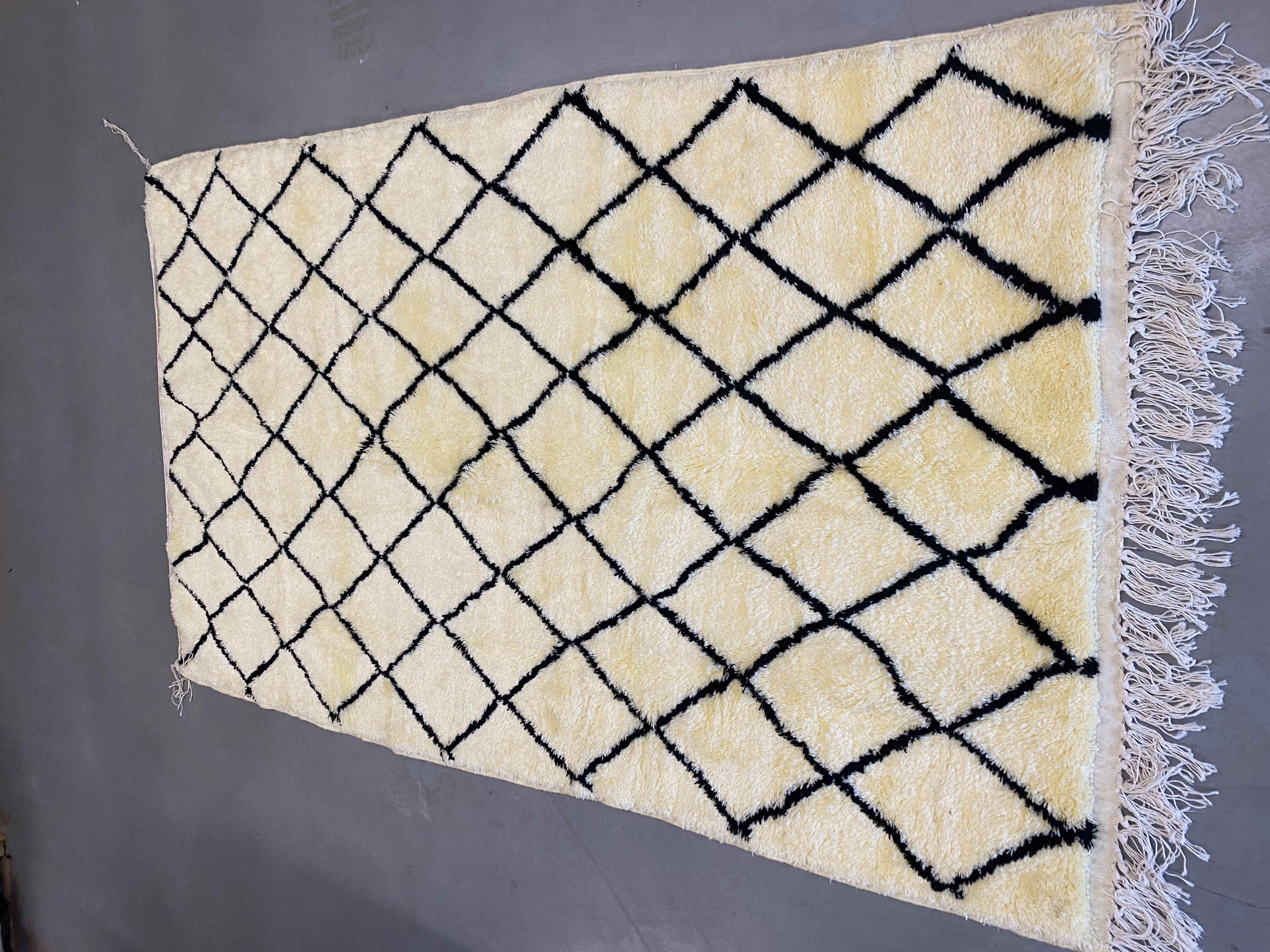 Beni Ourain is a group of 17 Berber tribes that traditionally inhabits the Atlas Mountains of Morocco. Our Beni Ourain rugs possess a spirit and a character, a real berber rug straight from the Atlas. It is a reflection of the daily life of the women that make it. Most of our vintage Beni rugs are cream(ivory) in color, although differences in the tone are found depending on the sheep’s color. They are considered to be the most prestigious rugs in Morocco, made from the very finest wool.
