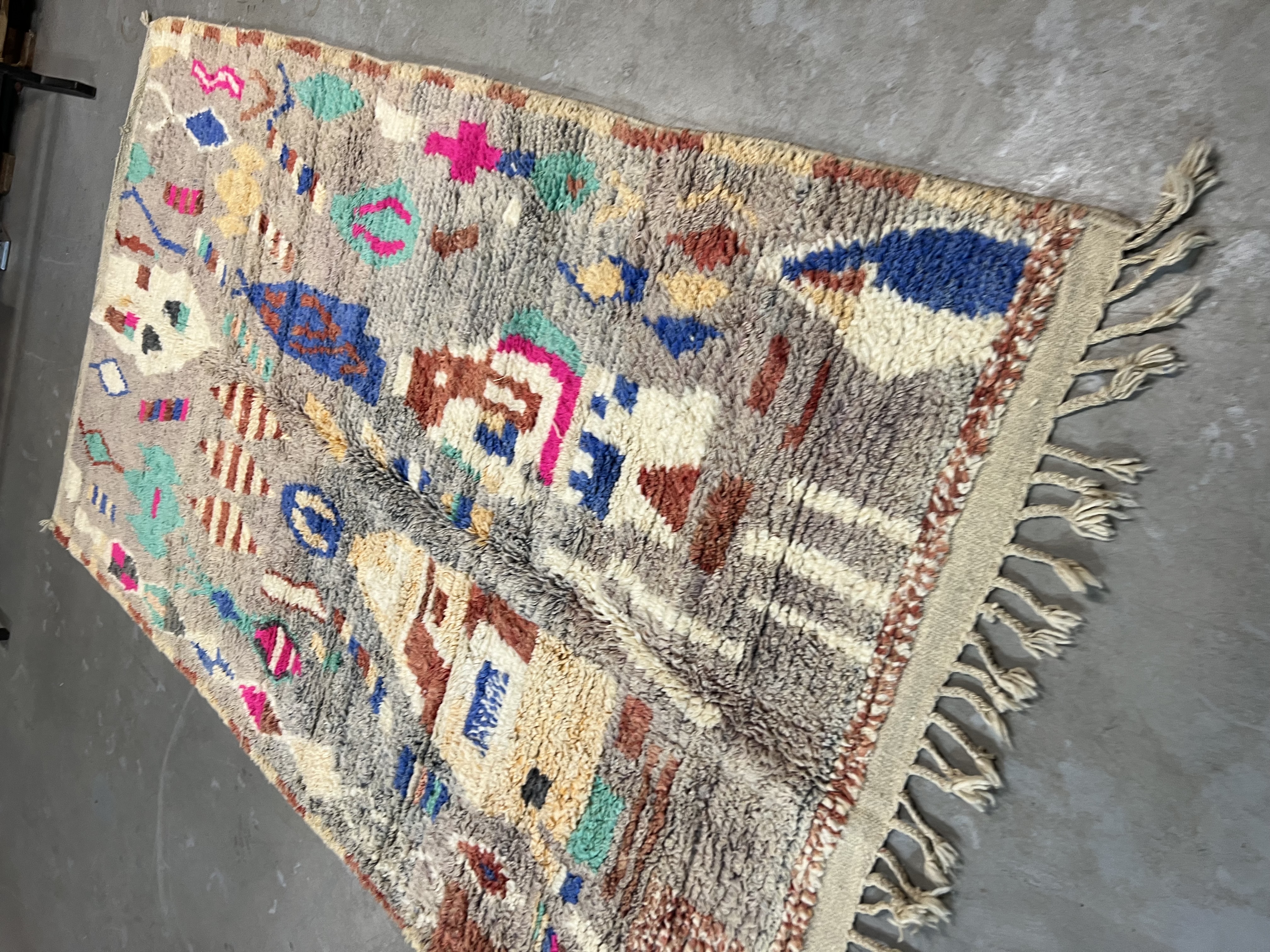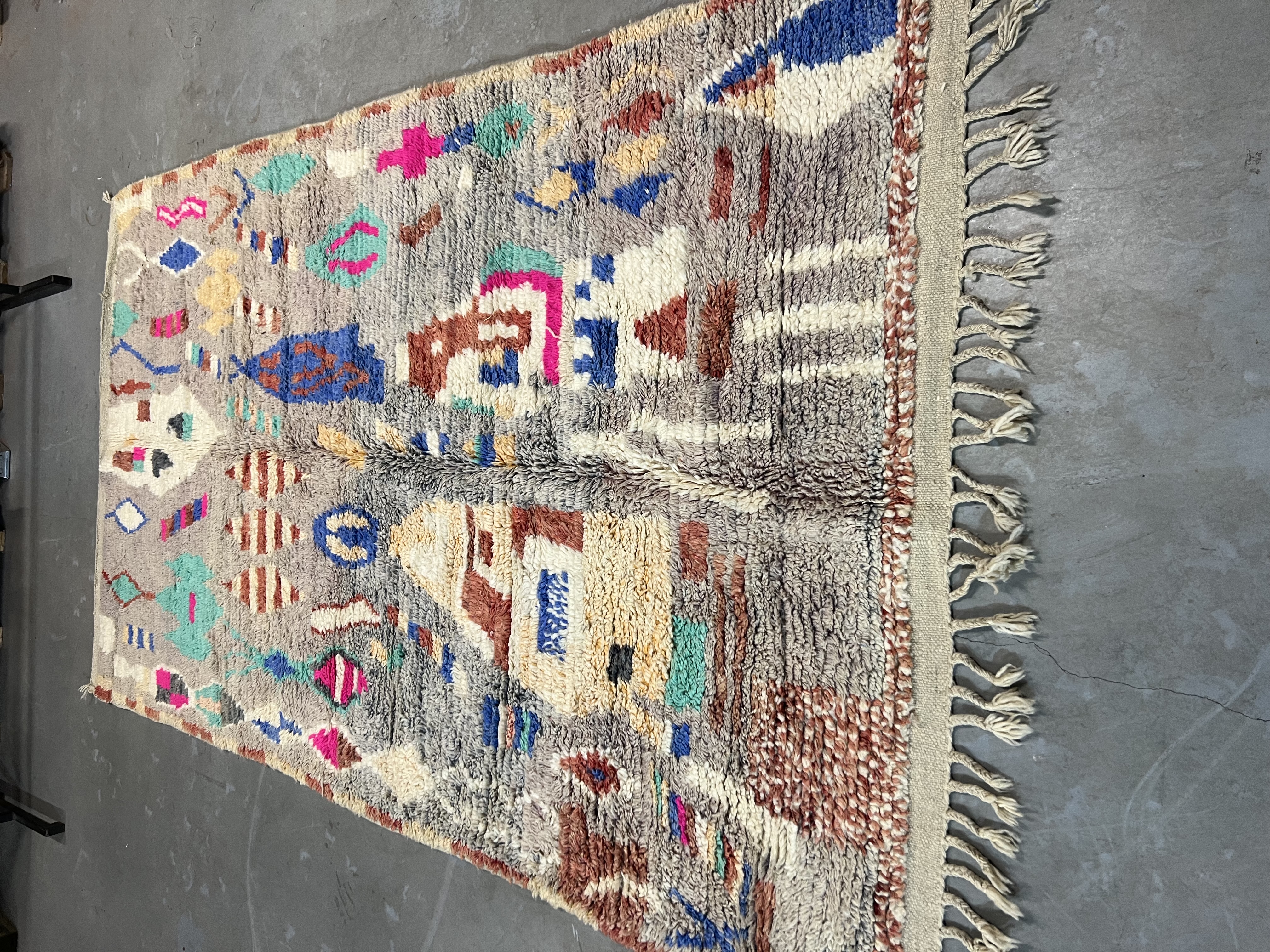 Found in the Eastern part of the Haouz, the region around Boujaad produces some of the most beautiful Moroccan rugs available today. They have a similar course structure to the rugs made around the Middle Atlas, however the imagery and design within is very different from any traditional rug you may have seen from other regions.