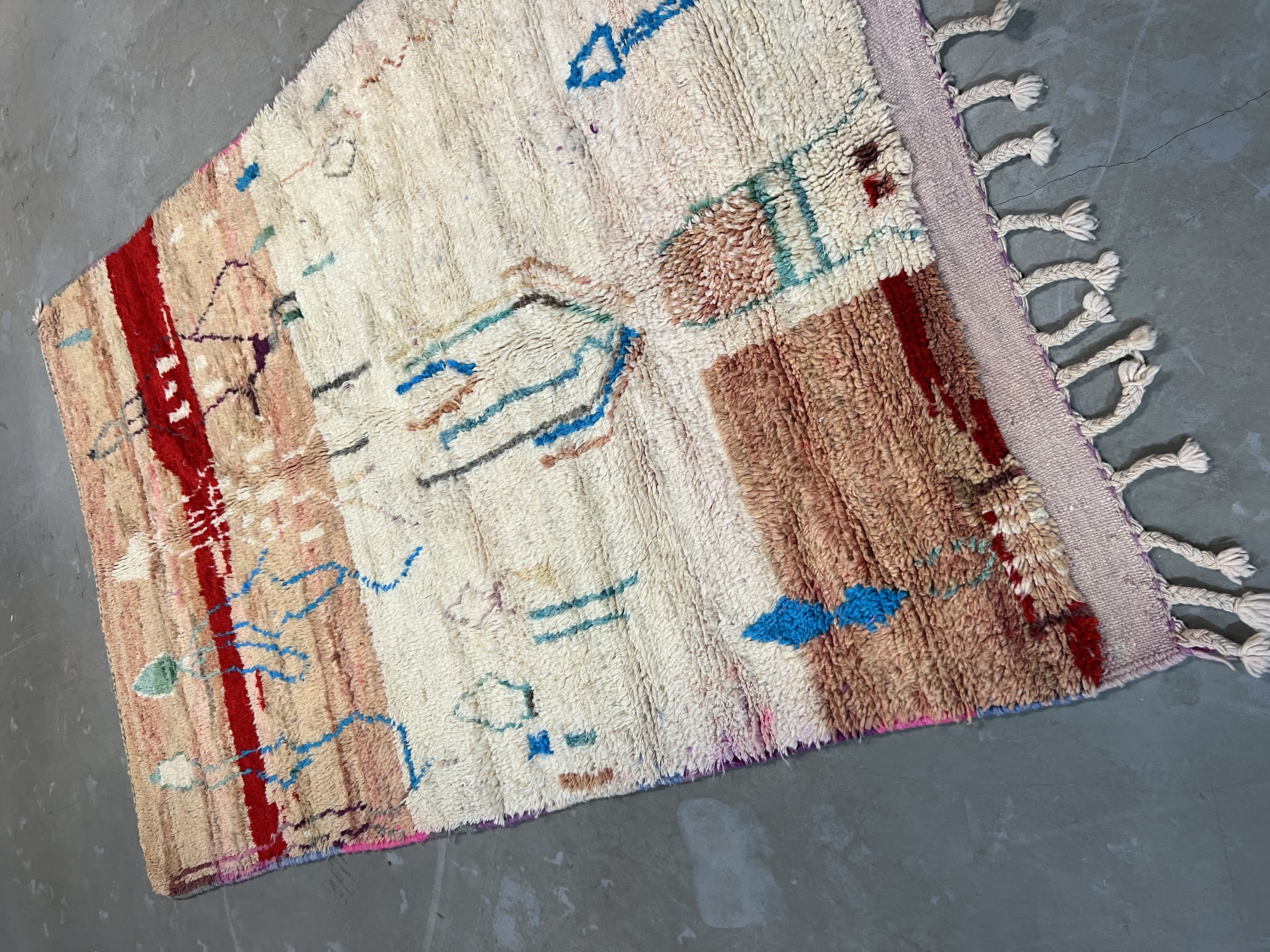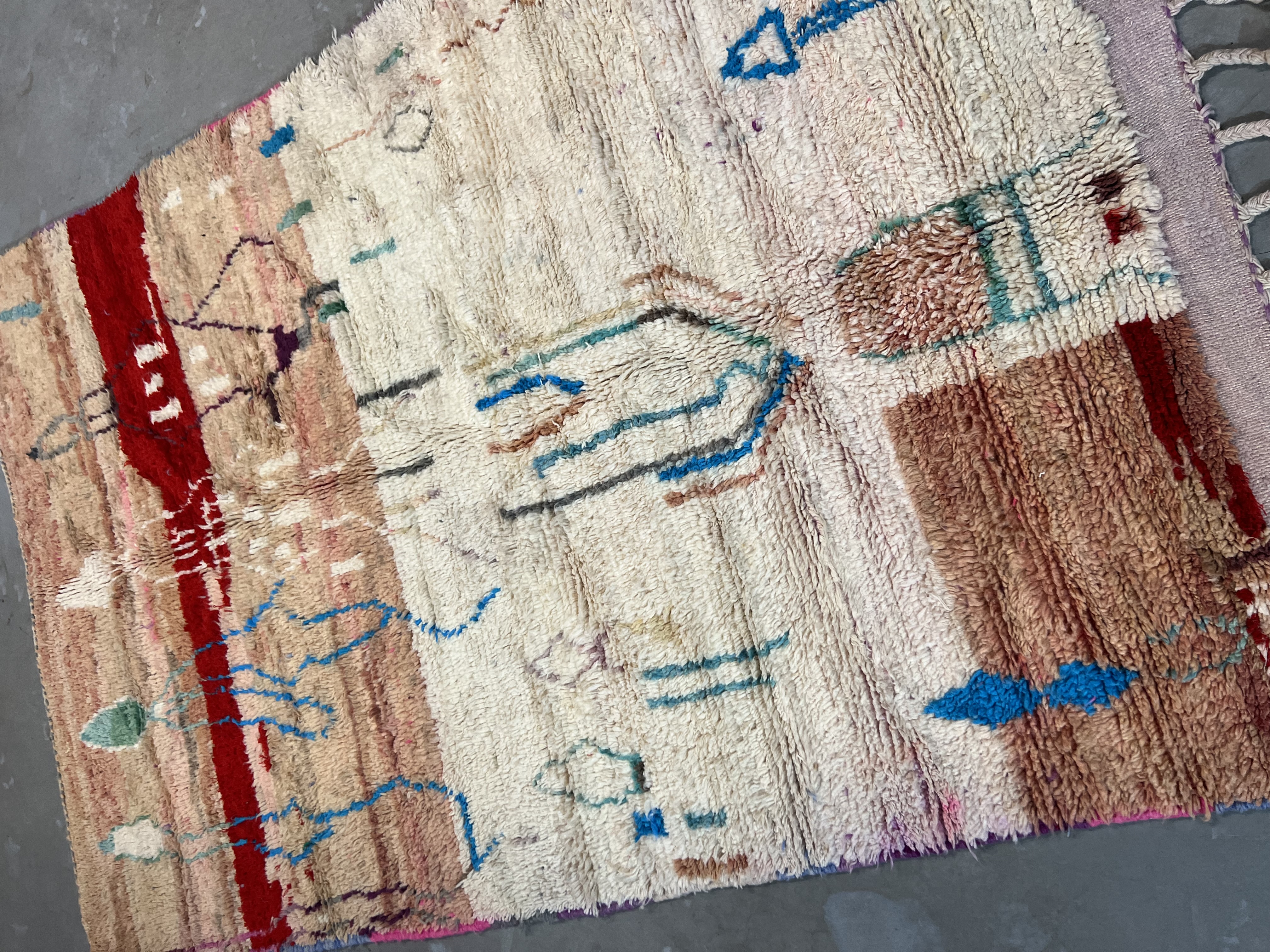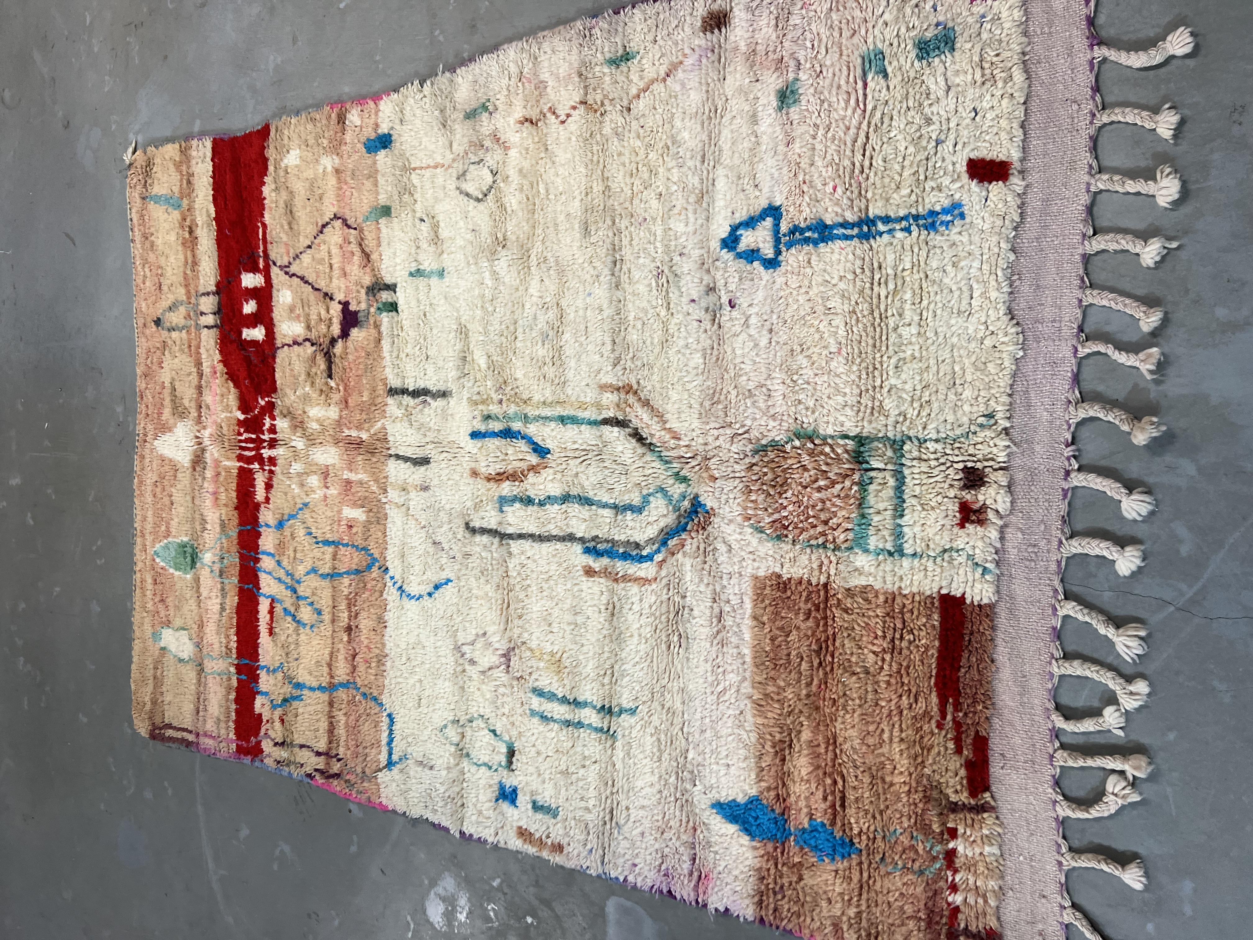 Found in the Eastern part of the Haouz, the region around Boujaad produces some of the most beautiful Moroccan rugs available today. They have a similar course structure to the rugs made around the Middle Atlas, however the imagery and design within is very different from any traditional rug you may have seen from other regions.