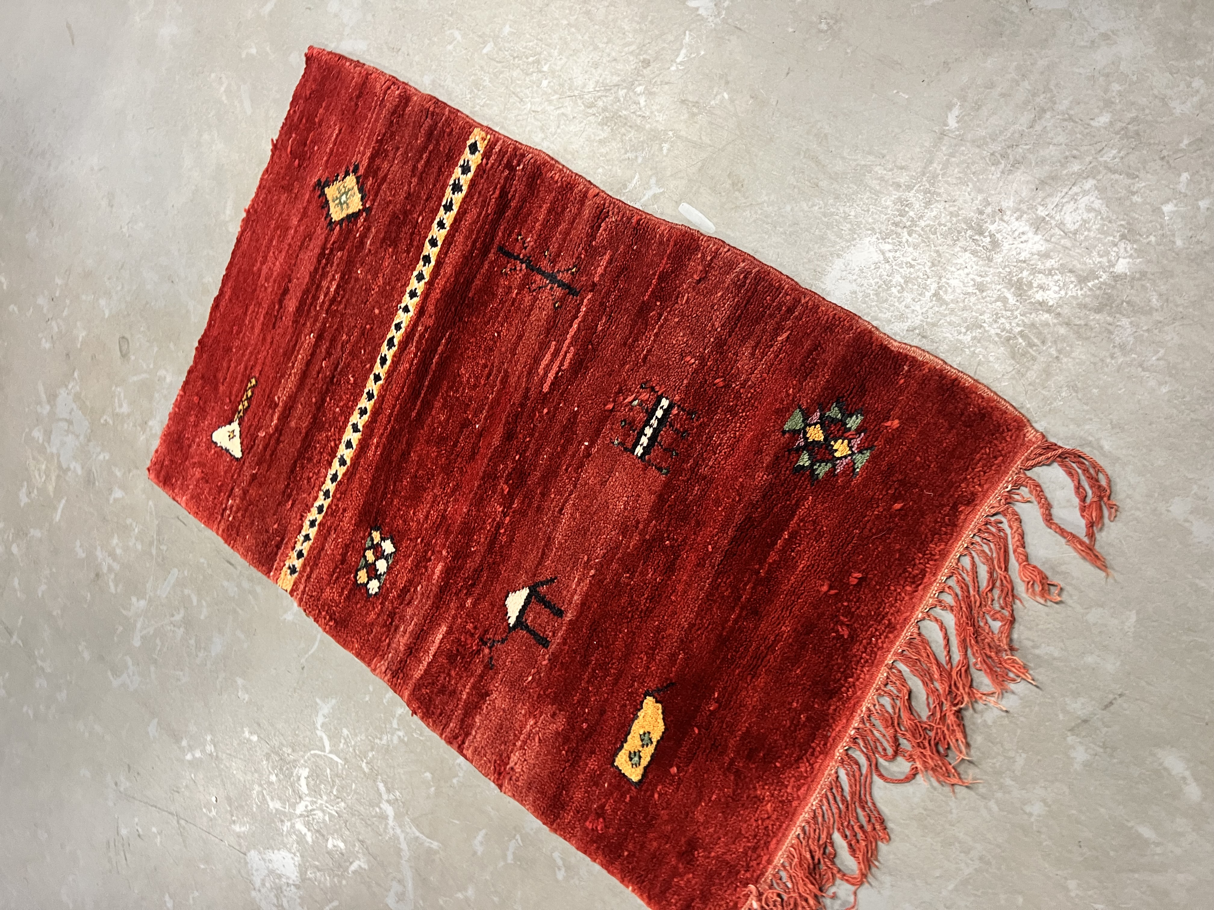 Found in the Eastern part of the Haouz, the region around Boujaad produces some of the most beautiful Moroccan rugs available today. They have a similar course structure to the rugs made around the Middle Atlas, however the imagery and design within is very different from any traditional rug you may have seen from other regions.