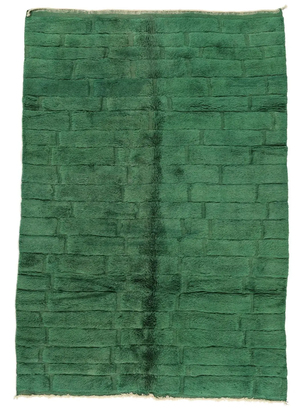 Emera embodies the essence of renewal and depth. Handwoven in the Middle Atlas Mountains, this Beni Mrirt rug features a deep emerald-green tone enhanced by a subtle geometric relief pattern that catches light and shadow with quiet sophistication.