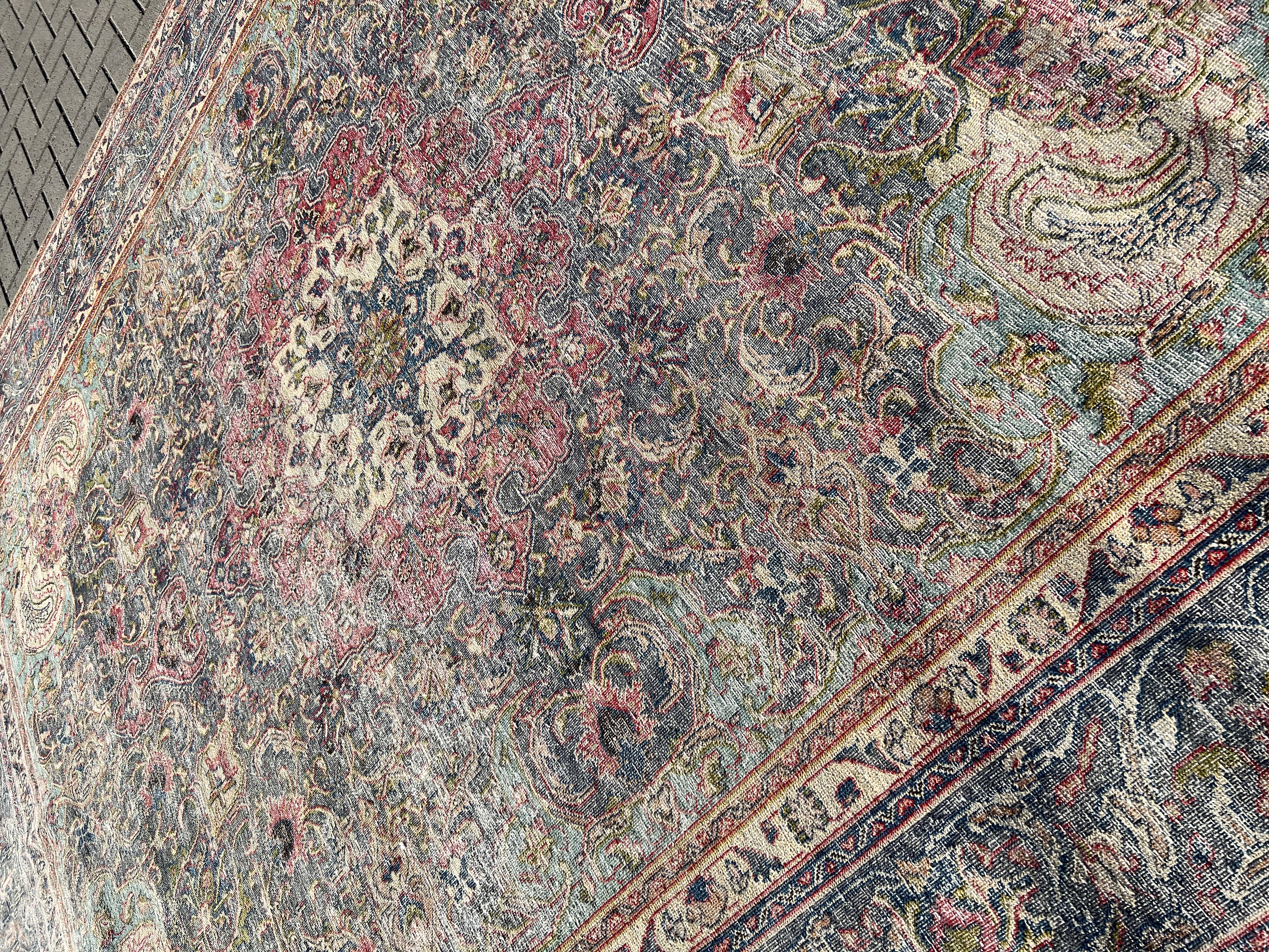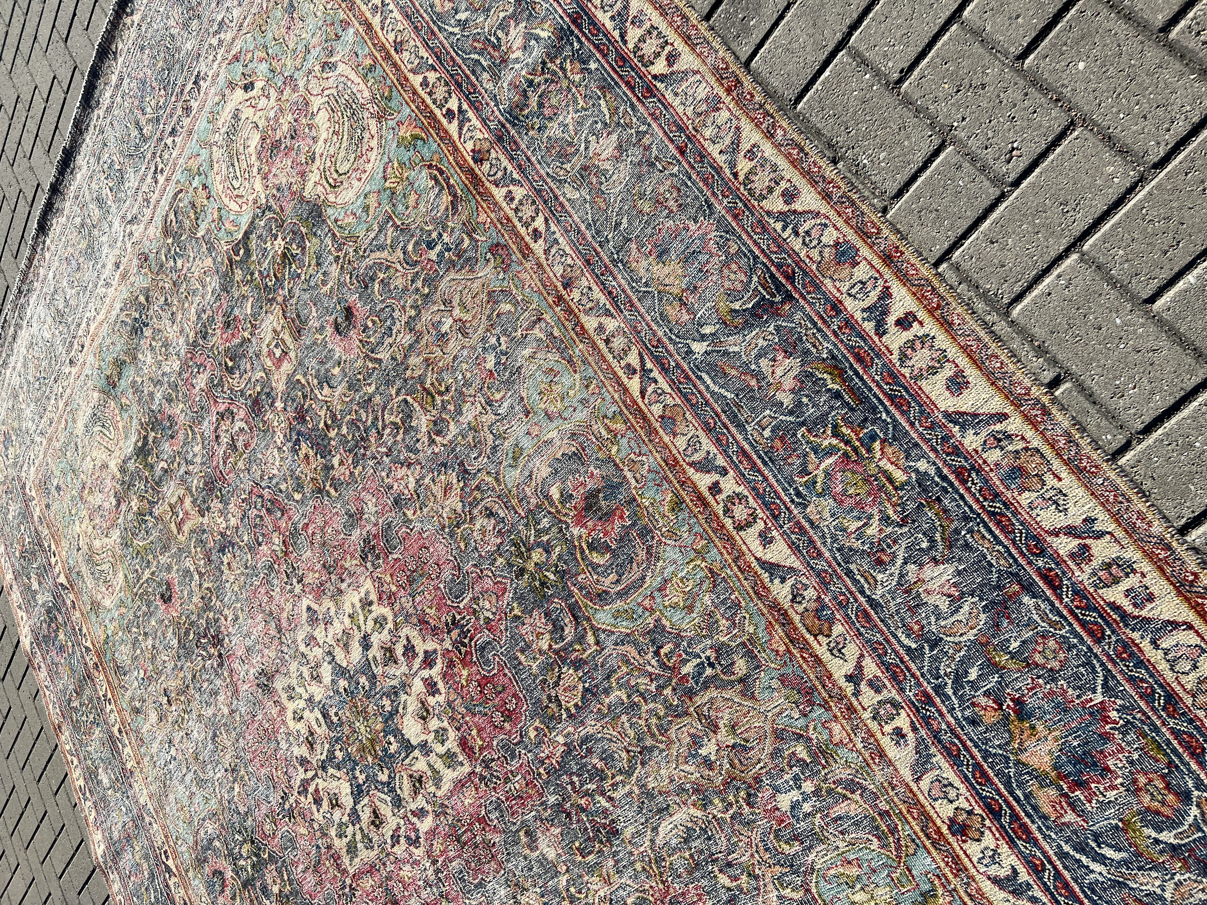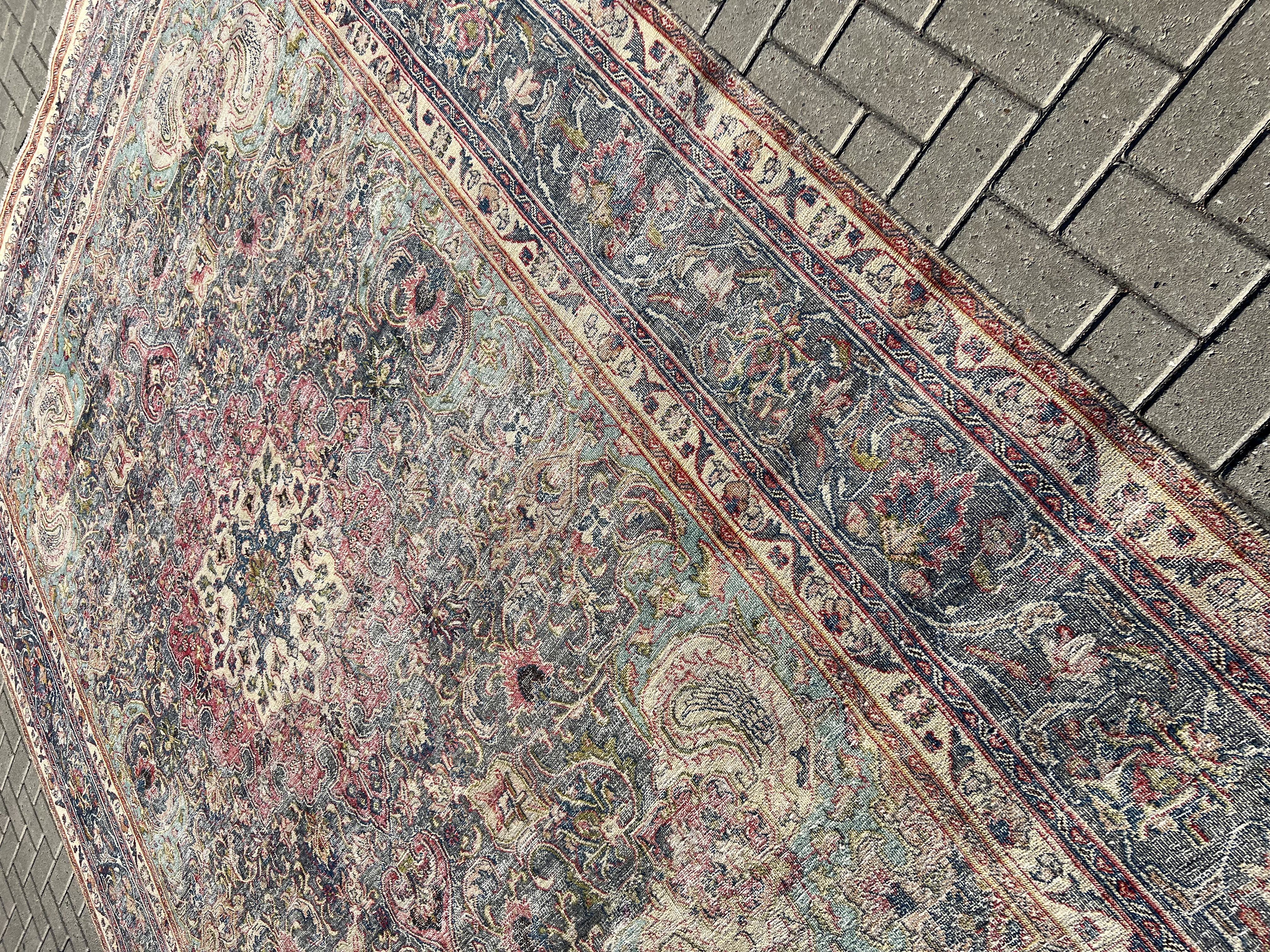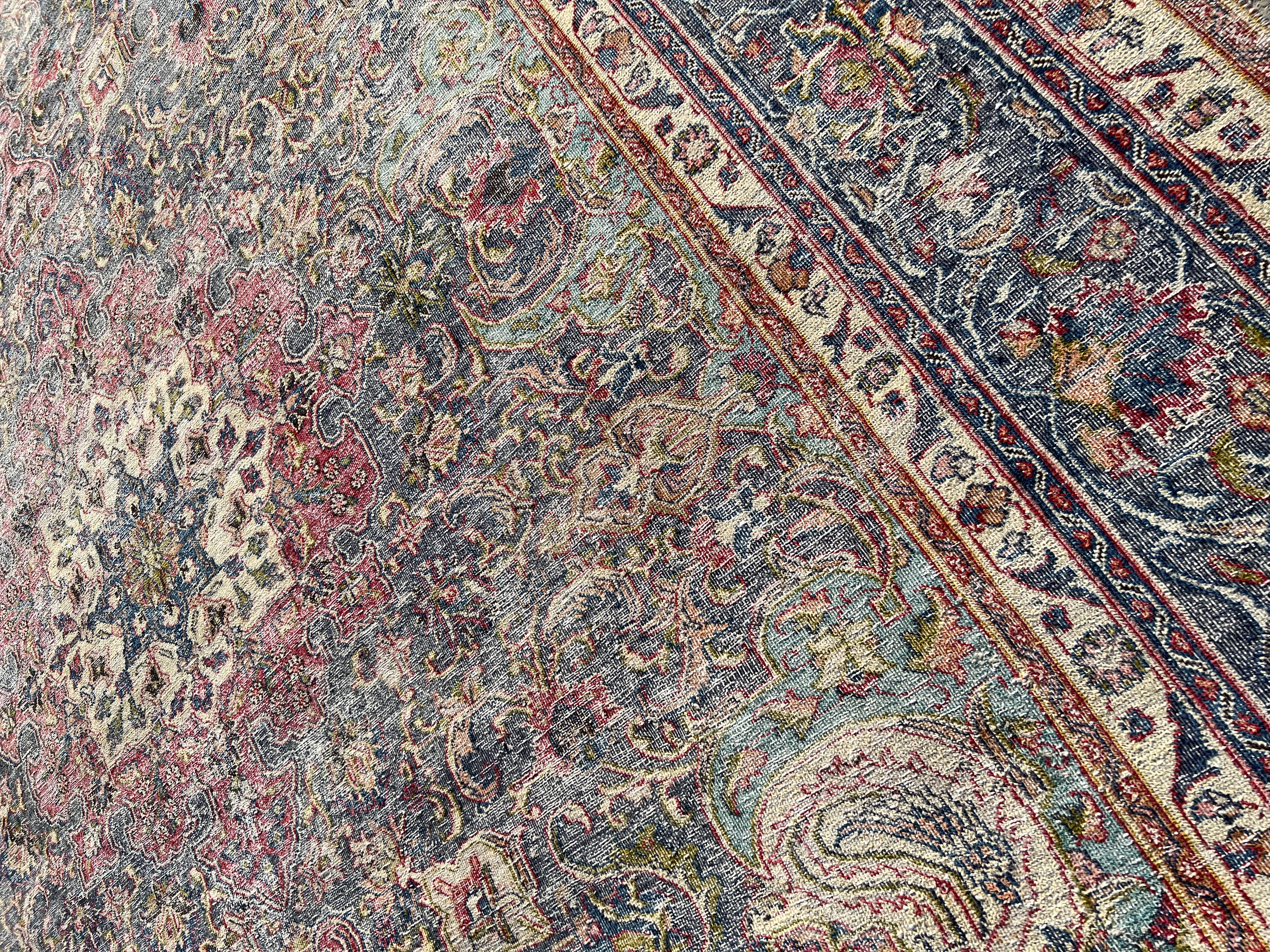 Kerman carpets (sometimes "Kirman") are one of the traditional classifications of Persian carpets. Kerman is both a city and a province located in south central Iran, though the term sometimes describes a type which may have been made elsewhere. Kerman rugs are prized for a wide range of designs, a broad palette, use of natural dyes and fibers, great tensile strength and abrasion resistance, and expert color combinations. Typical manufacturing use an asymmetrical knot on cotton foundation, but rare examples imay include silk or part silk piles, or silk foundations with wool pile.