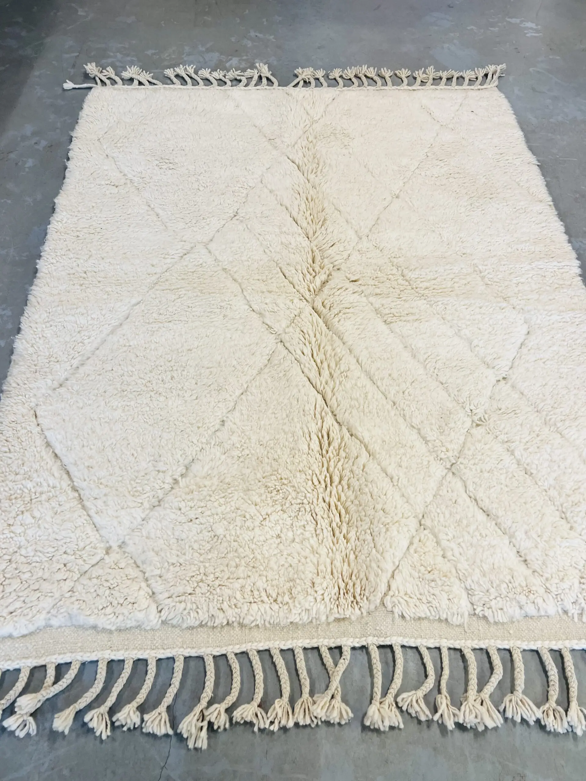 Hand-knotted in the Middle Atlas Mountains from 100% hand-spun virgin wool, the rug embodies the warmth, depth, and signature softness of true Beni Mrirt craftsmanship. Its creamy ivory surface, paired with its gentle geometric rhythm, adds light and tactile richness to any interior.