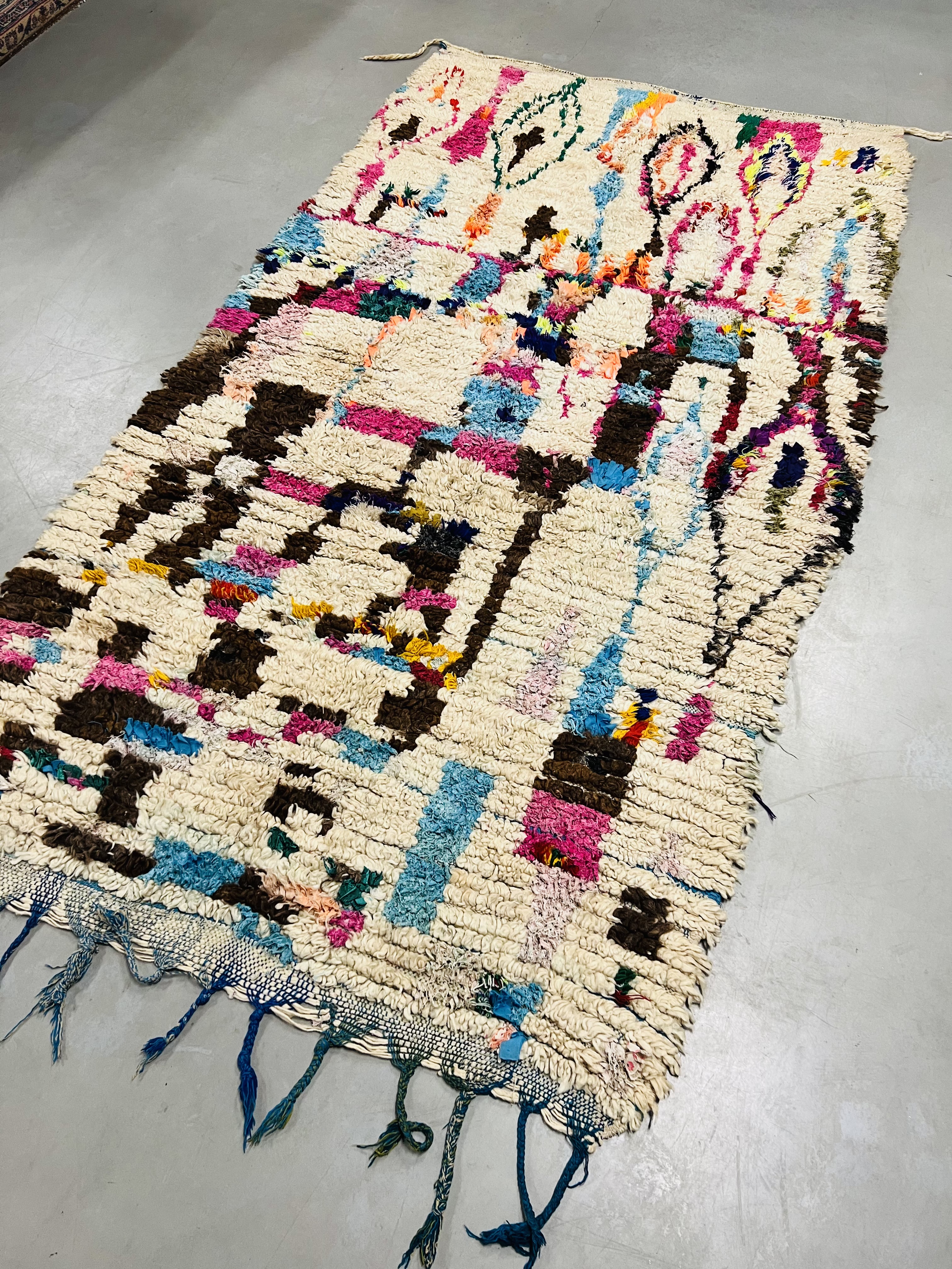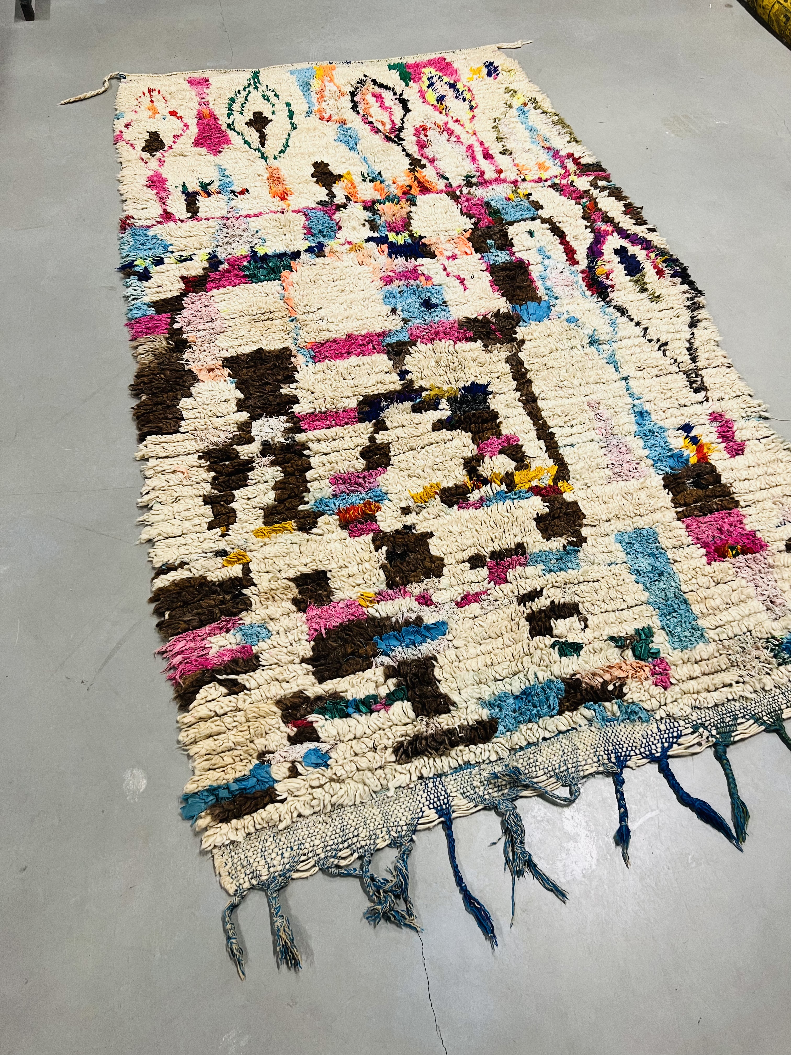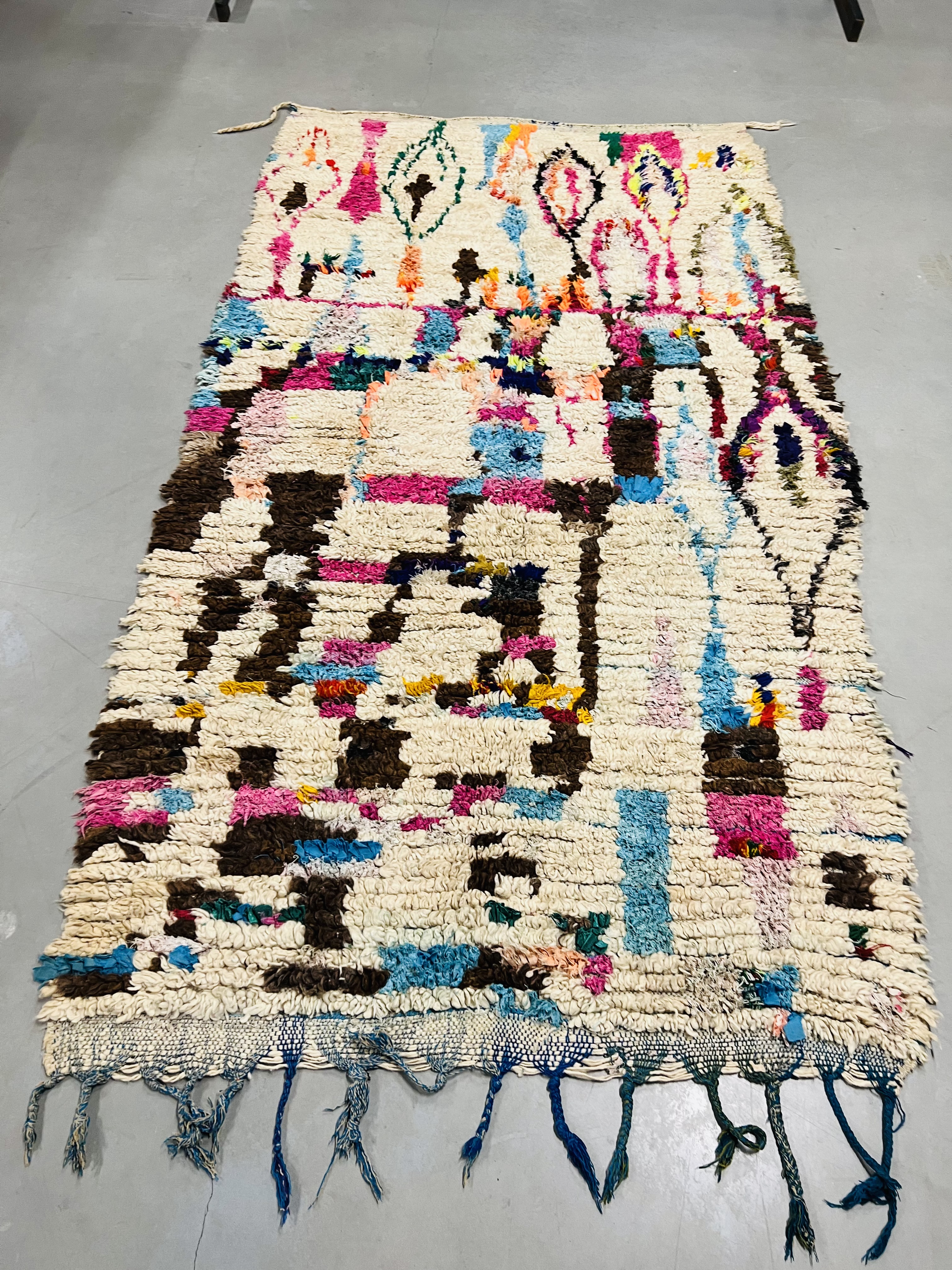 Named after the region of the same name, which reaches from the foothills of Middle Atlas to the Northern slopes of High Atlas, they are some of the most heavily decorated of Moroccan carpets, featuring beautiful color and designs that range from the geometrical or tribal through to images and symbols that can be traced back to the Berber’s unique written language. This gives a unique appearance that blends bold, bright color and ancient imagery that seems to come from another time, as much art as it is a practical rug.