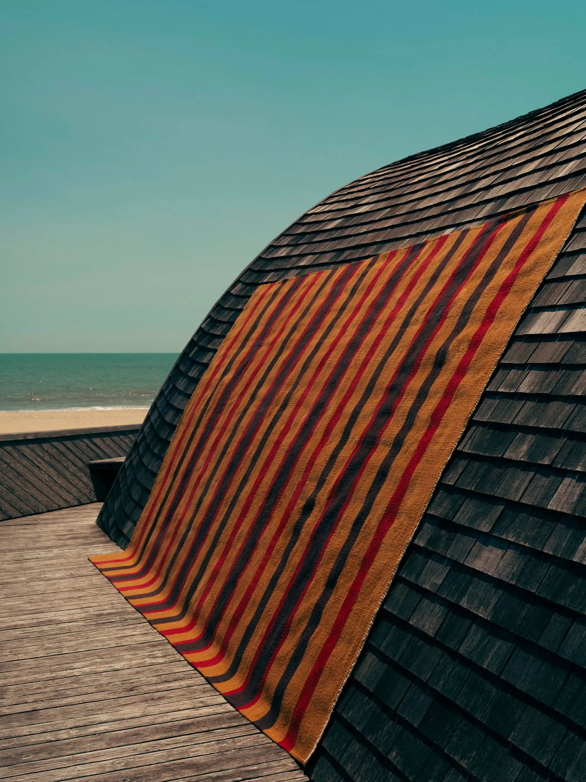 Ripe in its depth of red and amber pigment, this rug’s flatwoven design finds its namesake in the strawberry-scented blood oranges of Sicily.