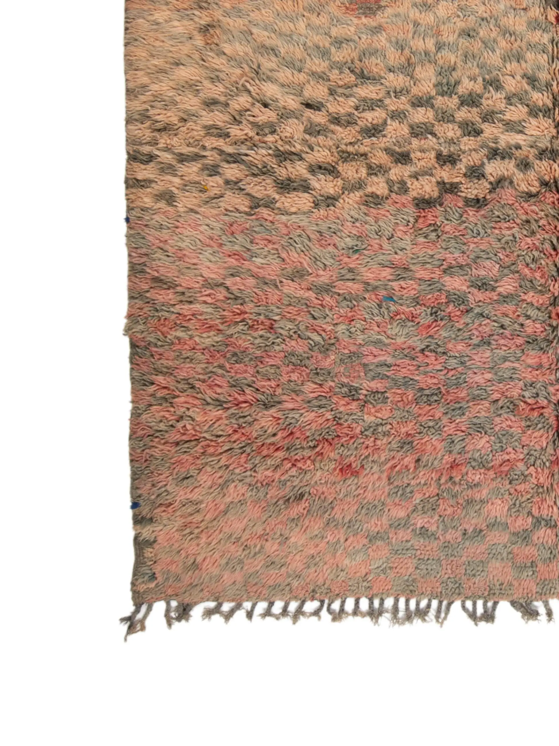 Renowned for their denser pile and rich hues, Beni Mguild rugs bring warmth and depth to any interior. The darker base shades, traditionally indigo blue or earthy red, create an elegant contrast that evolves beautifully over time.