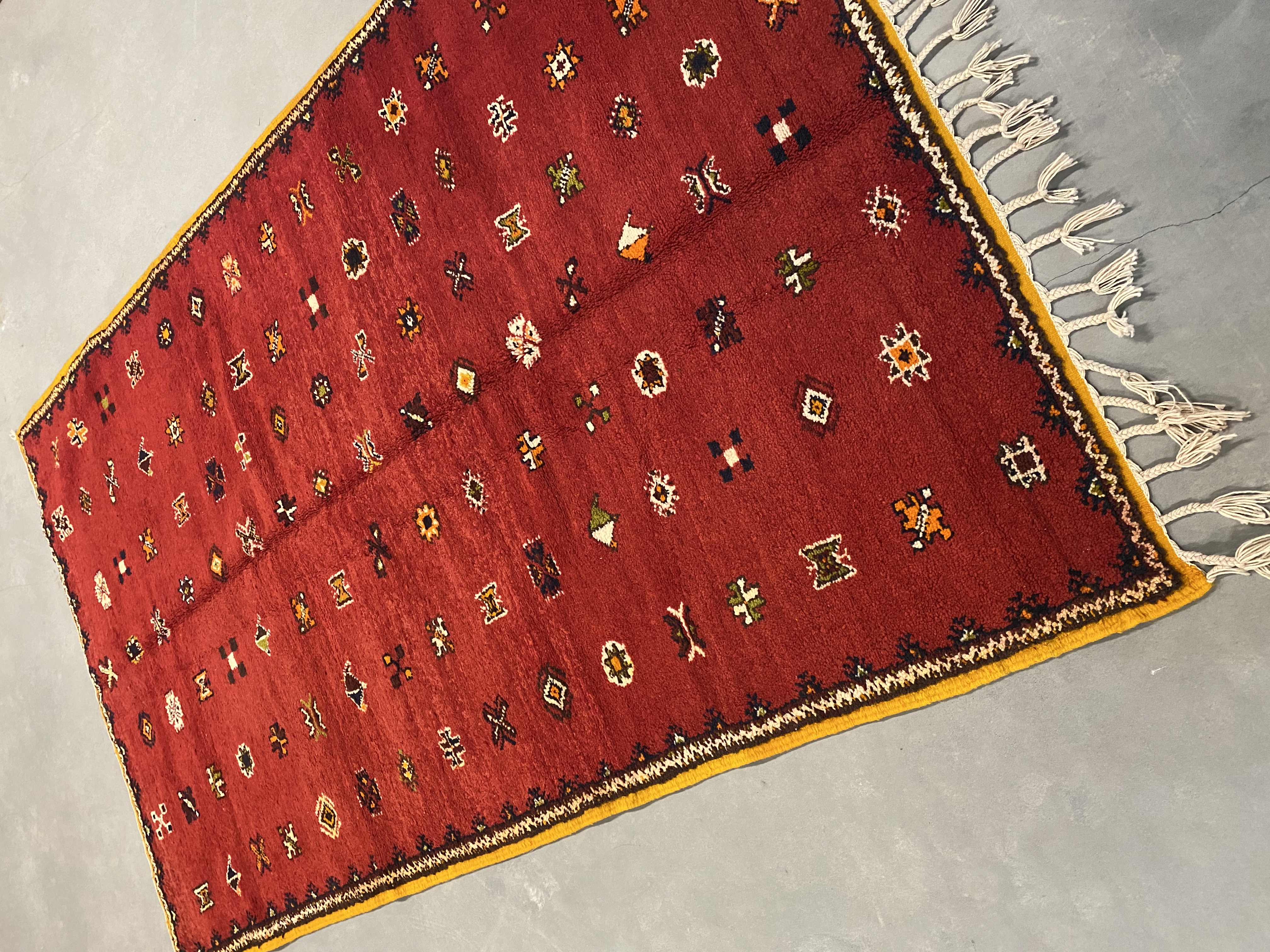 A Taznakht rug is a statement piece on its own. A rug like this does not have a designer feel. It is neither contemporary nor classic. It is Moroccan, north African, vibrant and alive. It is a rug that can be in a lounge, sitting room or bedroom, and it can be placed with any kind of furniture. It adds flair and artistry to a home.