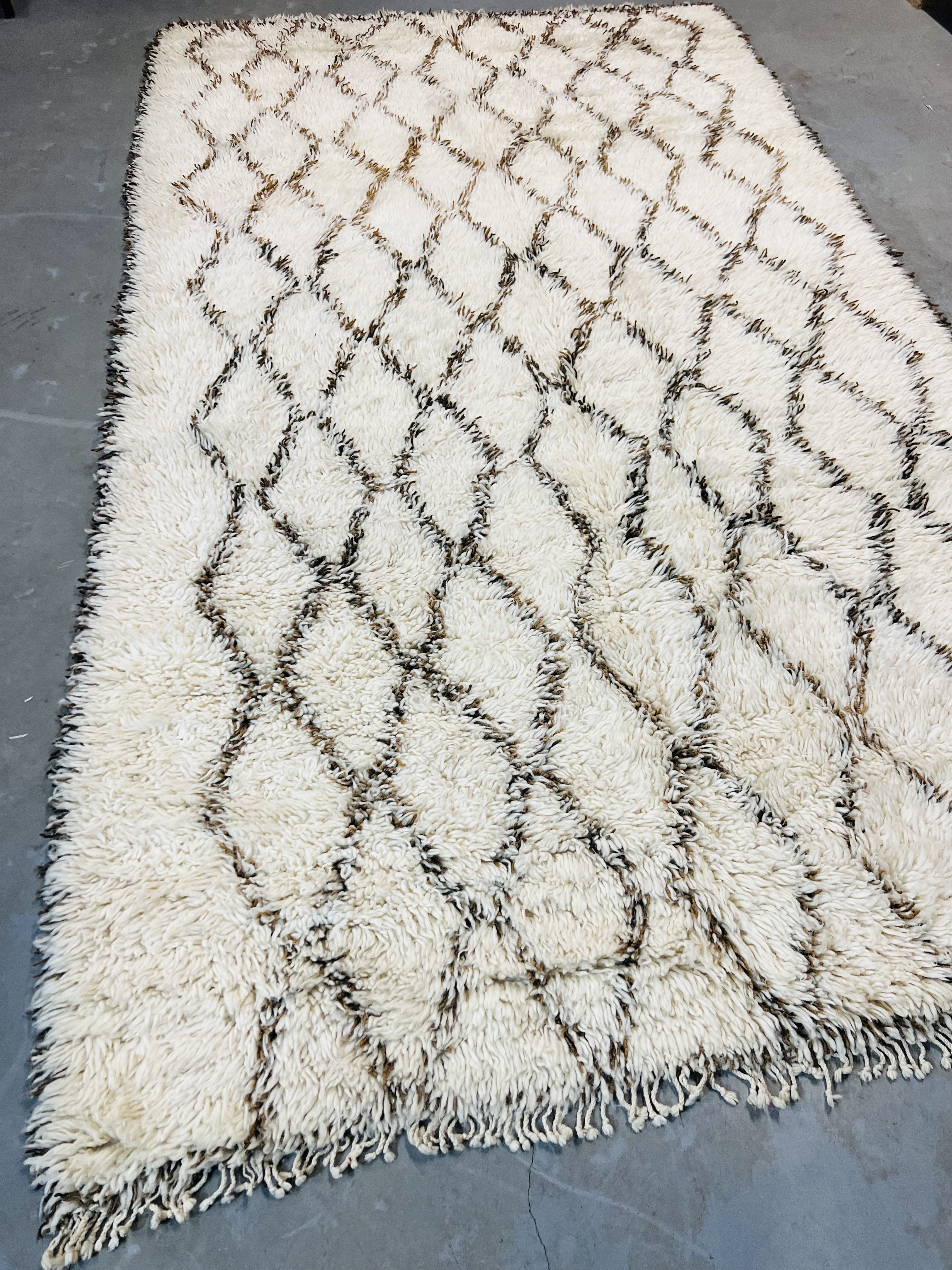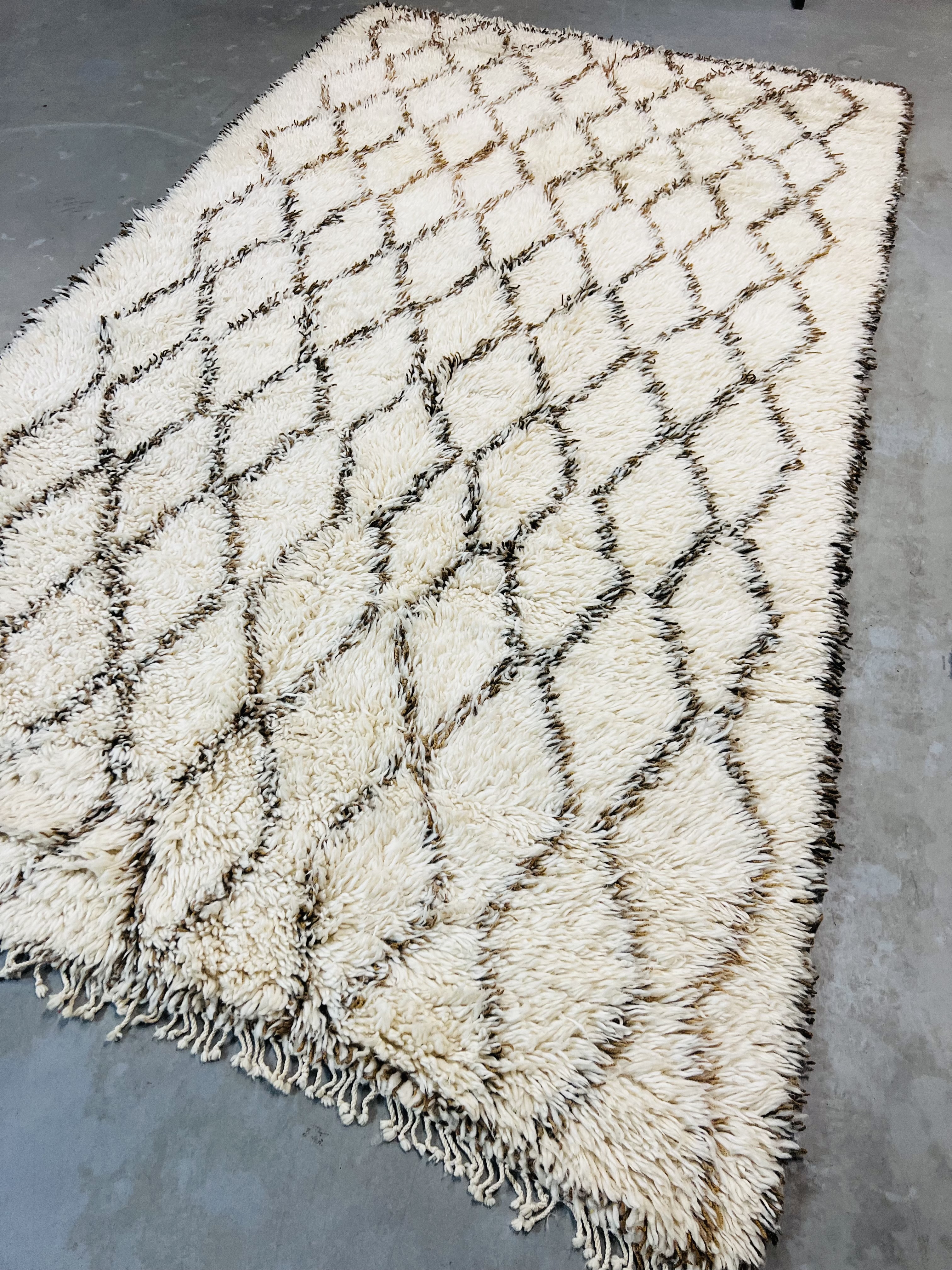 Our Beni Ourain rugs are made by people who incorporate fragments of their lives in the designs. These designs usually express femininity and nature, fertility or birth. We have also seen some stories of personal beliefs or rural life emerging from the carpets. Beni Ourain is a group of 17 Berber tribes that traditionally inhabits the Atlas Mountains of Morocco. They rear a special type of sheep from where the women get high-quality wool for making rugs and blankets for use, especially during the cold winters in the Moroccan Atlas Mountains. Our vintage Beni Ourain rugs possess a spirit and a character. It is a reflection of the daily life of the women that make it. Most of our vintage Beni rugs are cream(ivory) in color, although differences in the tone are found depending on the sheep's color. Our Moroccan Beni Ourain Rugs are a masterpiece with unique artwork that will beautify your home for a long time. We believe that you can pass the rug down for generations if you're able to properly care for it, since the high-quality wool will never wear out nor the colours will fade.