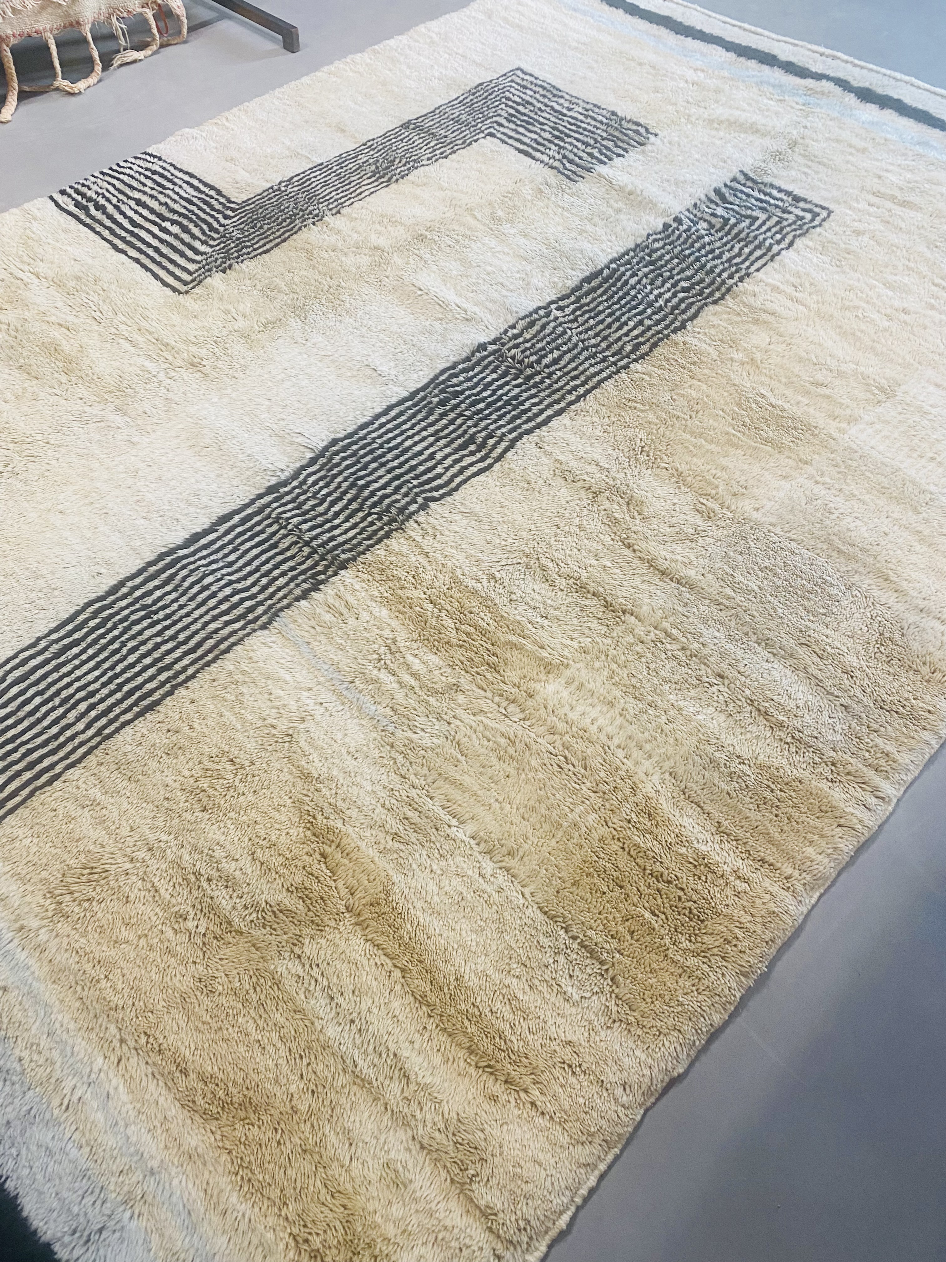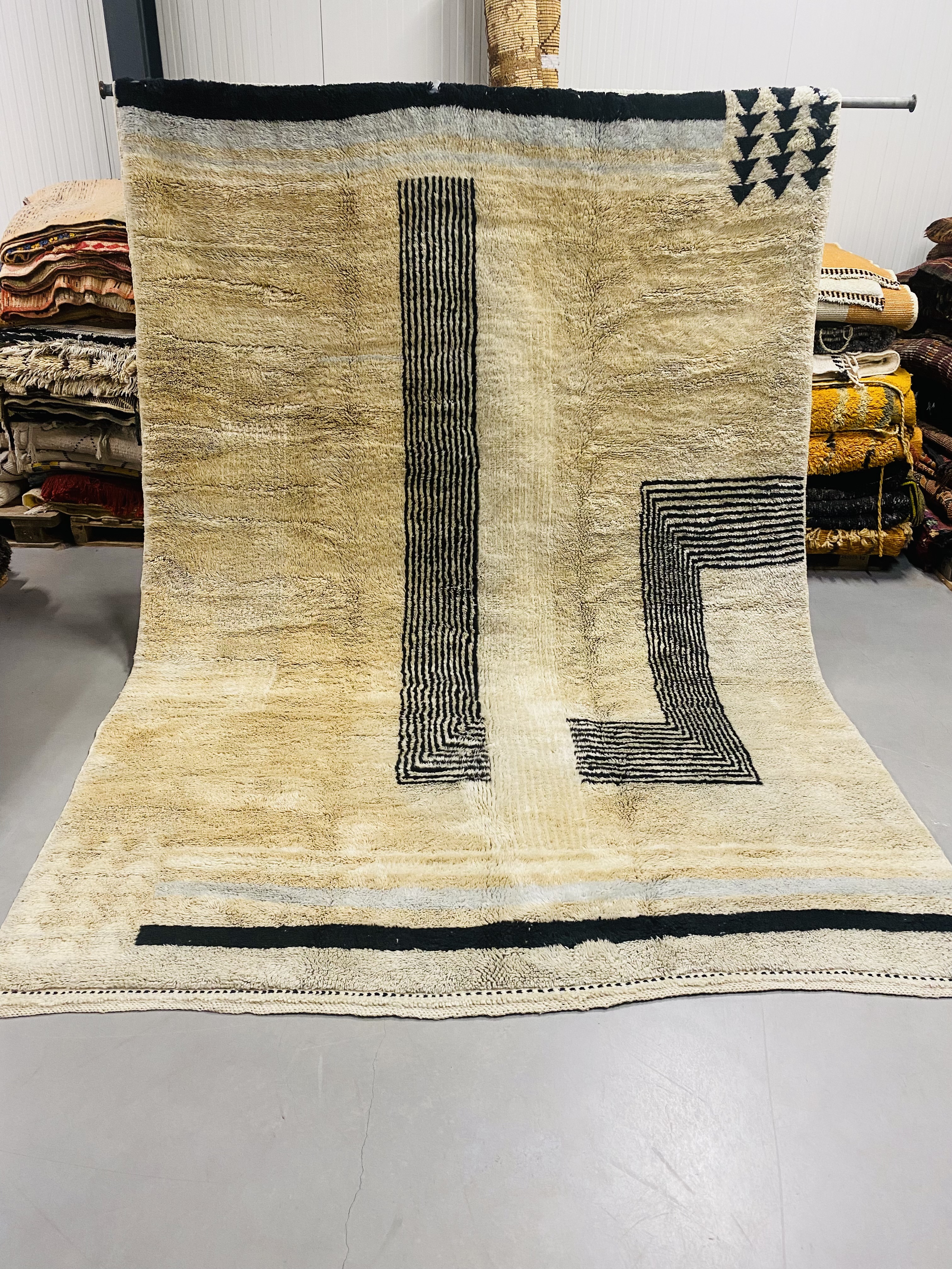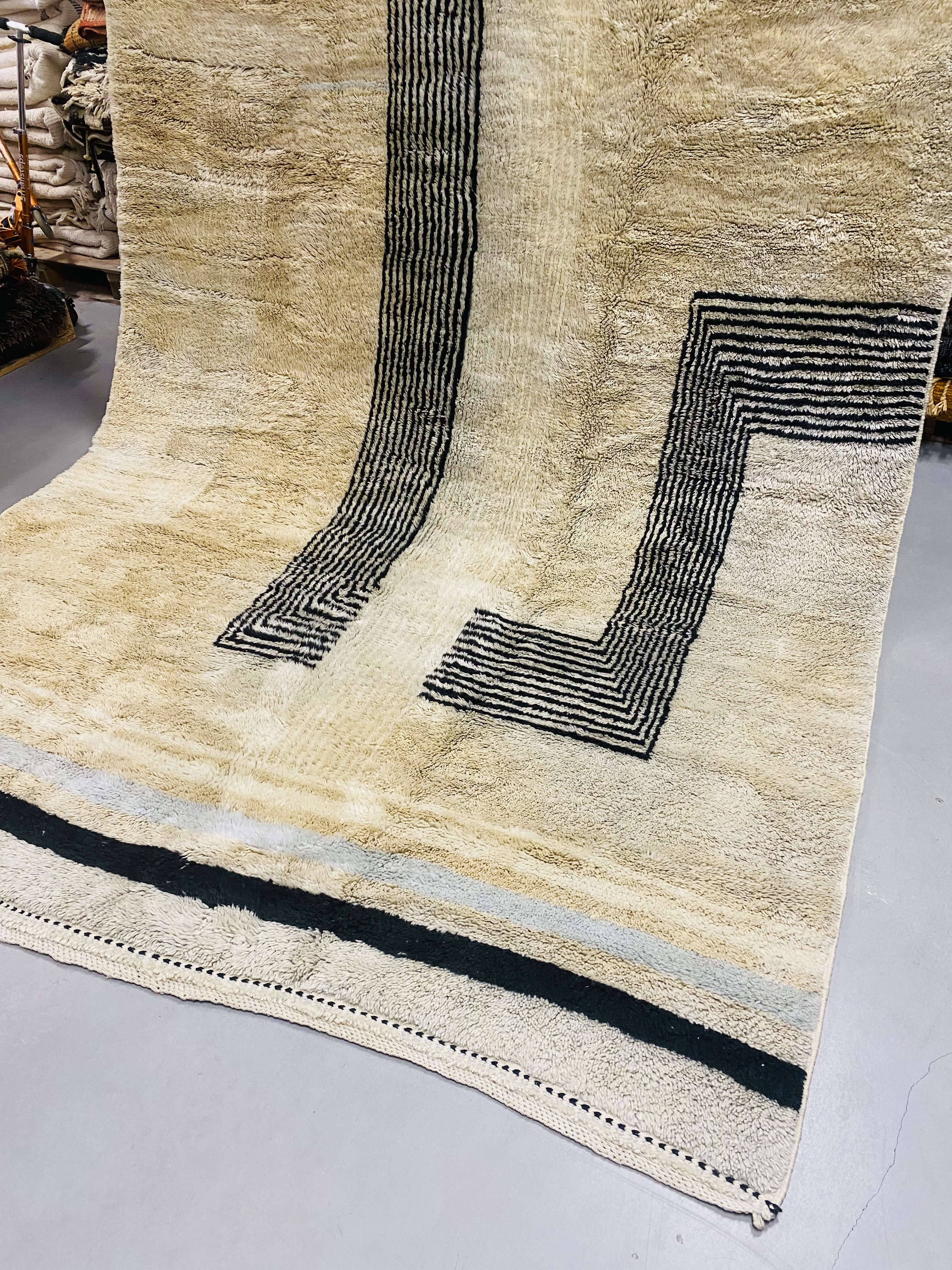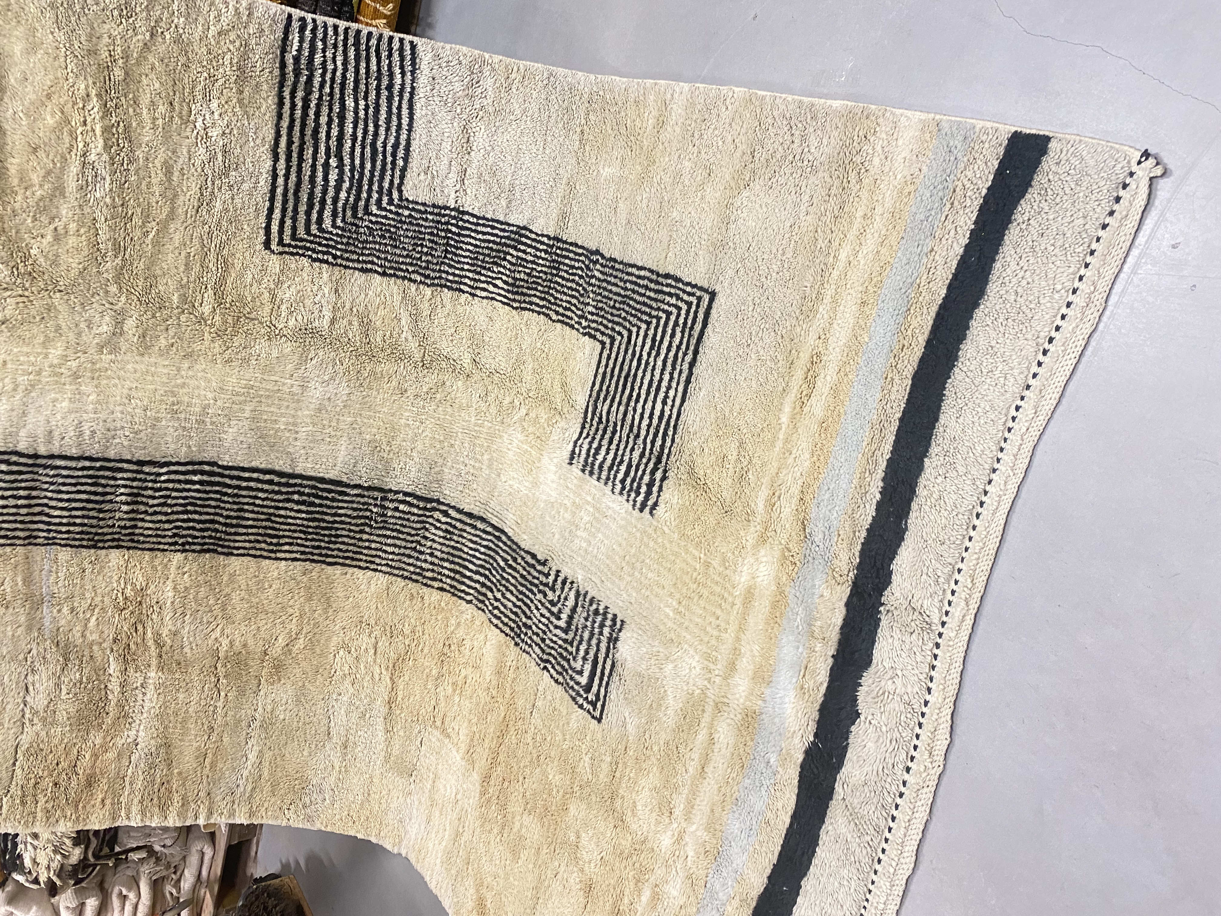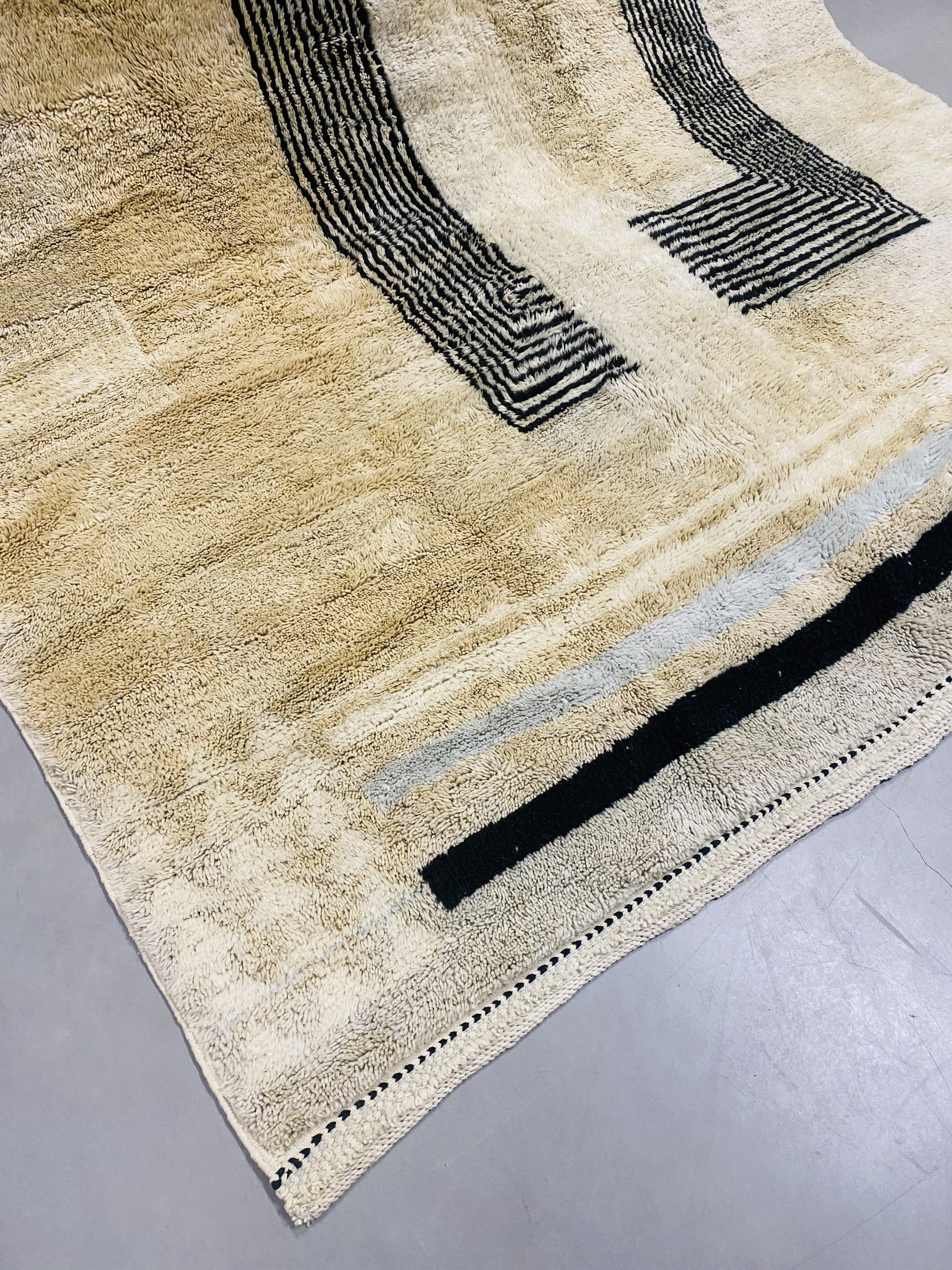 Our Beni Ourain rugs are made by people who incorporate fragments of their lives in the designs. These designs usually express femininity and nature, fertility or birth. We have also seen some stories of personal beliefs or rural life emerging from the carpets. Beni Ourain is a group of 17 Berber tribes that traditionally inhabits the Atlas Mountains of Morocco. They rear a special type of sheep from where the women get high-quality wool for making rugs and blankets for use, especially during the cold winters in the Moroccan Atlas Mountains. Our vintage Beni Ourain rugs possess a spirit and a character. It is a reflection of the daily life of the women that make it. Most of our vintage Beni rugs are cream(ivory) in color, although differences in the tone are found depending on the sheep's color. Our Moroccan Beni Ourain Rugs are a masterpiece with unique artwork that will beautify your home for a long time. We believe that you can pass the rug down for generations if you're able to properly care for it, since the high-quality wool will never wear out nor the colours will fade.