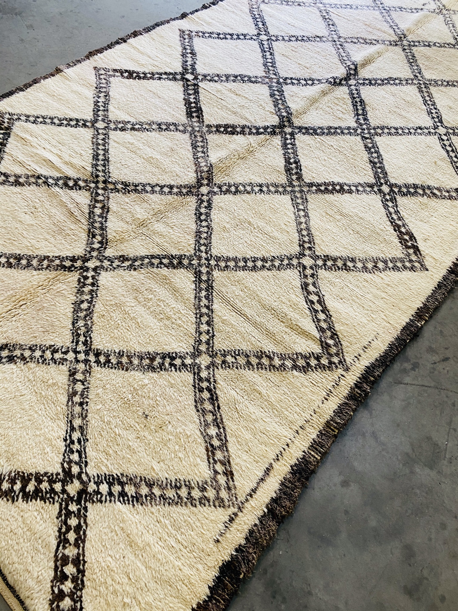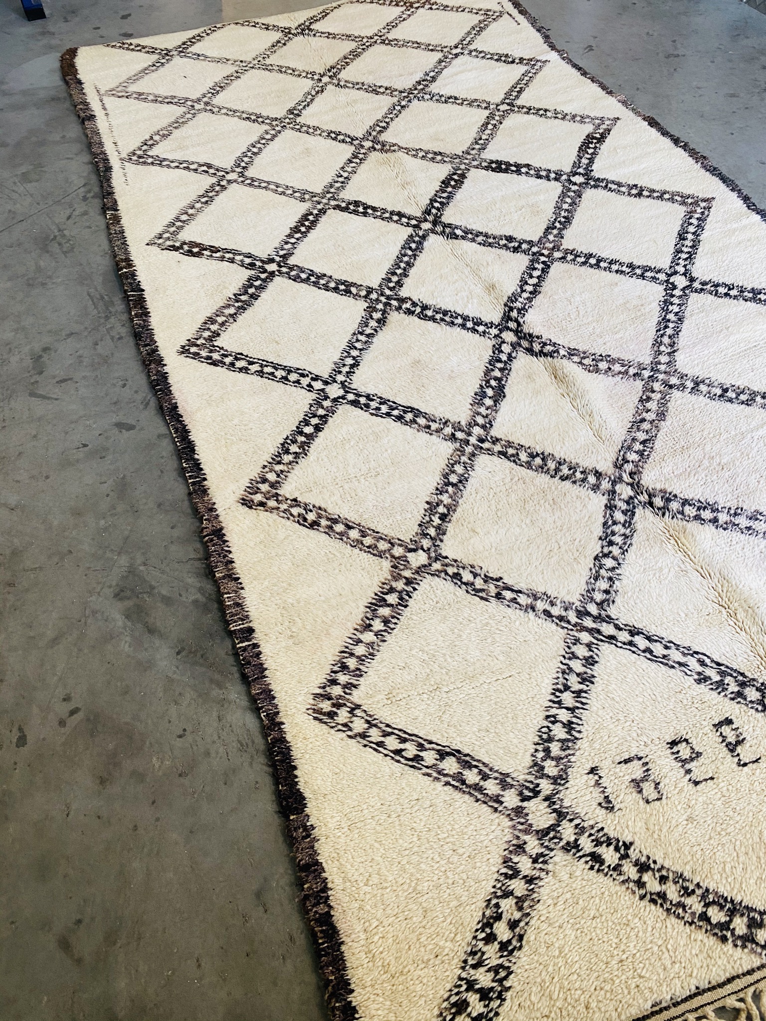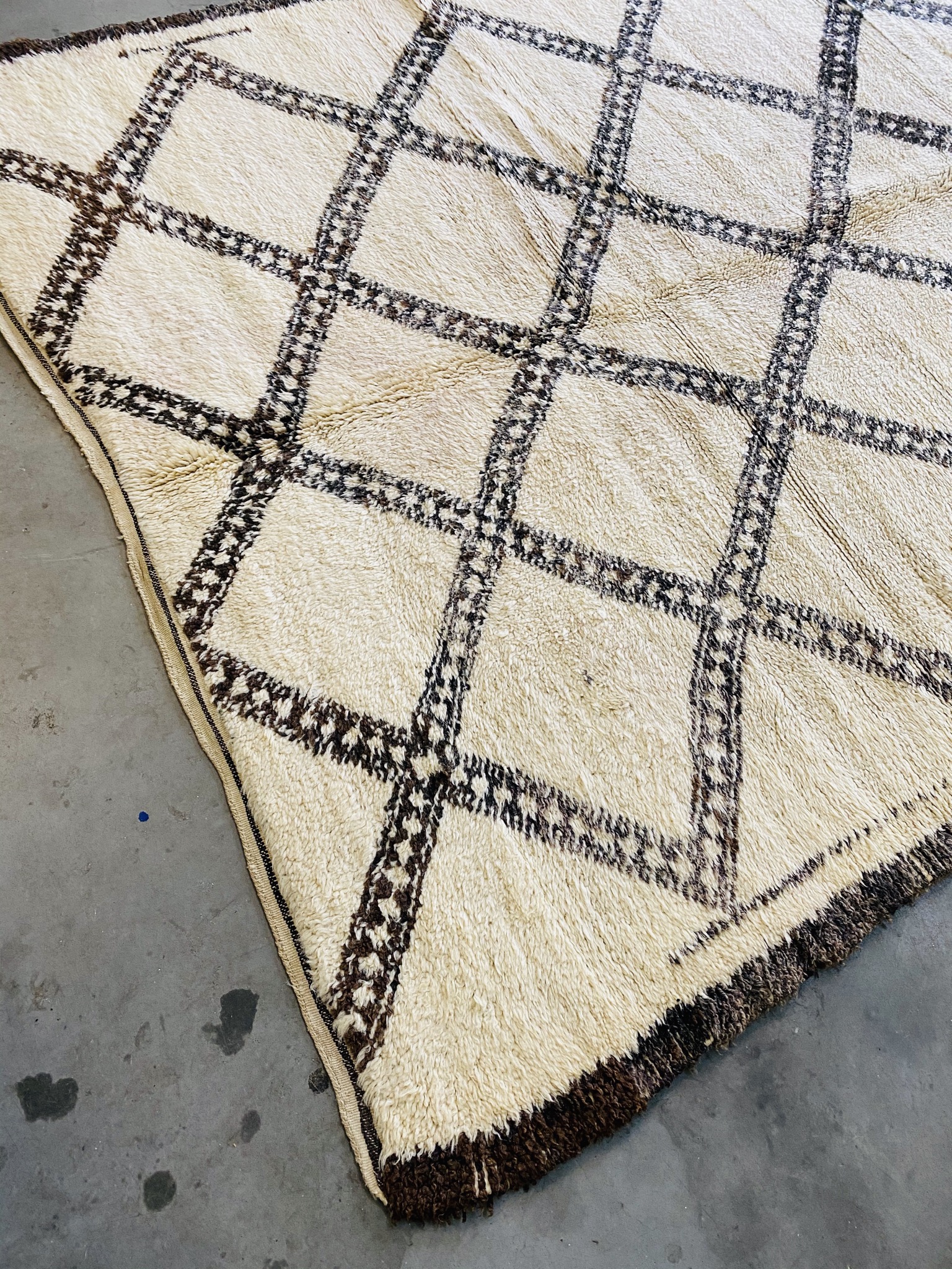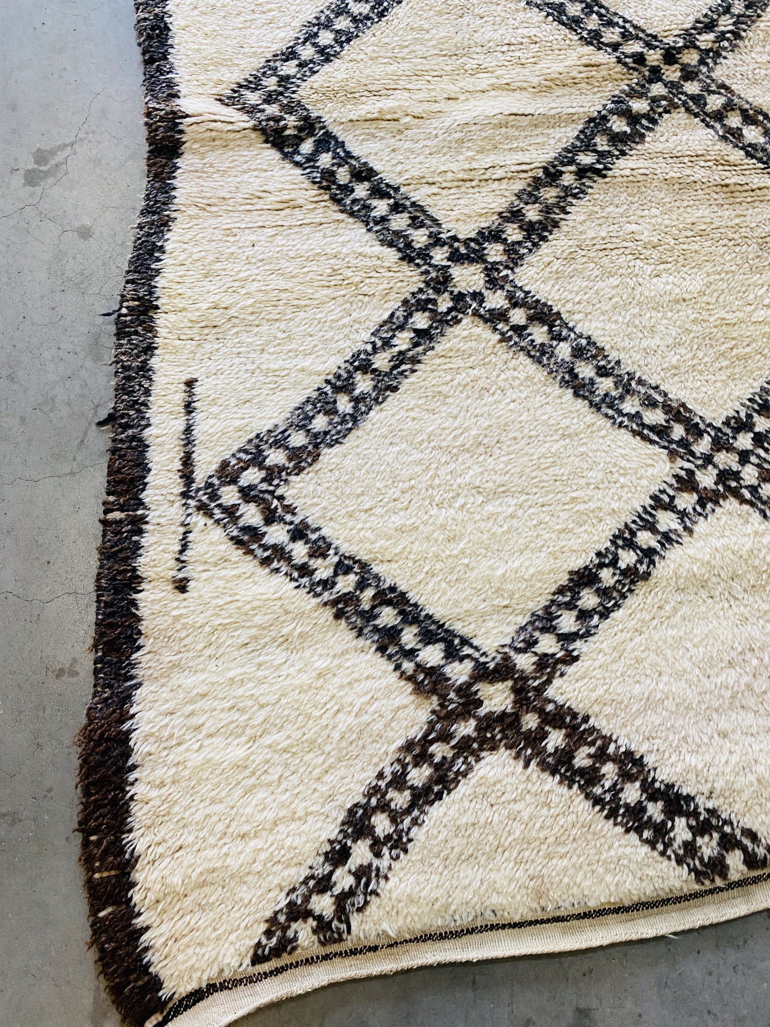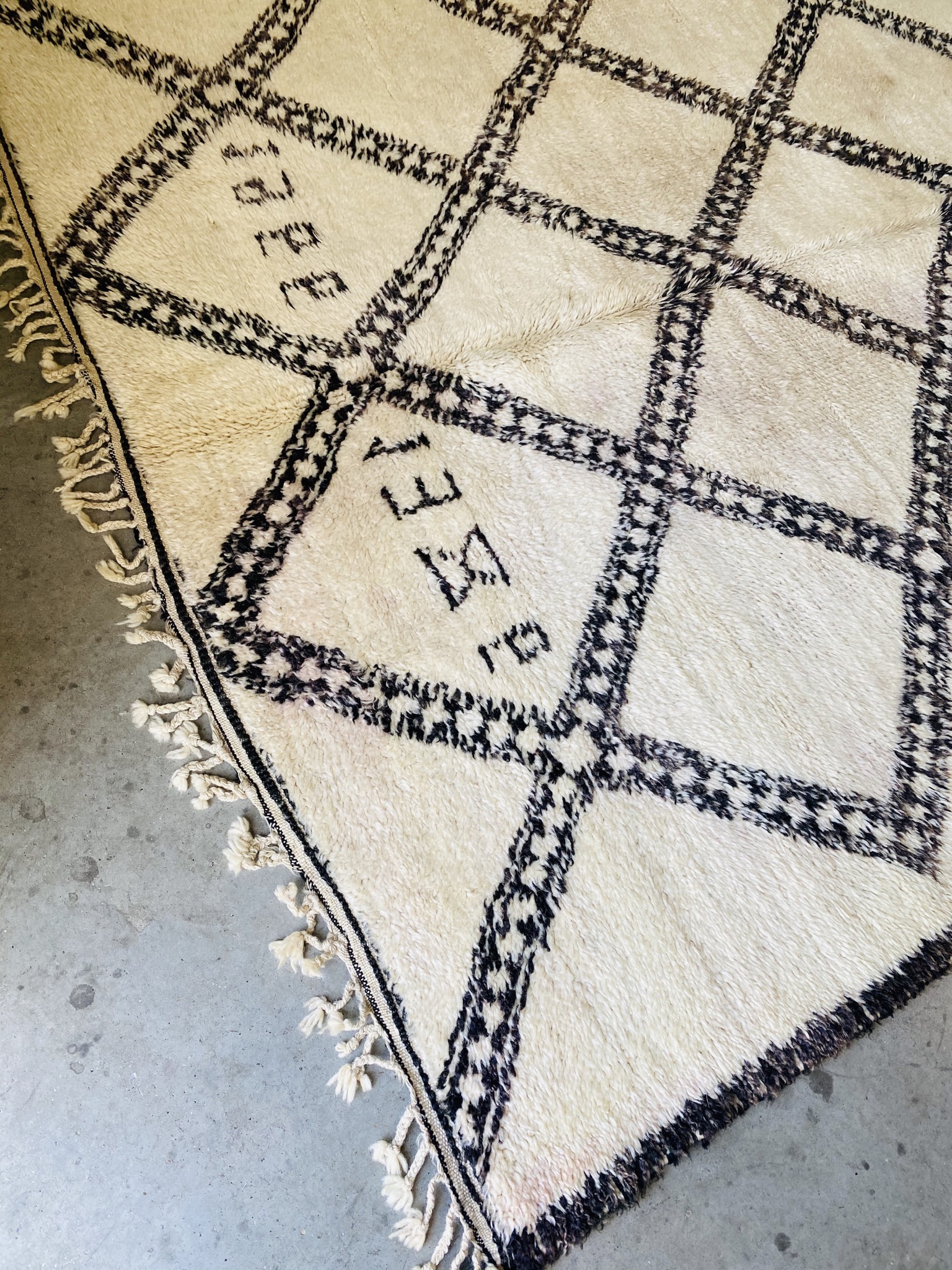 Our Beni Ourain rugs are made by people who incorporate fragments of their lives in the designs. These designs usually express femininity and nature, fertility or birth. We have also seen some stories of personal beliefs or rural life emerging from the carpets. Beni Ourain is a group of 17 Berber tribes that traditionally inhabits the Atlas Mountains of Morocco. They rear a special type of sheep from where the women get high-quality wool for making rugs and blankets for use, especially during the cold winters in the Moroccan Atlas Mountains. Our vintage Beni Ourain rugs possess a spirit and a character. It is a reflection of the daily life of the women that make it. Most of our vintage Beni rugs are cream(ivory) in color, although differences in the tone are found depending on the sheep's color. Our Moroccan Beni Ourain Rugs are a masterpiece with unique artwork that will beautify your home for a long time. We believe that you can pass the rug down for generations if you're able to properly care for it, since the high-quality wool will never wear out nor the colours will fade.