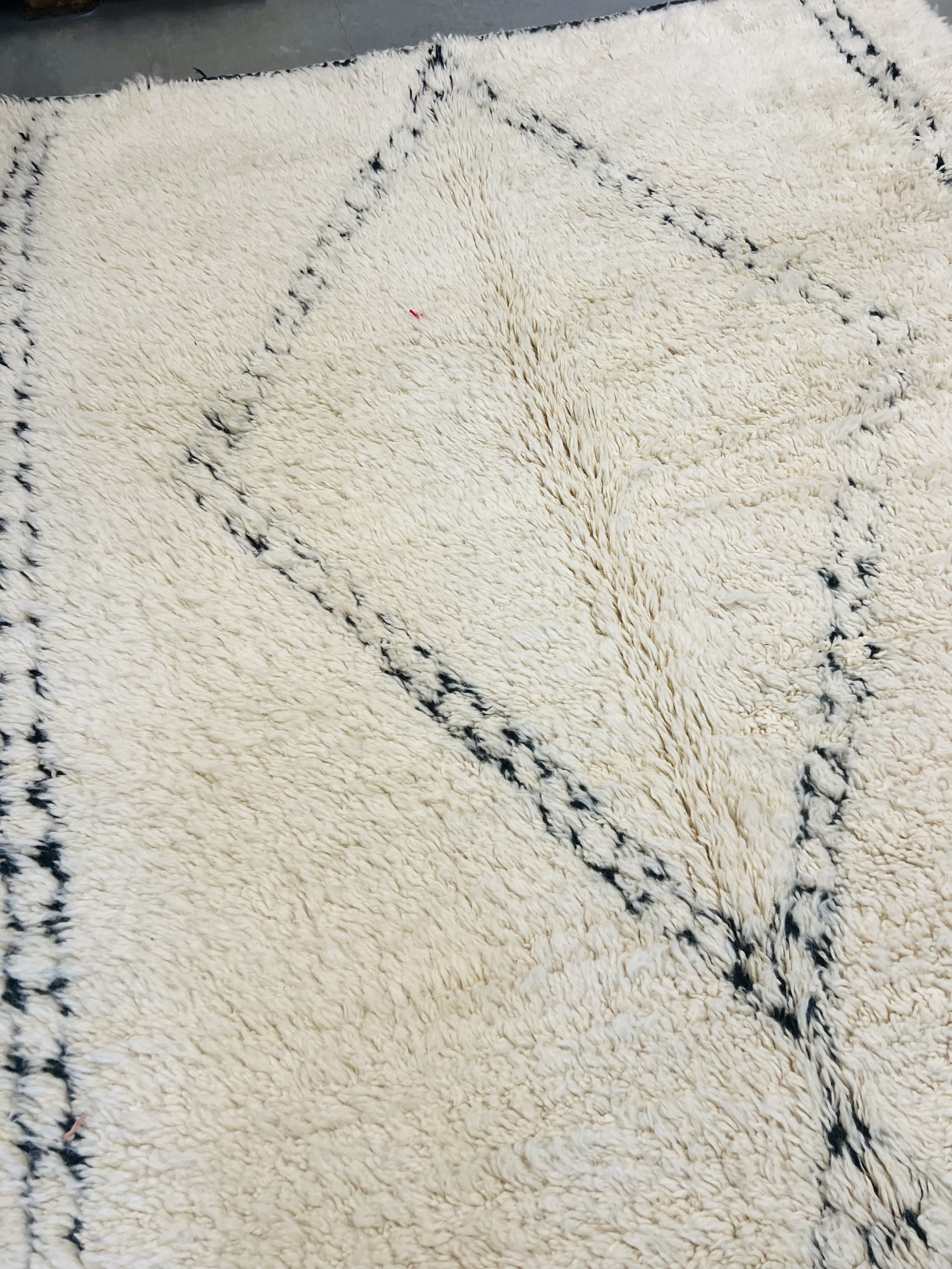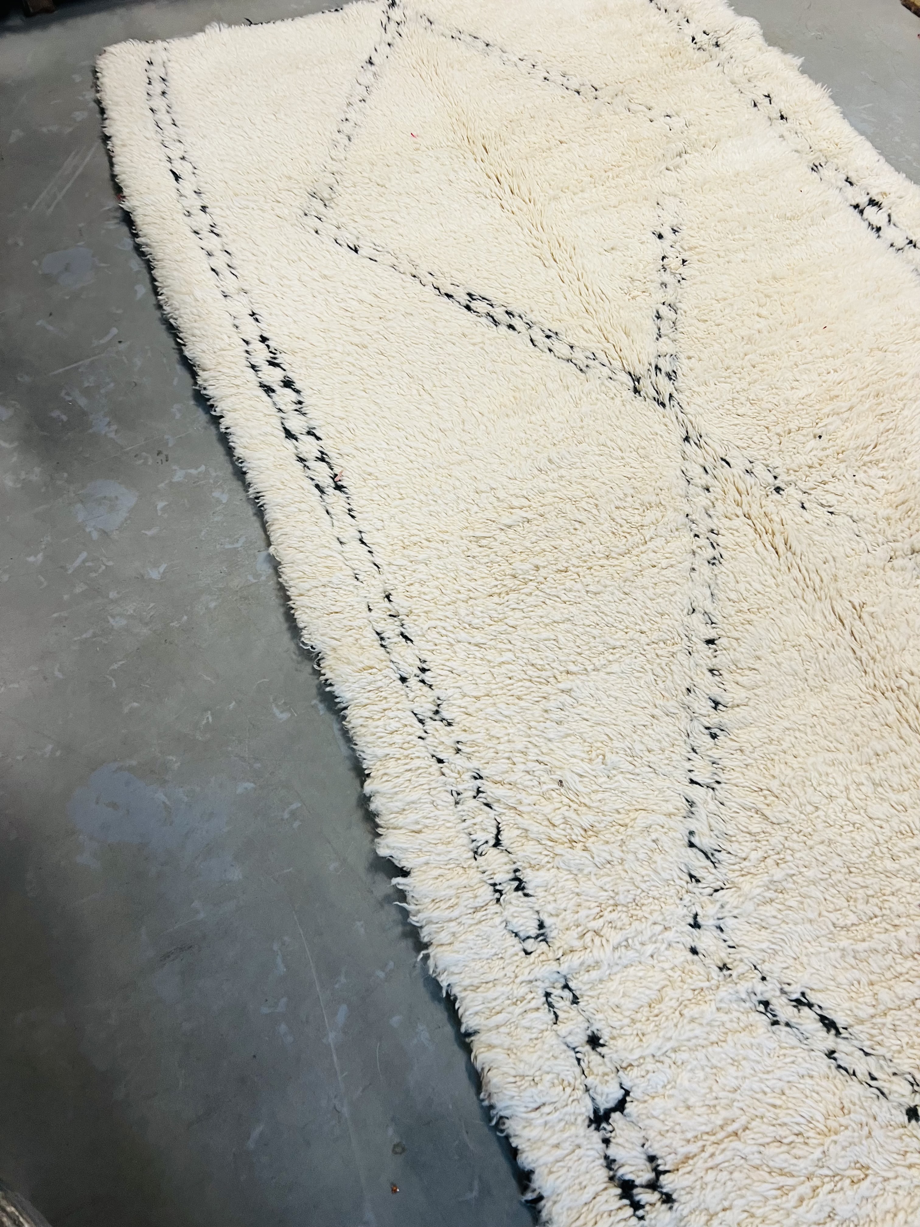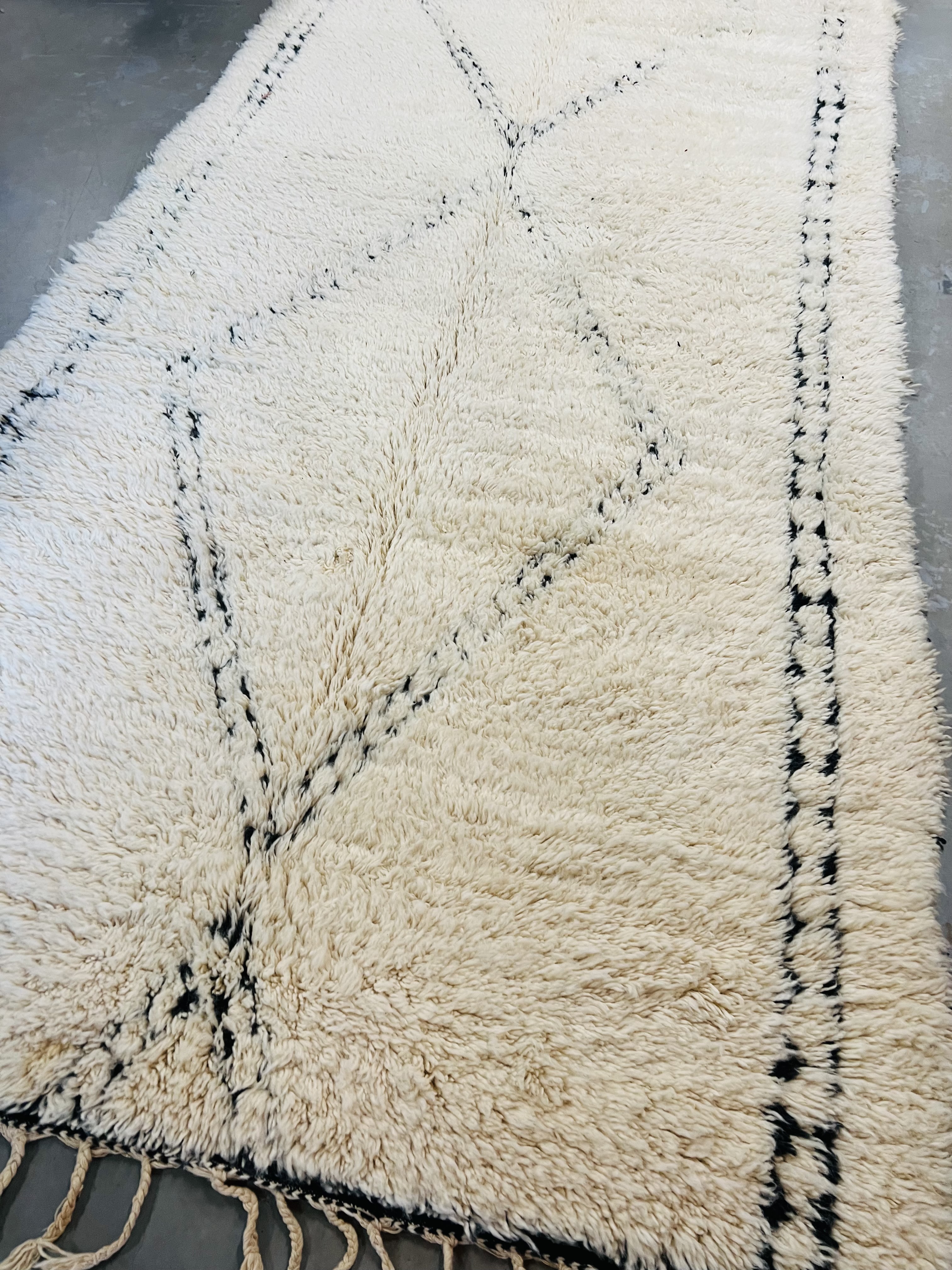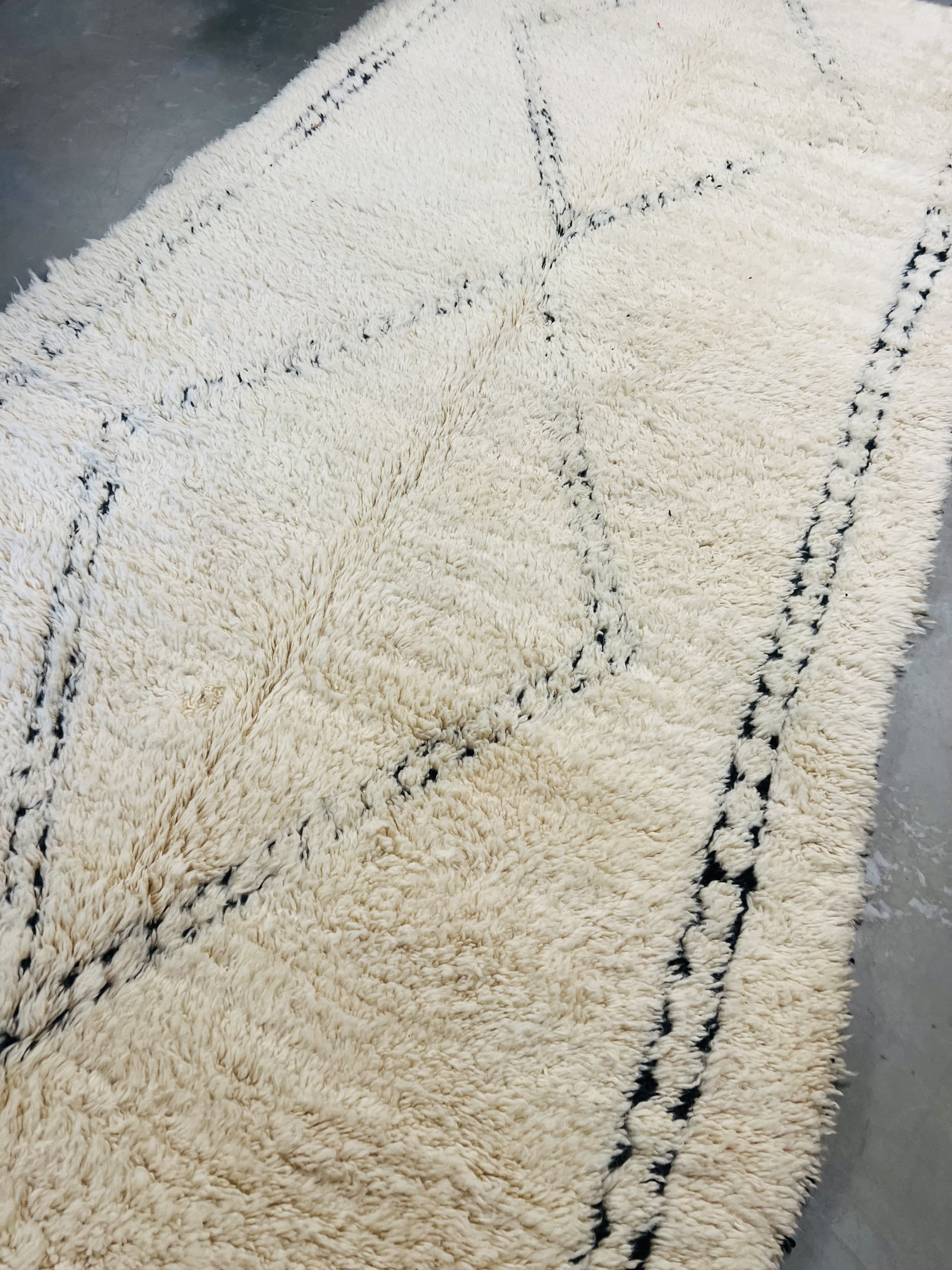 Our Beni Ourain rugs are made by people who incorporate fragments of their lives in the designs. These designs usually express femininity and nature, fertility or birth. We have also seen some stories of personal beliefs or rural life emerging from the carpets. Beni Ourain is a group of 17 Berber tribes that traditionally inhabits the Atlas Mountains of Morocco. They rear a special type of sheep from where the women get high-quality wool for making rugs and blankets for use, especially during the cold winters in the Moroccan Atlas Mountains. Our vintage Beni Ourain rugs possess a spirit and a character. It is a reflection of the daily life of the women that make it. Most of our vintage Beni rugs are cream(ivory) in color, although differences in the tone are found depending on the sheep's color. Our Moroccan Beni Ourain Rugs are a masterpiece with unique artwork that will beautify your home for a long time. We believe that you can pass the rug down for generations if you're able to properly care for it, since the high-quality wool will never wear out nor the colours will fade.