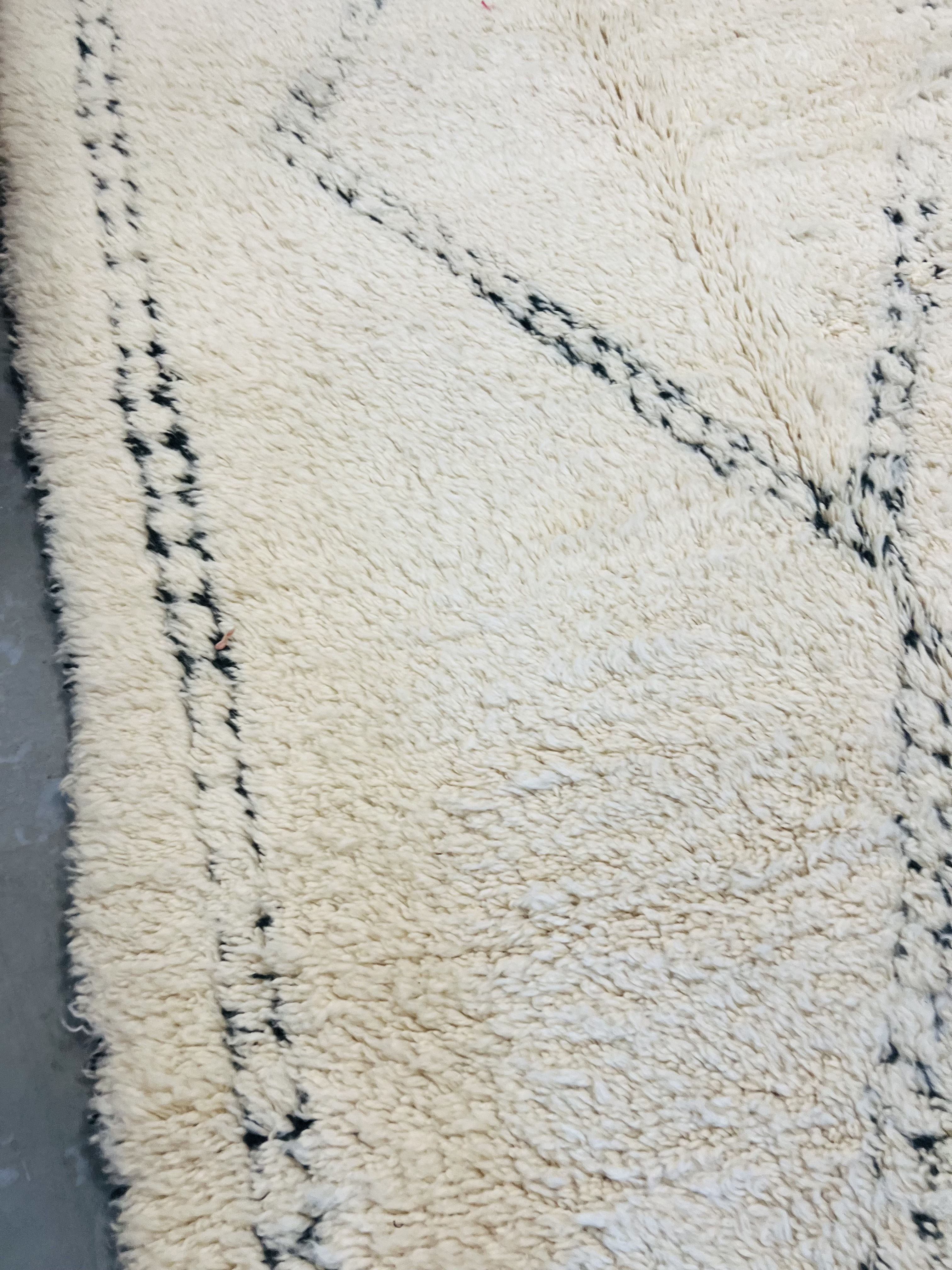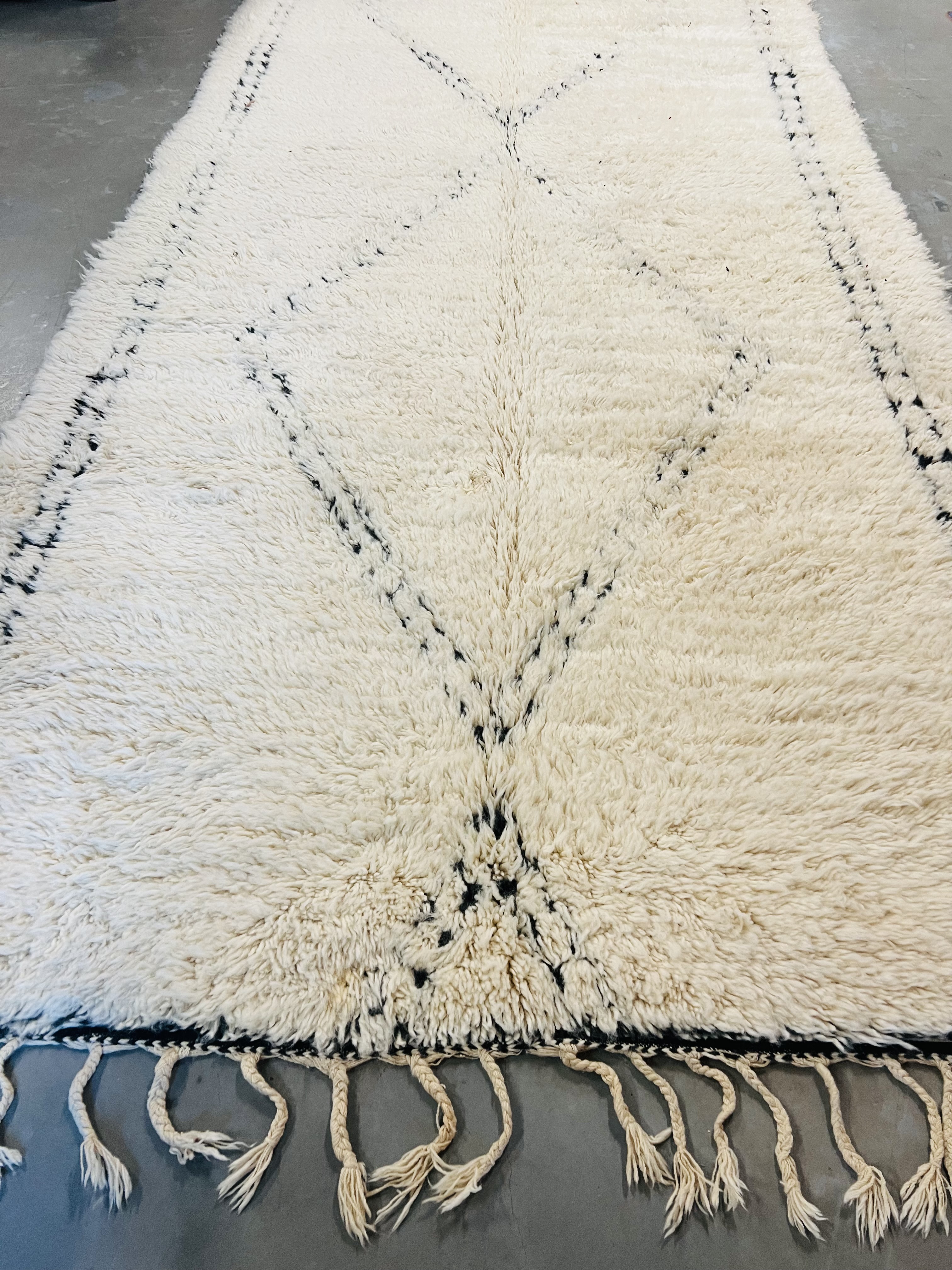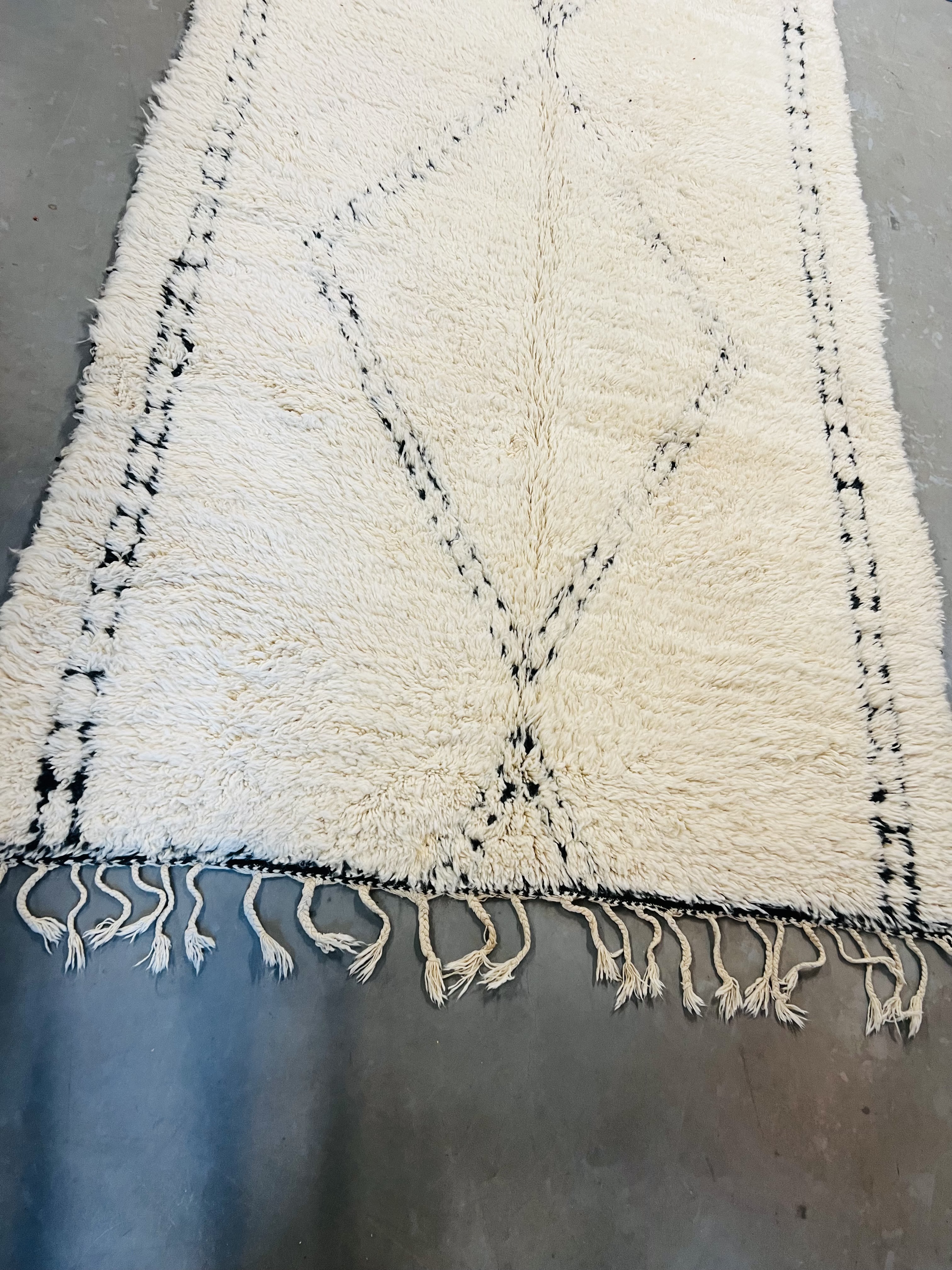 Our Beni Ourain rugs are made by people who incorporate fragments of their lives in the designs. These designs usually express femininity and nature, fertility or birth. We have also seen some stories of personal beliefs or rural life emerging from the carpets. Beni Ourain is a group of 17 Berber tribes that traditionally inhabits the Atlas Mountains of Morocco. They rear a special type of sheep from where the women get high-quality wool for making rugs and blankets for use, especially during the cold winters in the Moroccan Atlas Mountains. Our vintage Beni Ourain rugs possess a spirit and a character. It is a reflection of the daily life of the women that make it. Most of our vintage Beni rugs are cream(ivory) in color, although differences in the tone are found depending on the sheep's color. Our Moroccan Beni Ourain Rugs are a masterpiece with unique artwork that will beautify your home for a long time. We believe that you can pass the rug down for generations if you're able to properly care for it, since the high-quality wool will never wear out nor the colours will fade.