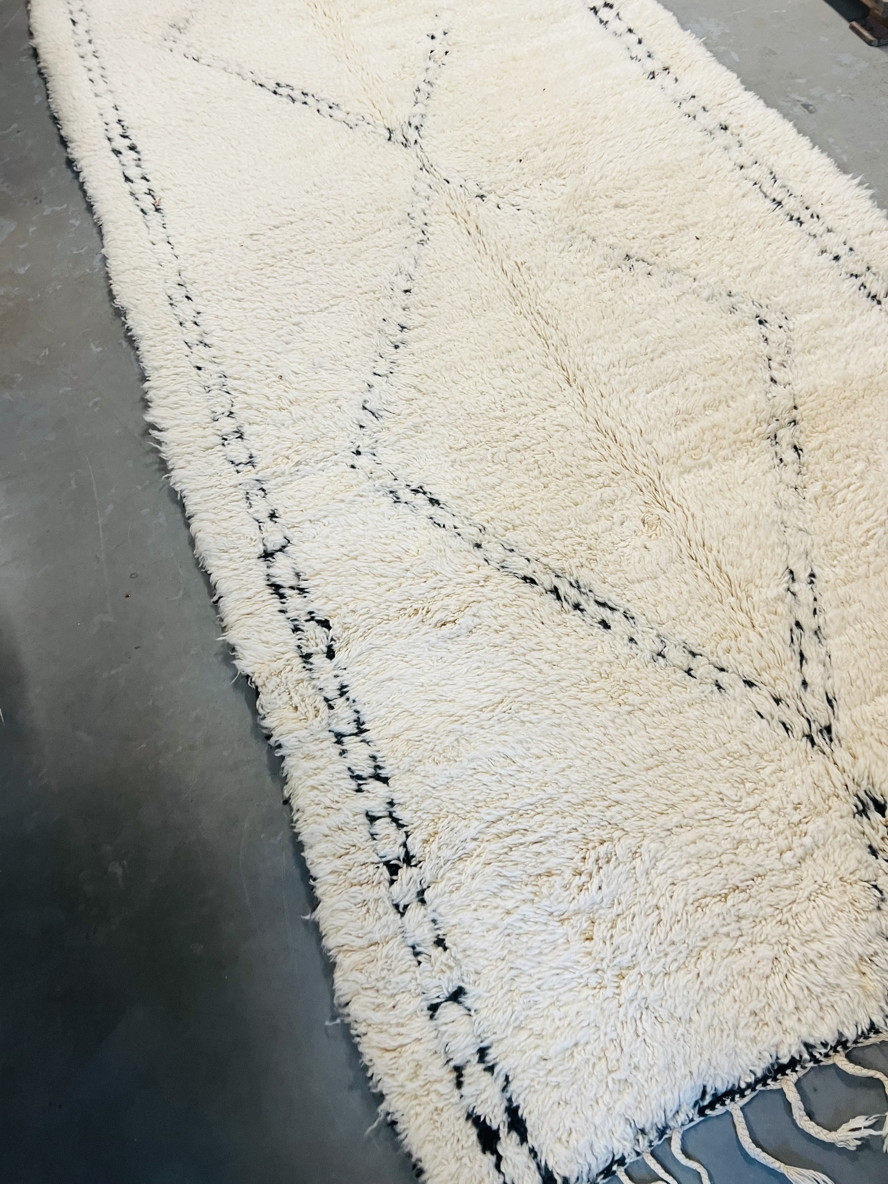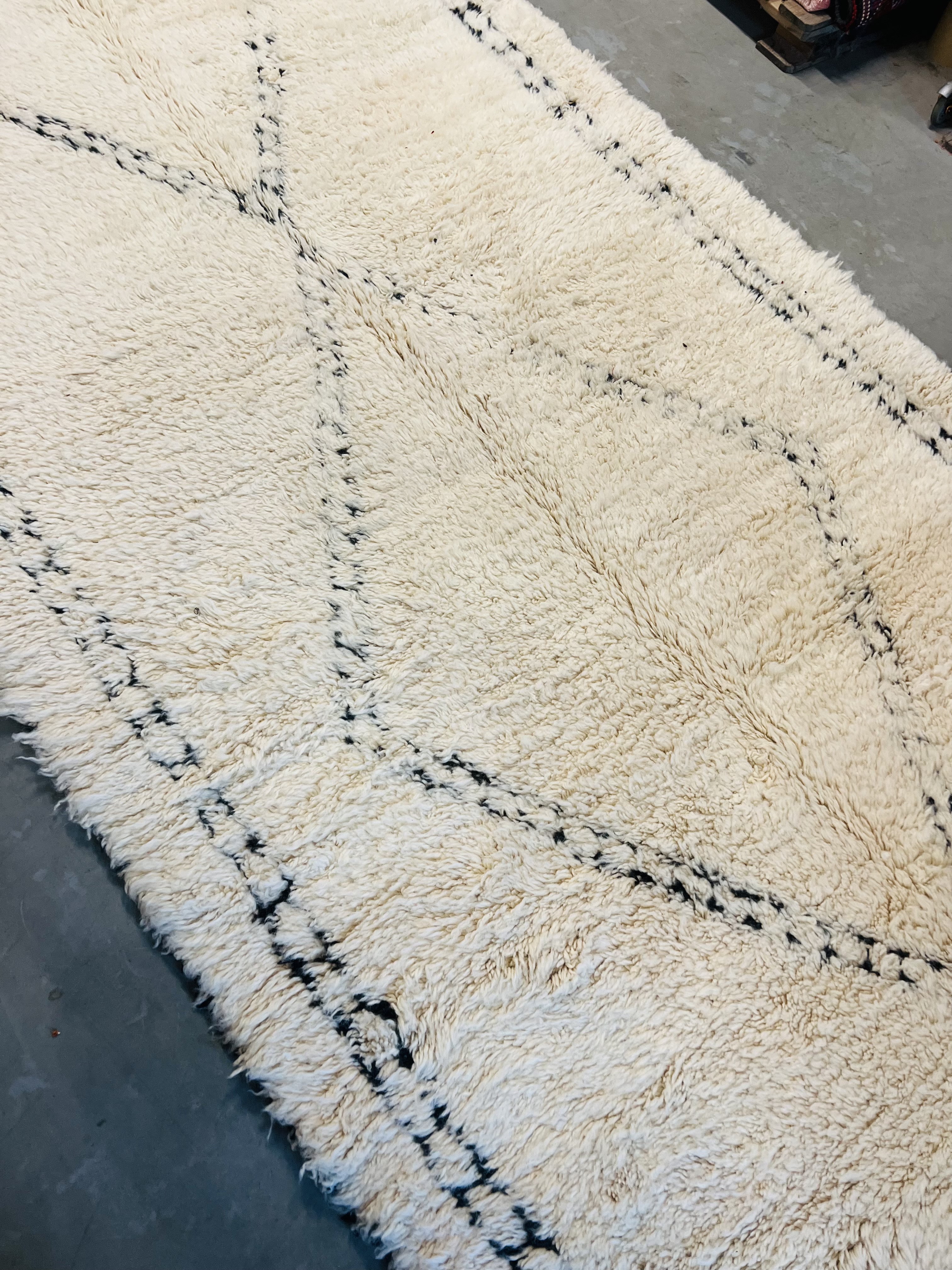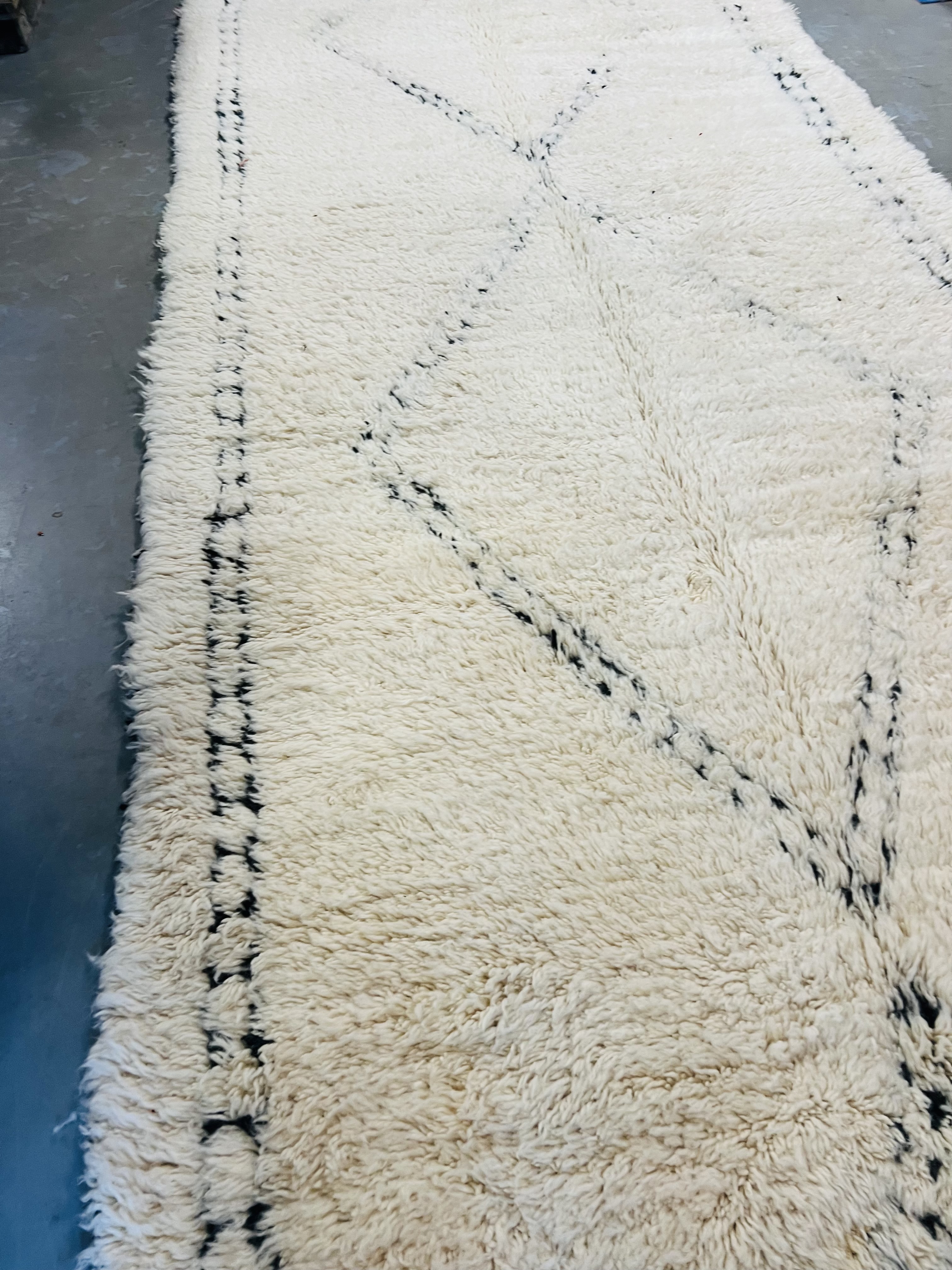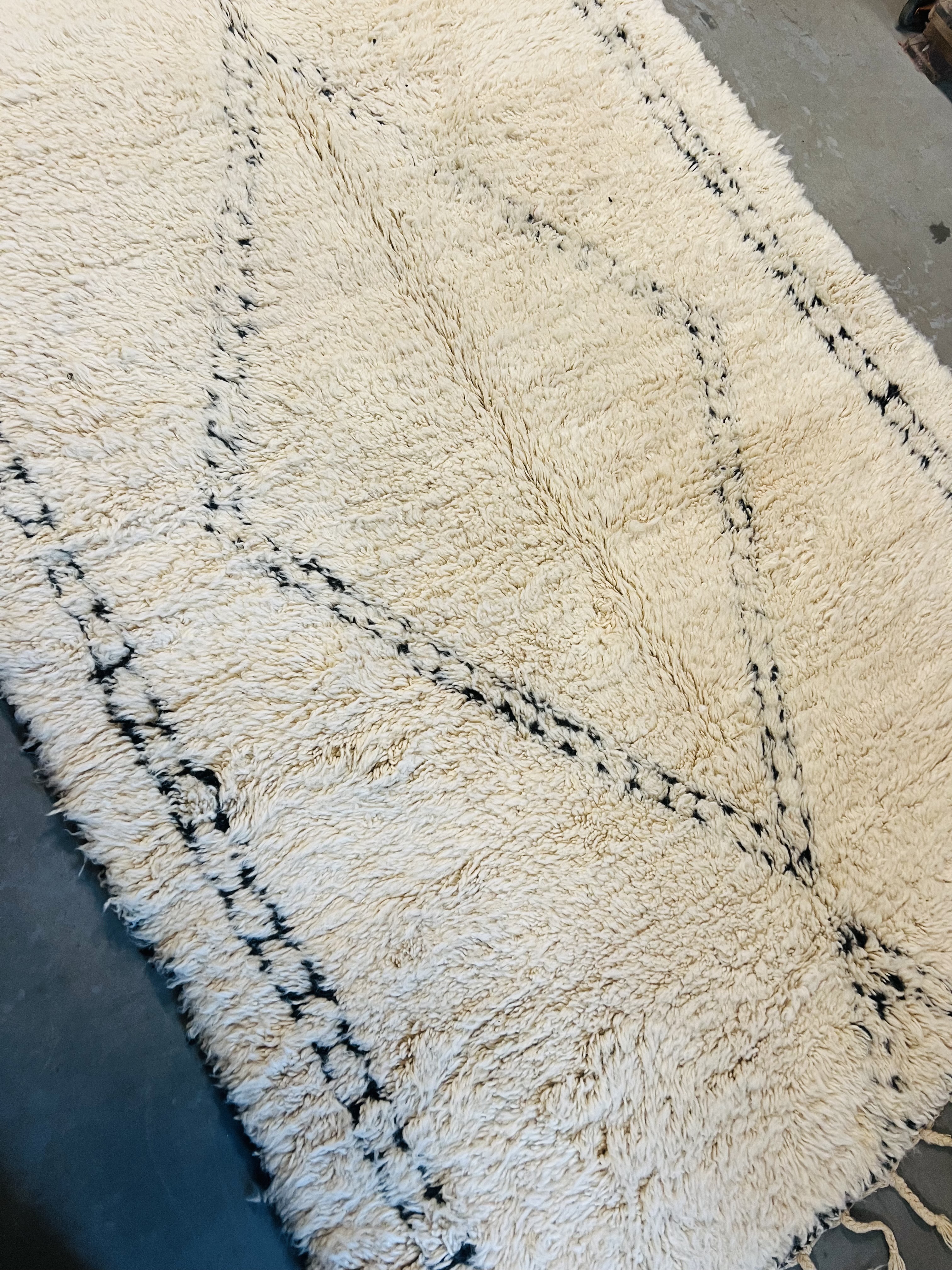 Our Beni Ourain rugs are made by people who incorporate fragments of their lives in the designs. These designs usually express femininity and nature, fertility or birth. We have also seen some stories of personal beliefs or rural life emerging from the carpets. Beni Ourain is a group of 17 Berber tribes that traditionally inhabits the Atlas Mountains of Morocco. They rear a special type of sheep from where the women get high-quality wool for making rugs and blankets for use, especially during the cold winters in the Moroccan Atlas Mountains. Our vintage Beni Ourain rugs possess a spirit and a character. It is a reflection of the daily life of the women that make it. Most of our vintage Beni rugs are cream(ivory) in color, although differences in the tone are found depending on the sheep's color. Our Moroccan Beni Ourain Rugs are a masterpiece with unique artwork that will beautify your home for a long time. We believe that you can pass the rug down for generations if you're able to properly care for it, since the high-quality wool will never wear out nor the colours will fade.