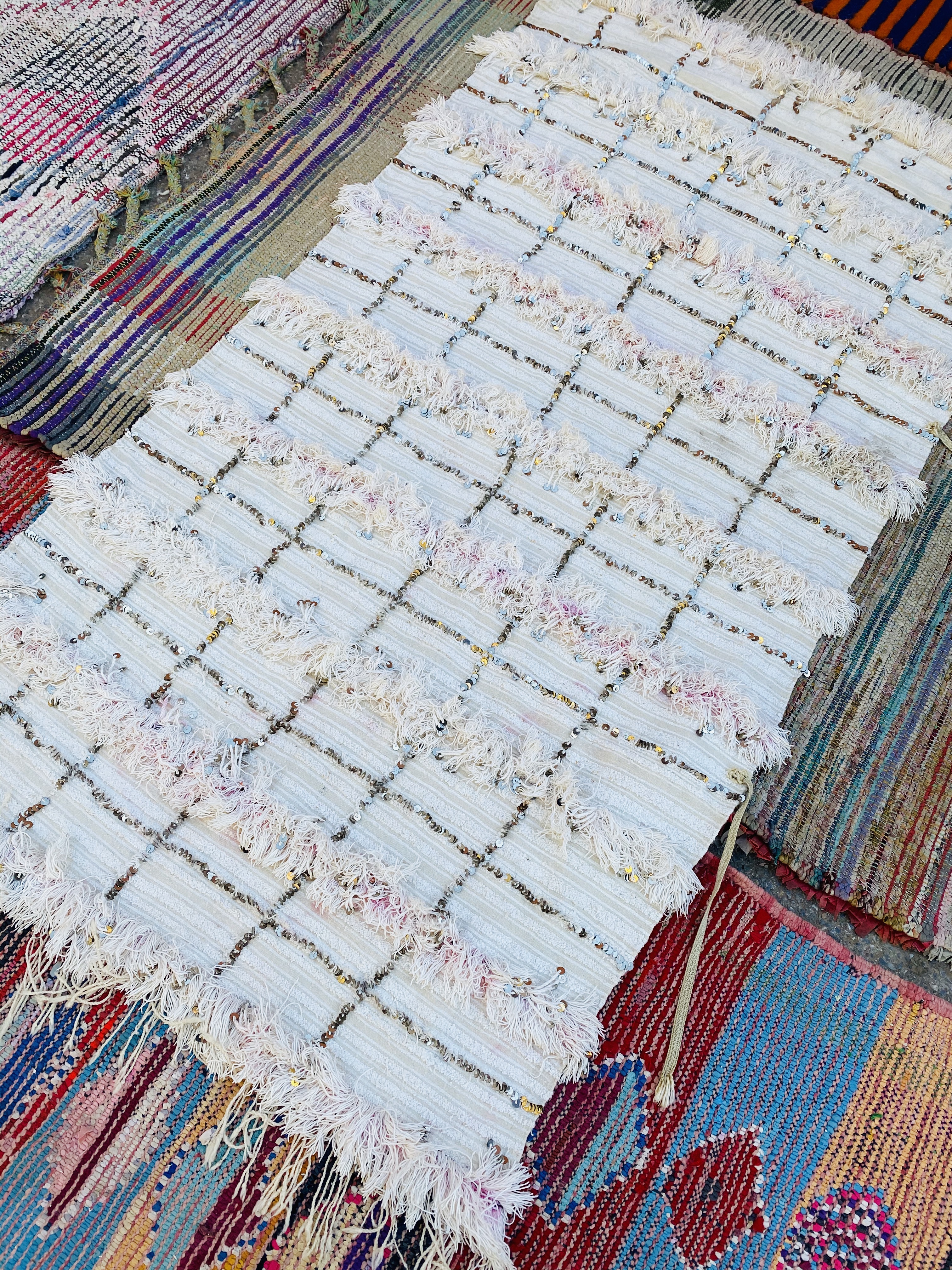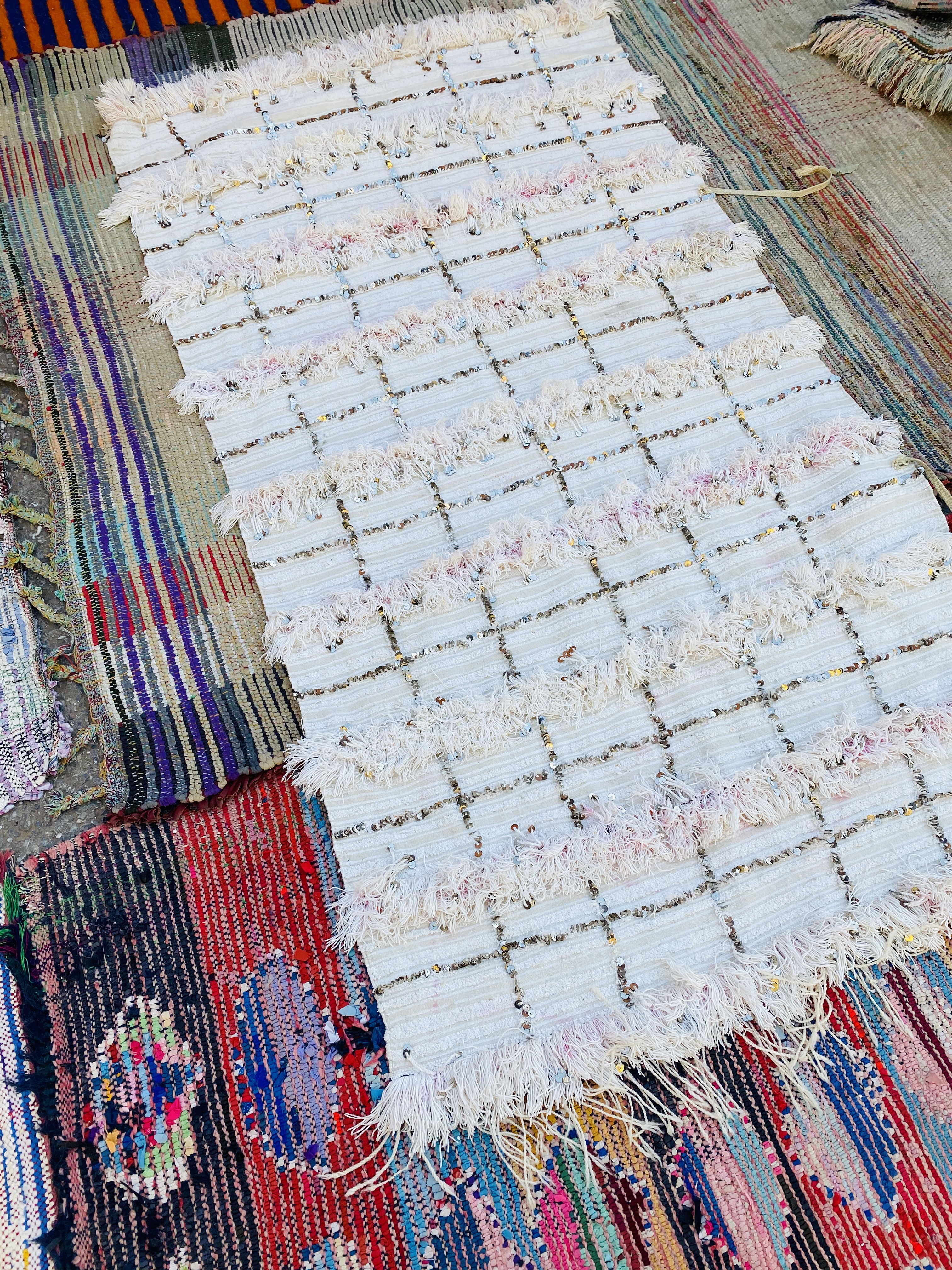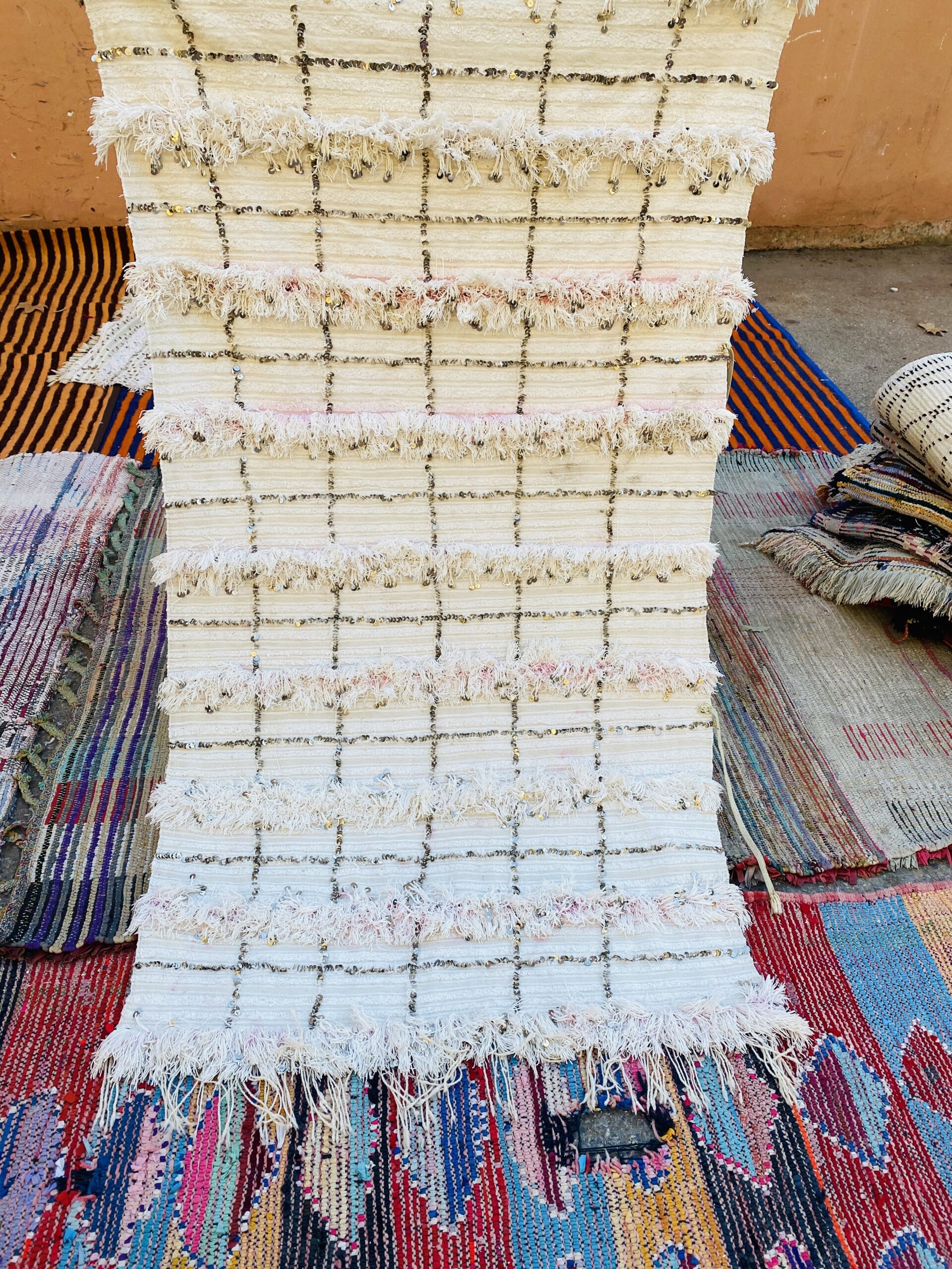 Our sequined, creamy Moroccan wedding blankets offer the truest taste of the traditional Berber culture. Popularly known as Handira, these wedding blankets are woven from sheep's wool, linen, and cotton. Similar to most household accessories in the Berber culture, some of our main weavers are skilled women from the Middle Atlas Mountains of Morocco.