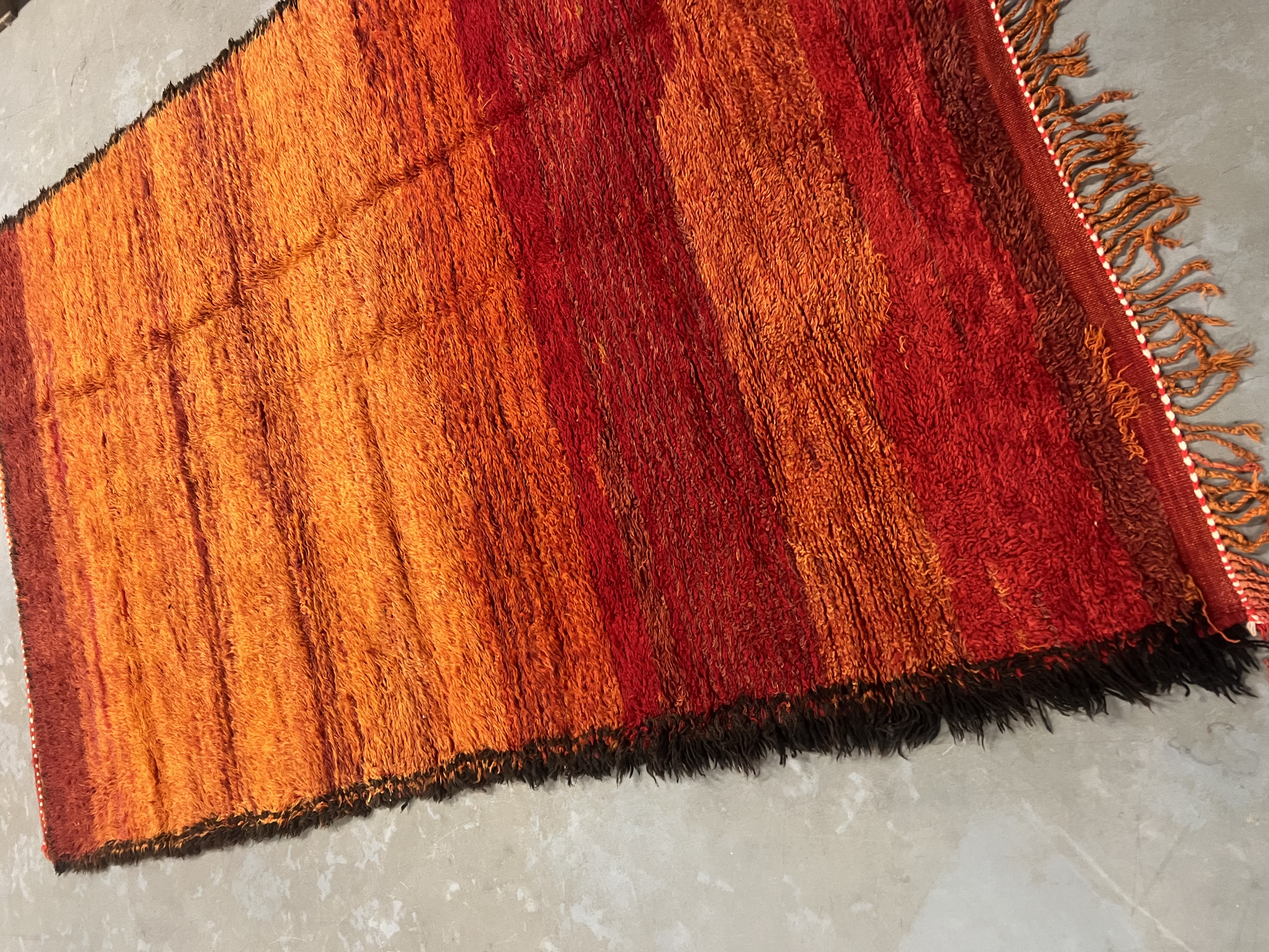 Our Beni Ourain rugs are made by people who incorporate fragments of their lives in the designs. These designs usually express femininity and nature, fertility or birth. We have also seen some stories of personal beliefs or rural life emerging from the carpets. Beni Ourain is a group of 17 Berber tribes that traditionally inhabits the Atlas Mountains of Morocco. They rear a special type of sheep from where the women get high-quality wool for making rugs and blankets for use, especially during the cold winters in the Moroccan Atlas Mountains. Our vintage Beni Ourain rugs possess a spirit and a character. It is a reflection of the daily life of the women that make it. Most of our vintage Beni rugs are cream(ivory) in color, although differences in the tone are found depending on the sheep's color. Our Moroccan Beni Ourain Rugs are a masterpiece with unique artwork that will beautify your home for a long time. We believe that you can pass the rug down for generations if you're able to properly care for it, since the high-quality wool will never wear out nor the colours will fade.